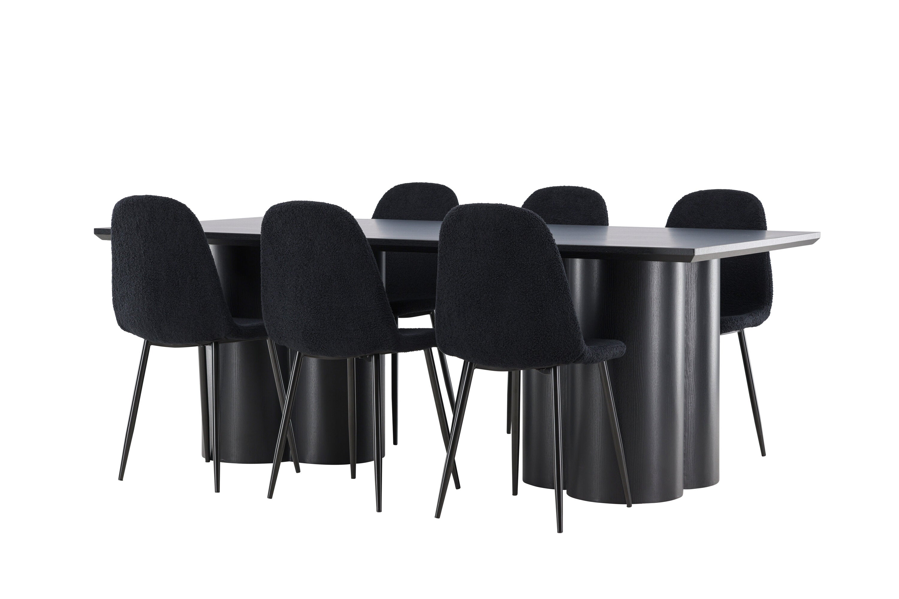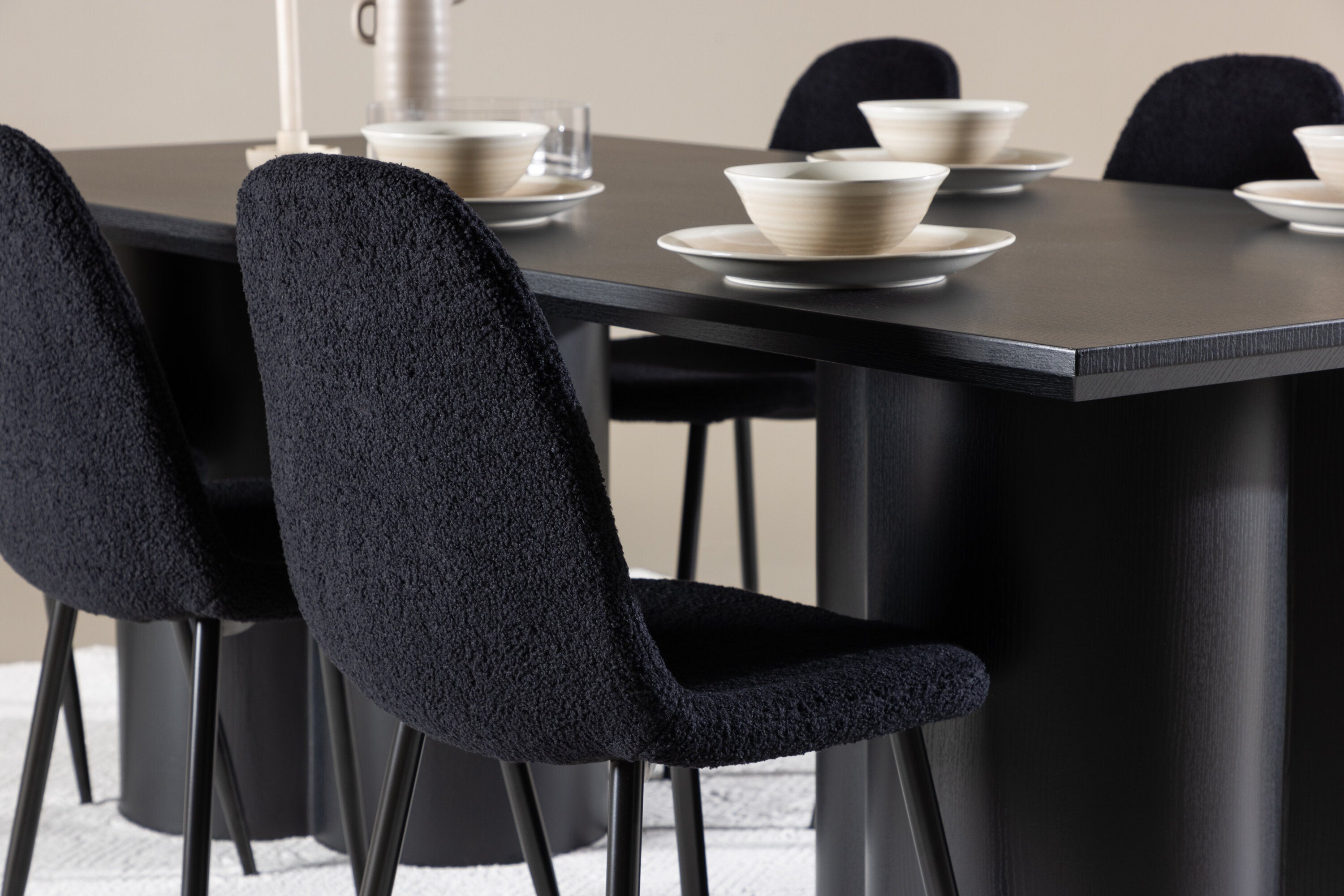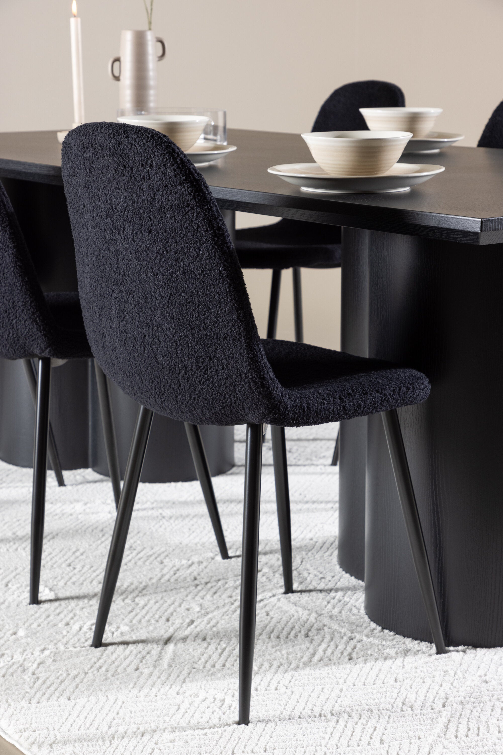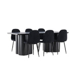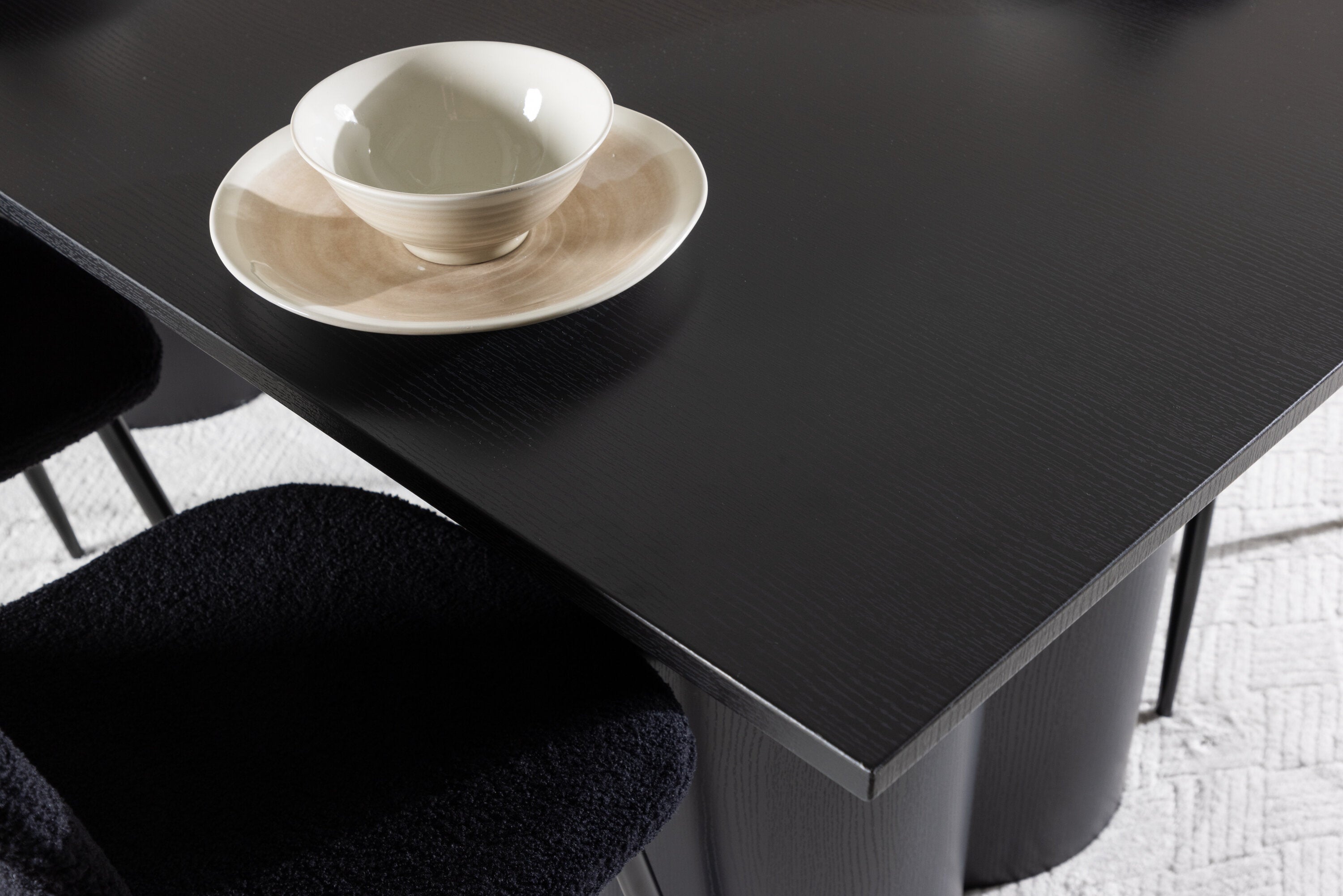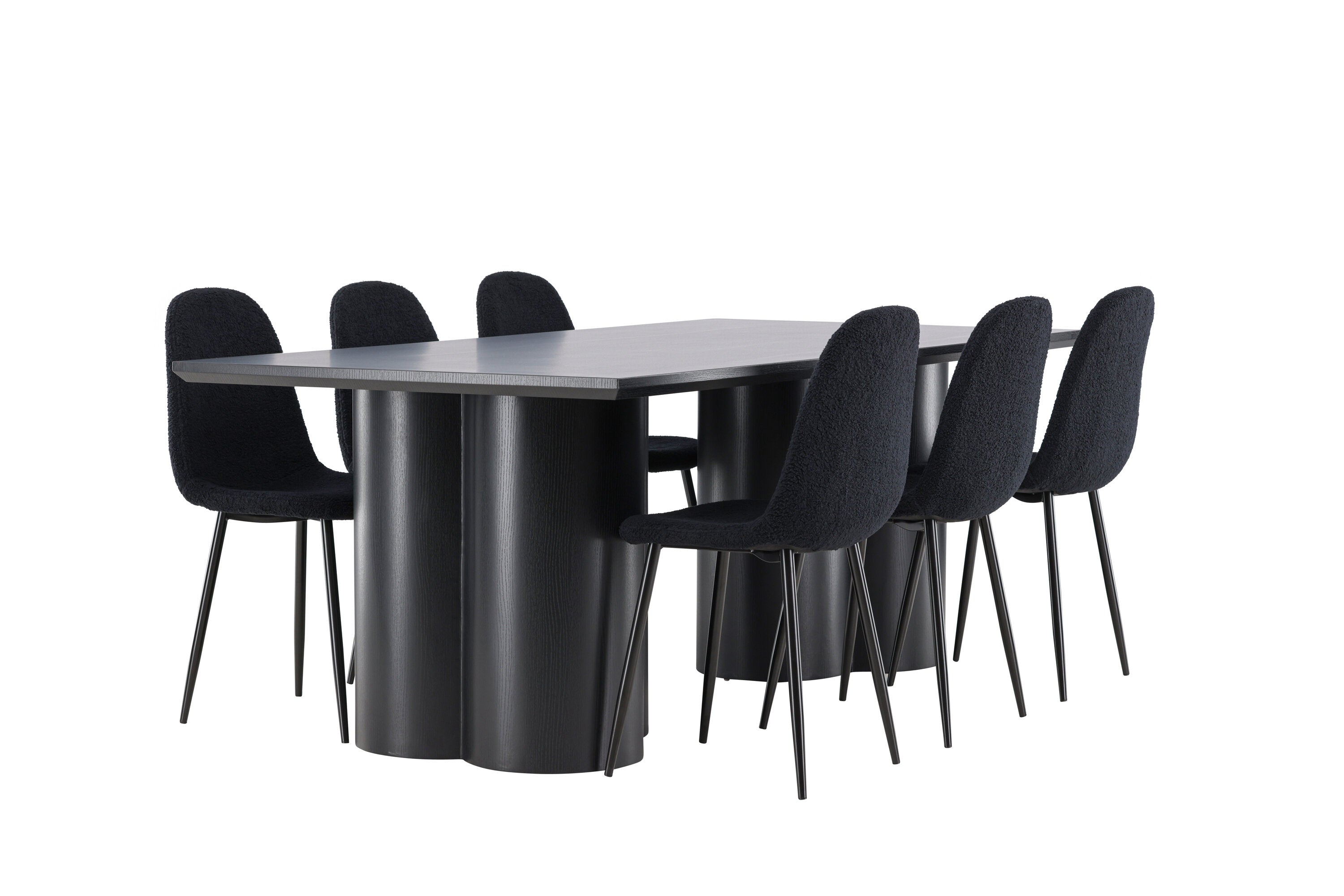 Objevte dokonalou kombinaci elegance a funkčnosti s jídelním setem, který obsahuje jídelní židli Polar a jídelní stůl Olivia. Společně vytvářejí moderní a příjemnou atmosféru pro všechna vaše jídla a společenská setkání. Židle má certifikaci FSC® (FSC®C177288), což znamená, že se skládá ze dřeva z odpovědného lesnictví, lesnictví, které bere ohled na lidi a životní prostředí. Jídelní židle Polar je dokonalou kombinací moderní elegance a jednoduchosti pro vaše stolování. Tmavě černá barva křesla a polyesterový plyšový materiál poskytují exkluzivní pocit a nabízejí pohodlné sezení na všech vašich večeřích a setkáních. Jeho moderní design a čisté linie poskytují nadčasovou estetiku, která doplňuje všechny styly interiéru. Nohy jídelní židle Polar jsou vyrobeny z černé oceli, poskytují pevnou a robustní konstrukci a zároveň přispívají k jejímu elegantnímu vzhledu. Díky své jednoduchosti a všestrannosti bude Polar vítaným doplňkem vašeho domova. Zažijte eleganci a funkčnost s jídelním stolem Olivia. Se svými velkorysými rozměry 210x100 cm je tento stůl ideální pro uvítání přátel a rodiny při společném jídle a posezení. Jídelní stůl Olivia v sofistikovaném černém odstínu vyzařuje eleganci a modernost. Jeho robustní konstrukce zajišťuje stabilitu po mnoho let. Vytvořte ve svém domově trendy atmosféru s jídelním stolem Olivia. Díky svému elegantnímu designu a nadčasové barvě se perfektně hodí do různých stylů interiéru. Nechte jídelní stůl Olivia vytvořit vaše společenská setkání a vzpomínky, zatímco budete sdílet jídla a konverzovat se svými blízkými. Dodejte svému domovu nádech elegance a komunity s tímto působivým a funkčním stolem.