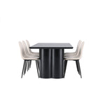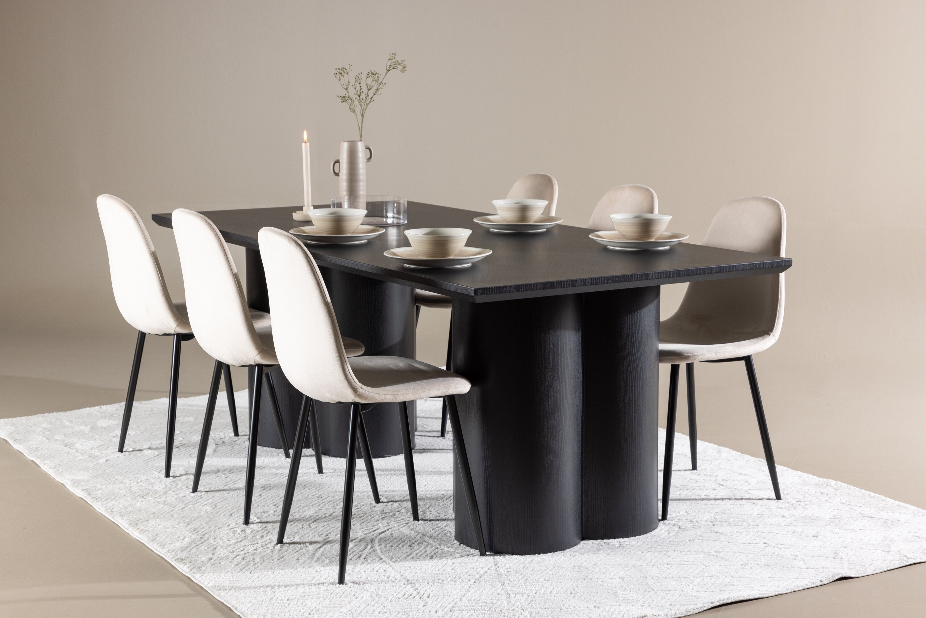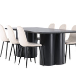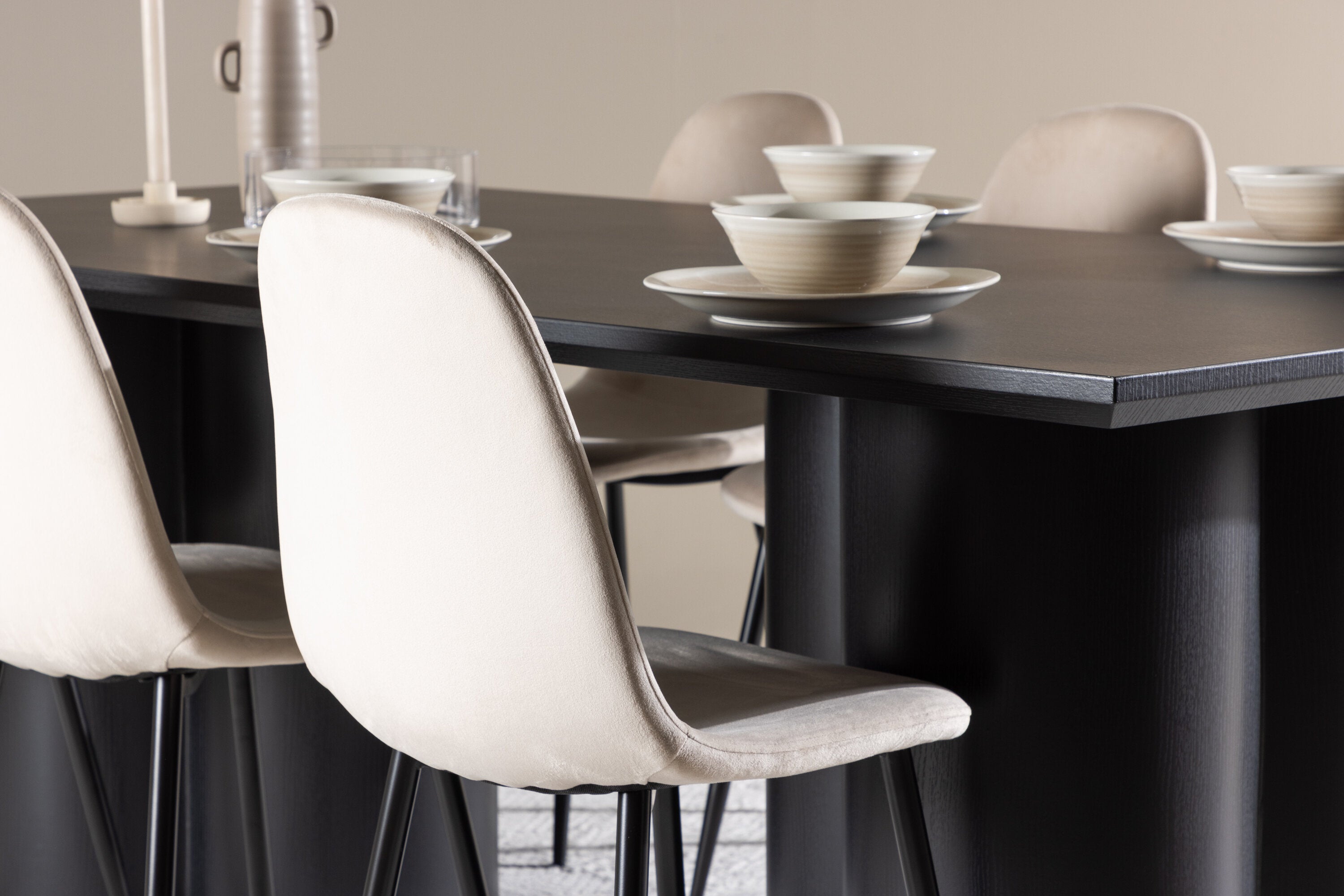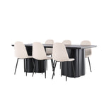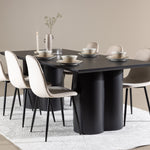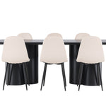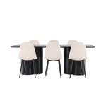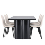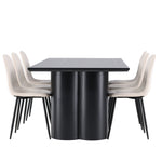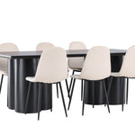 Objevte dokonalou kombinaci modernosti a elegance s jídelní židlí Polar a jídelním stolem Olivia - jídelním setem, který vyzařuje styl a funkčnost. Jídelní židle Polar je moderní židle sen ze série Polar, čalouněná v elegantní béžové barvě. Se svým plně čalouněným designem, mírně zaobleným opěradlem a sedákem ze sametové látky a nohami z černého kovu s práškovým nástřikem je tato jídelní židle pohodlná a poutavá. Vybavte srdce svého domova přívětivě a vychutnejte si společně skvělé jídlo! Jídelní stůl Olivia se svými velkorysými rozměry 210x100 cm je perfektní pro vítání přátel a rodiny při společném jídle a posezení. Stůl v sofistikovaném černém odstínu vyzařuje eleganci a modernost a jeho robustní konstrukce zajišťuje dlouhodobou stabilitu. Dodejte své jídelně aktualizovaný pocit luxusu a modernosti s jídelní židlí Polar a jídelním stolem Olivia. Tento jídelní set vytváří harmonickou atmosféru a zanechává trvalý dojem. Tato kombinace je ideální jak pro každodenní večeři, tak pro slavnostní příležitosti, nabízí rovnováhu mezi nadčasovým designem a moderními detaily, díky čemuž je perfektní volbou pro všechna vaše společenská setkání.