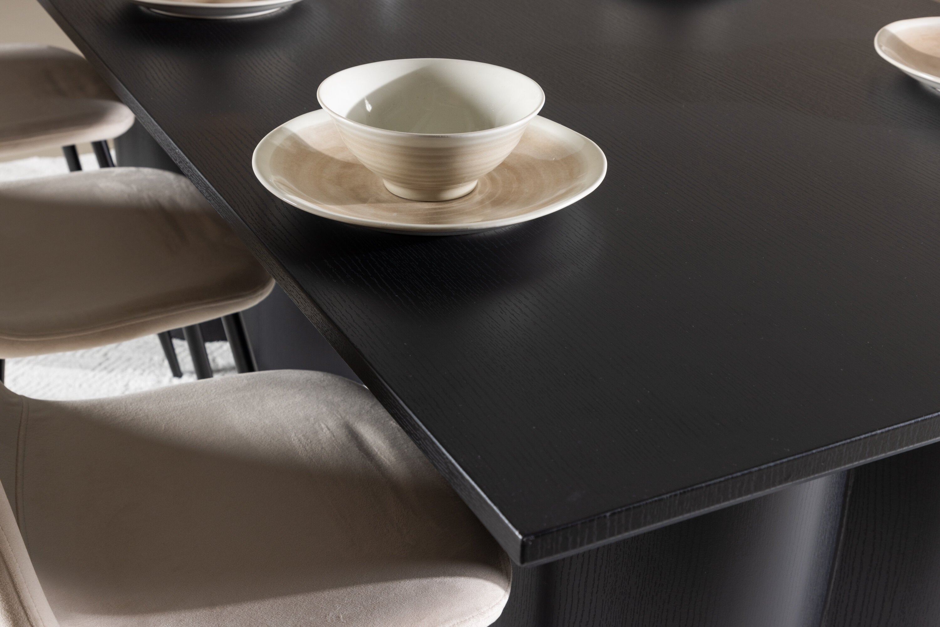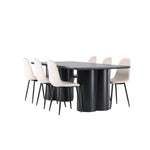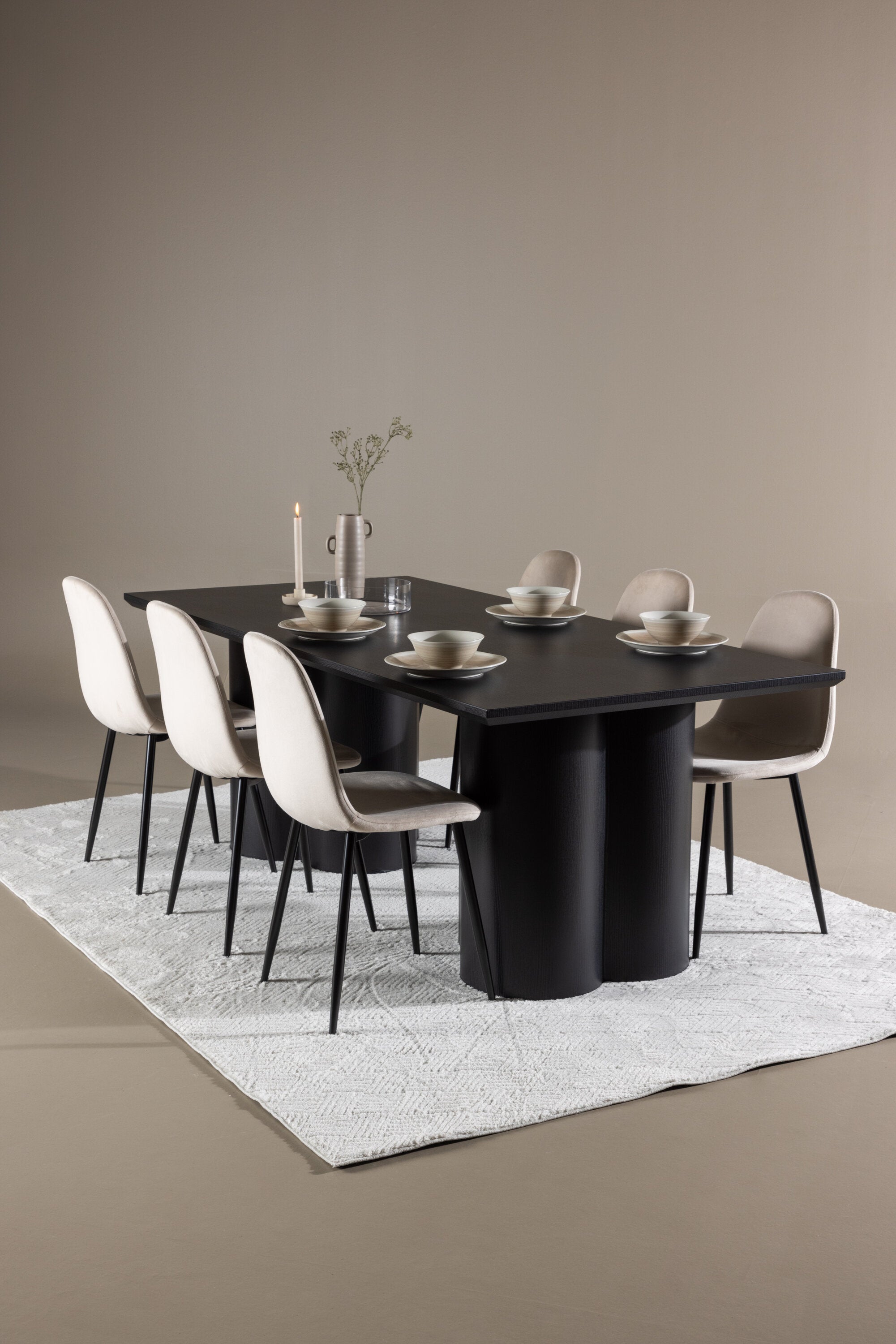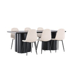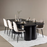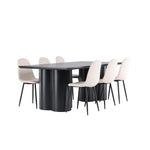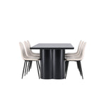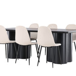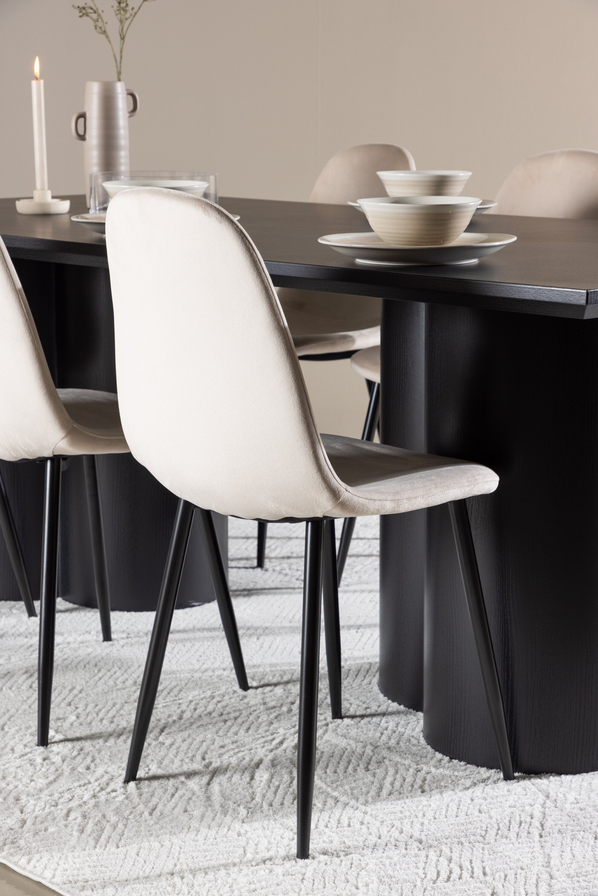 Objevte dokonalou kombinaci modernosti a elegance s jídelní židlí Polar a jídelním stolem Olivia - jídelním setem, který vyzařuje styl a funkčnost. Jídelní židle Polar je moderní židle sen ze série Polar, čalouněná v elegantní béžové barvě. Se svým plně čalouněným designem, mírně zaobleným opěradlem a sedákem ze sametové látky a nohami z černého kovu s práškovým nástřikem je tato jídelní židle pohodlná a poutavá. Vybavte srdce svého domova přívětivě a vychutnejte si společně skvělé jídlo! Jídelní stůl Olivia se svými velkorysými rozměry 210x100 cm je perfektní pro vítání přátel a rodiny při společném jídle a posezení. Stůl v sofistikovaném černém odstínu vyzařuje eleganci a modernost a jeho robustní konstrukce zajišťuje dlouhodobou stabilitu. Dodejte své jídelně aktualizovaný pocit luxusu a modernosti s jídelní židlí Polar a jídelním stolem Olivia. Tento jídelní set vytváří harmonickou atmosféru a zanechává trvalý dojem. Tato kombinace je ideální jak pro každodenní večeři, tak pro slavnostní příležitosti, nabízí rovnováhu mezi nadčasovým designem a moderními detaily, díky čemuž je perfektní volbou pro všechna vaše společenská setkání.