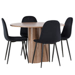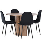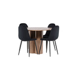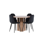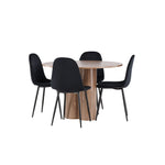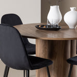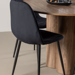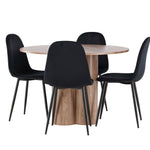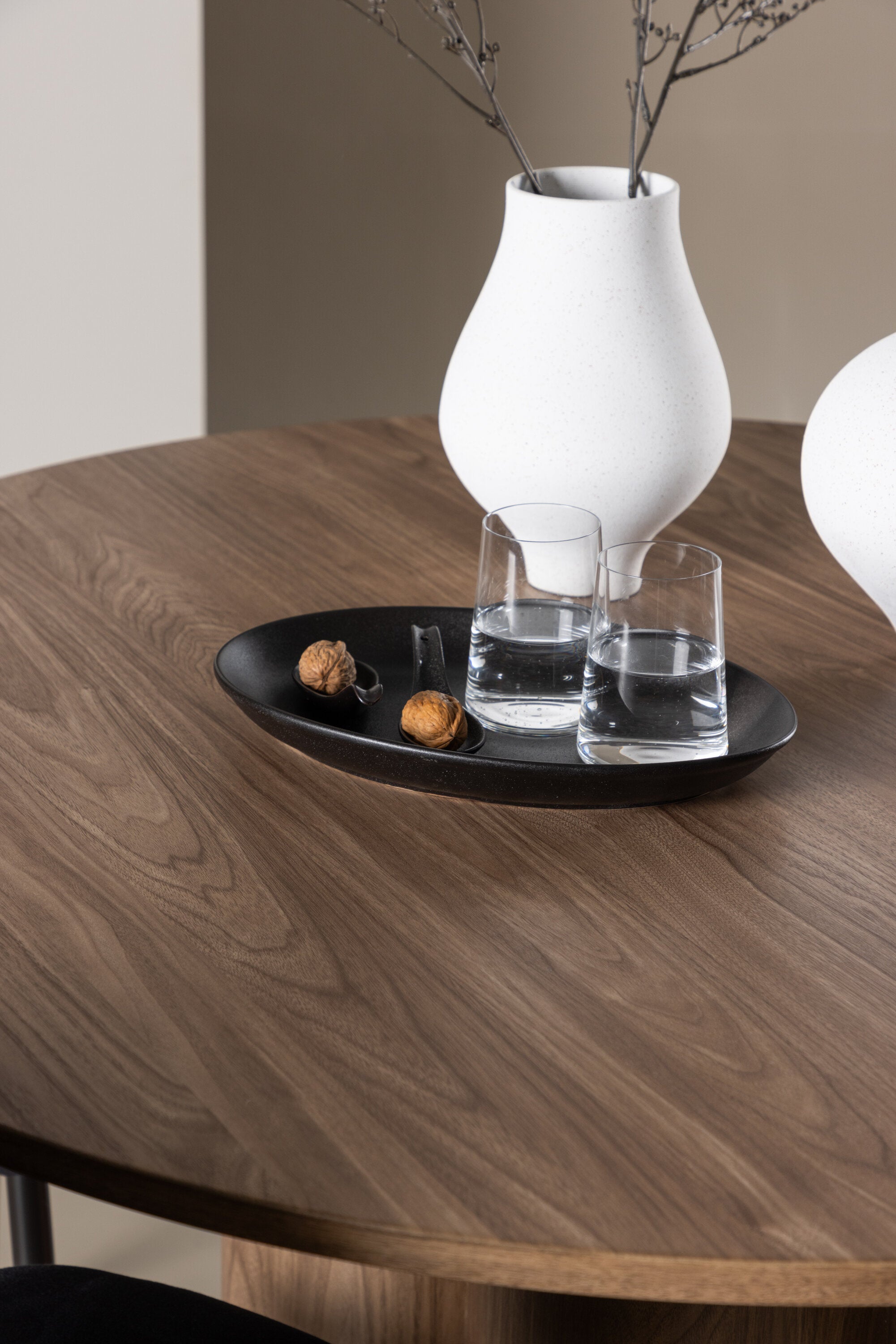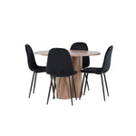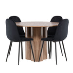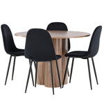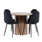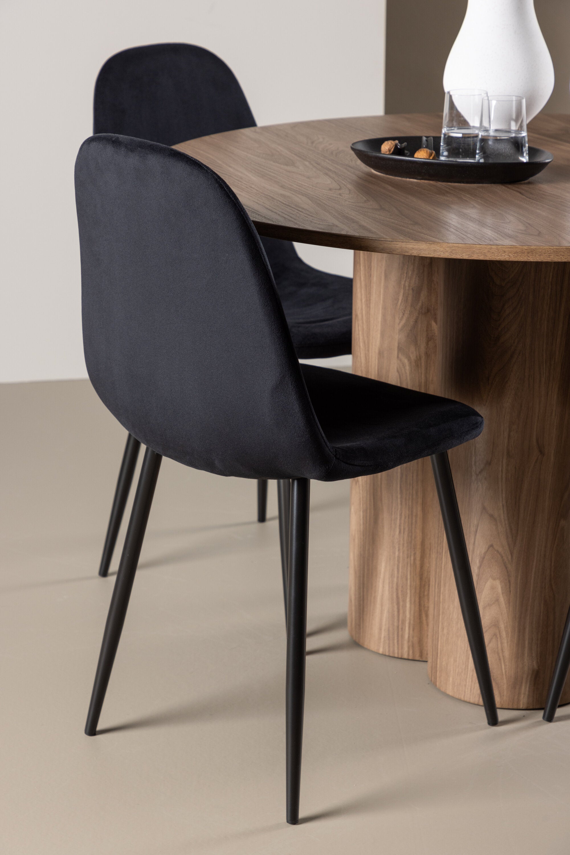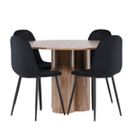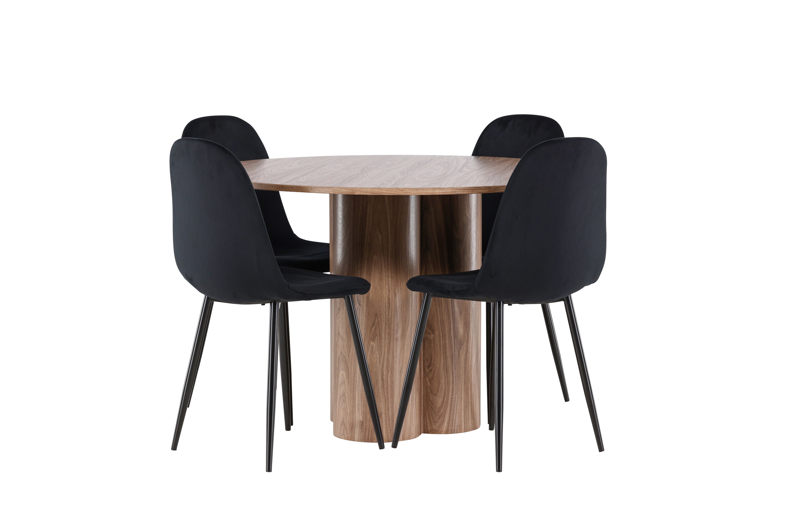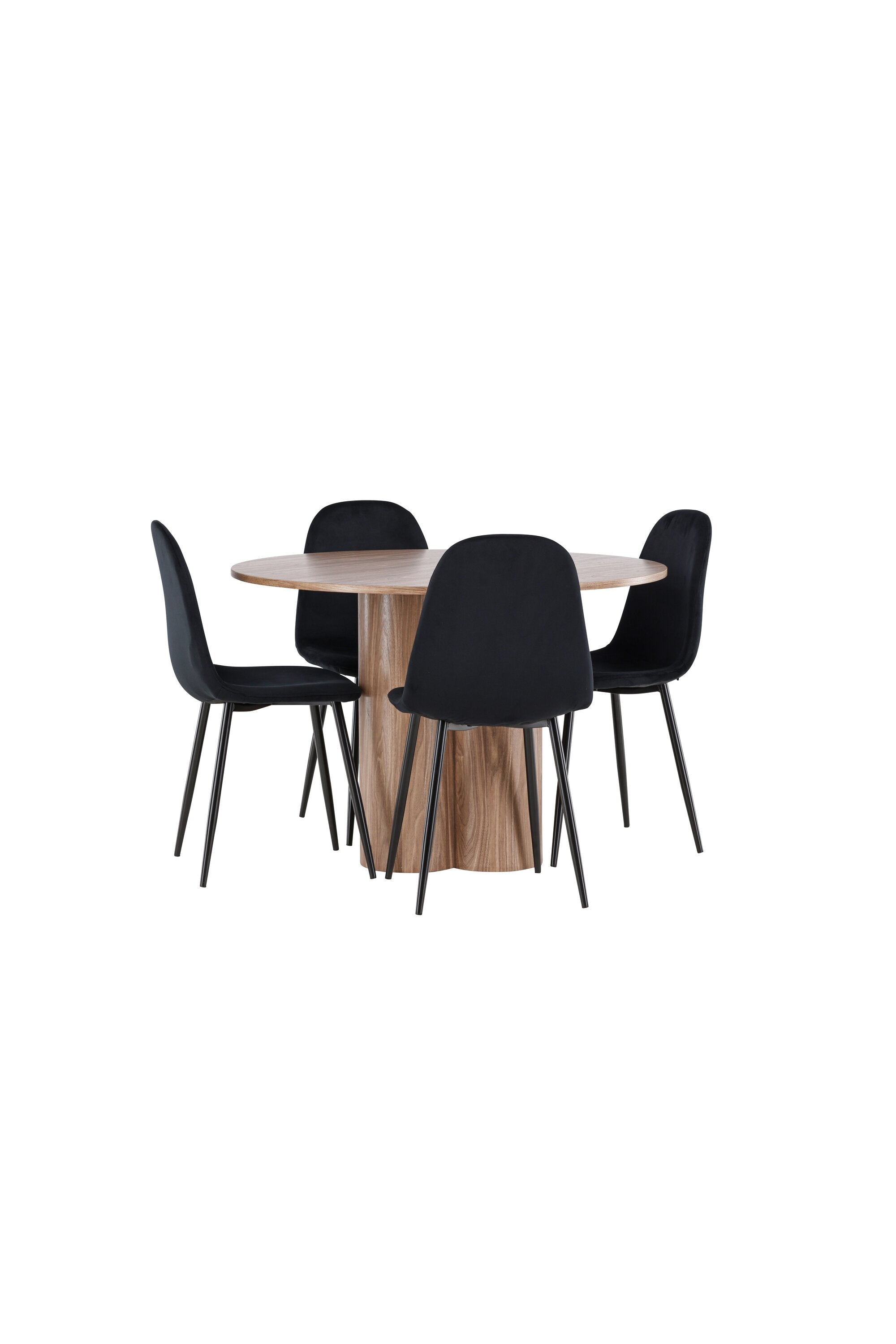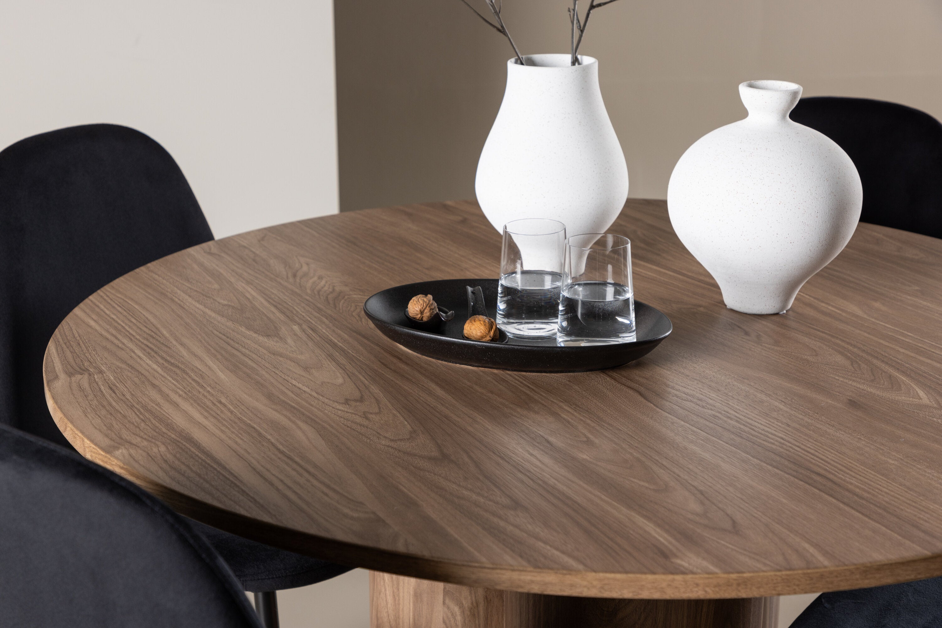 Proměňte svou jídelnu pomocí elegantního jídelního setu, který obsahuje stůl Olivia a židle Polar. Tato sofistikovaná kombinace moderního designu a luxusních materiálů vytváří dokonalé prostředí jak pro každodenní stolování, tak pro slavnostní příležitosti. Stůl Olivia je stylovým a nadčasovým doplňkem vašeho domova. Díky své mocha barvě a MDF konstrukci působí stůl teplým a příjemným dojmem. Deska stolu má průměr 110 cm, poskytuje dostatek prostoru pro pohodlné usazení čtyř osob a přitom je stále dostatečně kompaktní, aby se vešla i do menších prostor. Stůl Olivia stojí stabilně na pevné základně a snadno se čistí, takže je praktický i elegantní. Židle Polar svým luxusním designem doplňují stůl Olivia. Tyto židle jsou čalouněné černým sametem a mají elegantní černé nohy, které nabízejí exkluzivní a pohodlné sezení. Jemný samet v kombinaci s moka tónem stolu vytváří harmonickou a elegantní atmosféru ve vaší jídelně. Židle Polar jsou navrženy s ohledem na estetiku i pohodlí, takže jsou ideální pro dlouhé a příjemné večeře. S jídelním setem Olivia a židlemi Polar získáte kompletní jídelní kout, který kombinuje funkčnost s elegantním designem. Tato jídelní souprava se nepochybně stane ústředním bodem vašeho domova, kde se může scházet rodina a přátelé u lahodného jídla a příjemné společnosti.