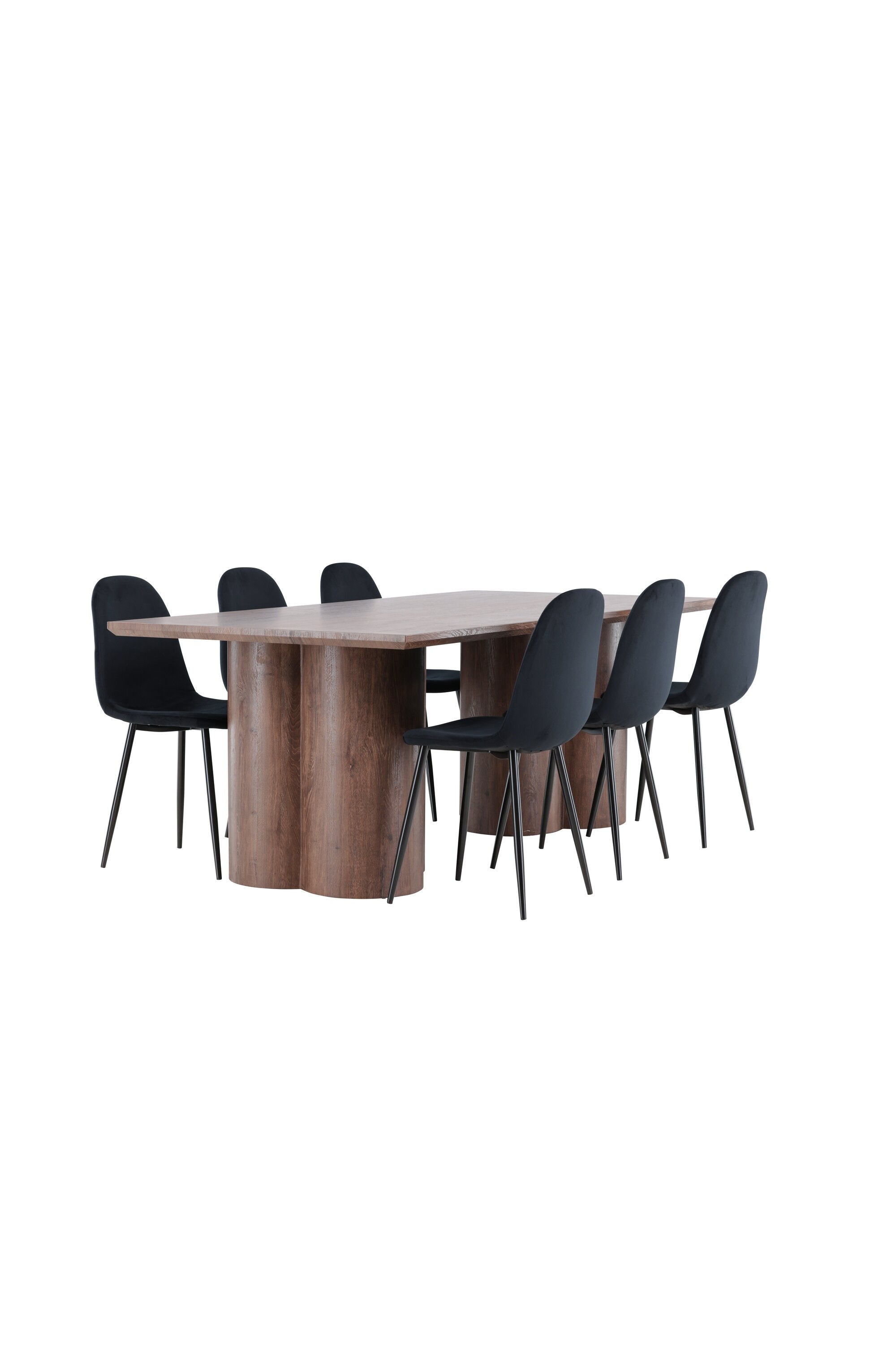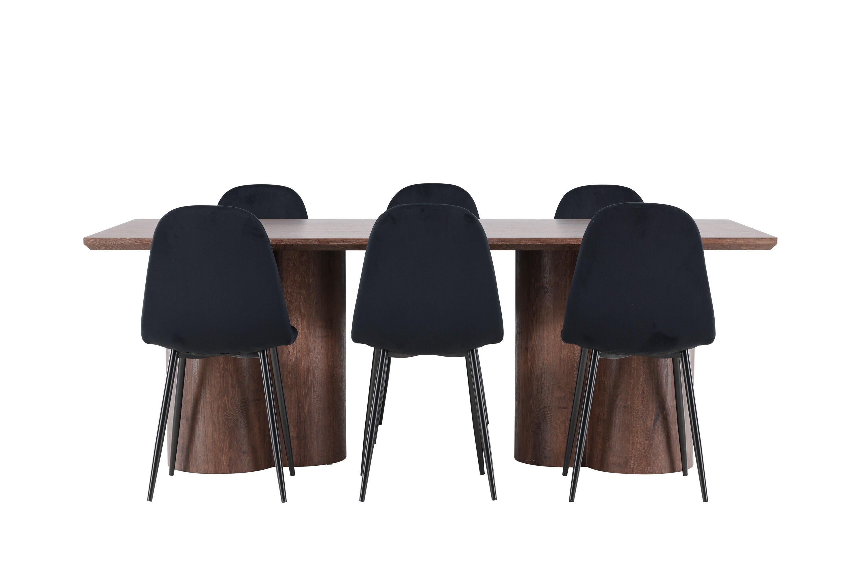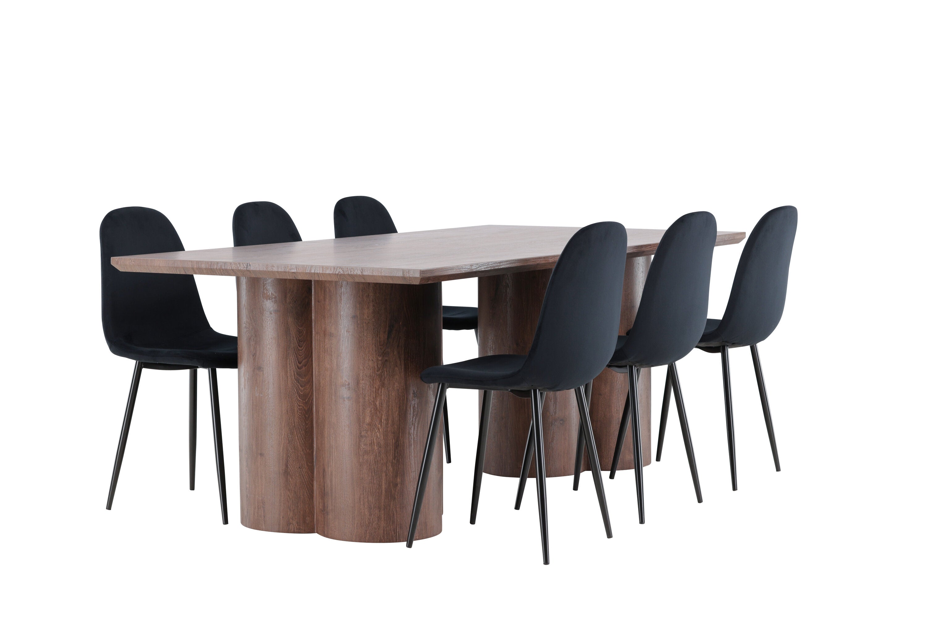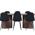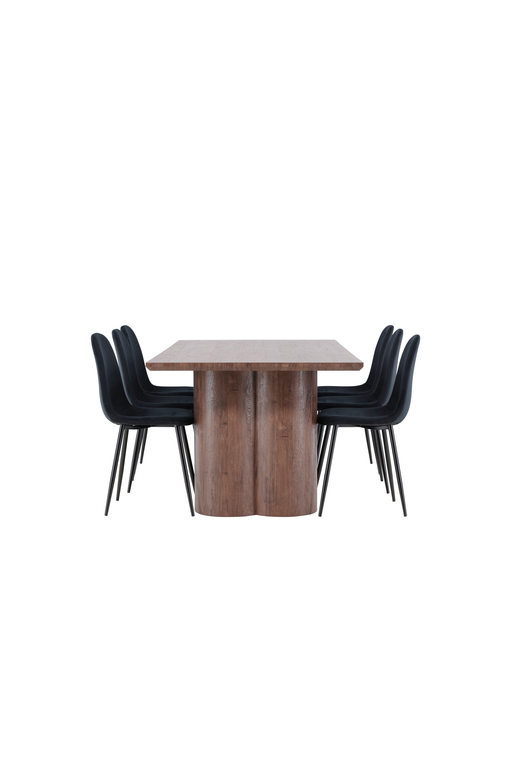 Objevte jídelní skupinu Polar – dokonalou kombinaci stylu a pohodlí pro váš domov. Jídelní židle Polar má konzistentní černou barvu a moderní design, díky kterému je pohodlná a poutavá. Židle je celá potažena černou sametovou látkou s měkkým polstrováním a má nohy z kovu s černým práškovým nástřikem. Díky zaobleným opěradlům a sedadlu nabízí pohodlné sezení bez kompromisů v designu. Doplňte jídelní židle jídelním stolem Olivia pro kompletní jídelní set. Jídelní stůl Olivia je harmonickým spojením stylu a funkčnosti. Stůl s velkorysými rozměry 100x210 cm nabízí dostatek prostoru pro shromáždění blízkých na večeře a společenské akce. Olivia je vyrobena z MDF materiálu s povrchem v semišové barvě a vytváří ve vašem domově teplou a příjemnou atmosféru. Jeho neutrální design se dobře hodí k různým stylům interiéru a vytváří klidný a přívětivý pocit. Jídelní skupina Polar and Olivia je víc než jen nábytek – jsou to místa, na která se s přáteli a rodinou vzpomíná. Nechte tuto jídelní skupinu, aby se stala centrem pro vaše setkání a vytvořte společně teplé a nezapomenutelné chvíle.