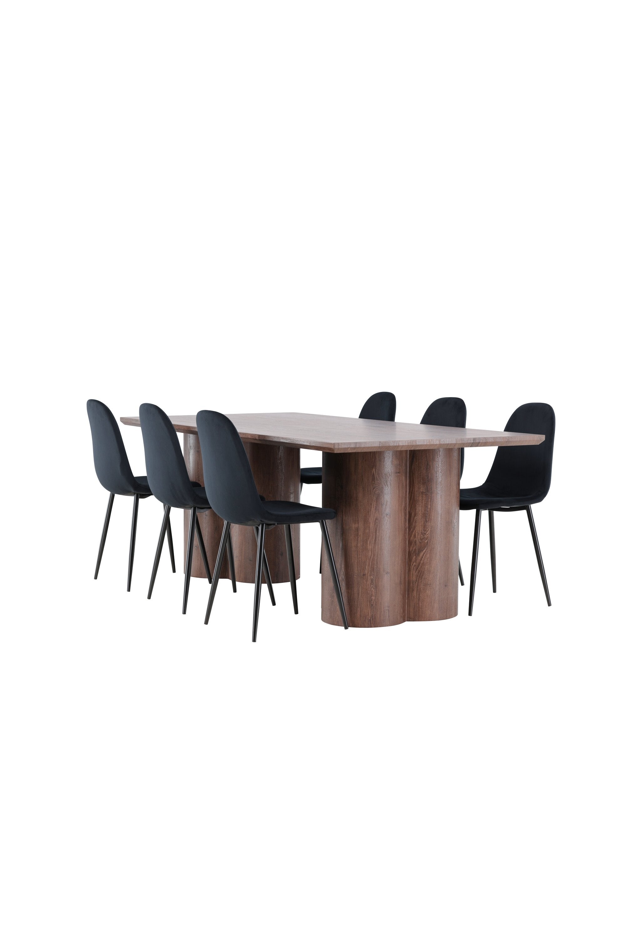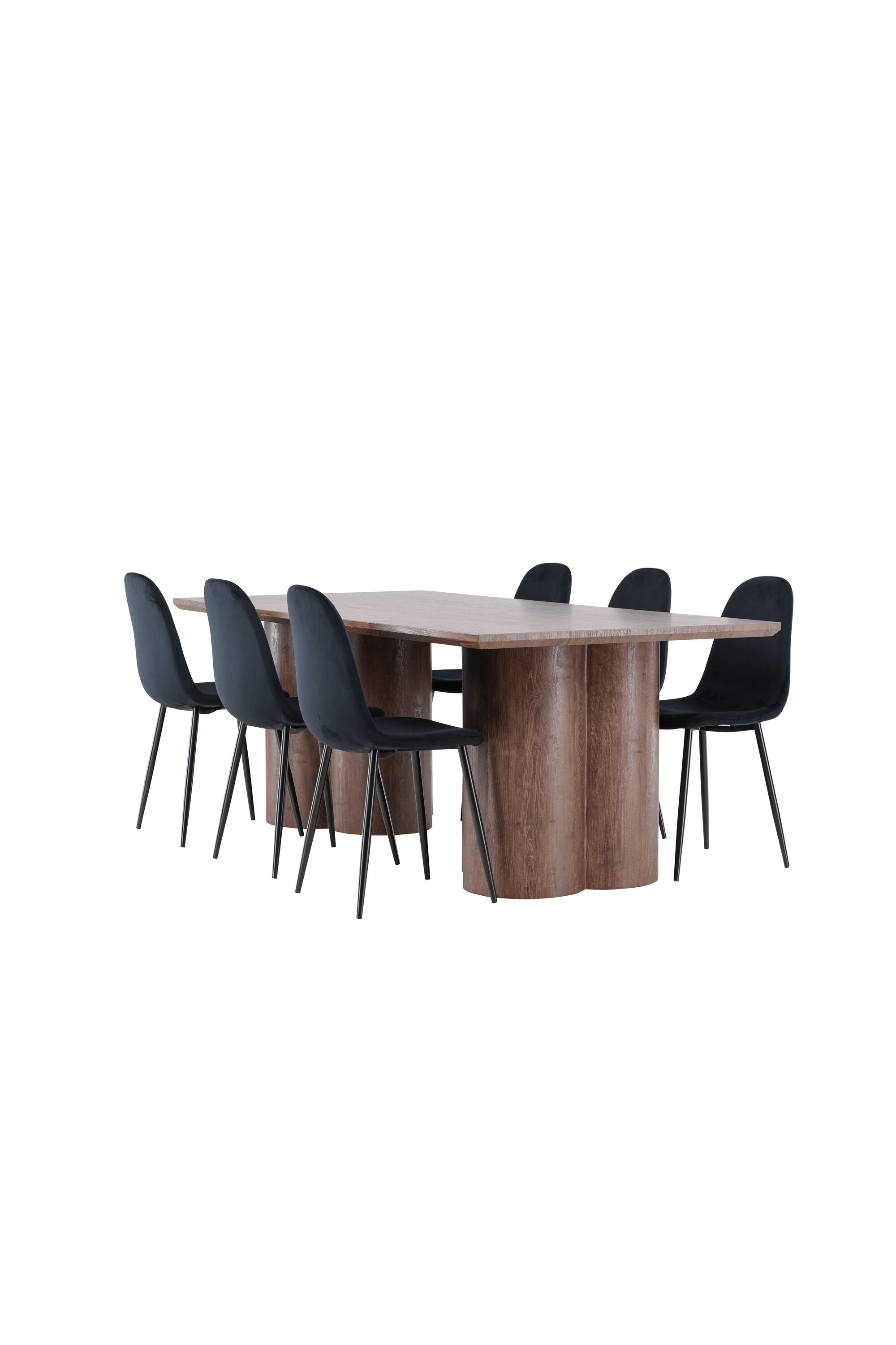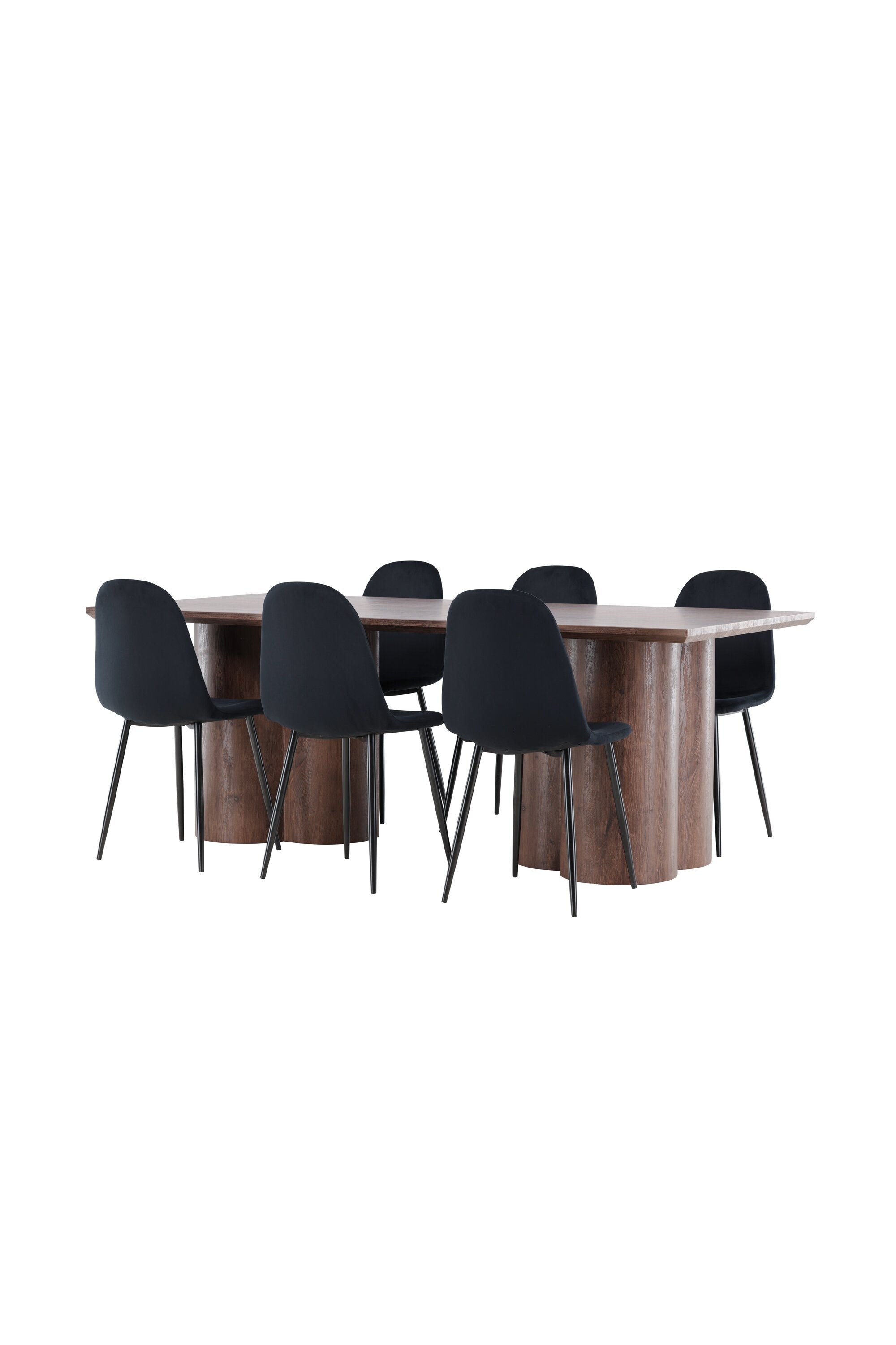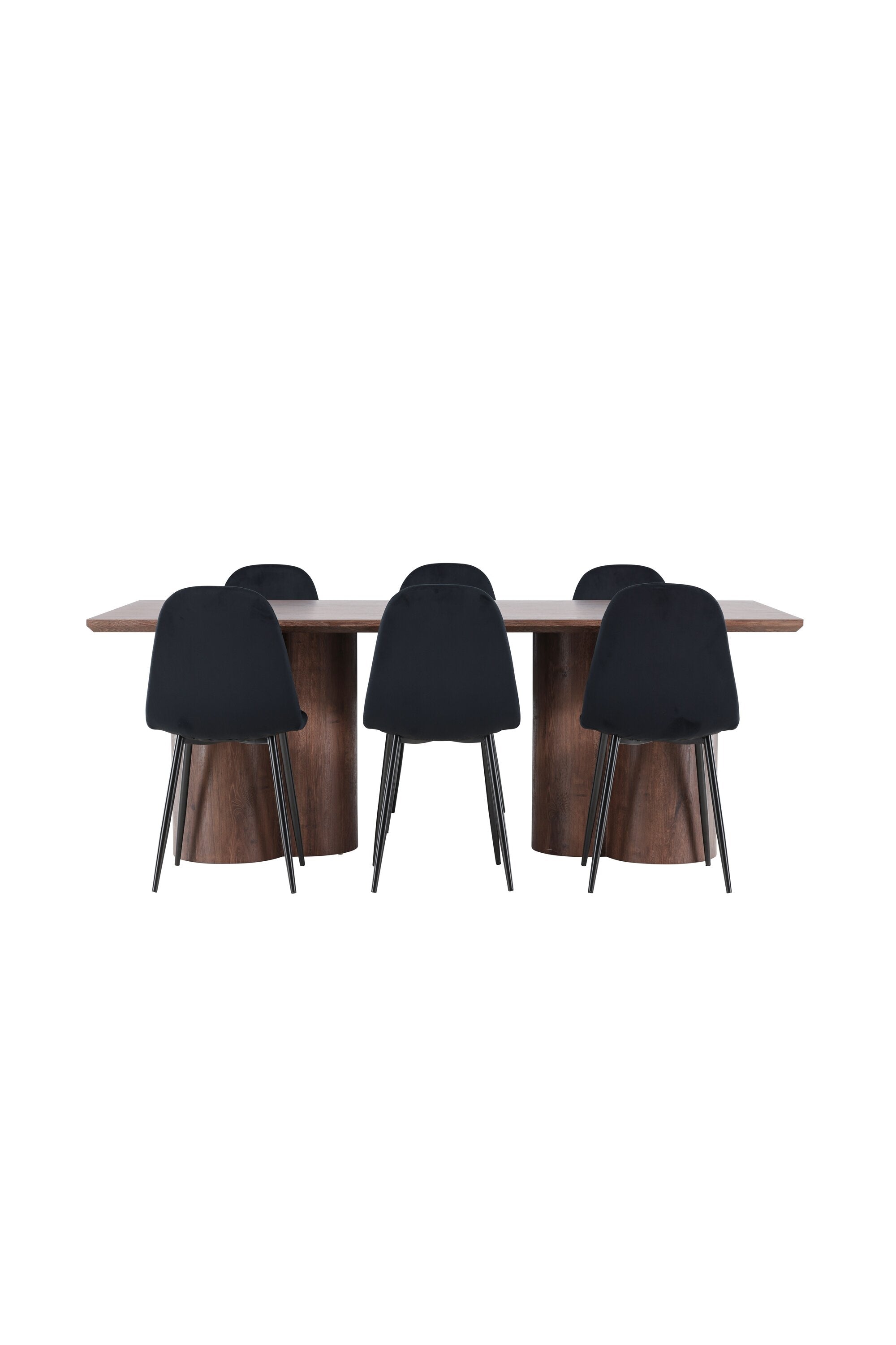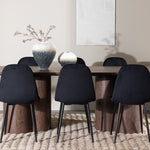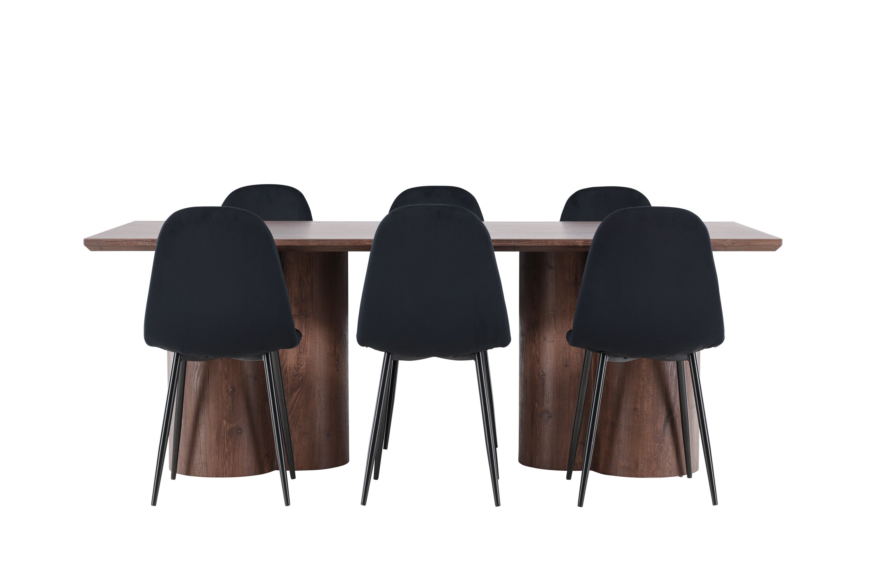 Objevte jídelní skupinu Polar – dokonalou kombinaci stylu a pohodlí pro váš domov. Jídelní židle Polar má konzistentní černou barvu a moderní design, díky kterému je pohodlná a poutavá. Židle je celá potažena černou sametovou látkou s měkkým polstrováním a má nohy z kovu s černým práškovým nástřikem. Díky zaobleným opěradlům a sedadlu nabízí pohodlné sezení bez kompromisů v designu. Doplňte jídelní židle jídelním stolem Olivia pro kompletní jídelní set. Jídelní stůl Olivia je harmonickým spojením stylu a funkčnosti. Stůl s velkorysými rozměry 100x210 cm nabízí dostatek prostoru pro shromáždění blízkých na večeře a společenské akce. Olivia je vyrobena z MDF materiálu s povrchem v semišové barvě a vytváří ve vašem domově teplou a příjemnou atmosféru. Jeho neutrální design se dobře hodí k různým stylům interiéru a vytváří klidný a přívětivý pocit. Jídelní skupina Polar and Olivia je víc než jen nábytek – jsou to místa, na která se s přáteli a rodinou vzpomíná. Nechte tuto jídelní skupinu, aby se stala centrem pro vaše setkání a vytvořte společně teplé a nezapomenutelné chvíle.
