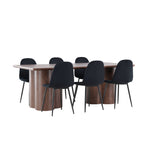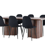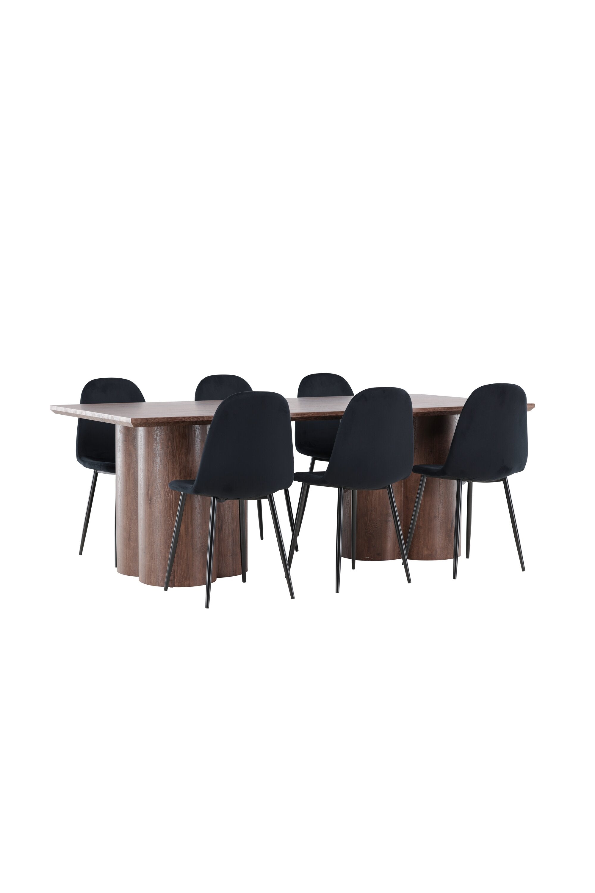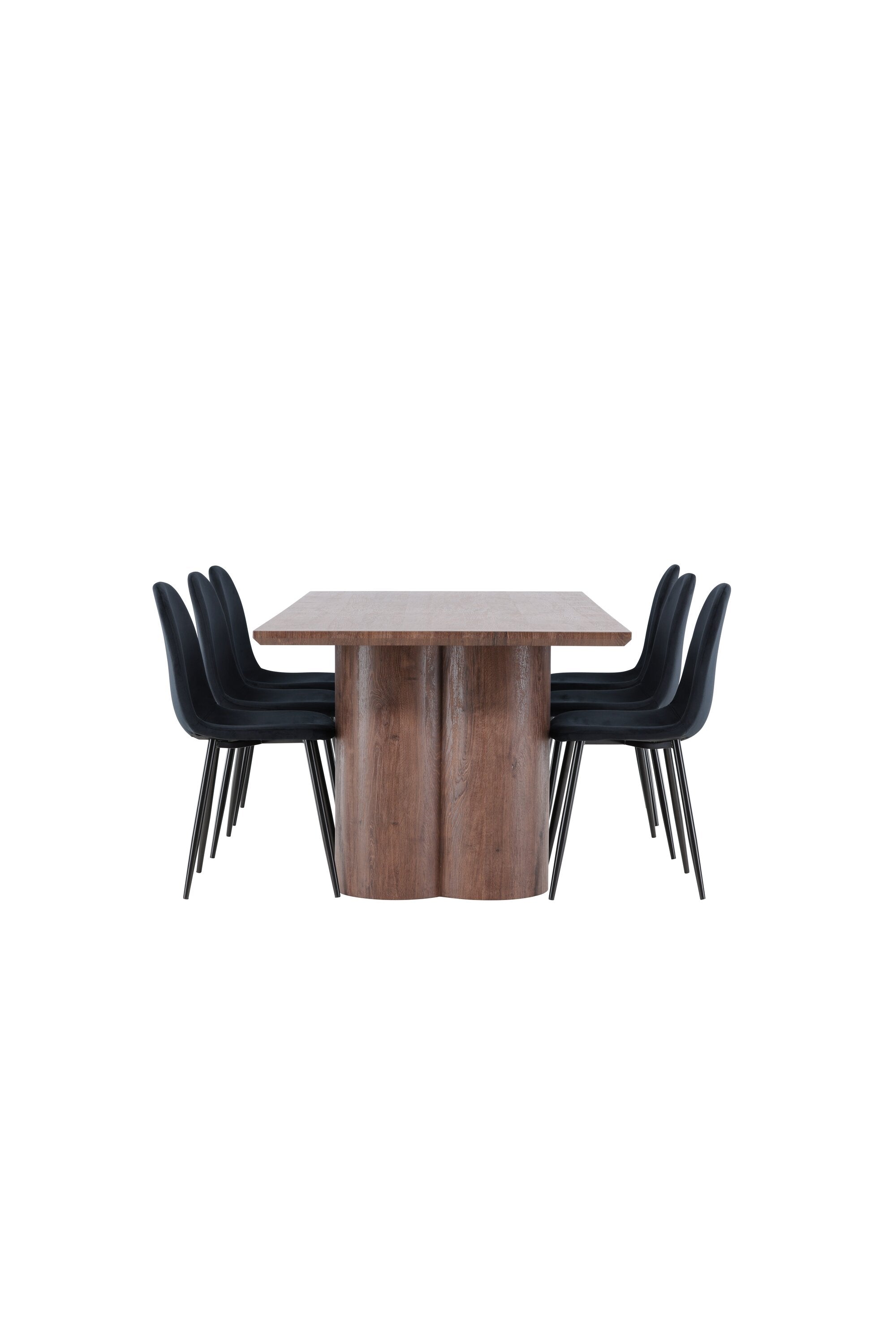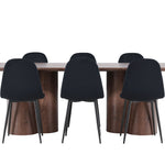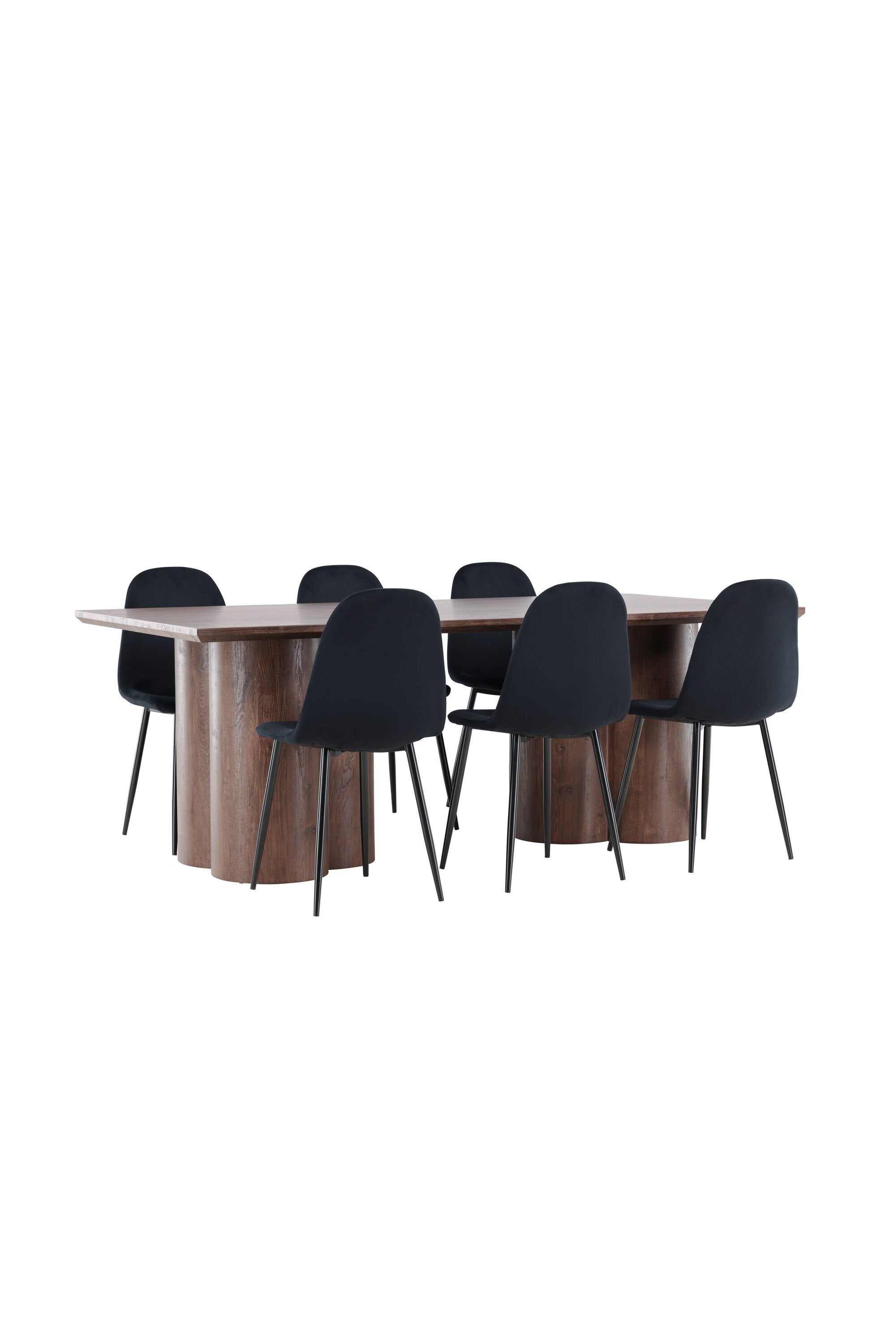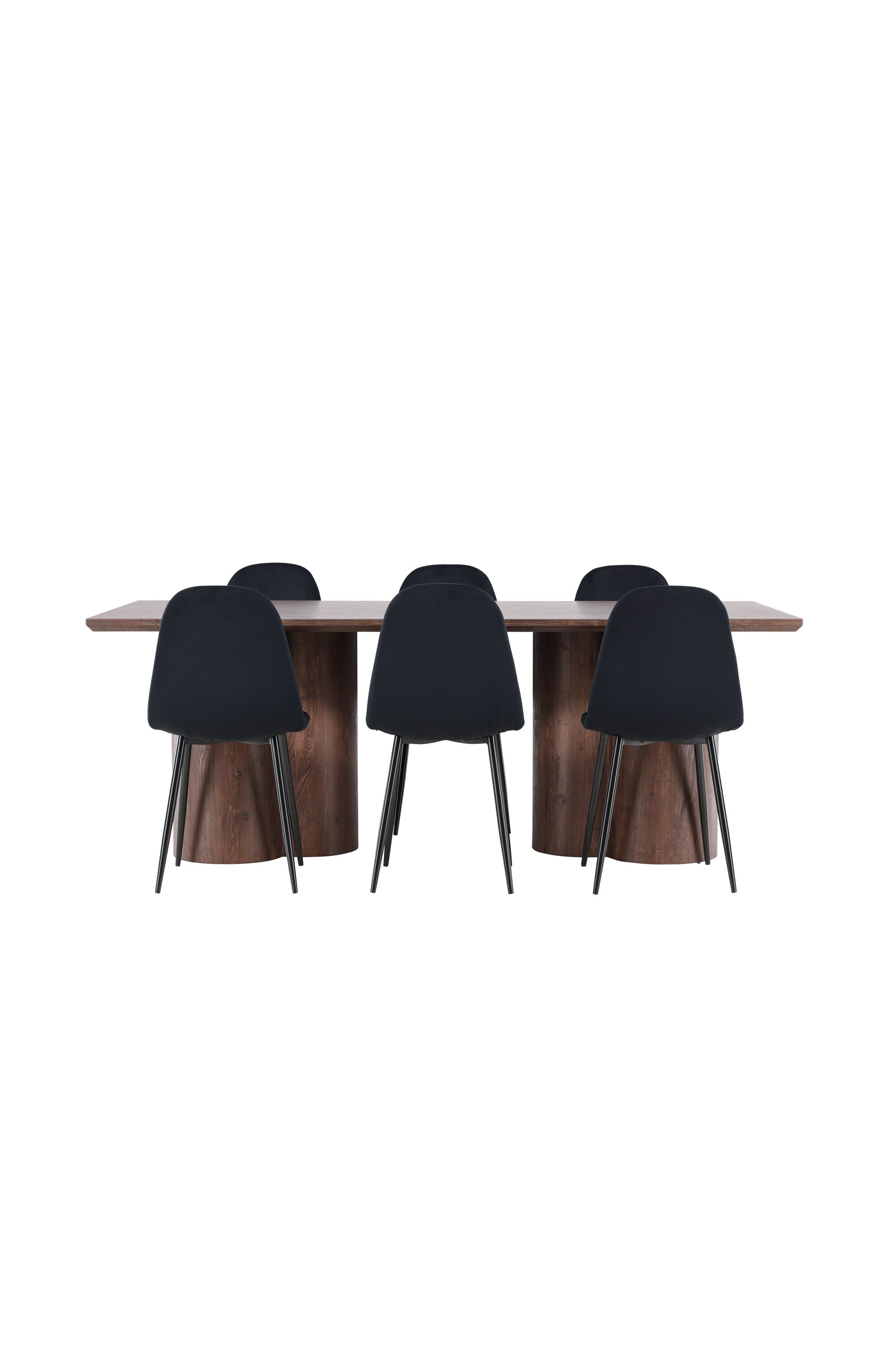 Objevte jídelní skupinu Polar – dokonalou kombinaci stylu a pohodlí pro váš domov. Jídelní židle Polar má konzistentní černou barvu a moderní design, díky kterému je pohodlná a poutavá. Židle je celá potažena černou sametovou látkou s měkkým polstrováním a má nohy z kovu s černým práškovým nástřikem. Díky zaobleným opěradlům a sedadlu nabízí pohodlné sezení bez kompromisů v designu. Doplňte jídelní židle jídelním stolem Olivia pro kompletní jídelní set. Jídelní stůl Olivia je harmonickým spojením stylu a funkčnosti. Stůl s velkorysými rozměry 100x210 cm nabízí dostatek prostoru pro shromáždění blízkých na večeře a společenské akce. Olivia je vyrobena z MDF materiálu s povrchem v semišové barvě a vytváří ve vašem domově teplou a příjemnou atmosféru. Jeho neutrální design se dobře hodí k různým stylům interiéru a vytváří klidný a přívětivý pocit. Jídelní skupina Polar and Olivia je víc než jen nábytek – jsou to místa, na která se s přáteli a rodinou vzpomíná. Nechte tuto jídelní skupinu, aby se stala centrem pro vaše setkání a vytvořte společně teplé a nezapomenutelné chvíle.