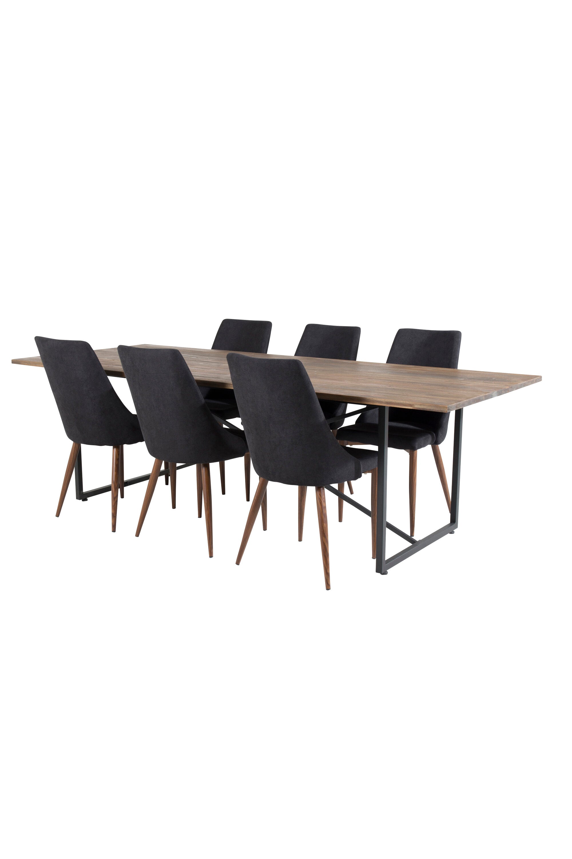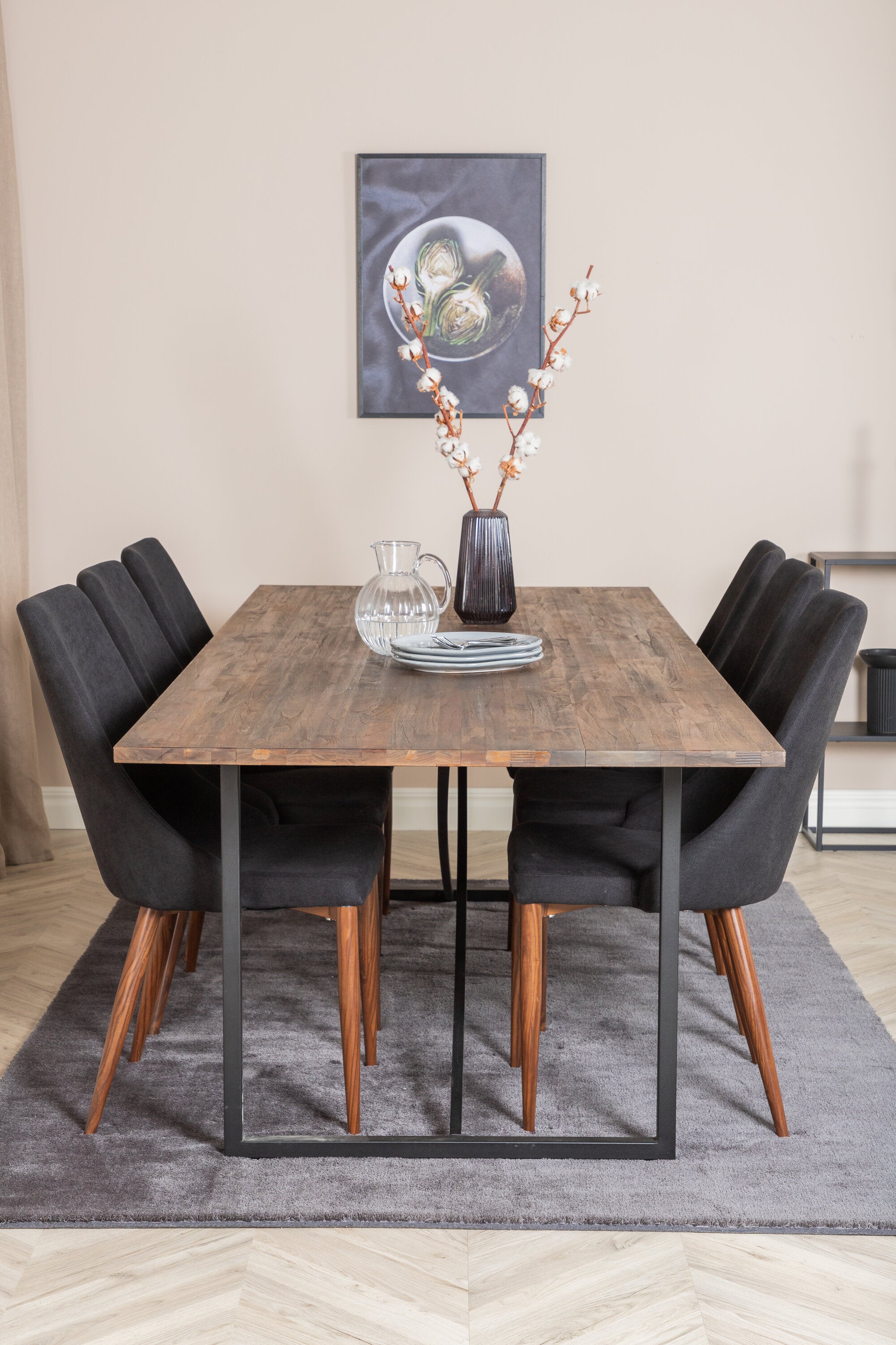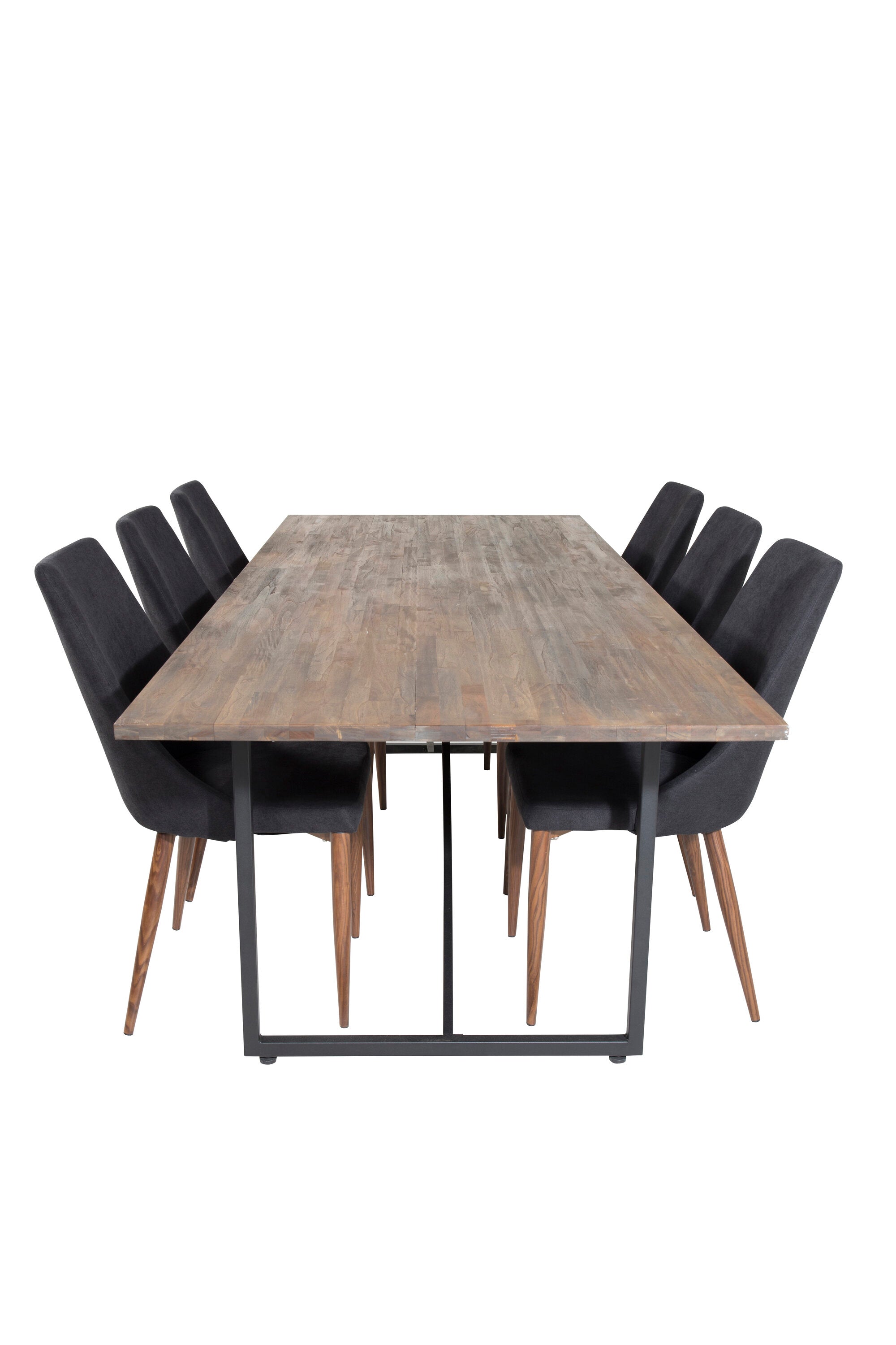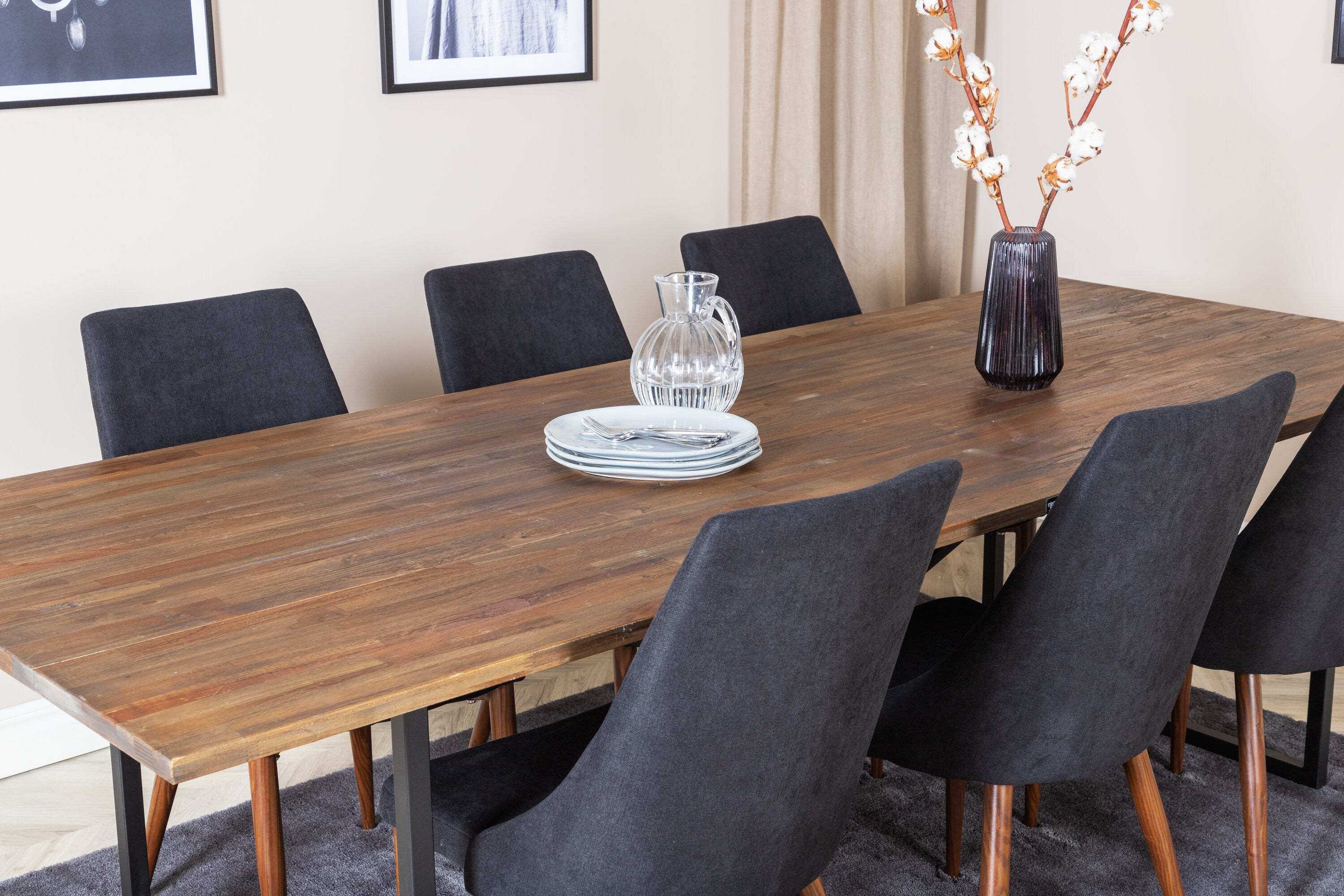 Jídelní stůl Padang - 250*100*H76 - Tmavý teak / Černá+Leone Jídelní židle - Ořechové nohy - Černá Fabric_6
