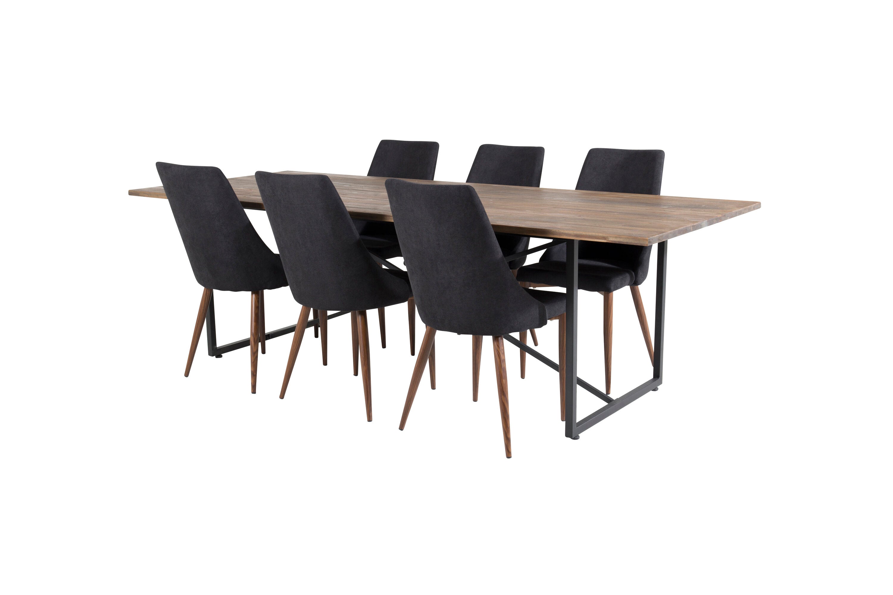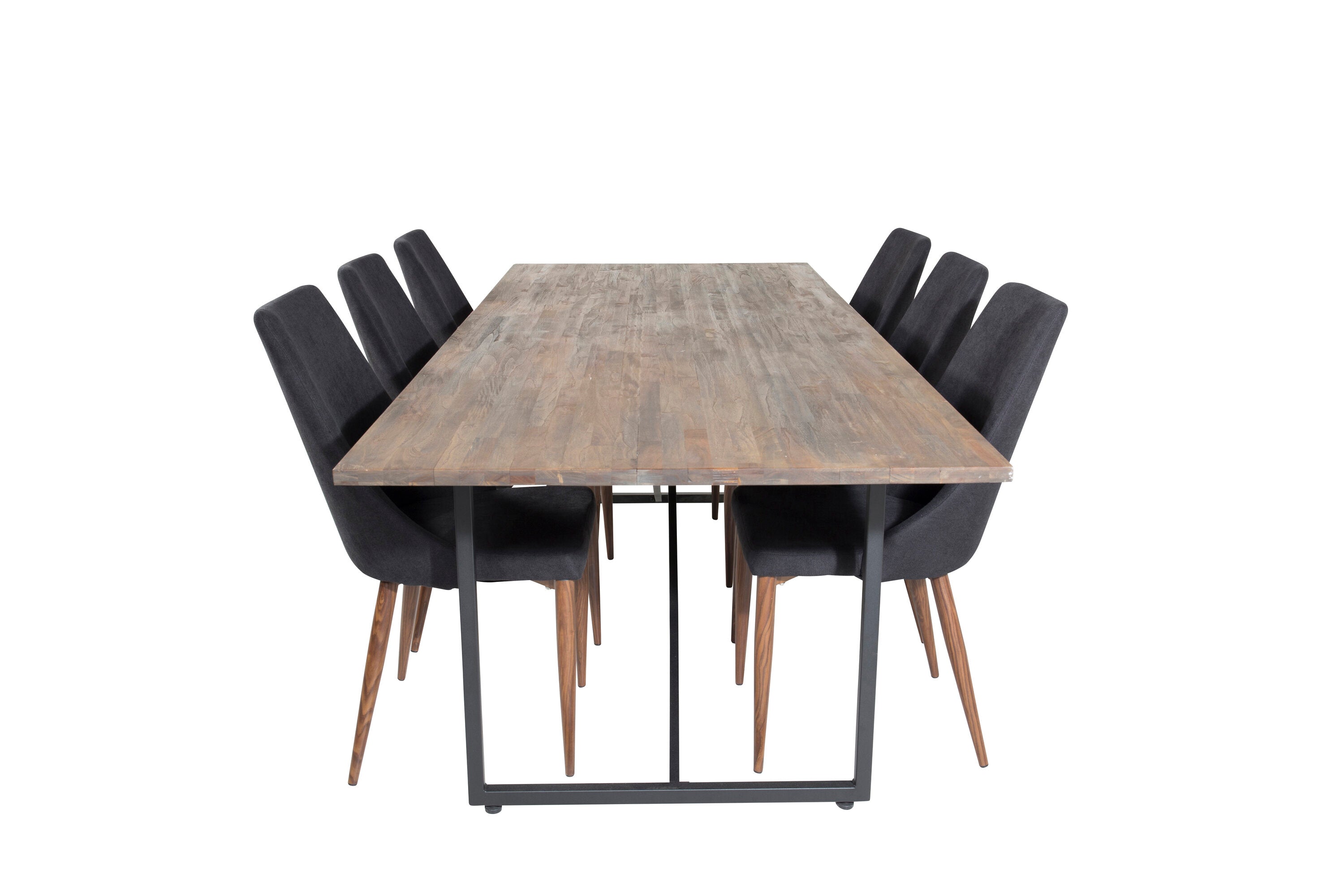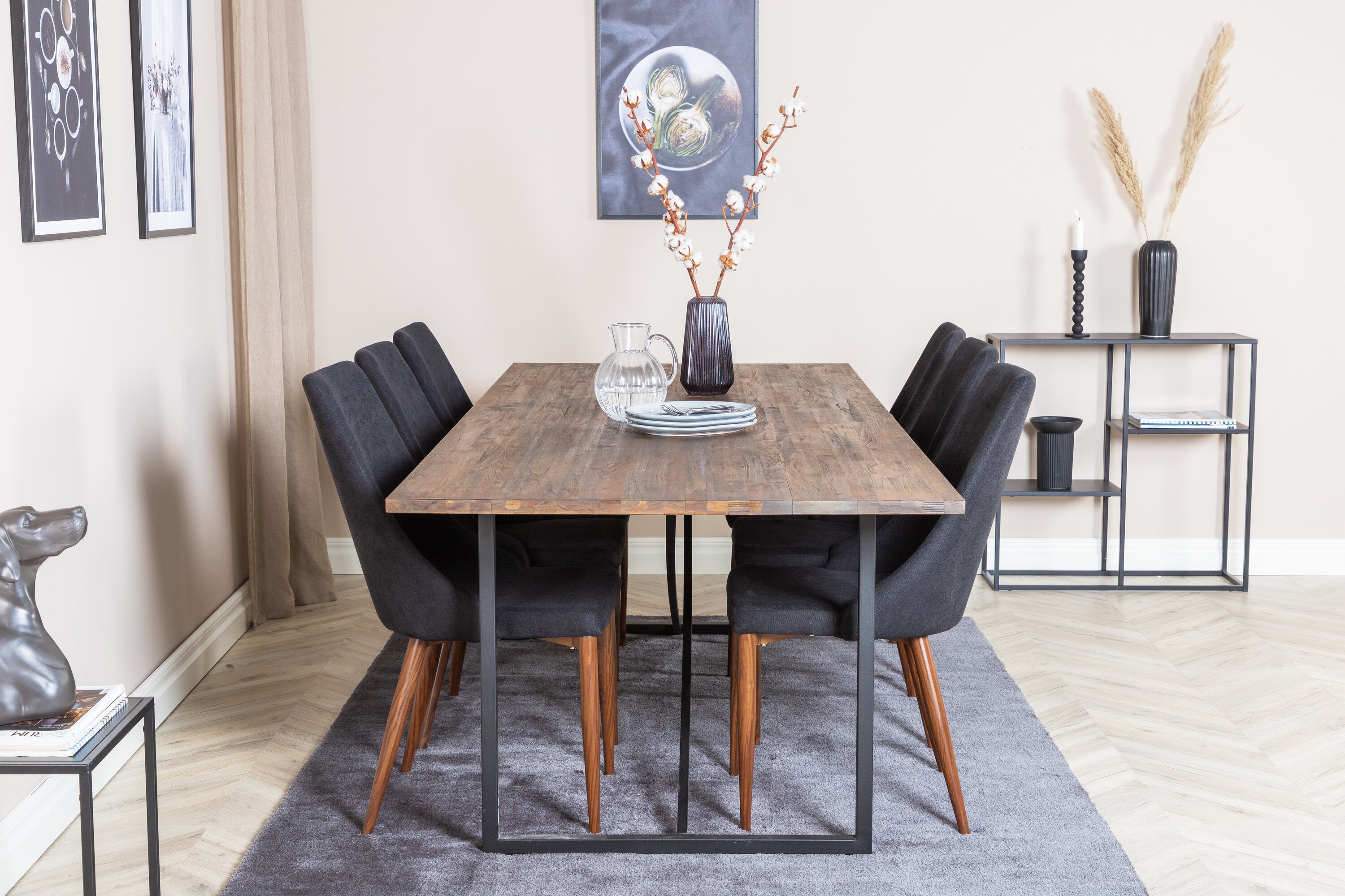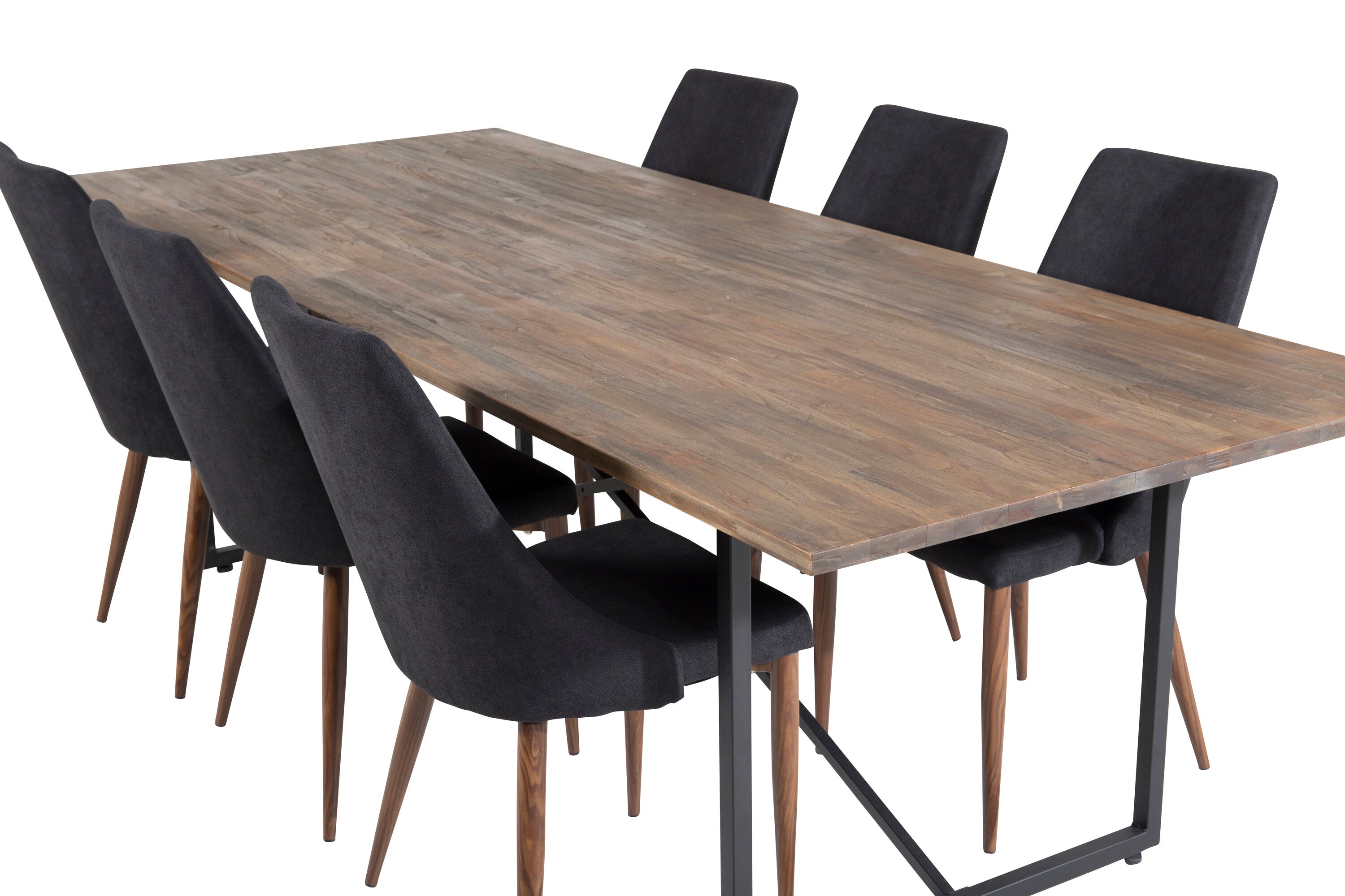Jídelní stůl Padang - 250*100*H76 - Tmavý teak / Černá+Leone Jídelní židle - Ořechové nohy - Černá Fabric_6