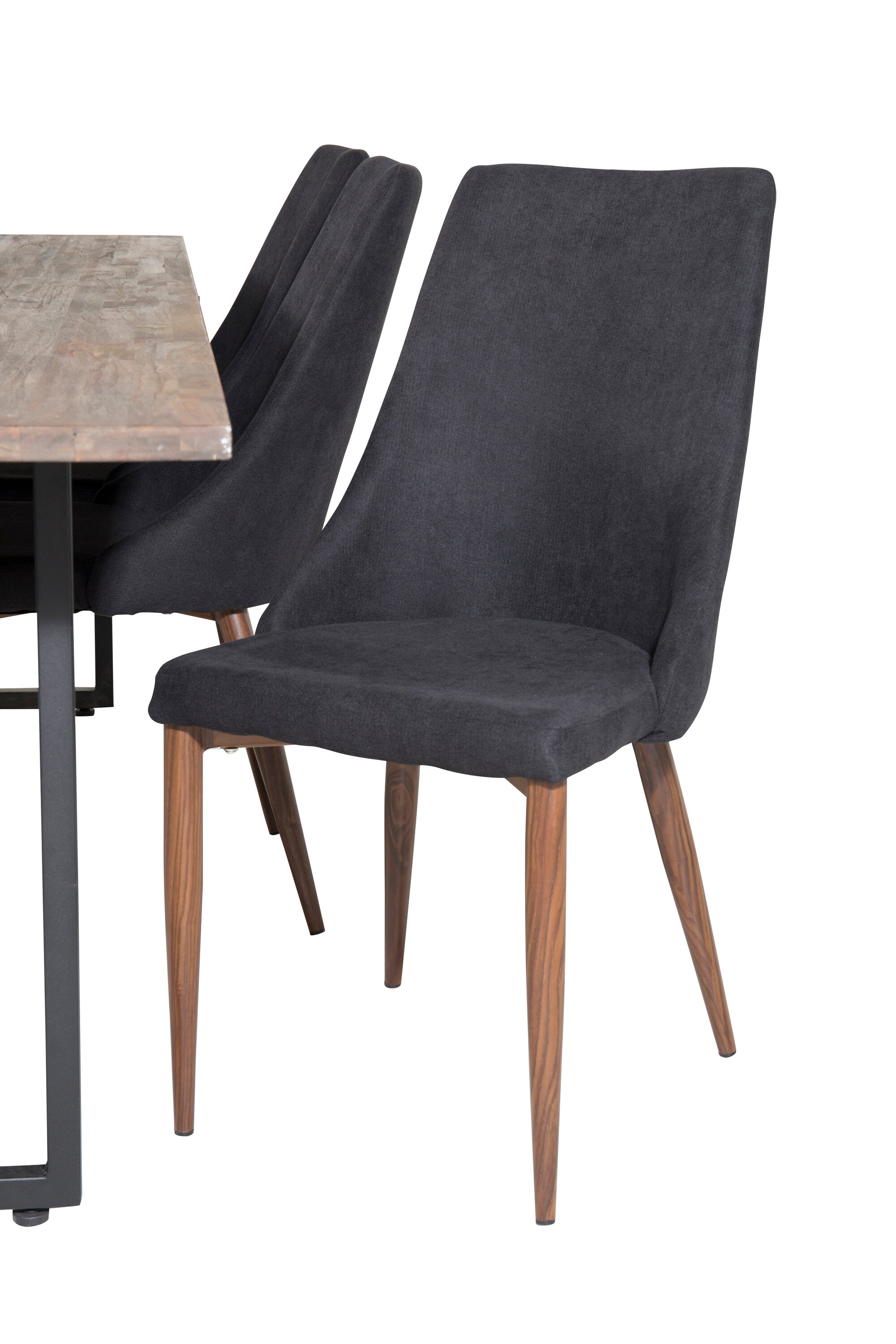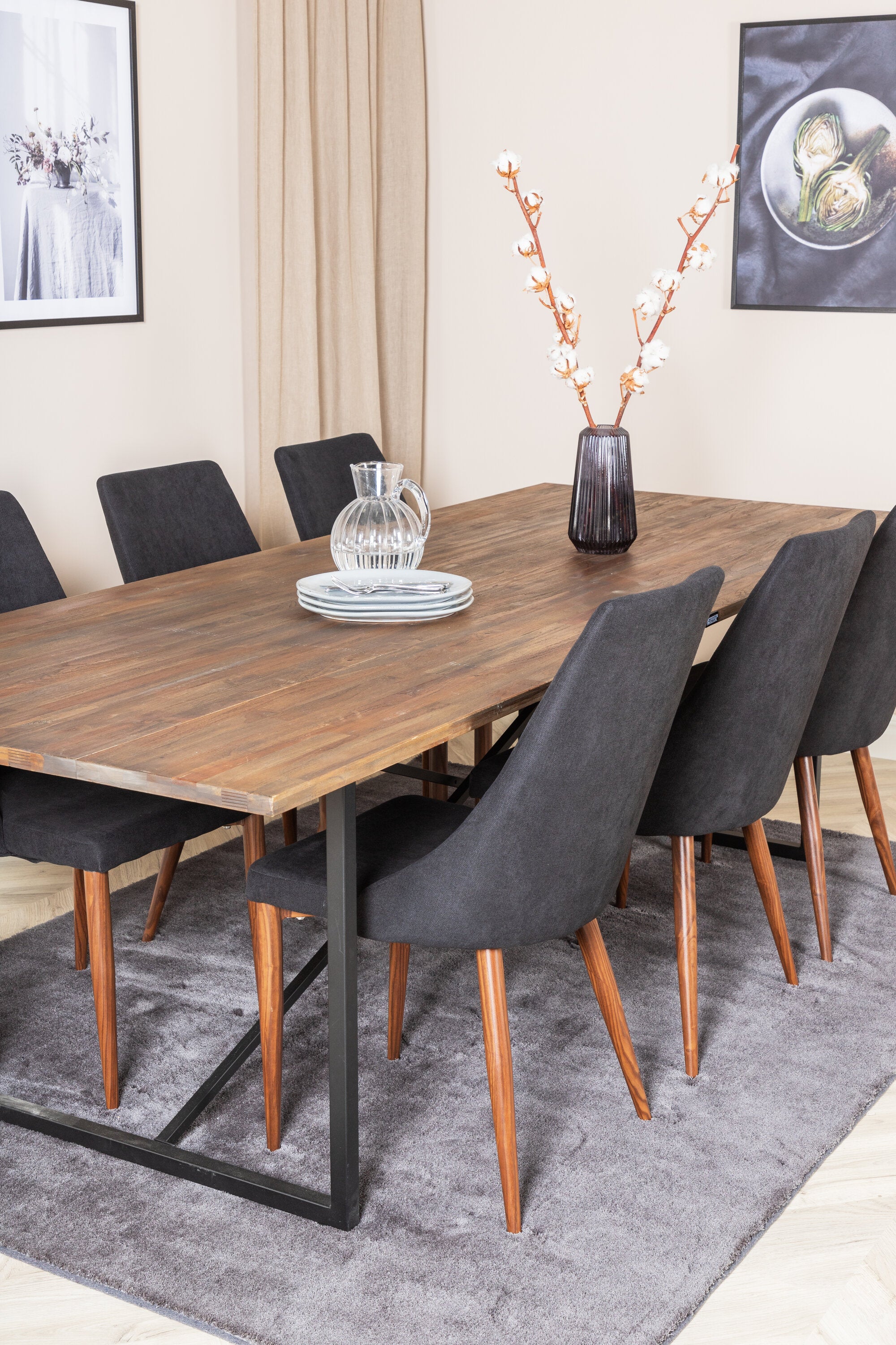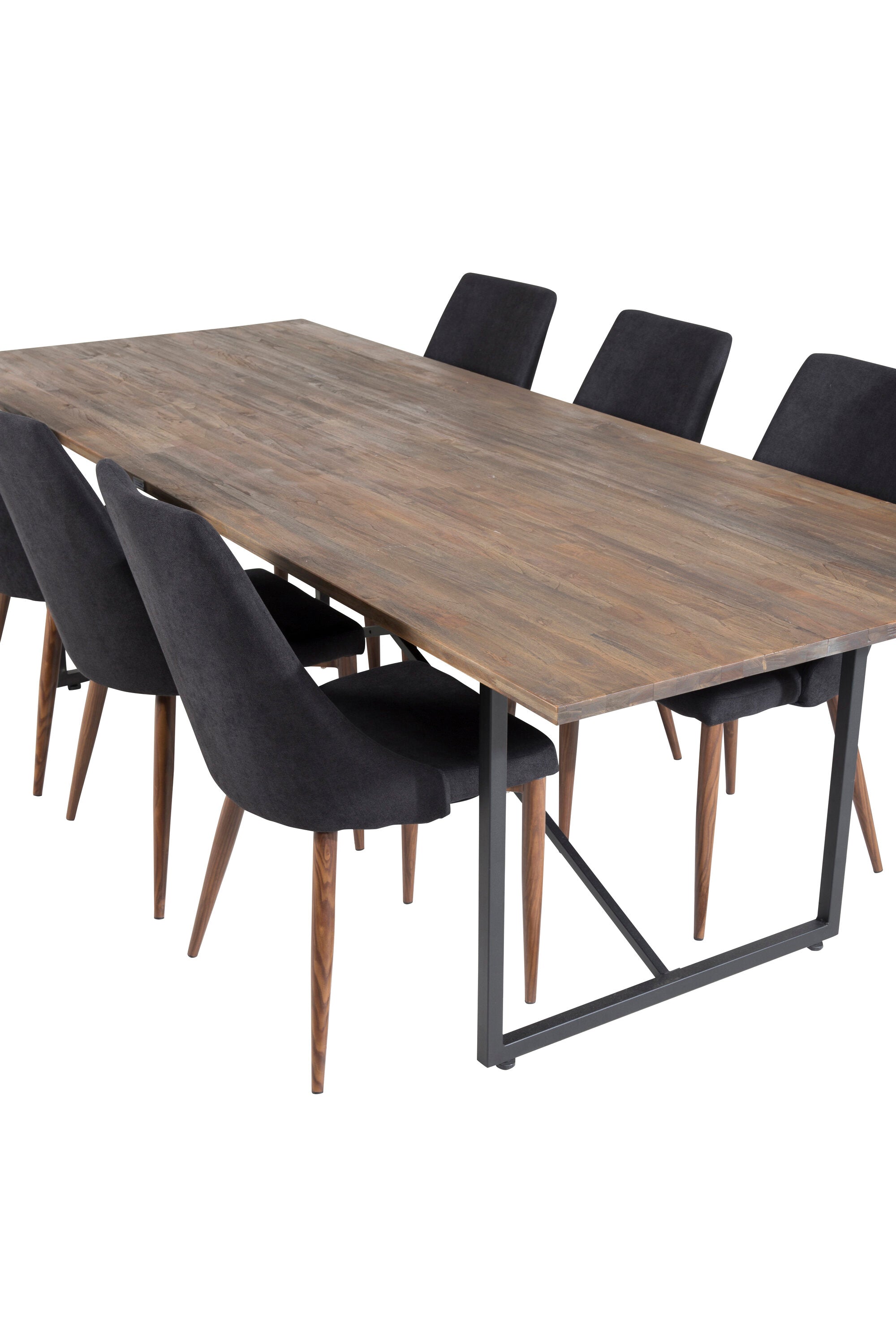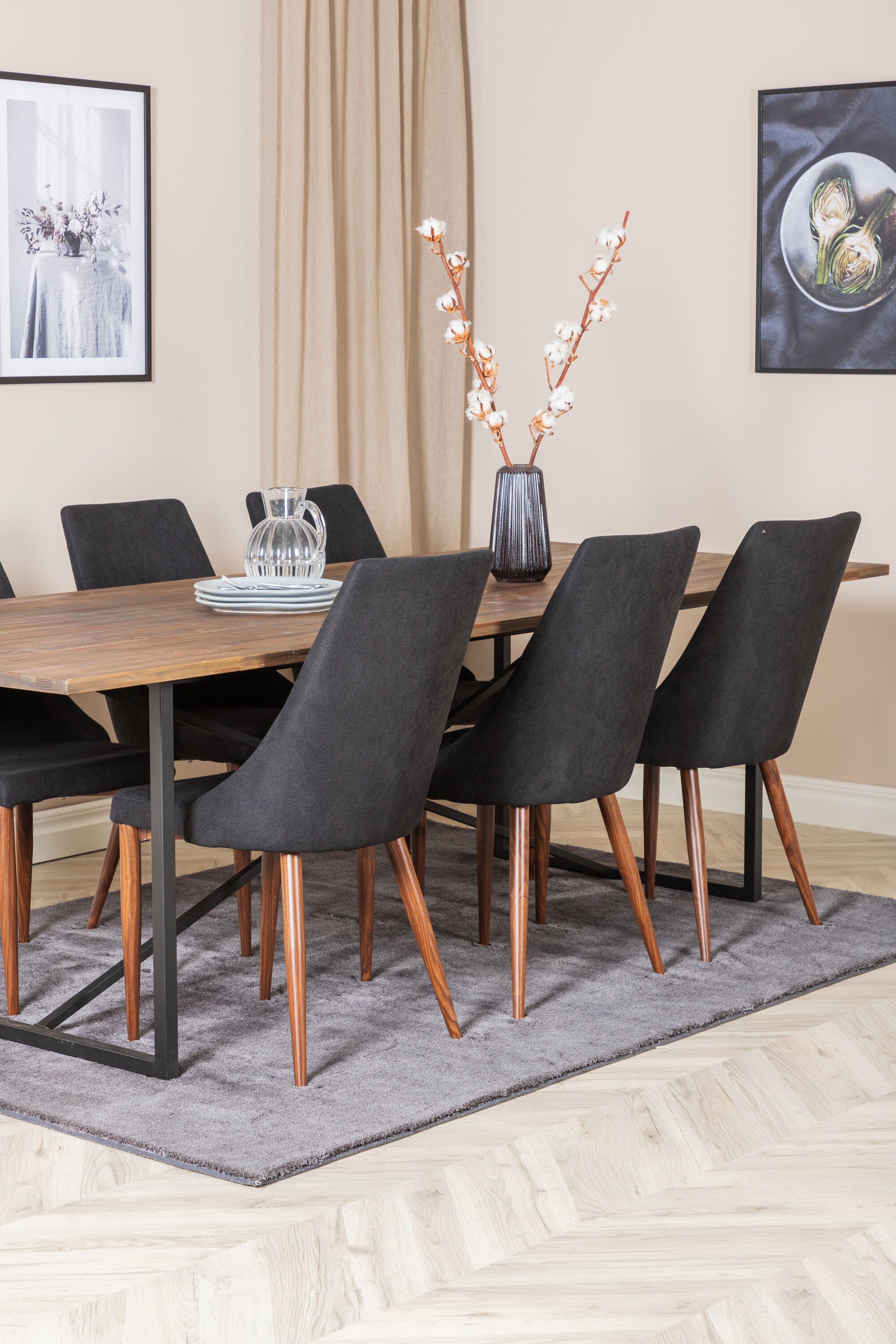 Jídelní stůl Padang - 250*100*H76 - Tmavý teak / Černá+Leone Jídelní židle - Ořechové nohy - Černá Fabric_6