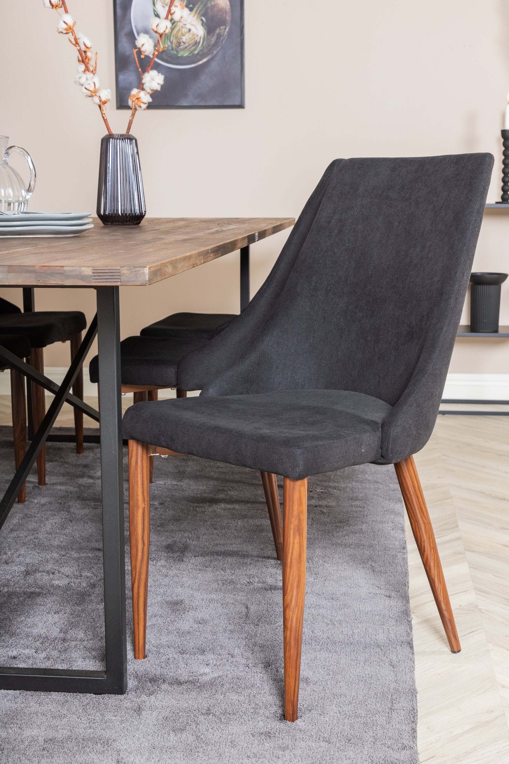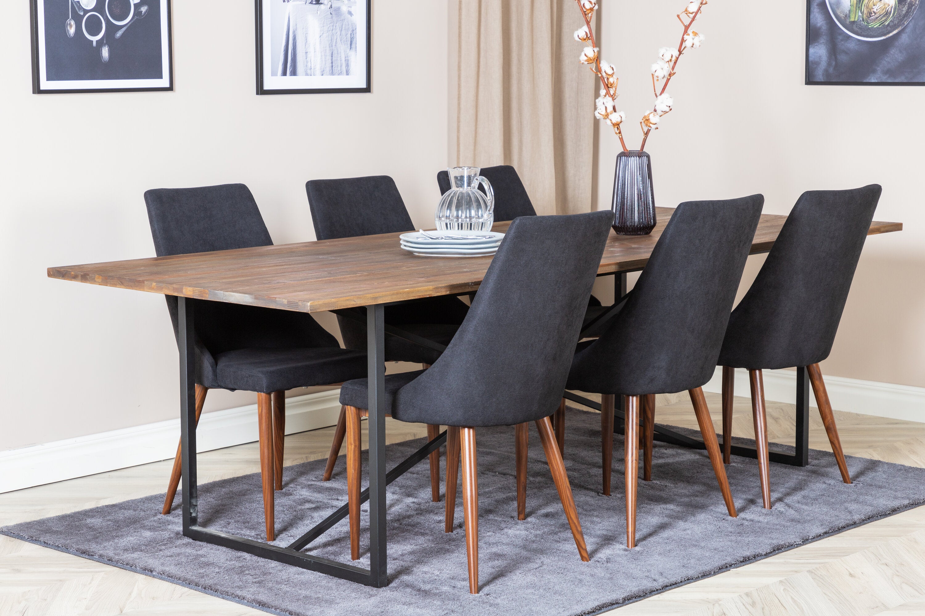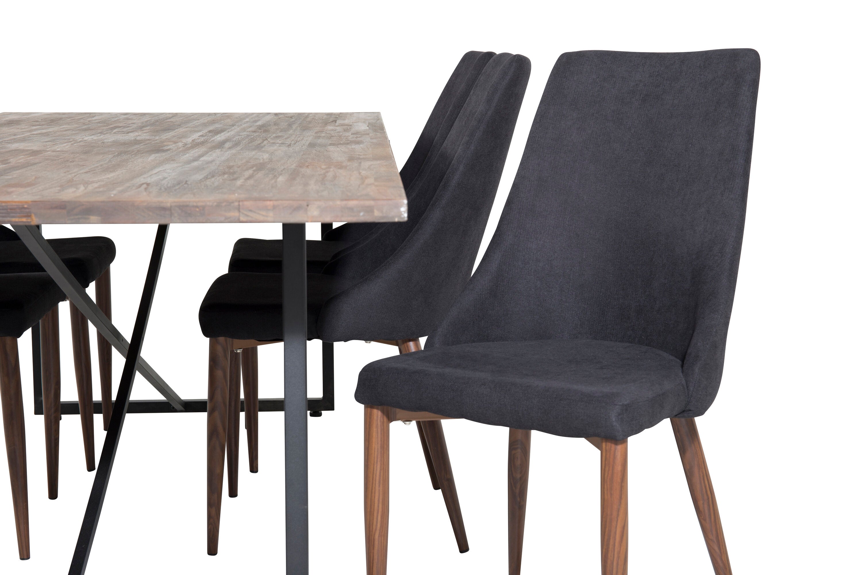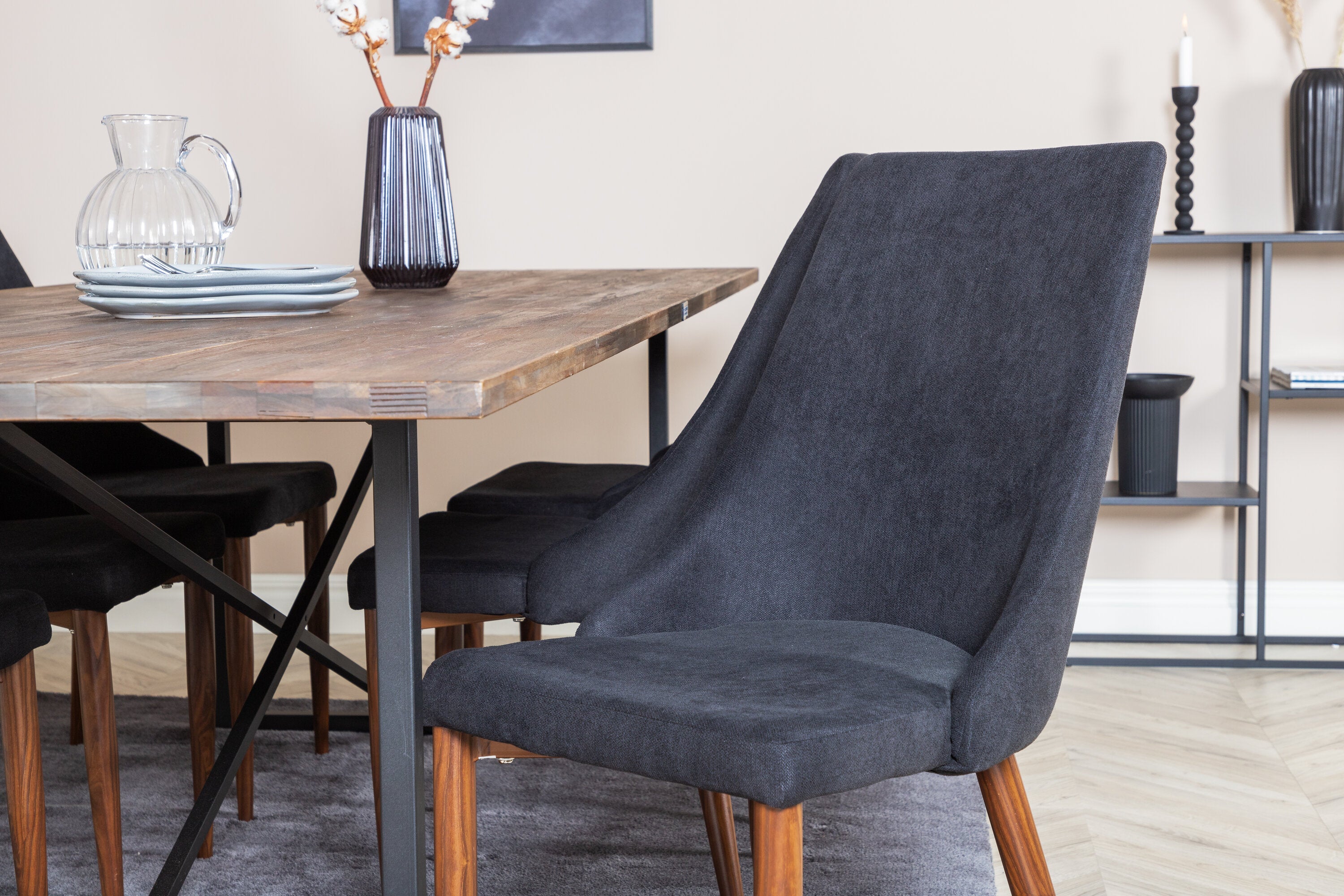 Jídelní stůl Padang - 250*100*H76 - Tmavý teak / Černá+Leone Jídelní židle - Ořechové nohy - Černá Fabric_6