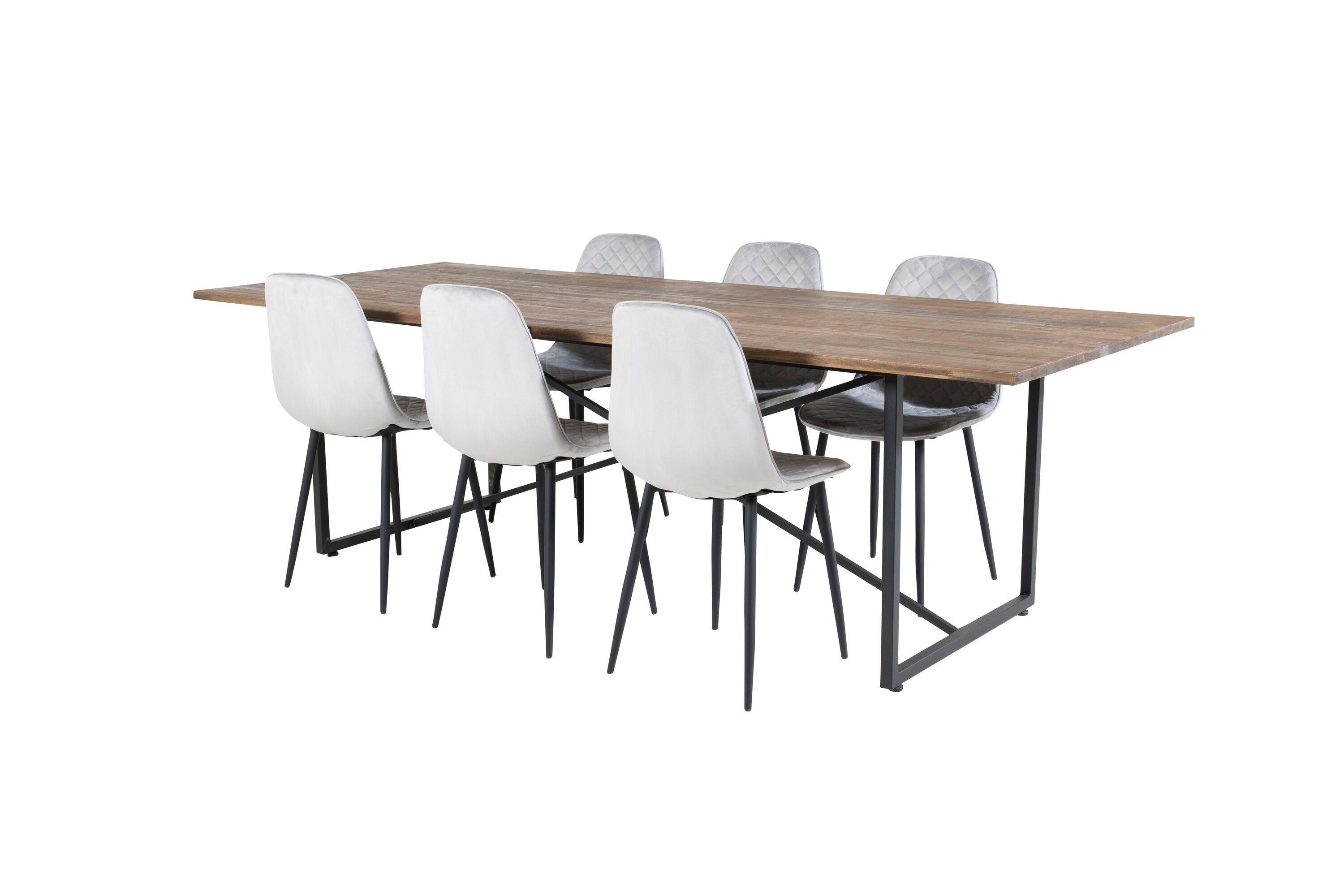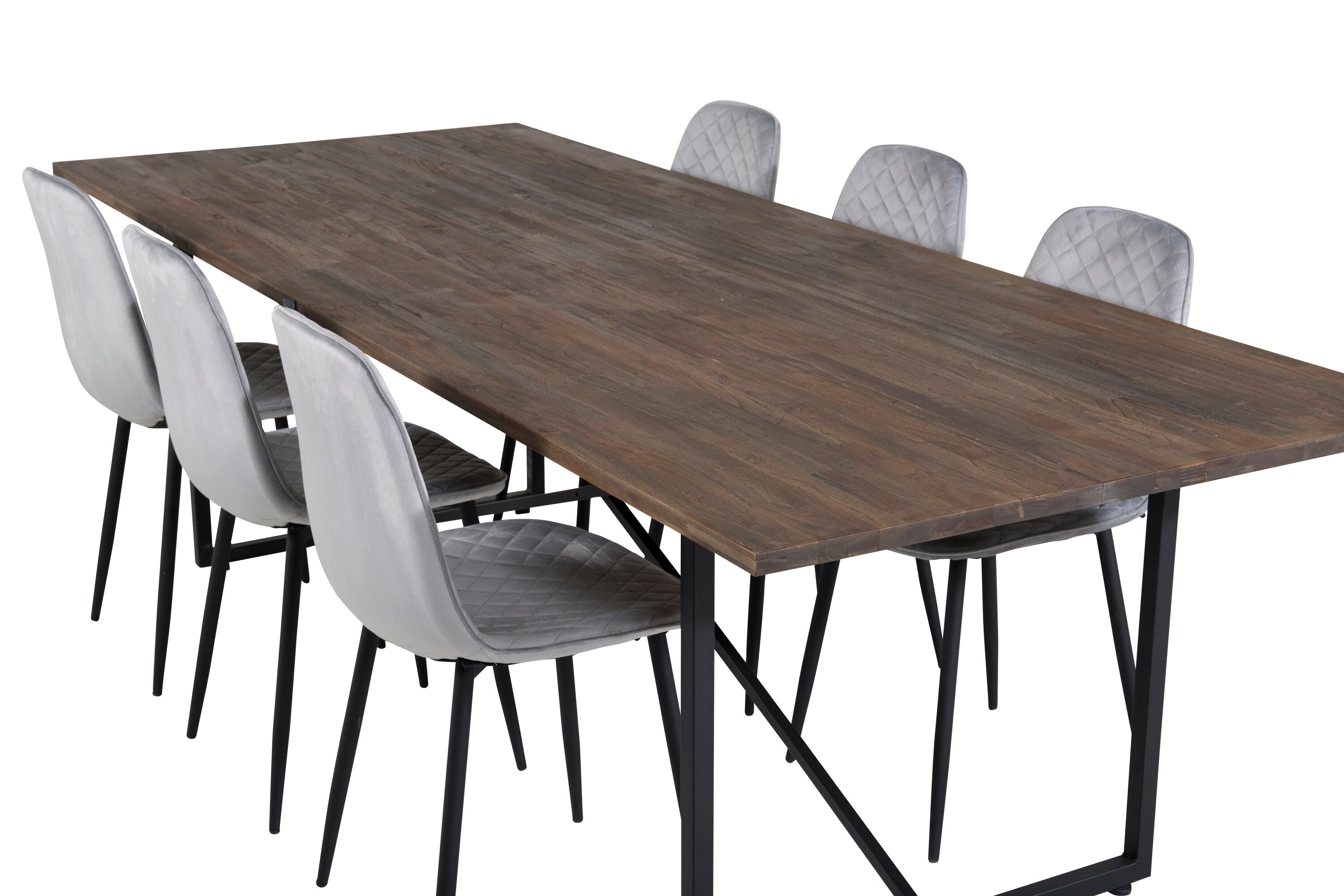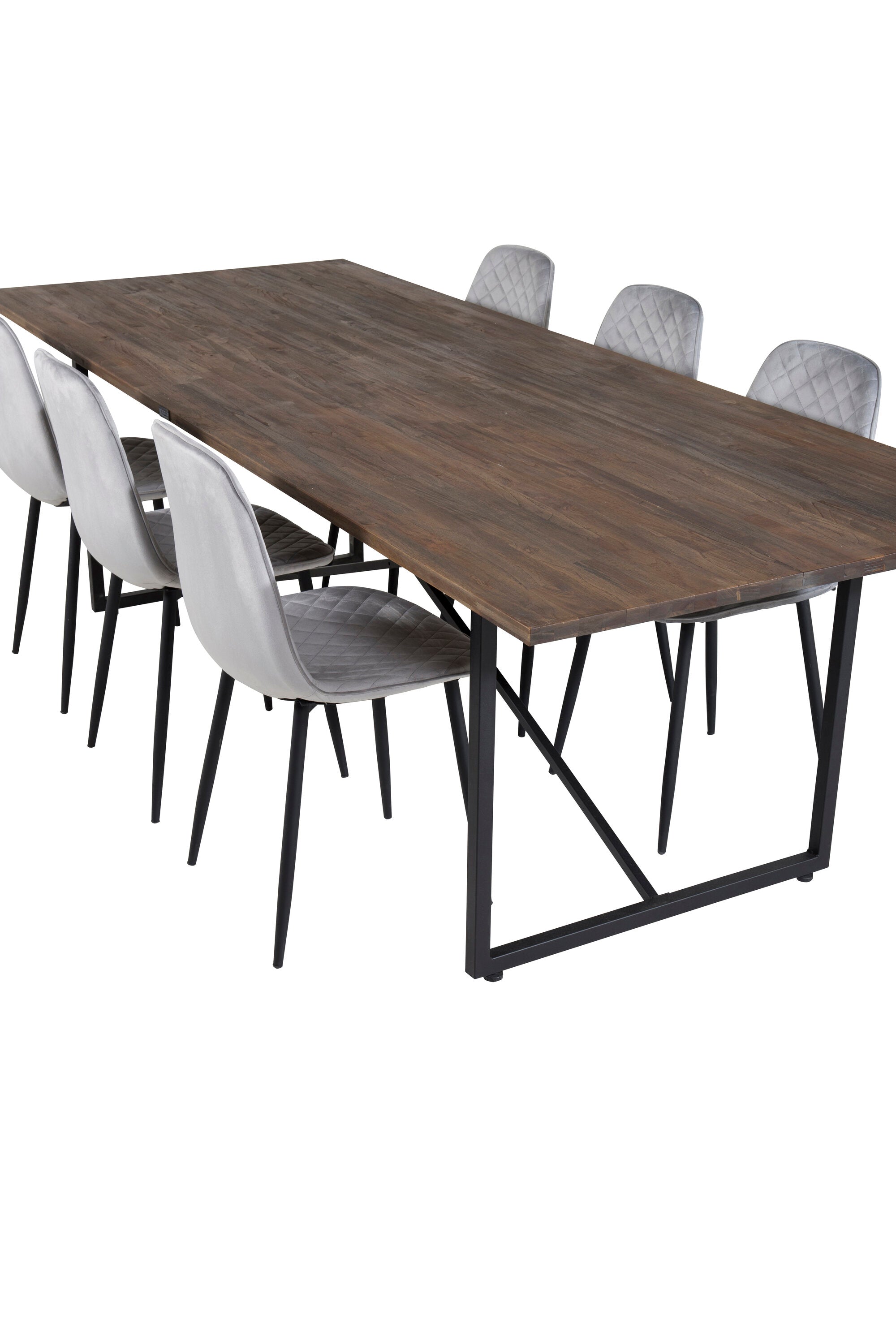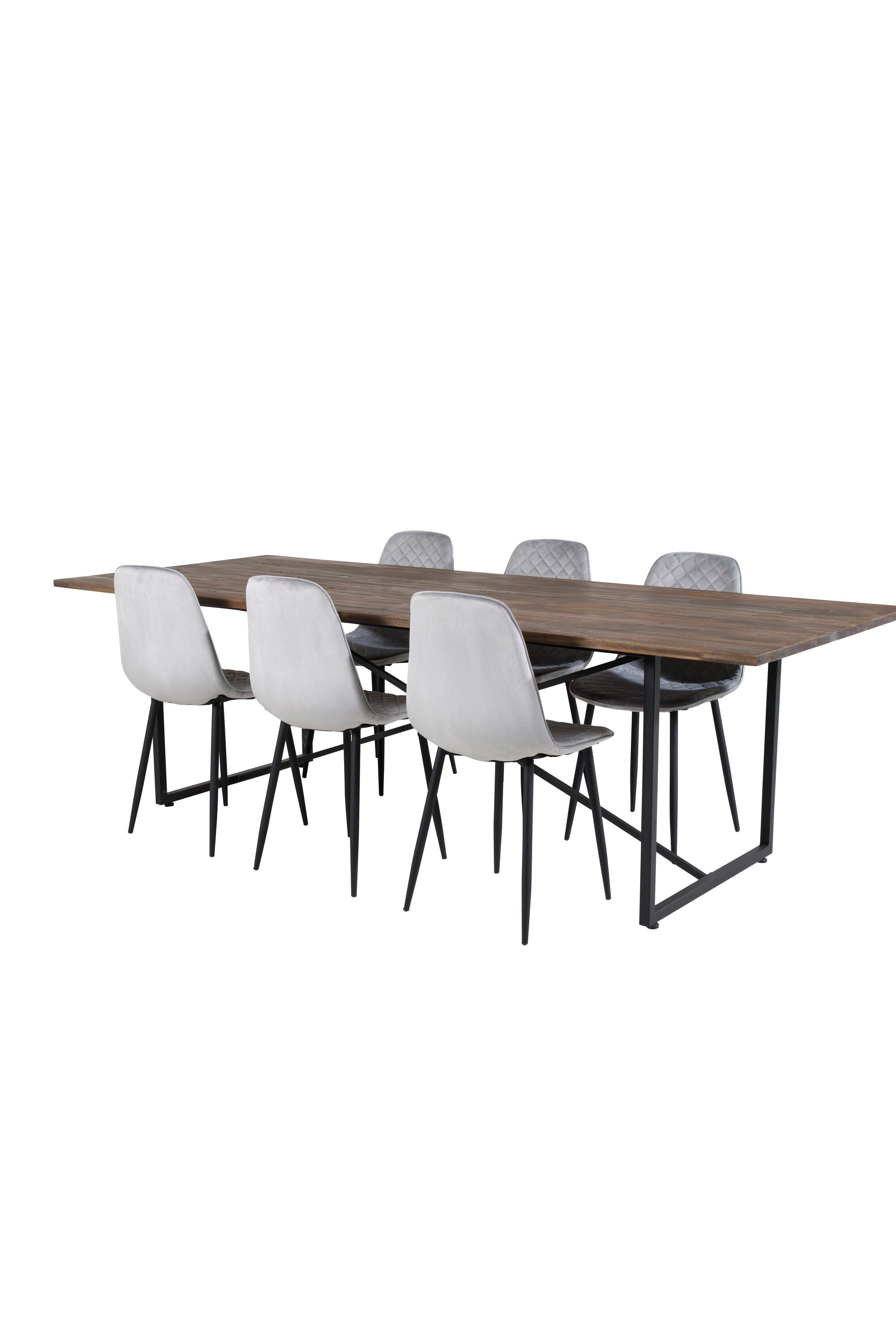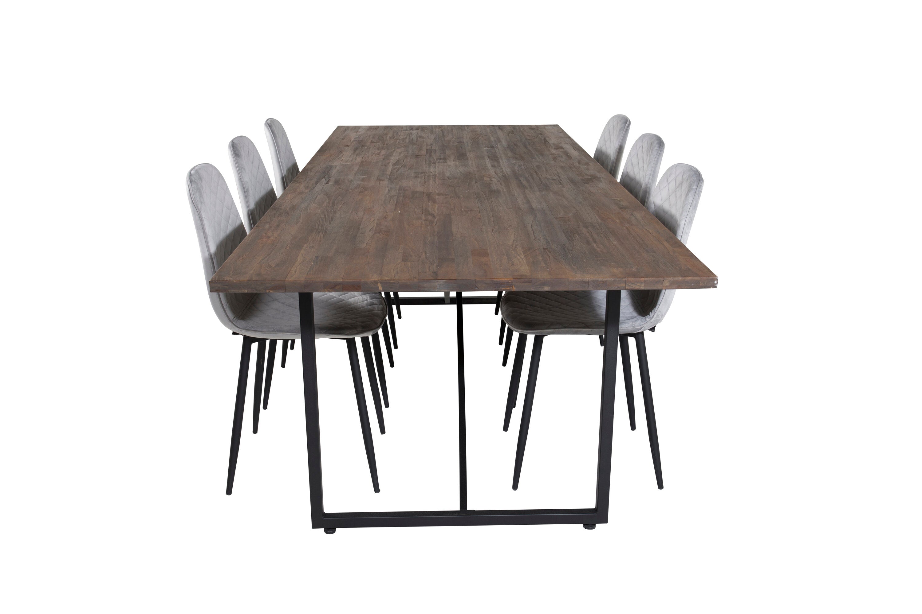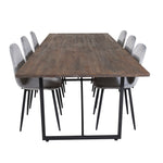 Jídelní stůl Padang - 250*100*H76 - Tmavý teak / Černá+Polar Diamond Jídelní židle - Černé nohy - Šedá Velvet_6
