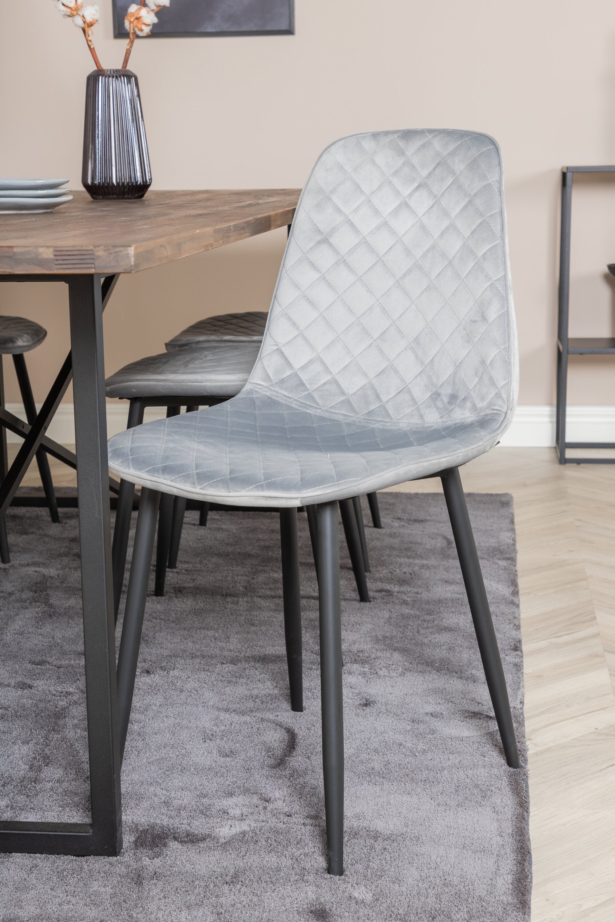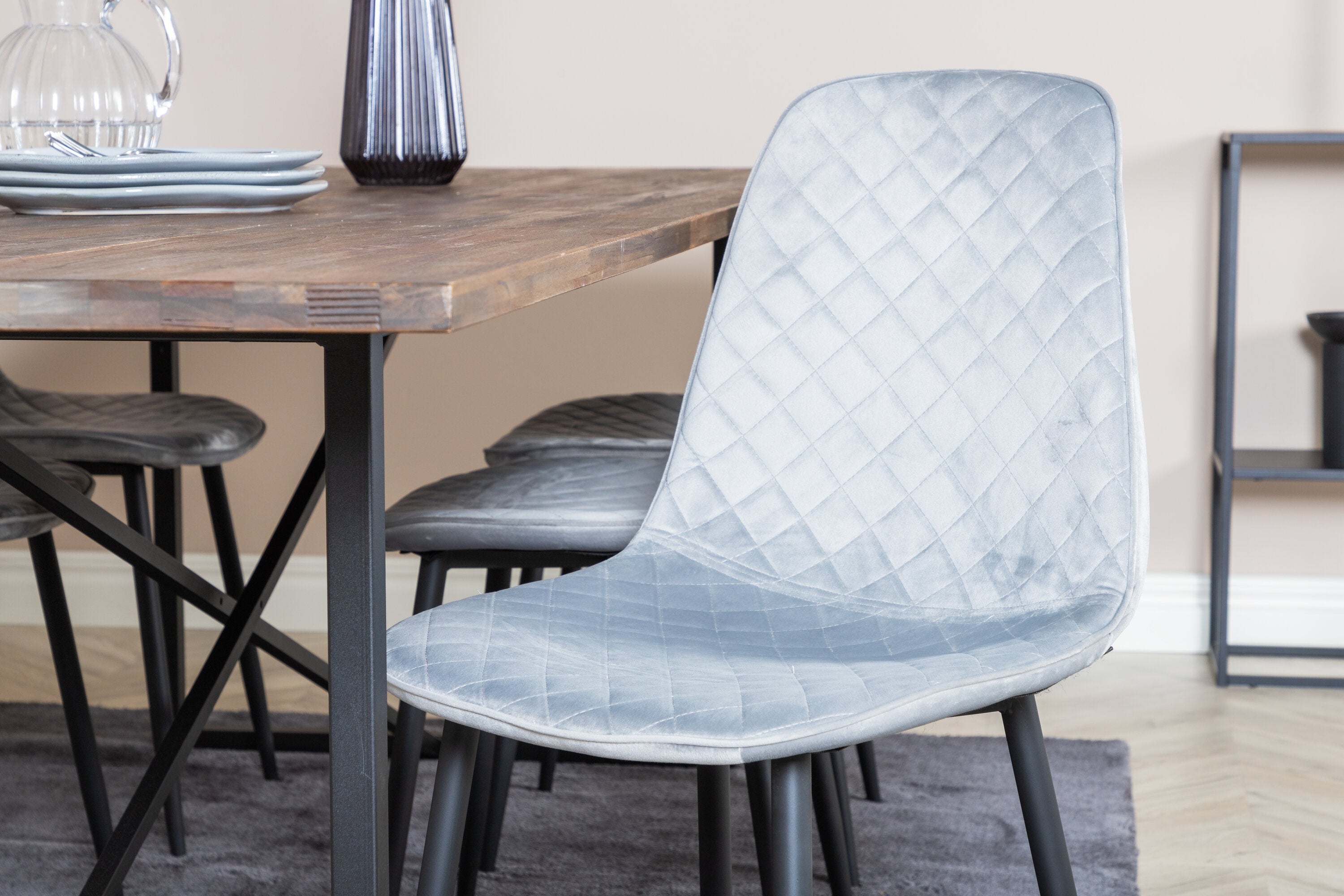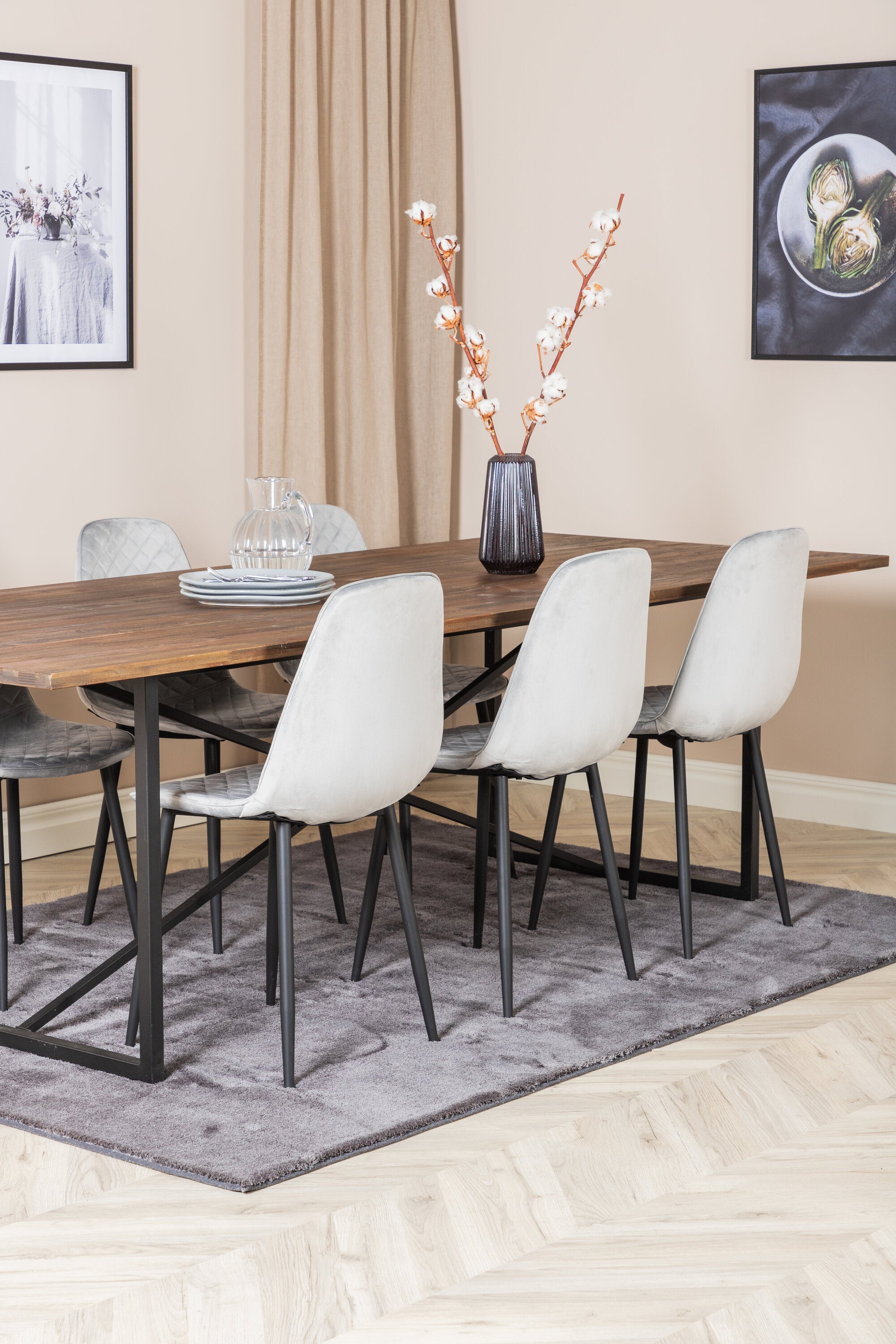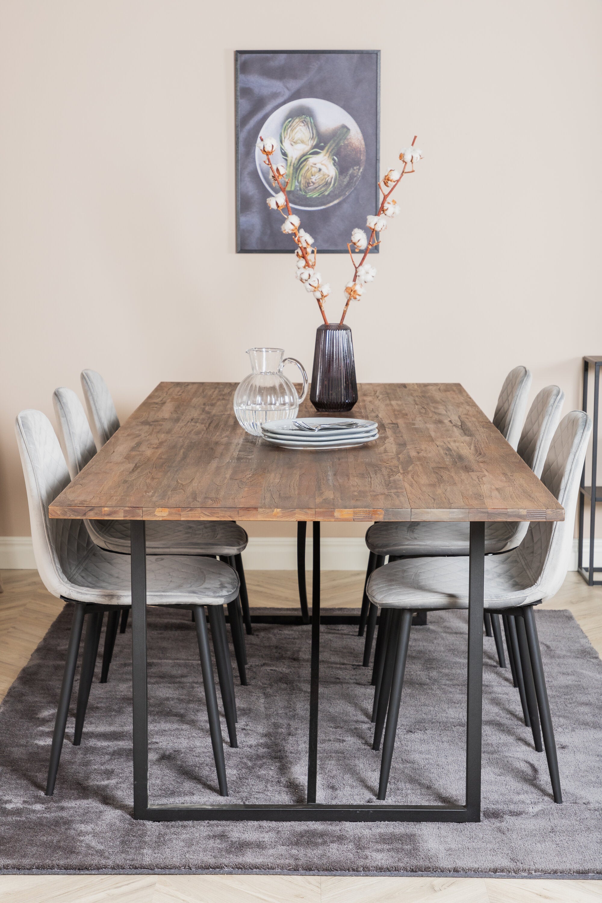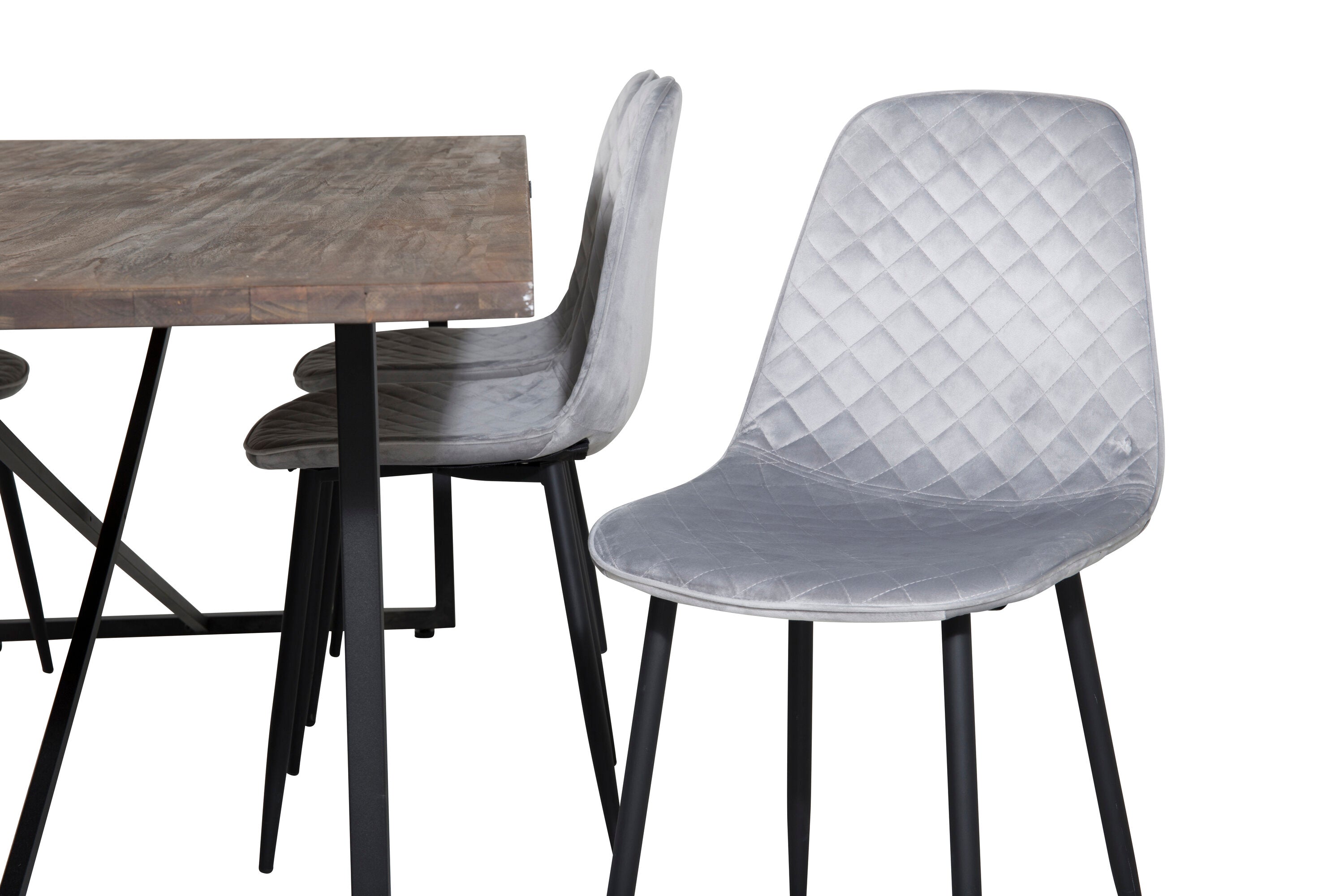 Jídelní stůl Padang - 250*100*H76 - Tmavý teak / Černá+Polar Diamond Jídelní židle - Černé nohy - Šedá Velvet_6