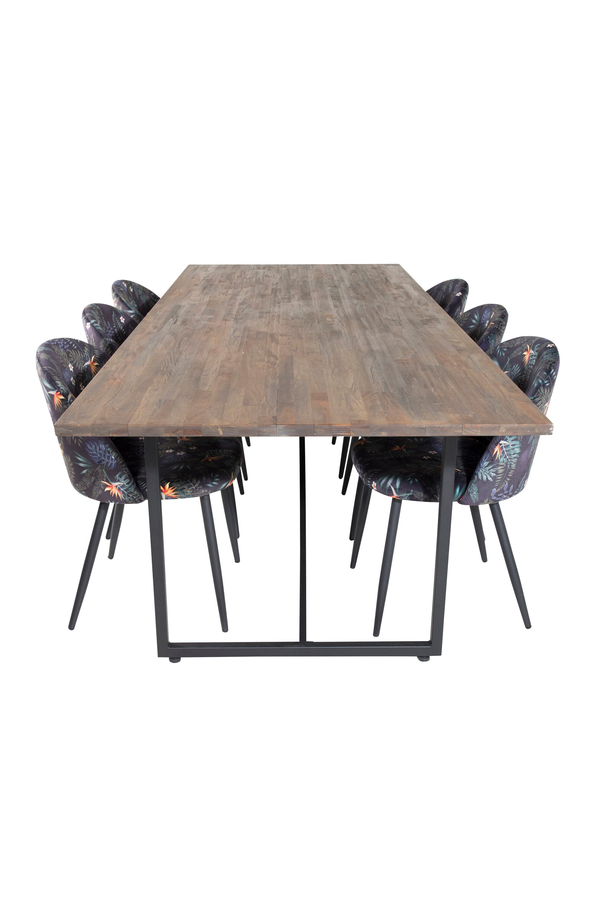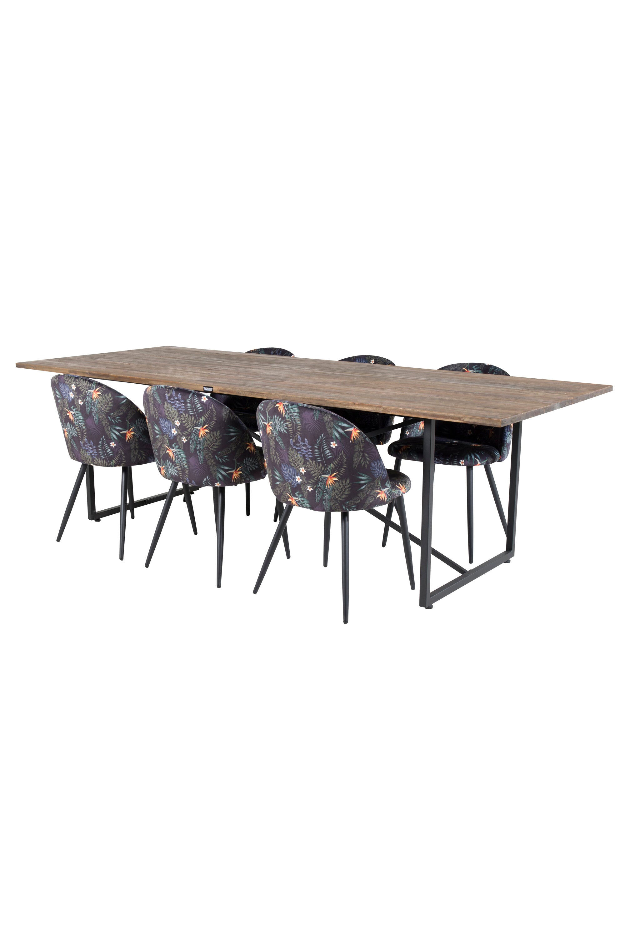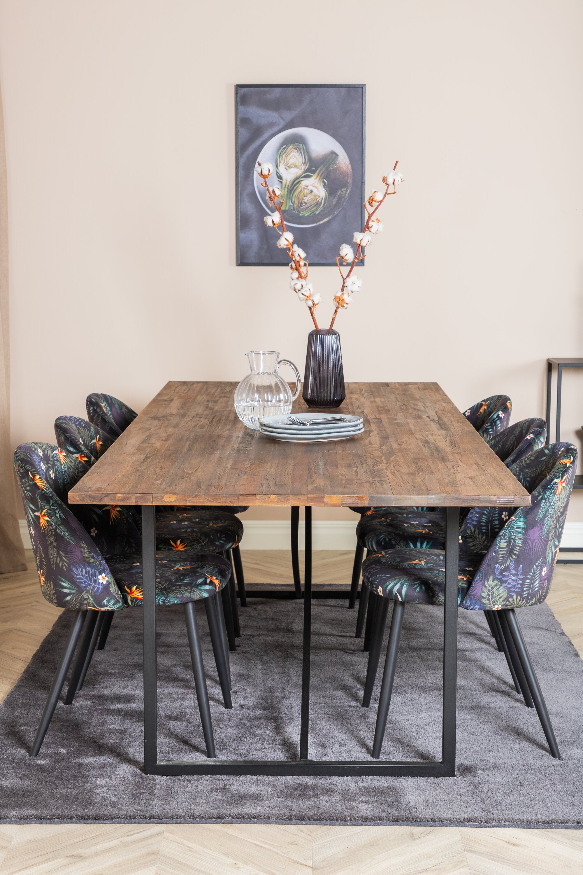 Jídelní stůl Padang - 250*100*H76 - Tmavý teak / Černá+Velvetová jídelní židle - Black Flower fabric_6