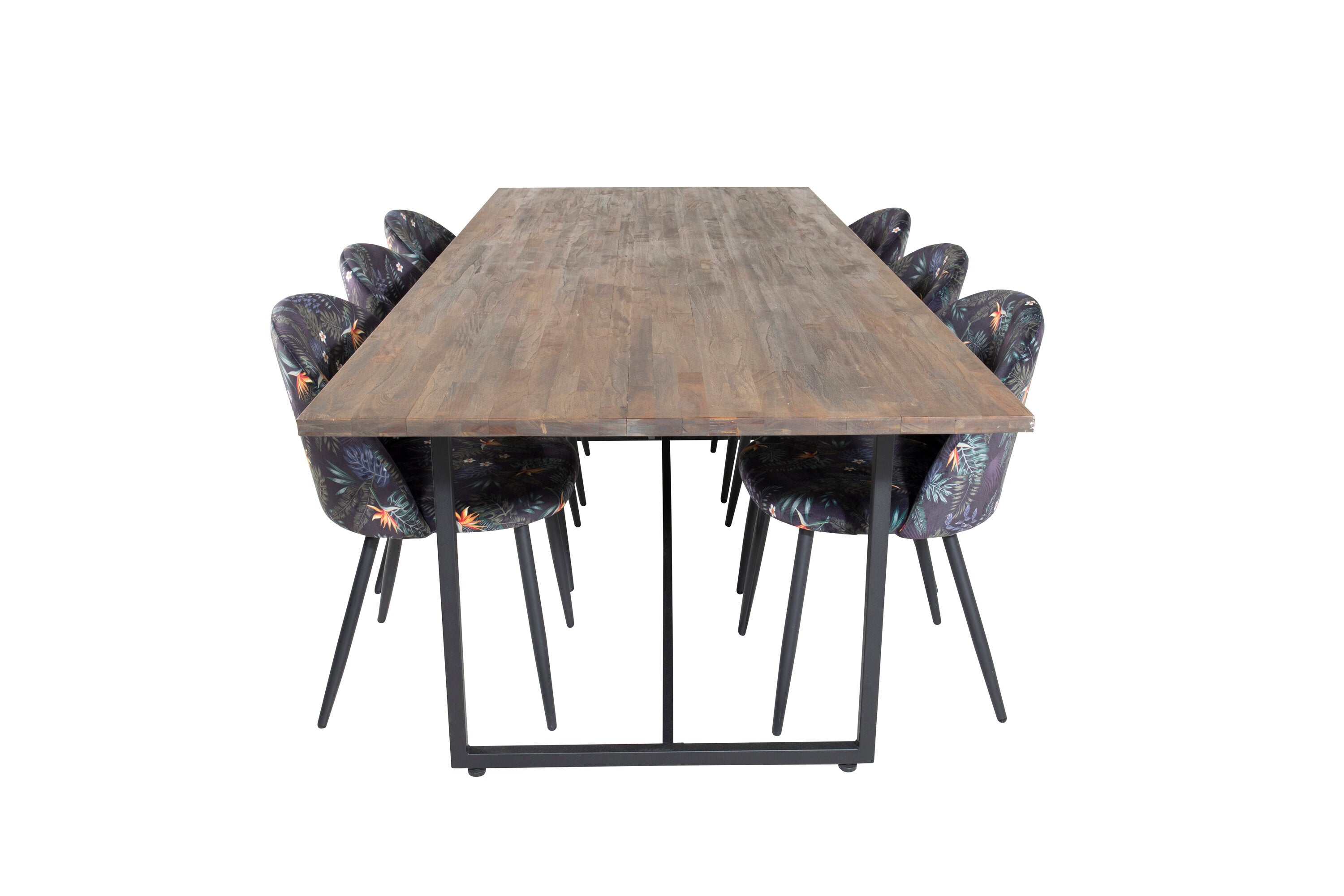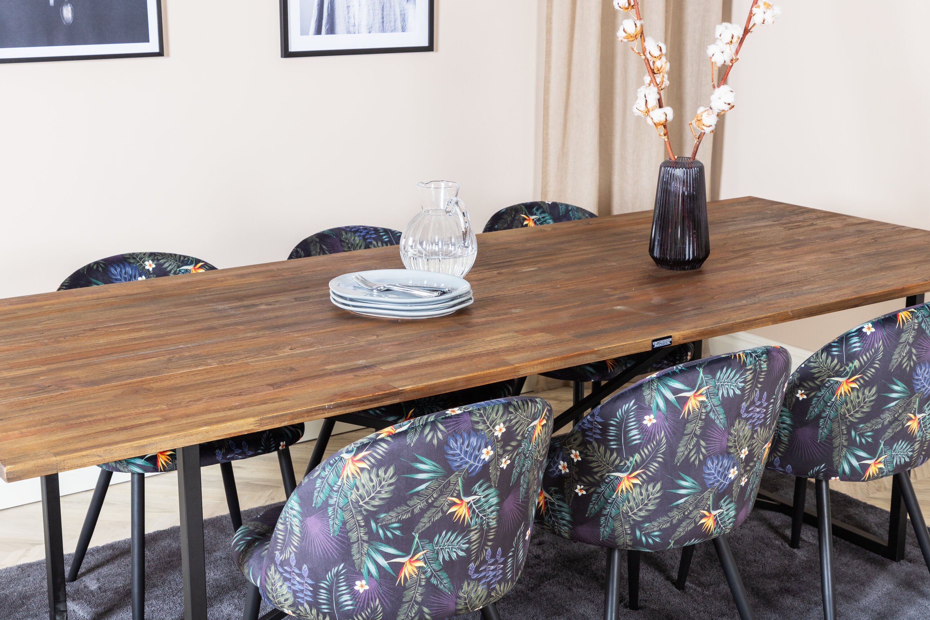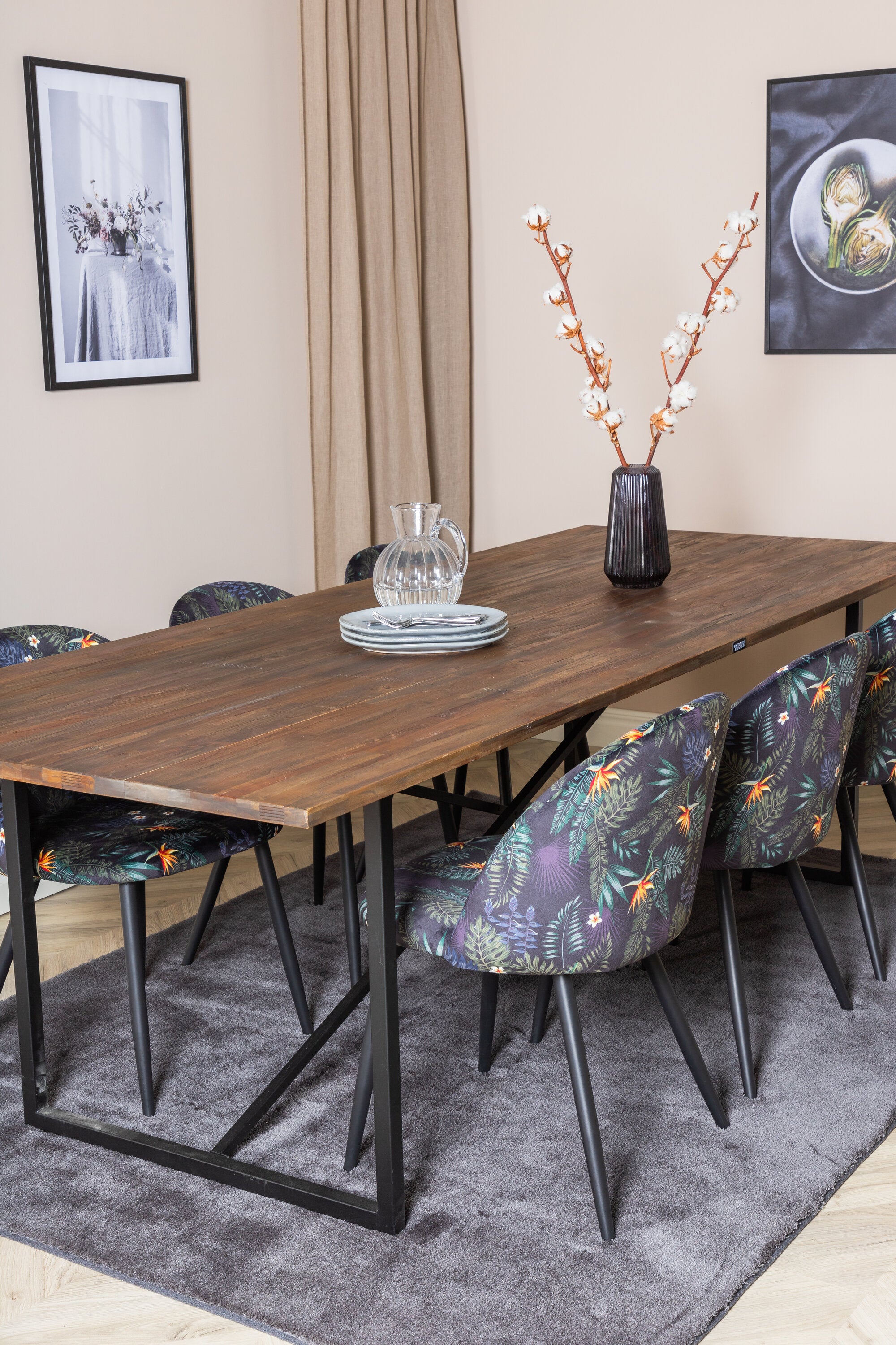 Jídelní stůl Padang - 250*100*H76 - Tmavý teak / Černá+Velvetová jídelní židle - Black Flower fabric_6