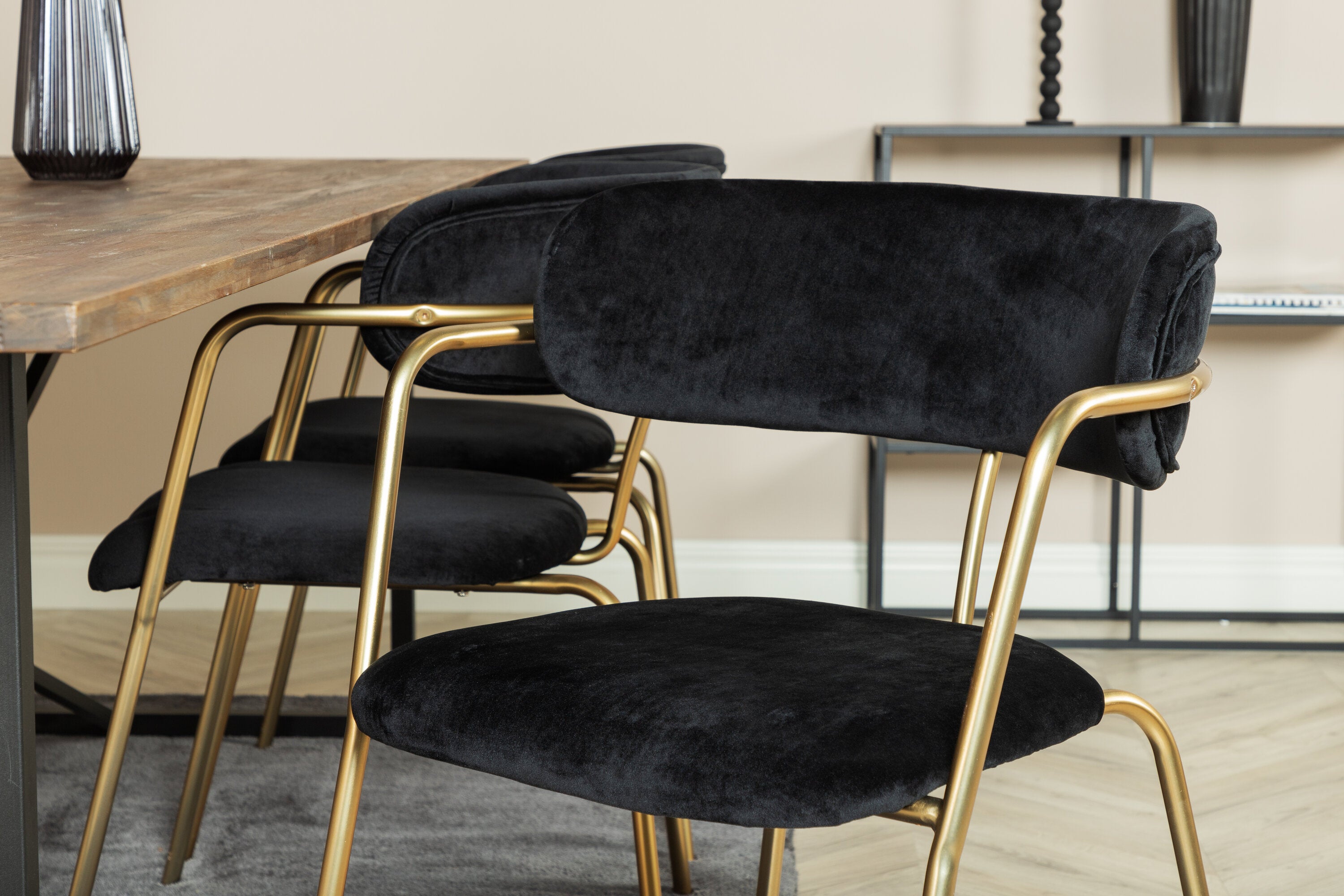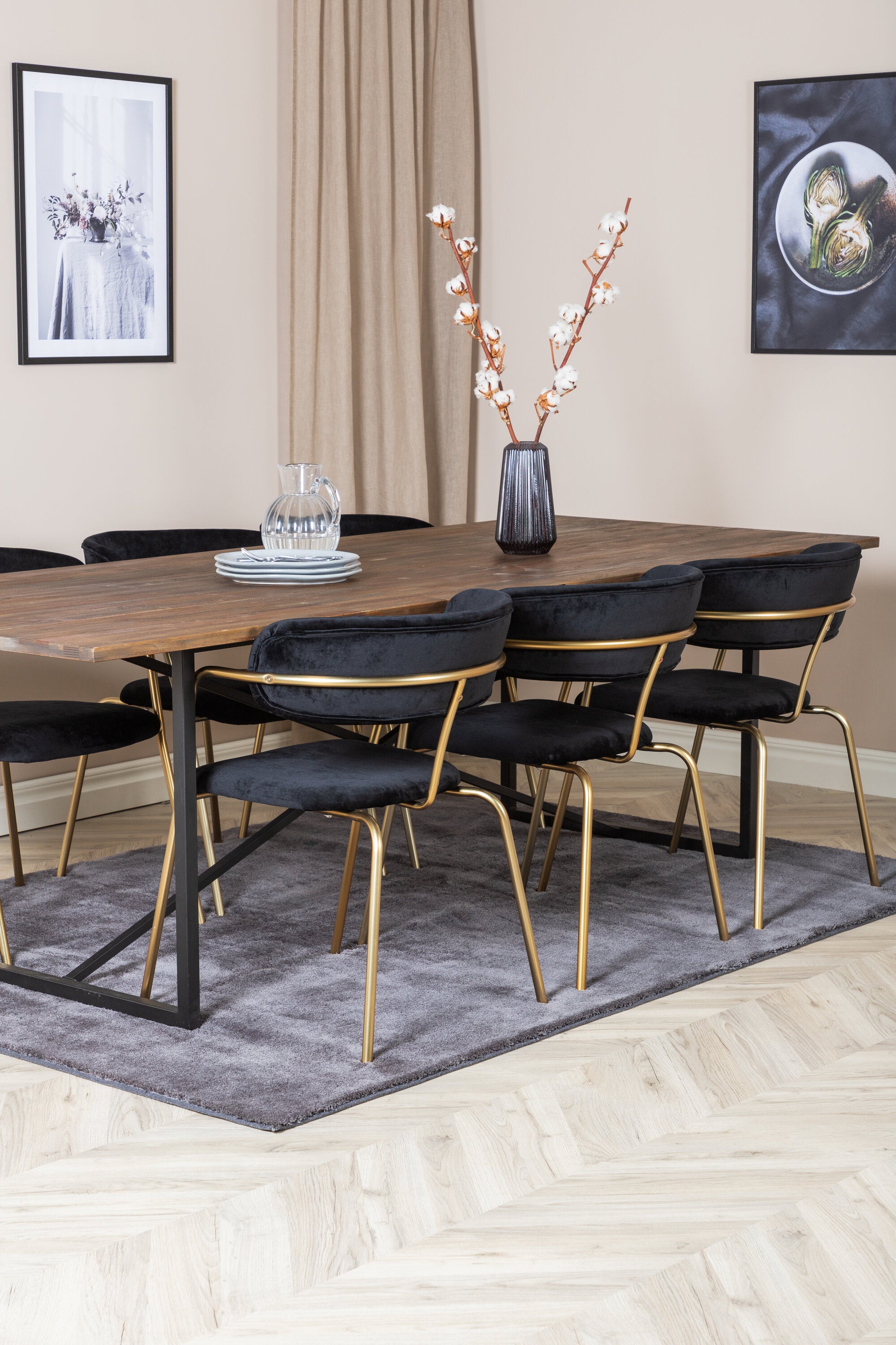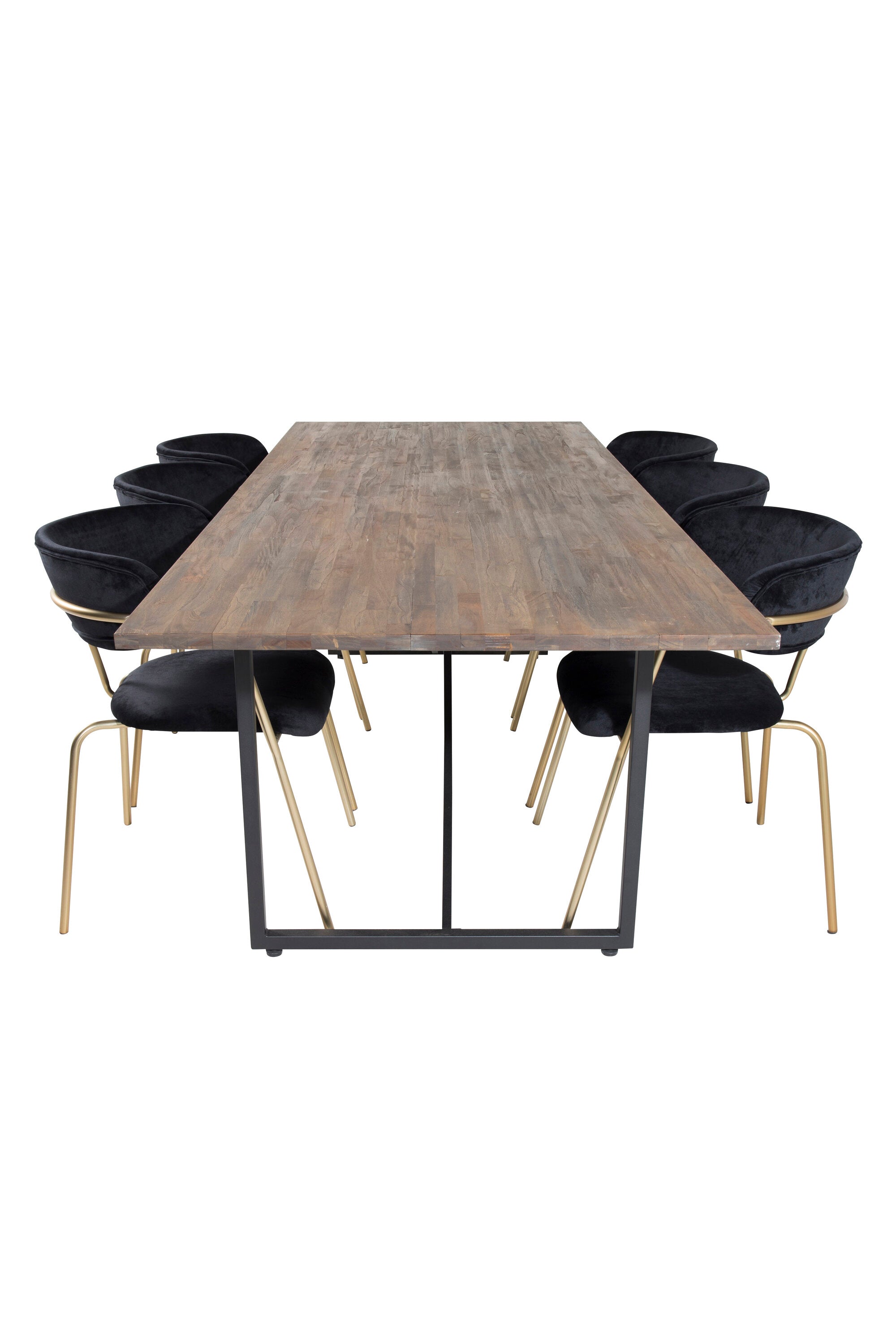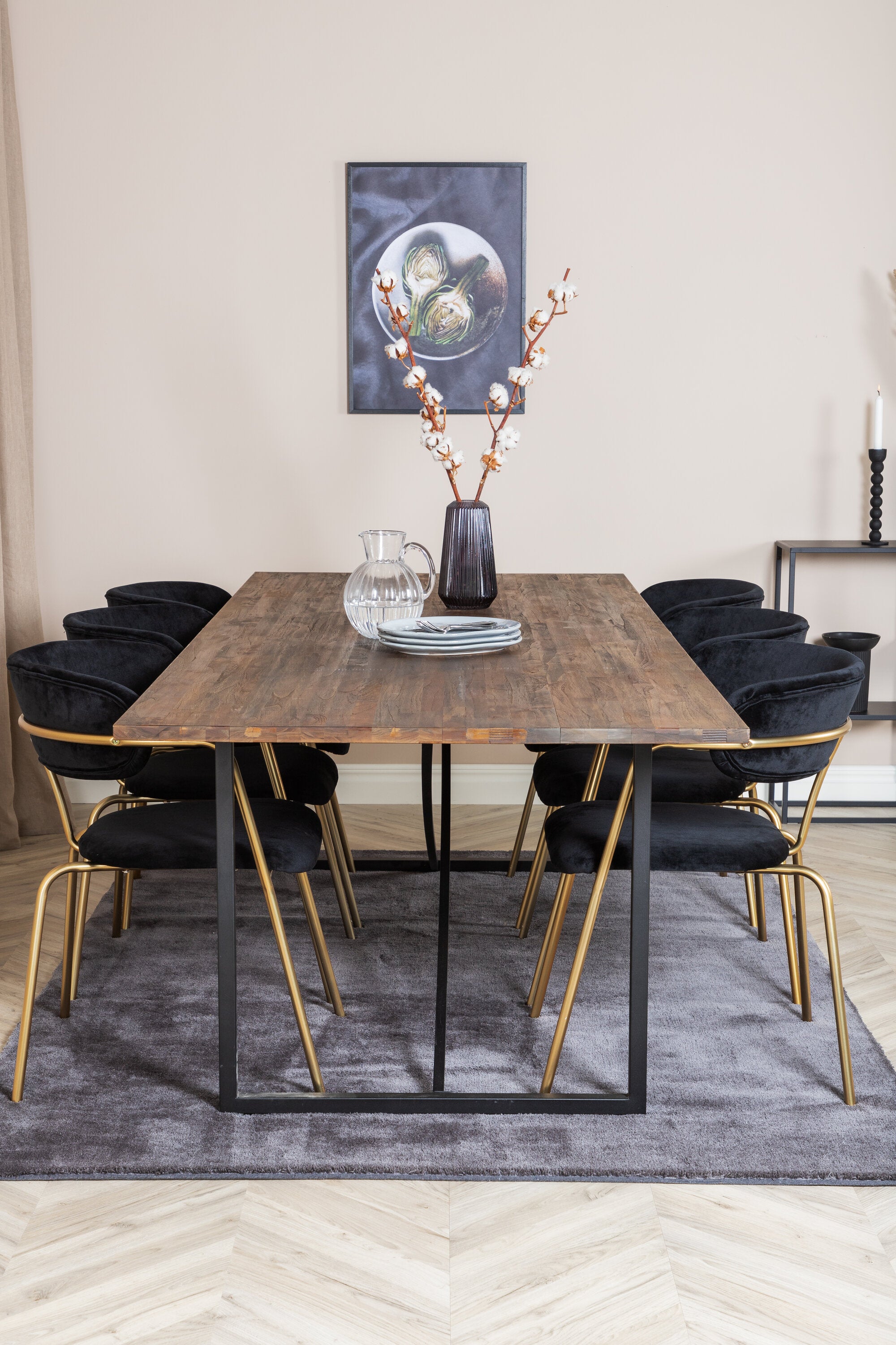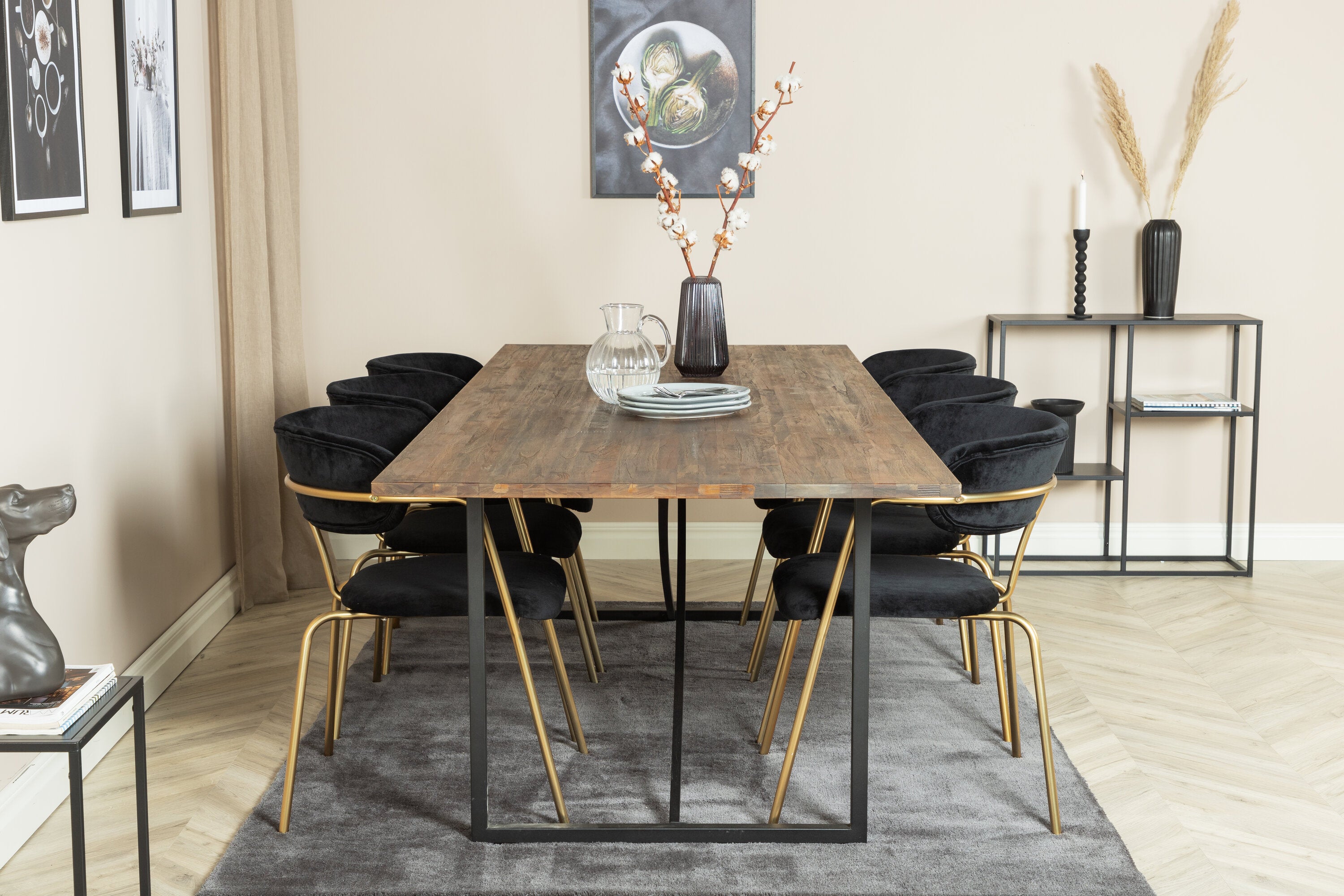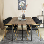 Jídelní stůl Padang - 250*100*H76 - Tmavý teak / Křeslo Black+Arrow - Mosazné nohy - Black Velvet_6