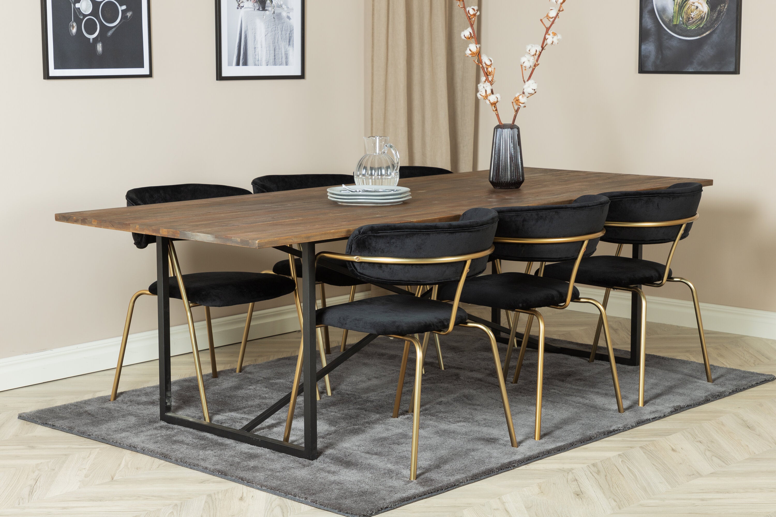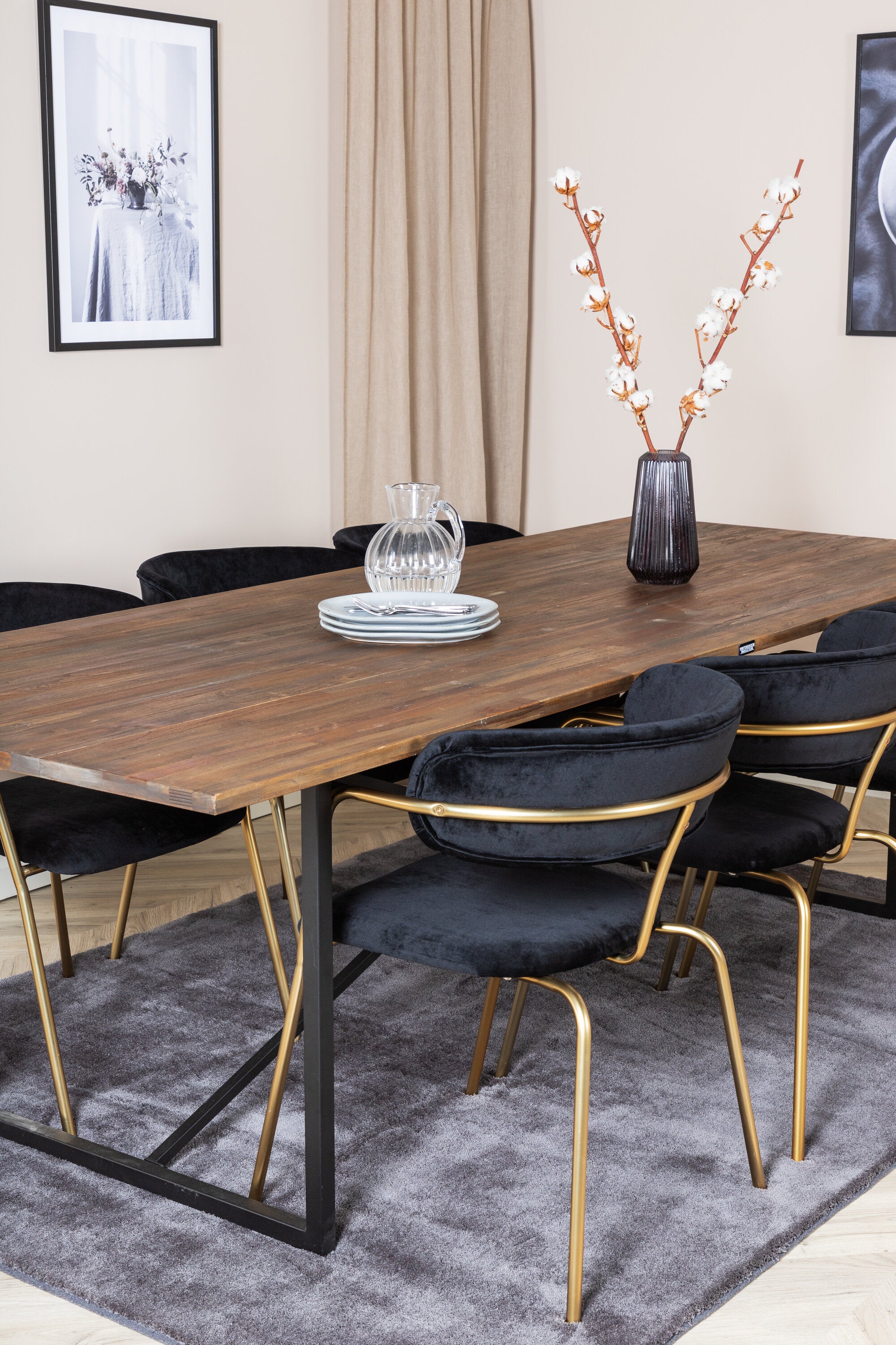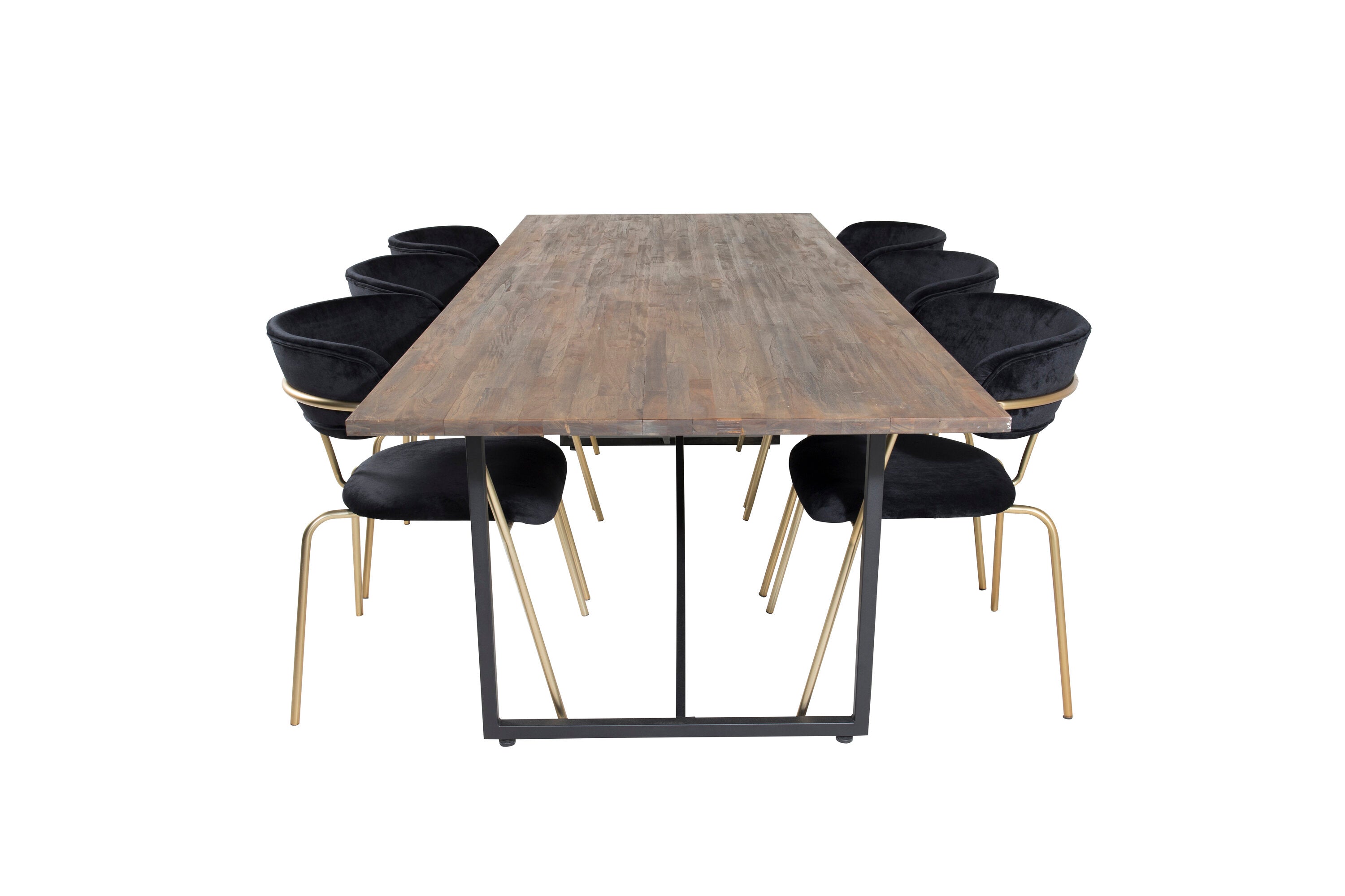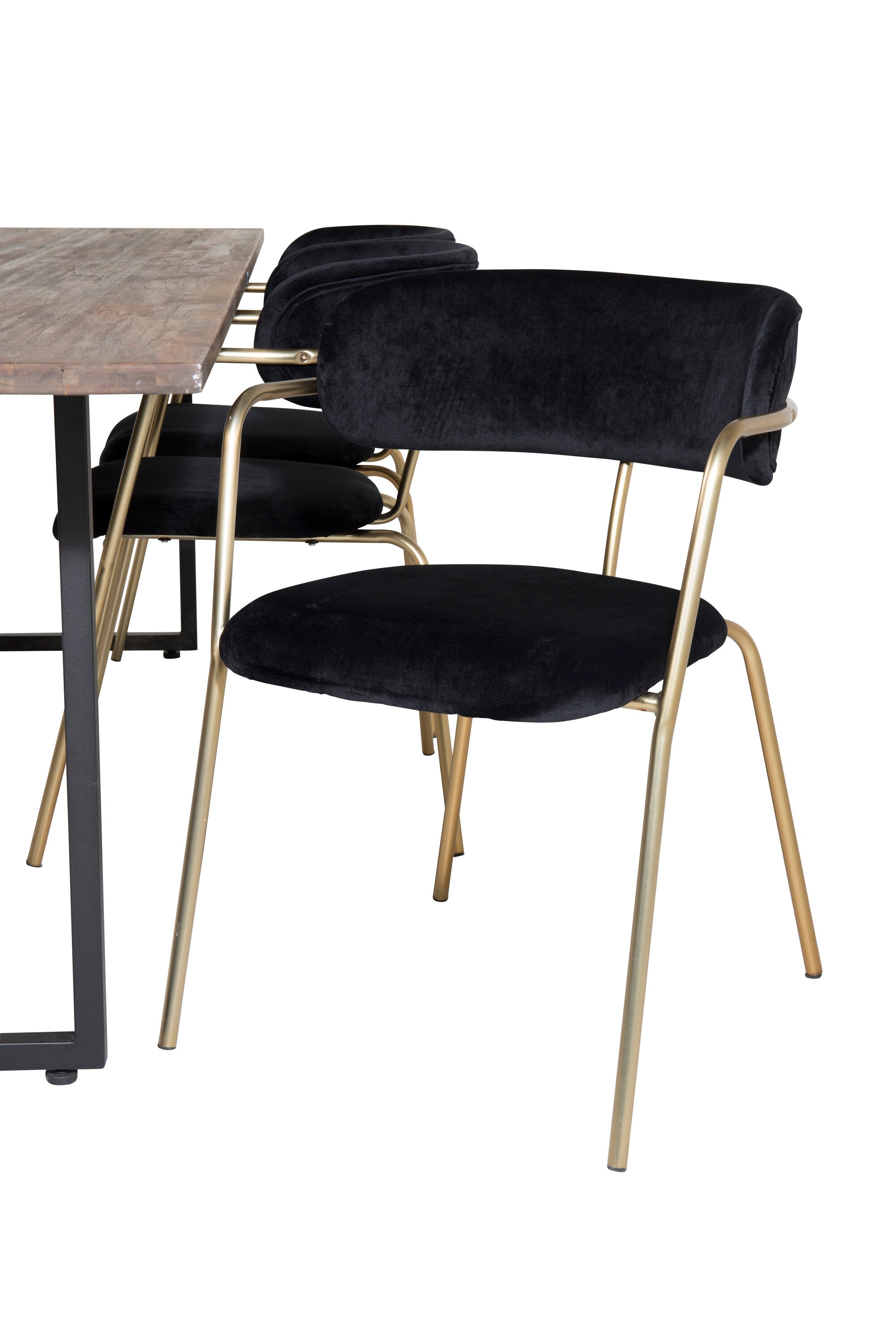 Jídelní stůl Padang - 250*100*H76 - Tmavý teak / Křeslo Black+Arrow - Mosazné nohy - Black Velvet_6