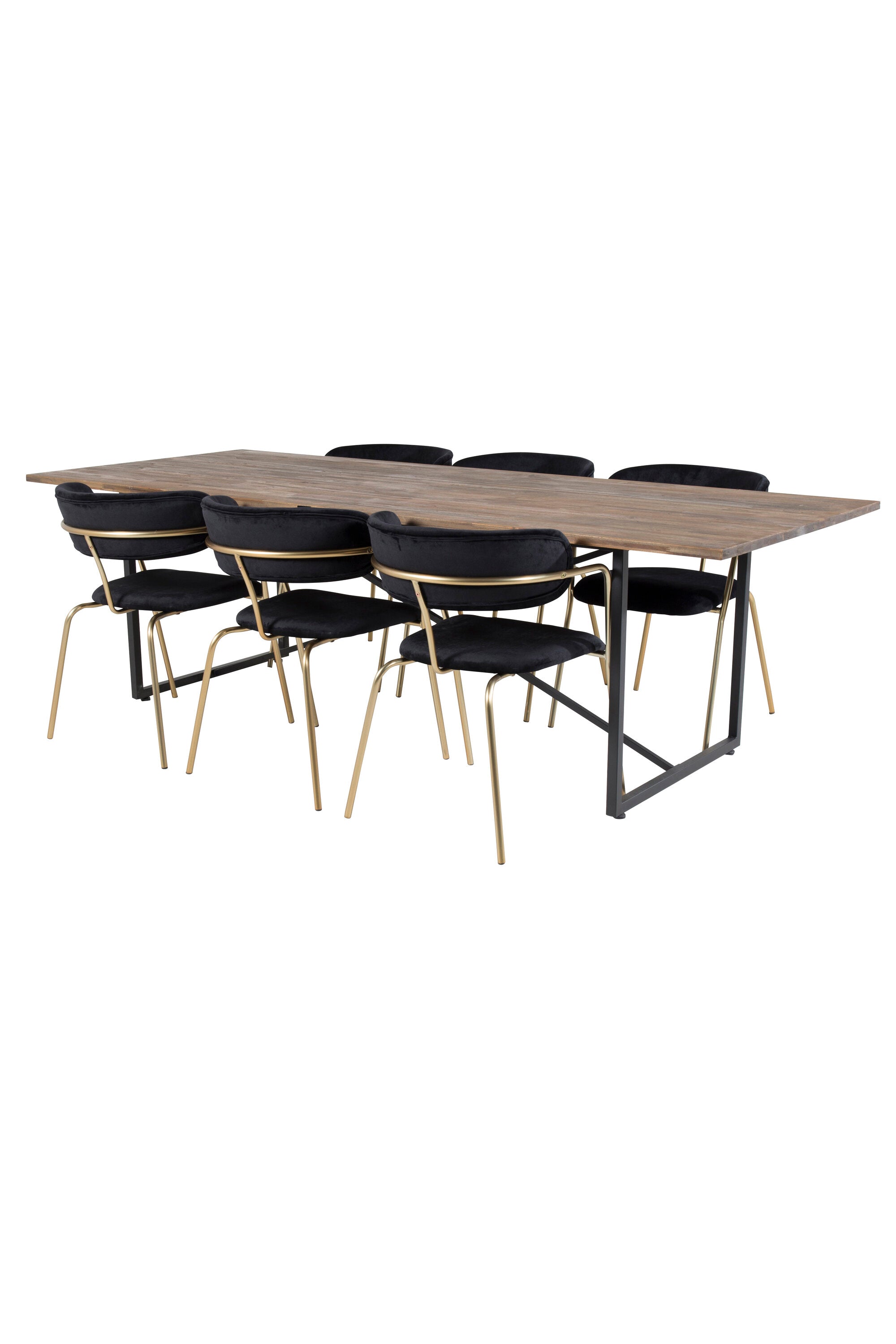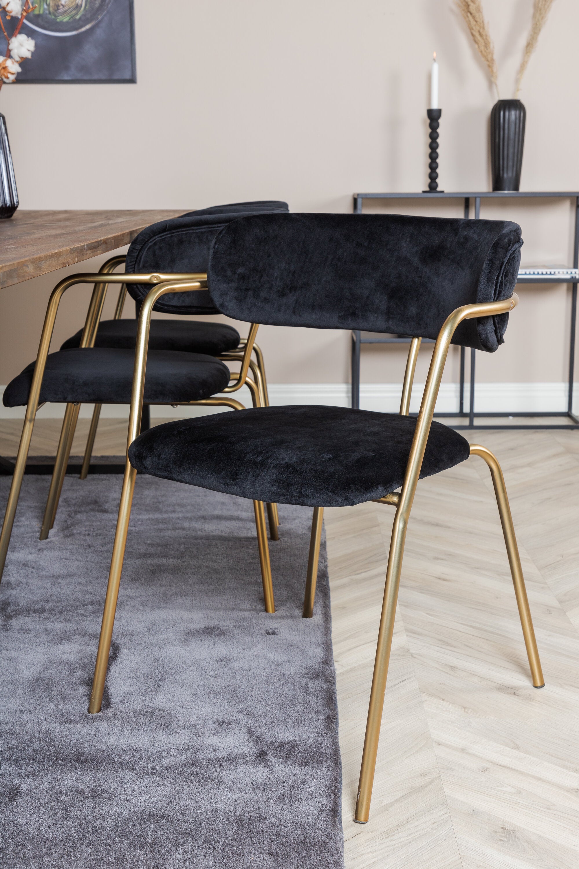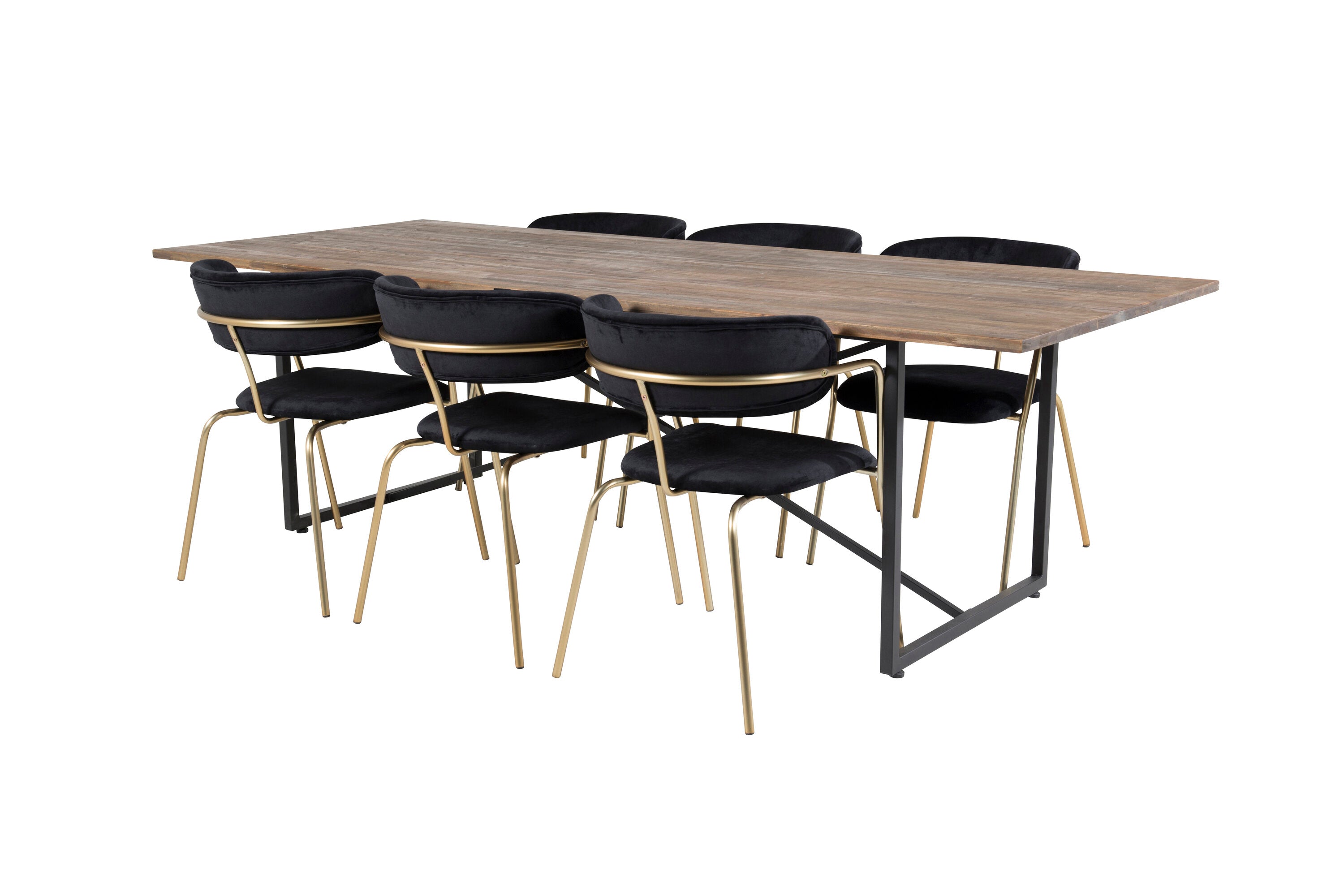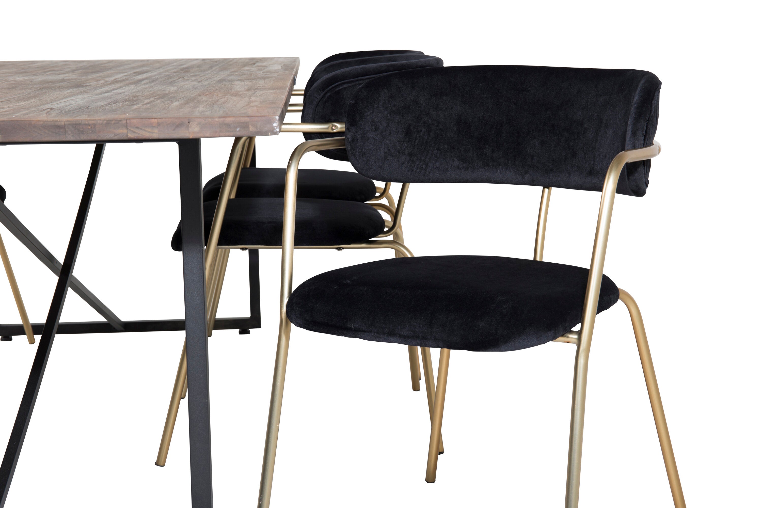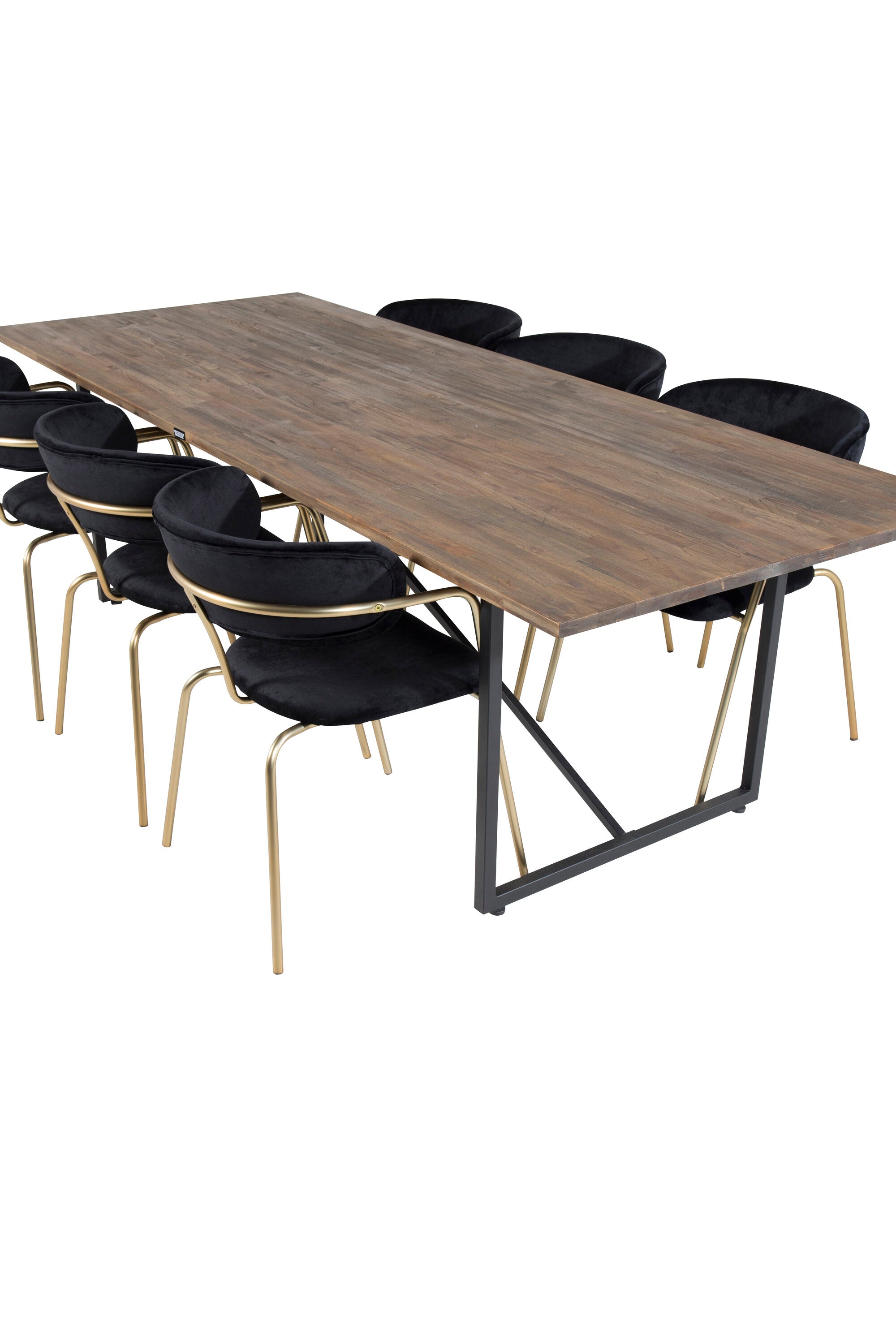 Jídelní stůl Padang - 250*100*H76 - Tmavý teak / Křeslo Black+Arrow - Mosazné nohy - Black Velvet_6