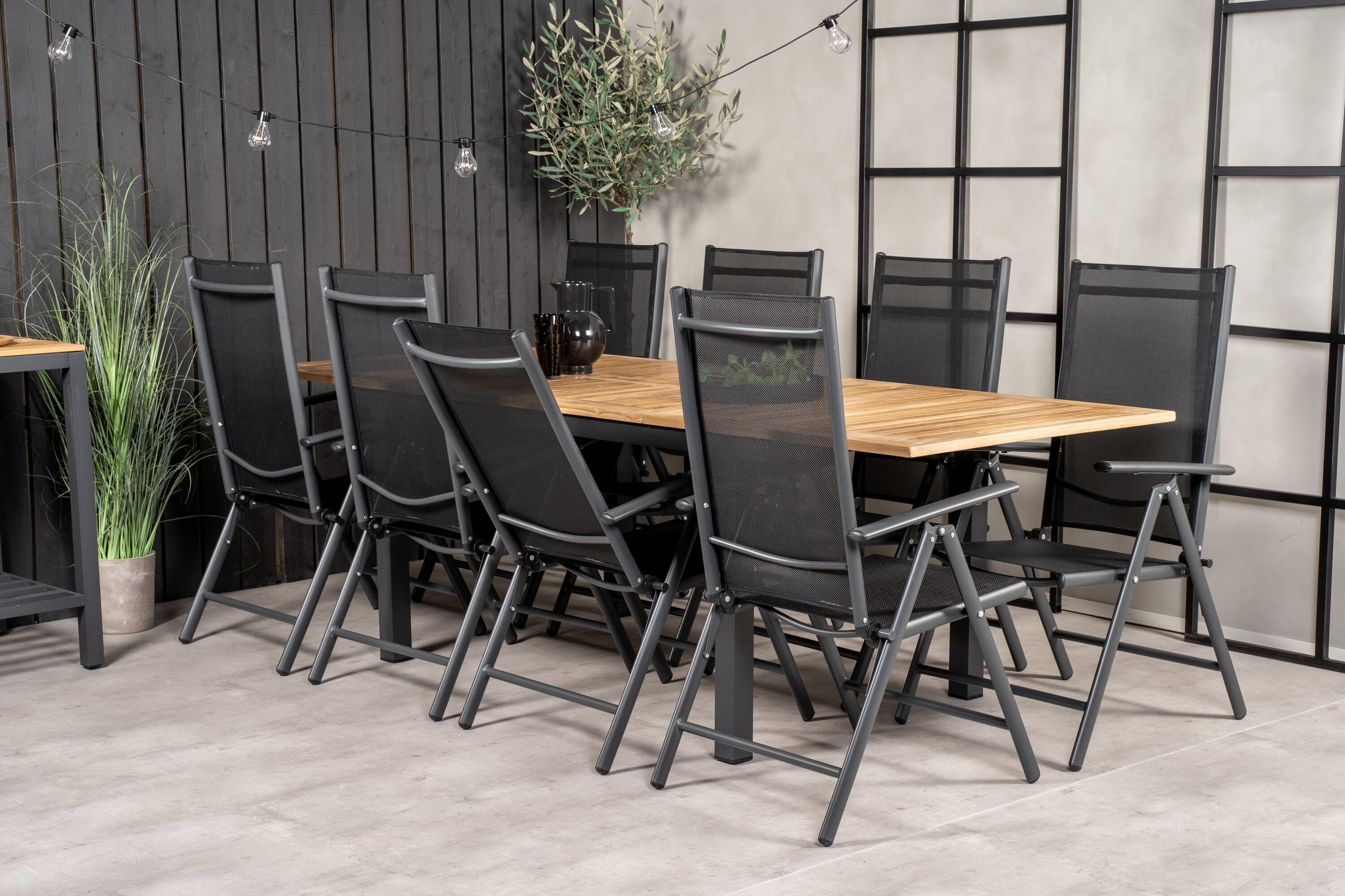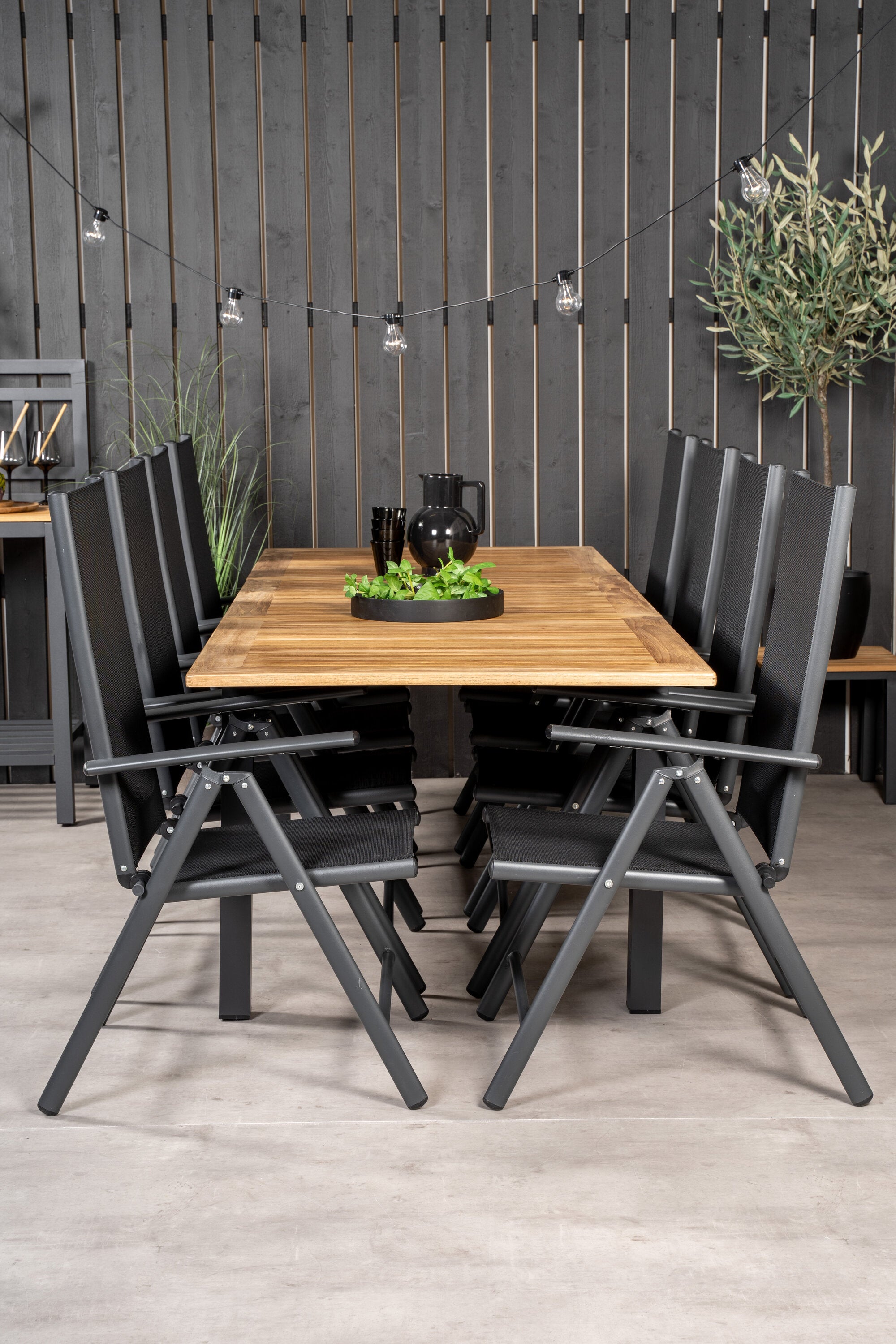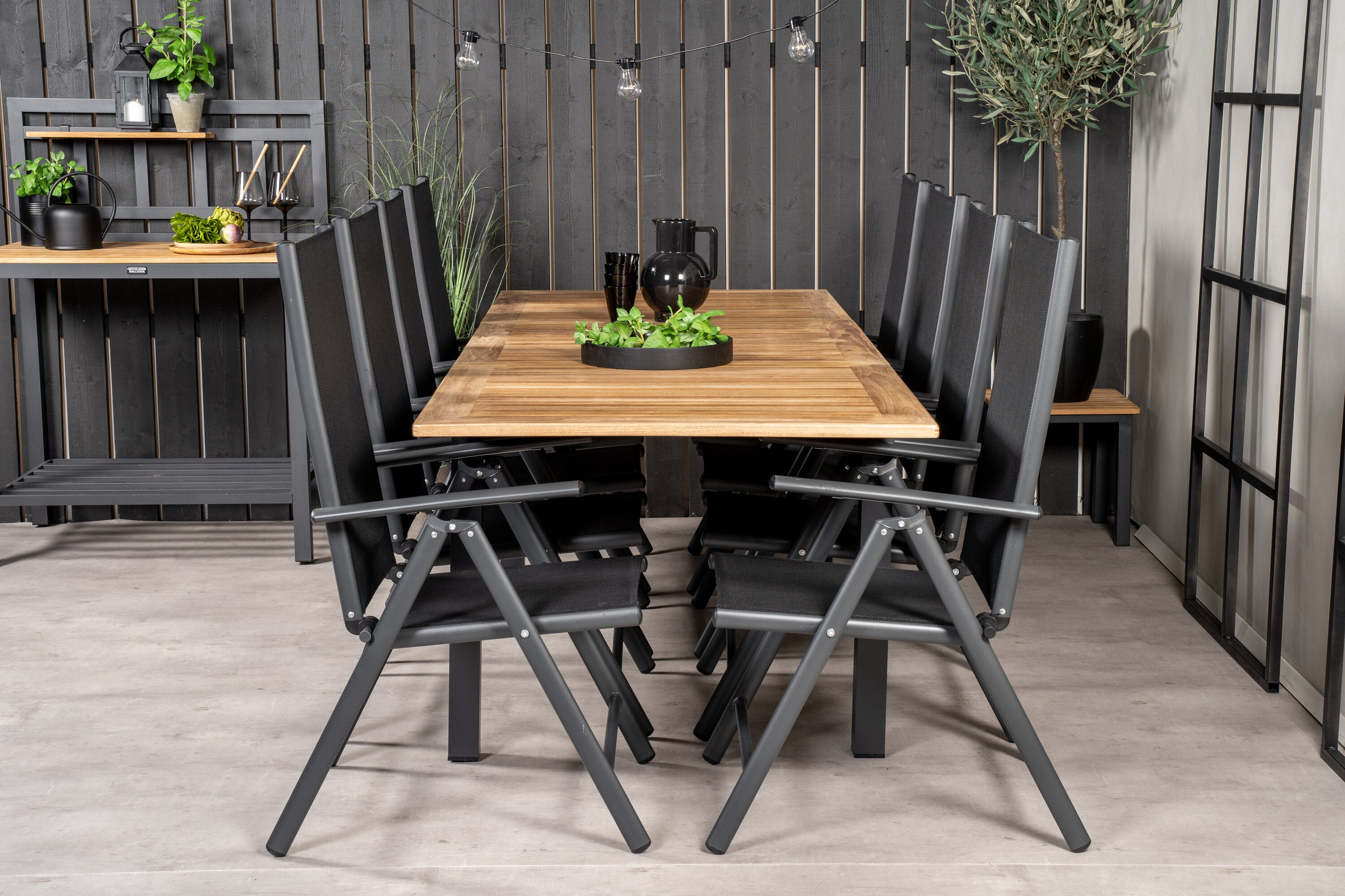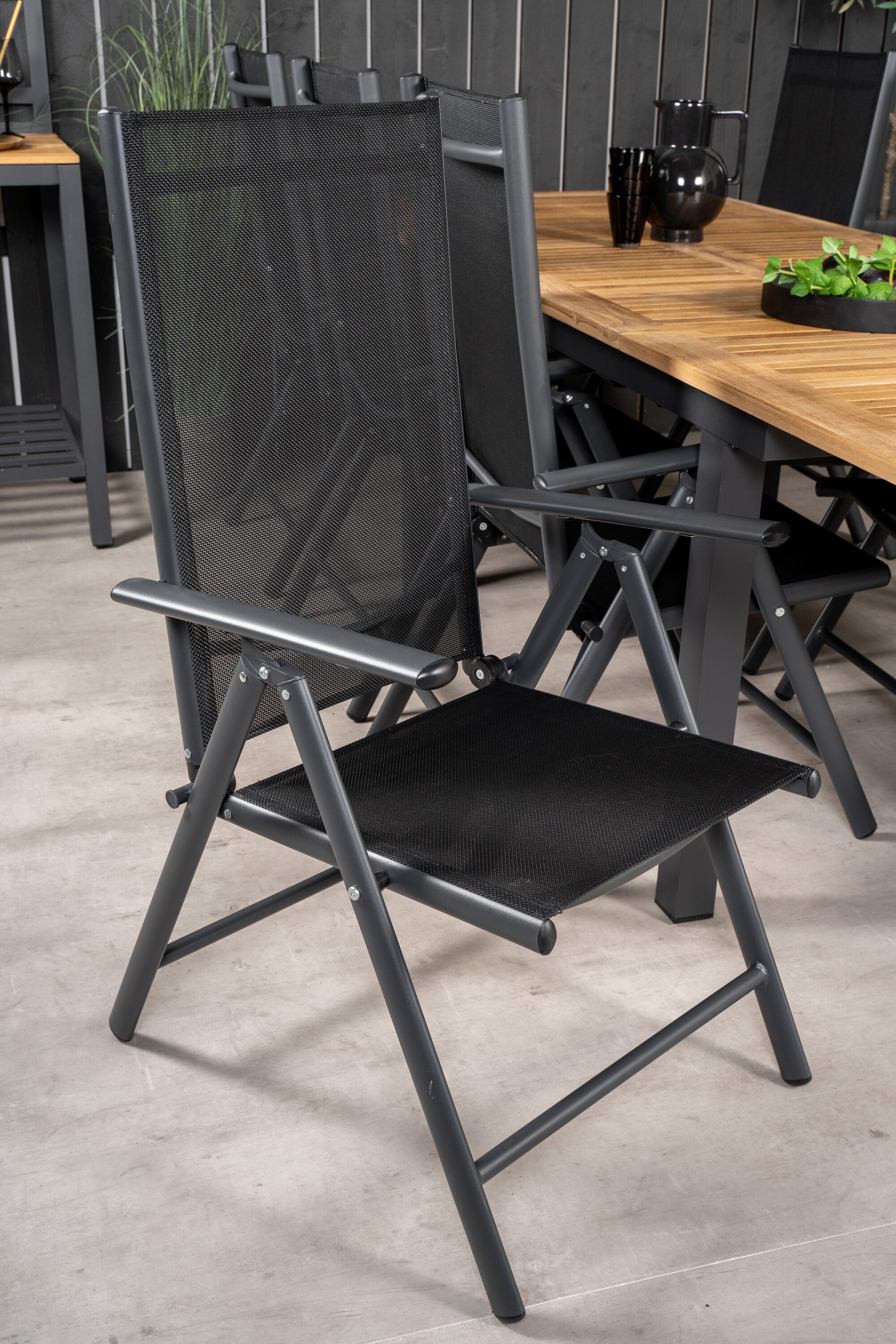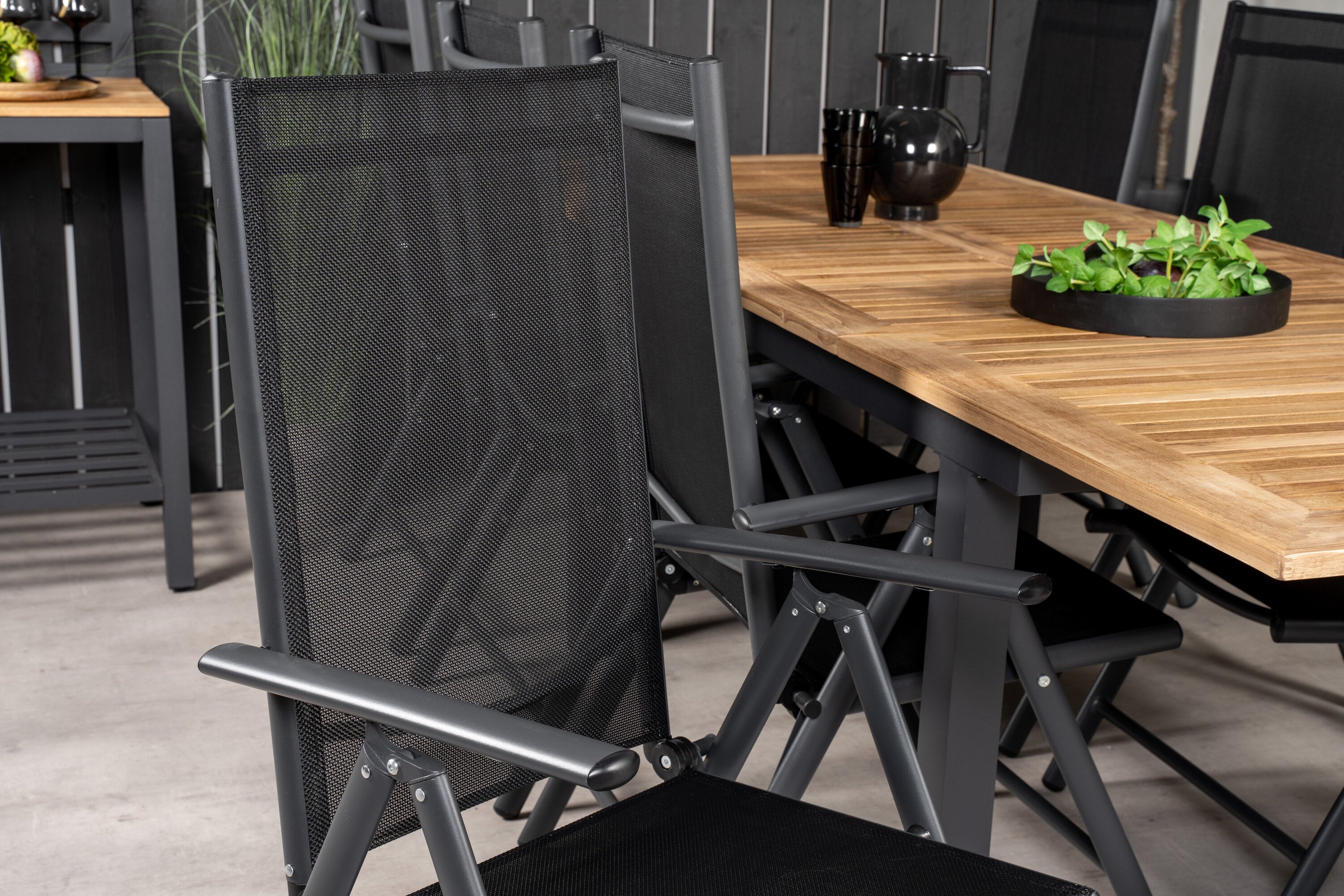 Jídelní stůl Panama 160/240*90 - Black Alu / Teak+Break 5:pos Židle - Black Alu / Black Textilene_8