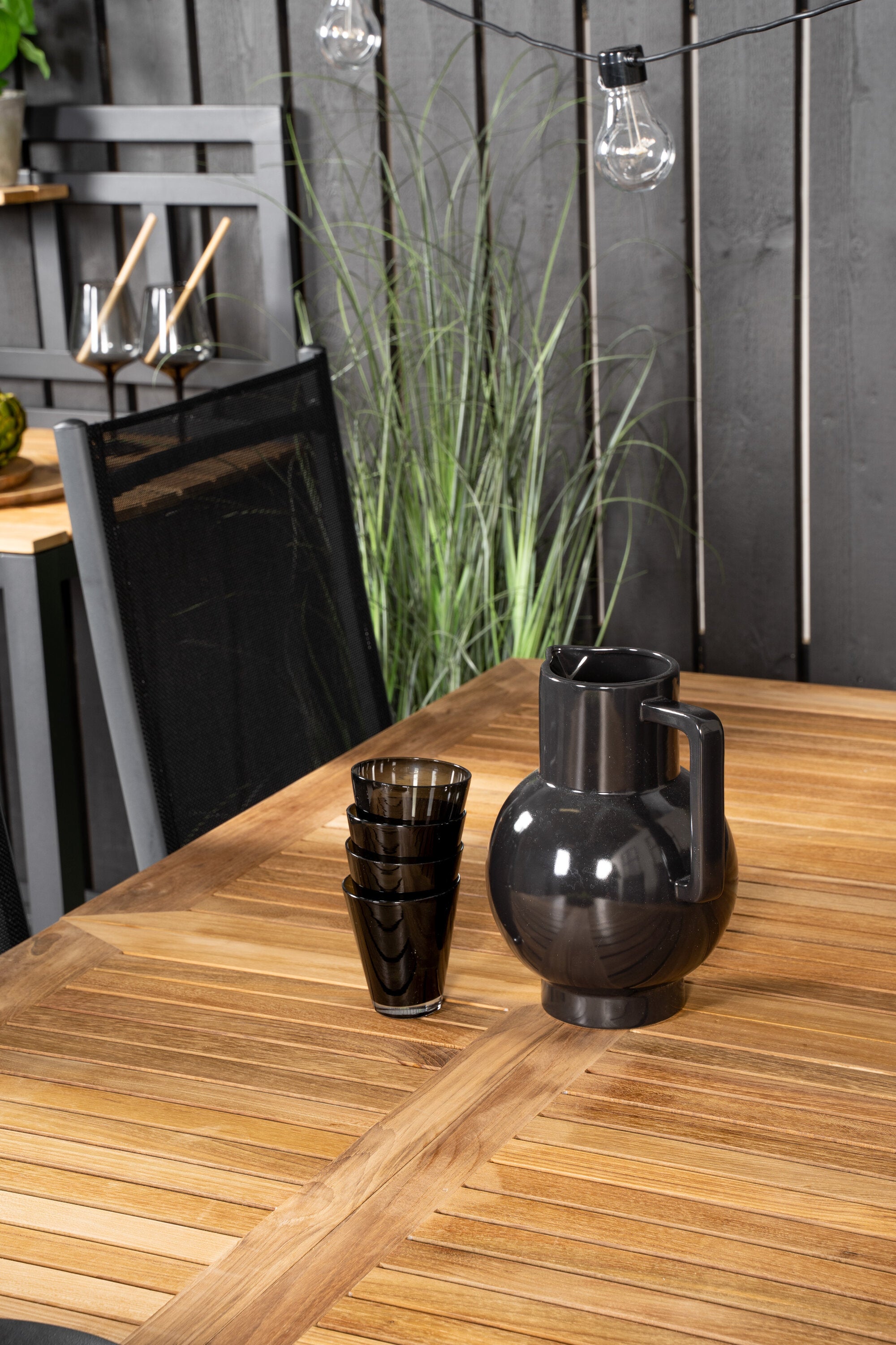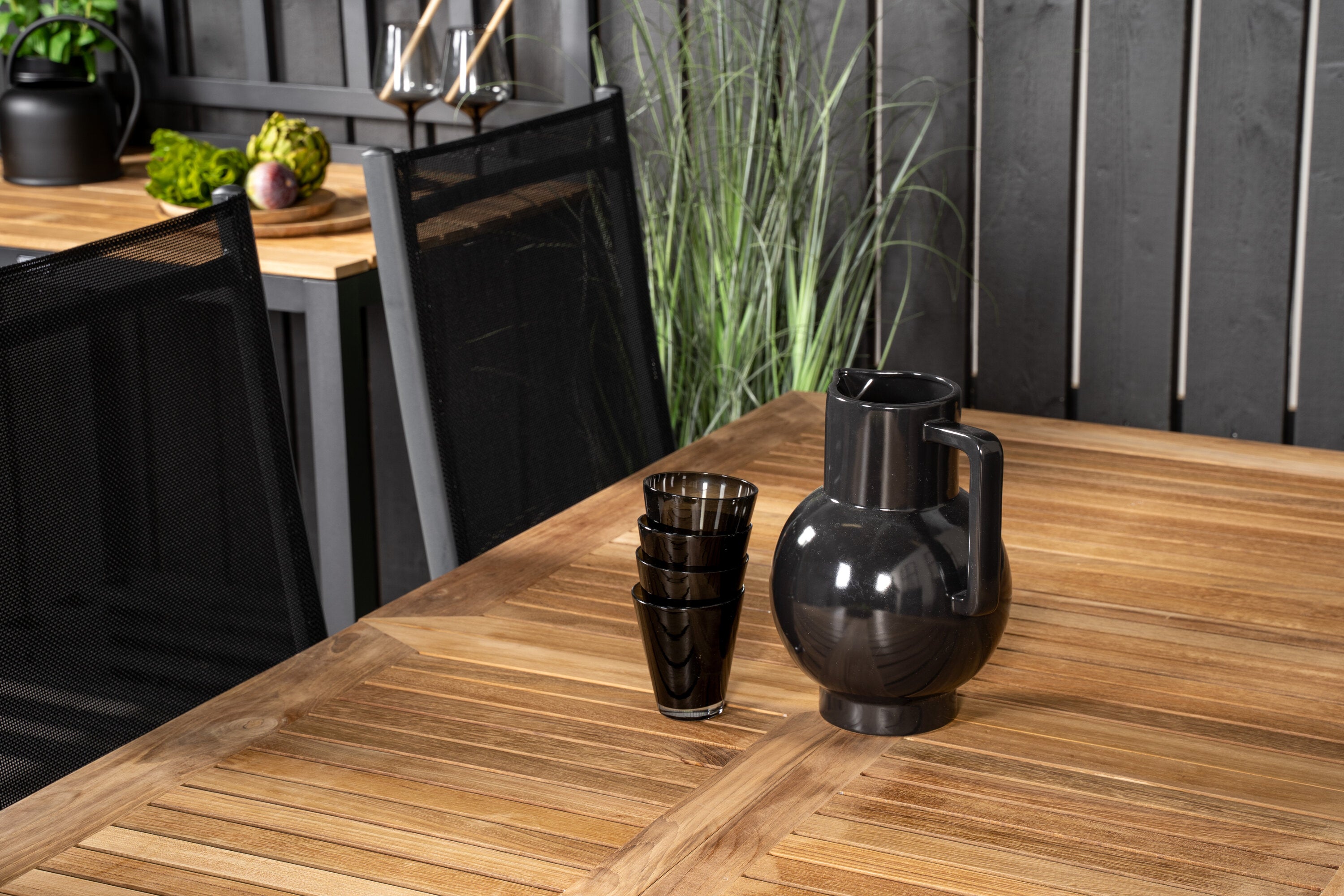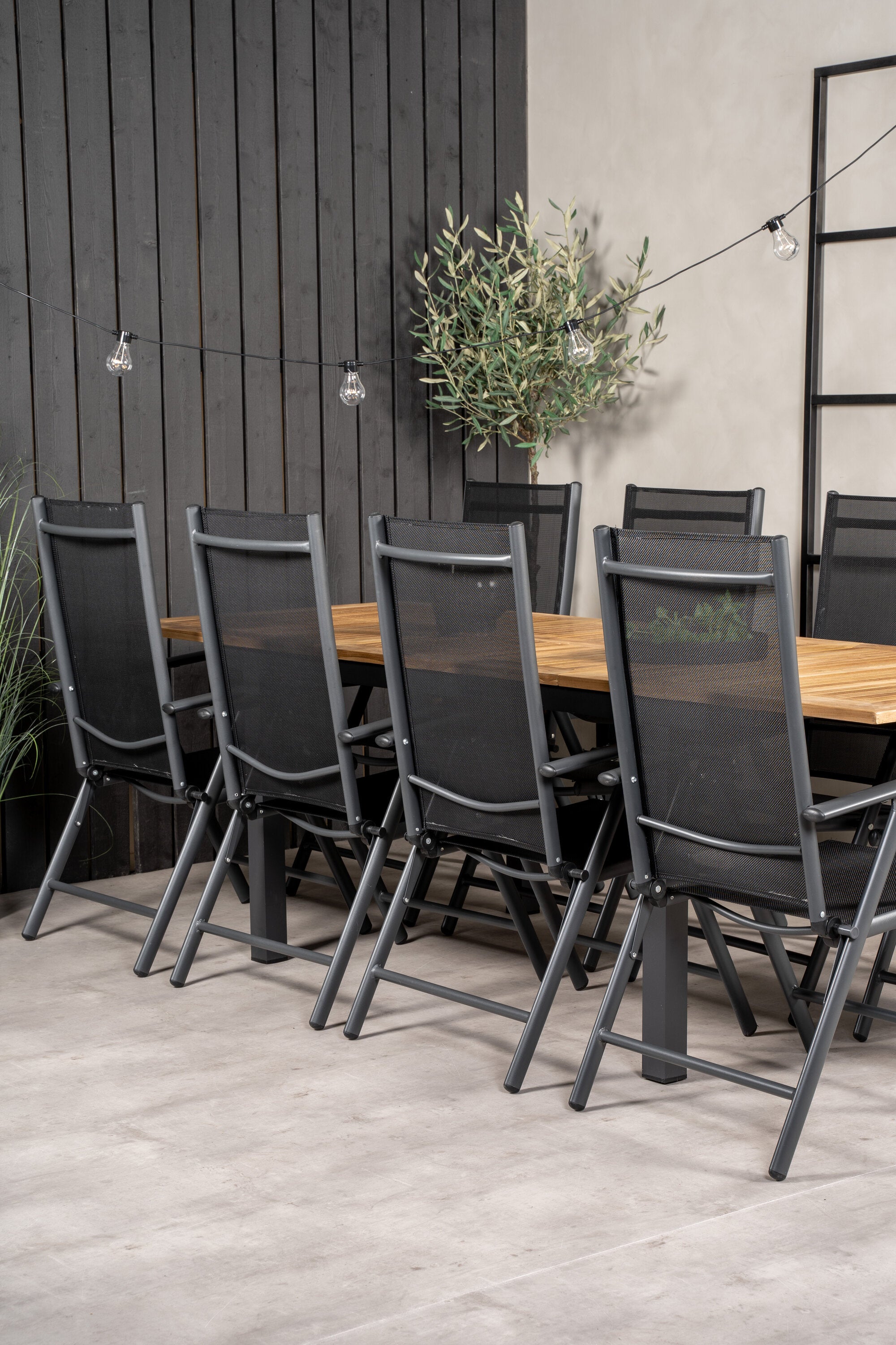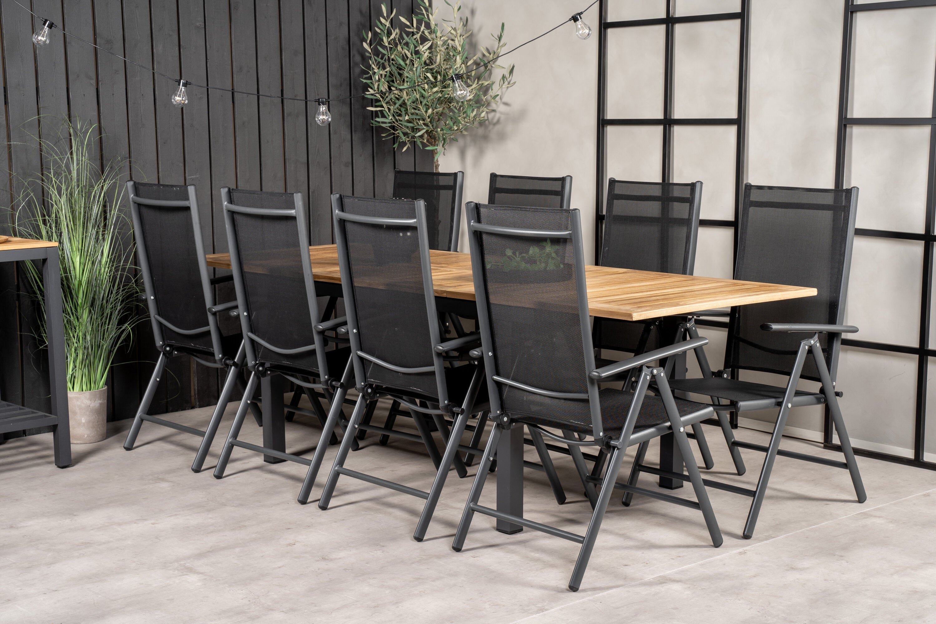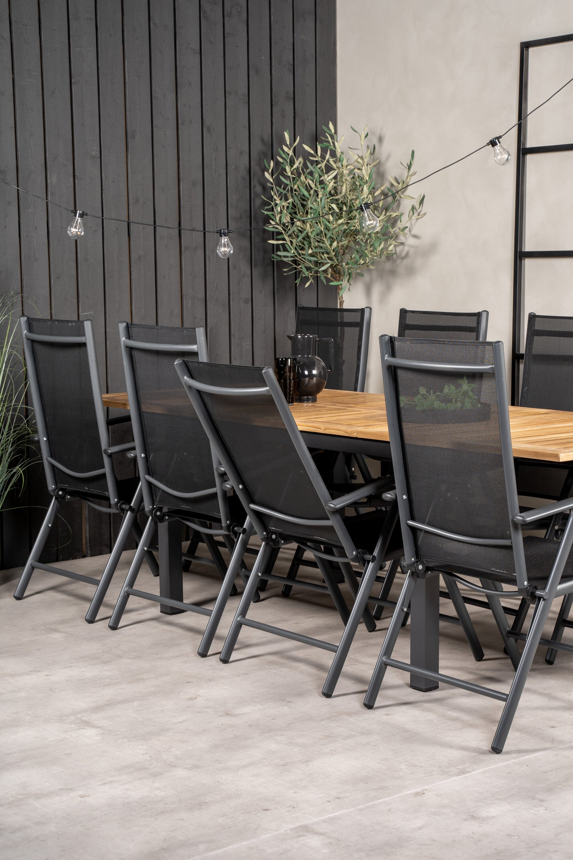 Jídelní stůl Panama 160/240*90 - Black Alu / Teak+Break 5:pos Židle - Black Alu / Black Textilene_8
