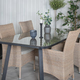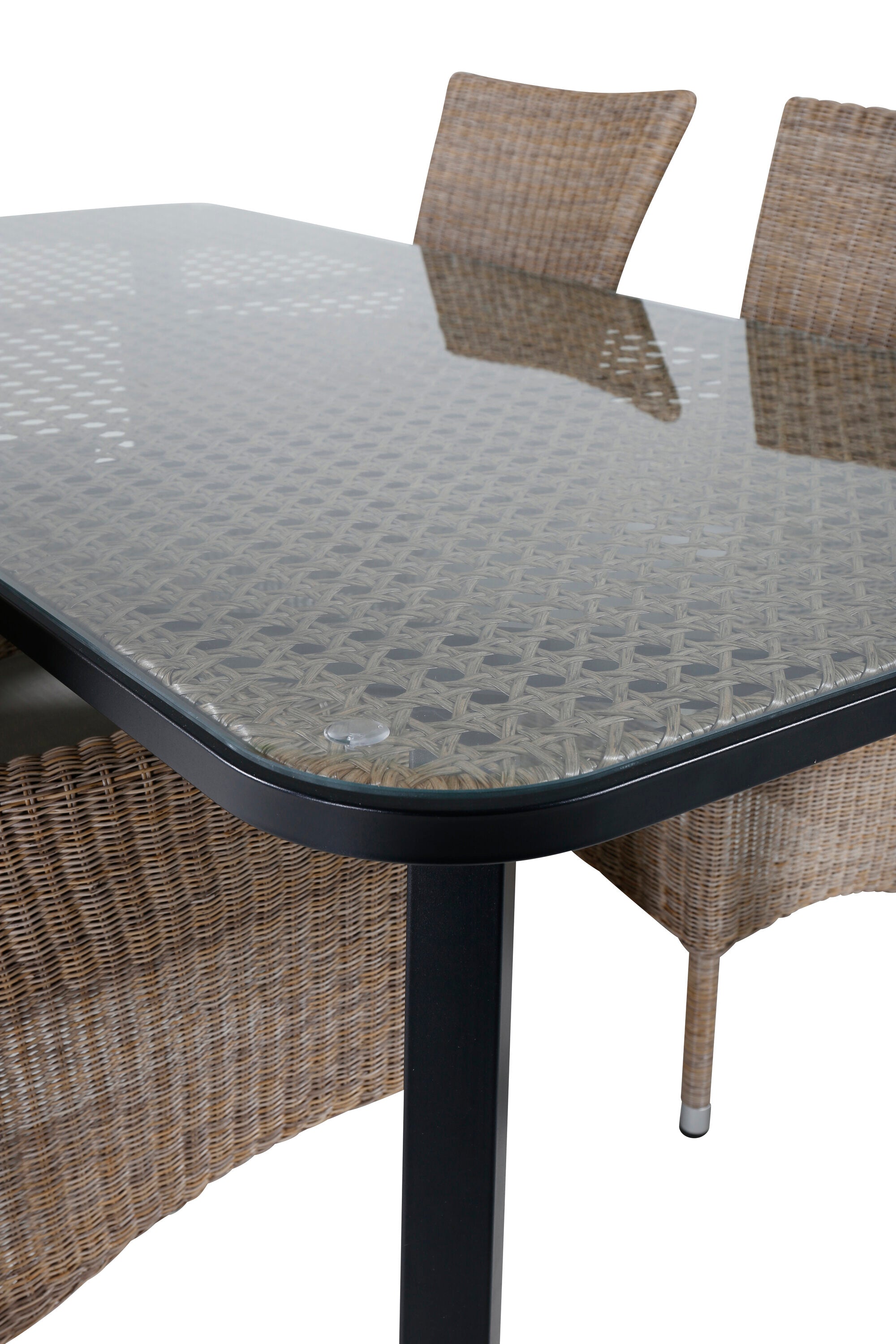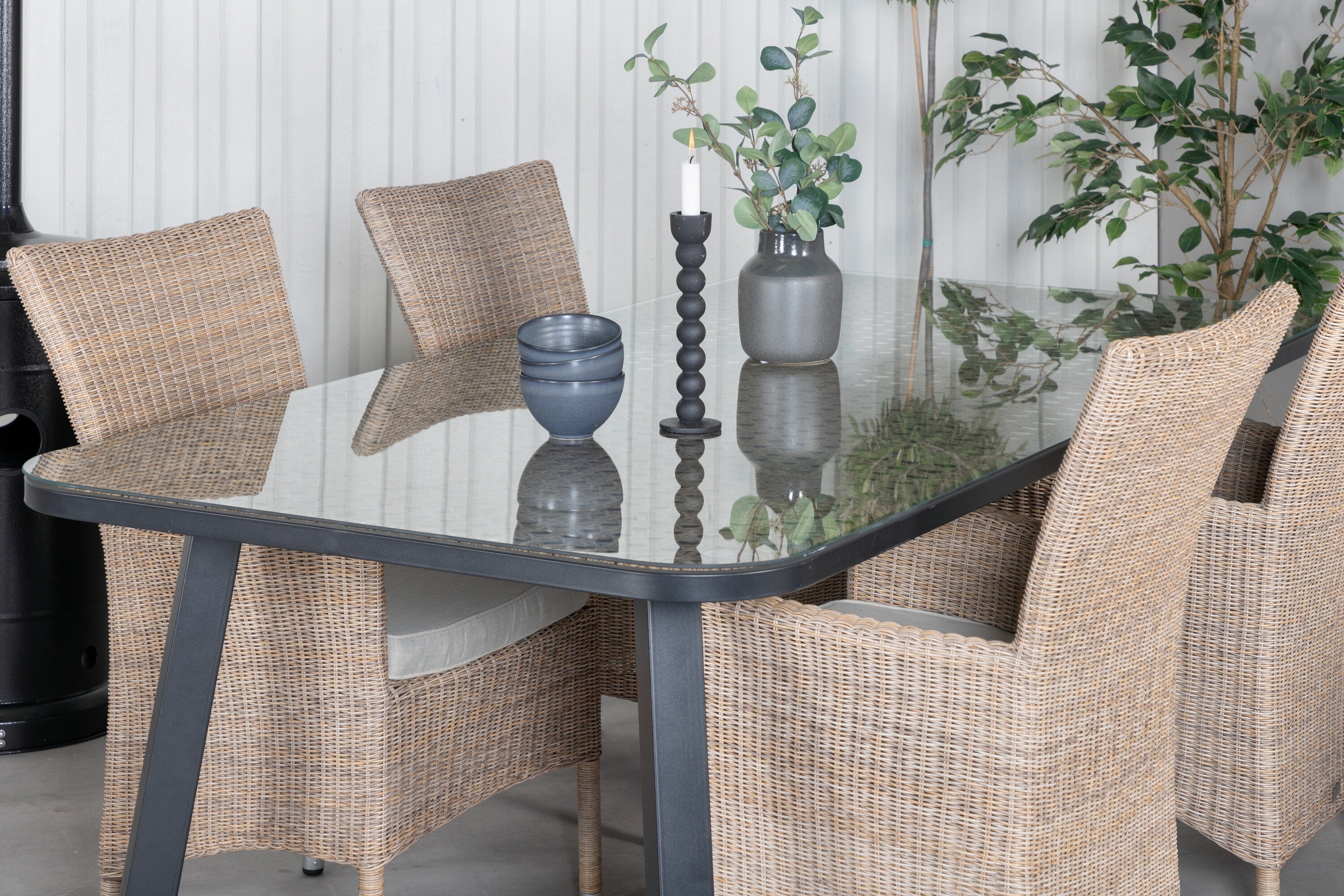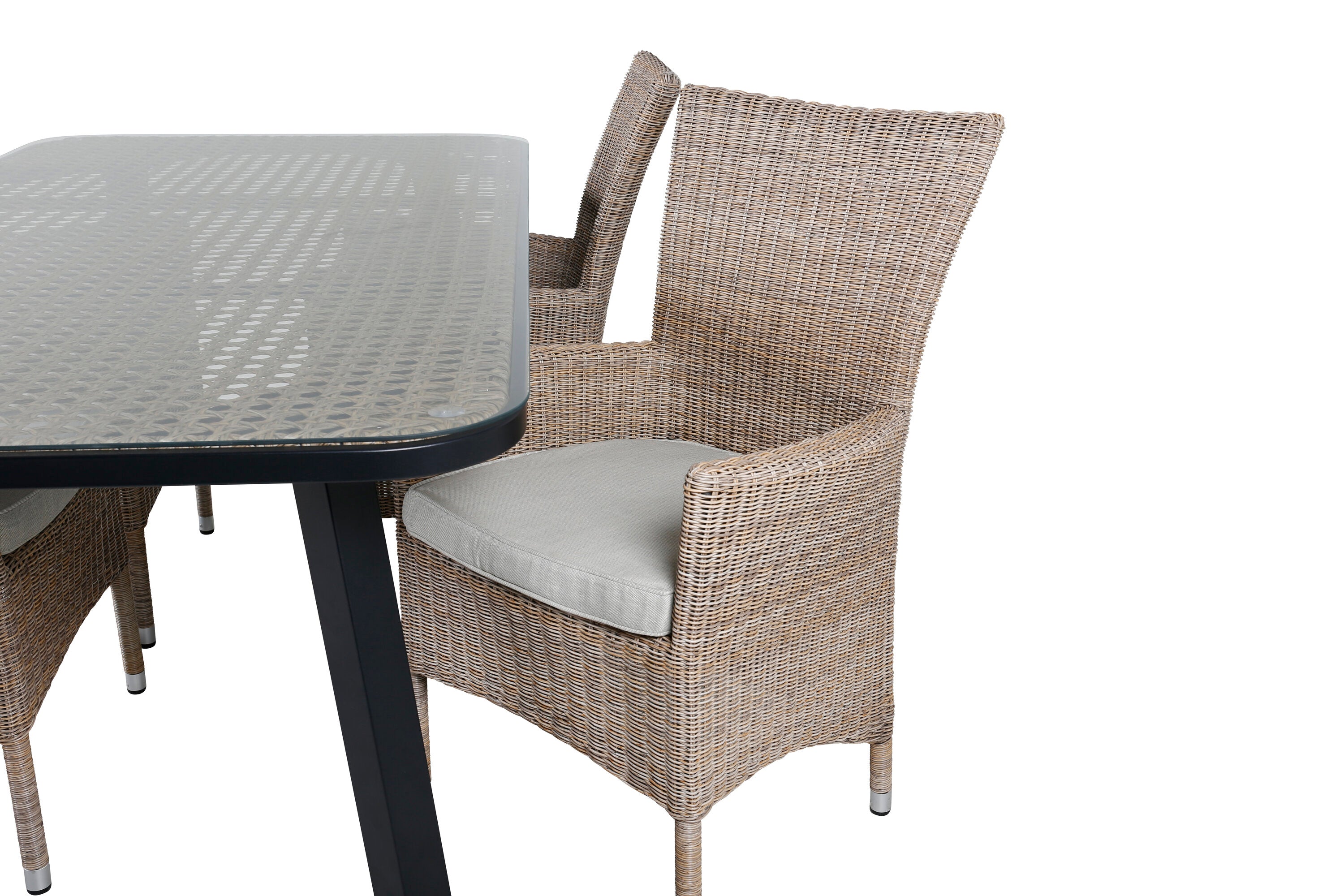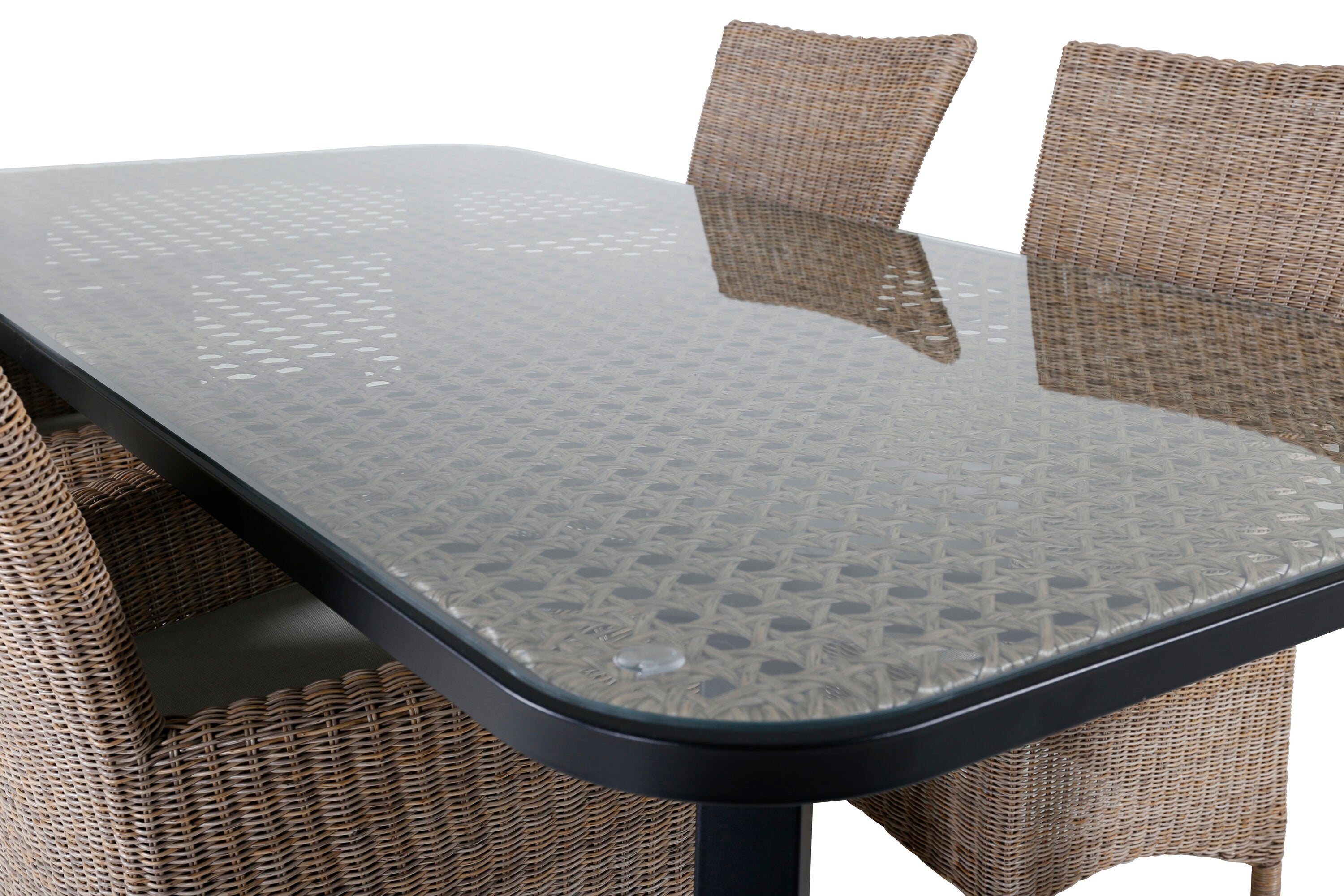 Jídelní stůl Paola - černá ocel / přírodní proutí - 200*100 + jídelní židle Toscana - přírodní proutí / přírodní cushion_4