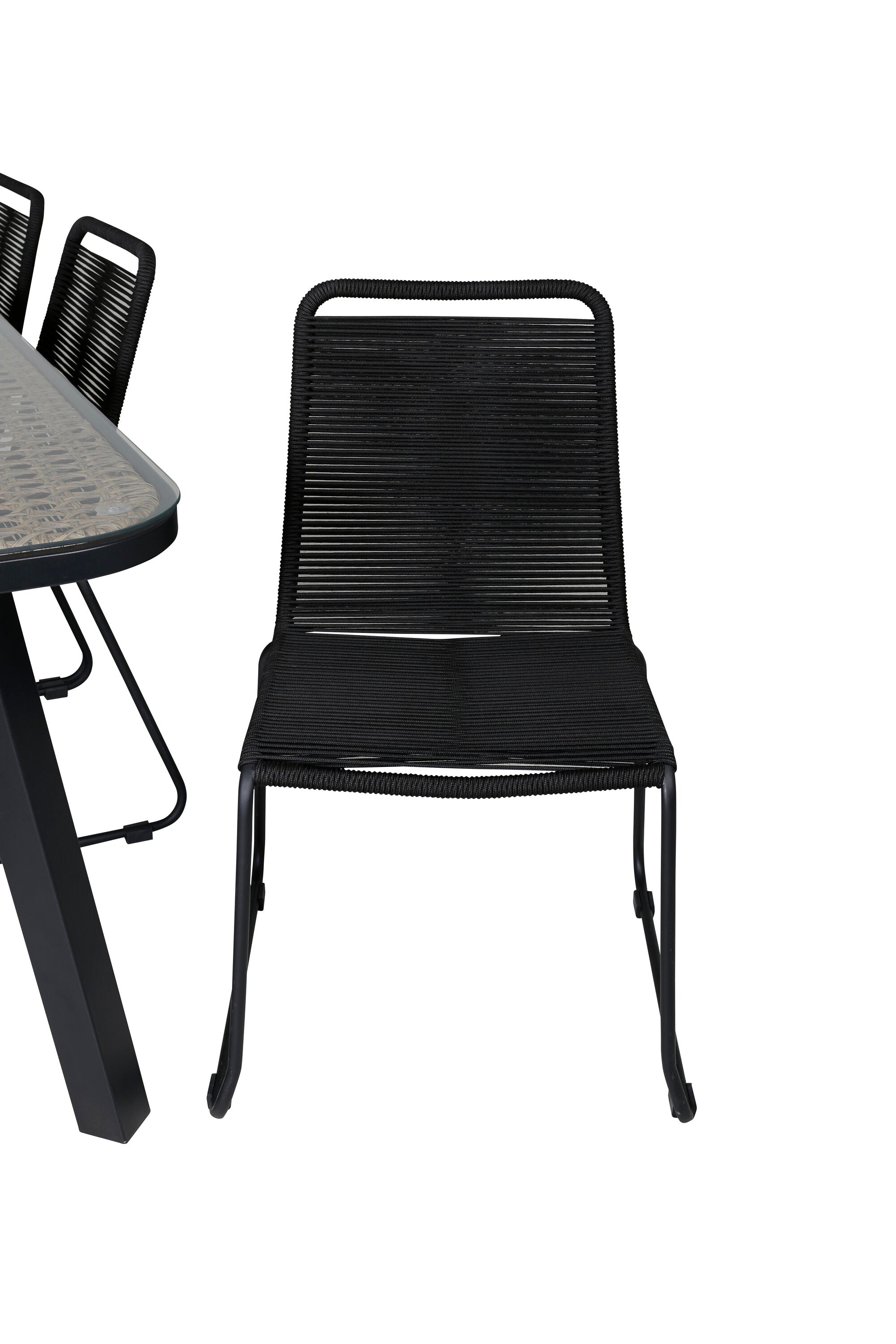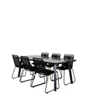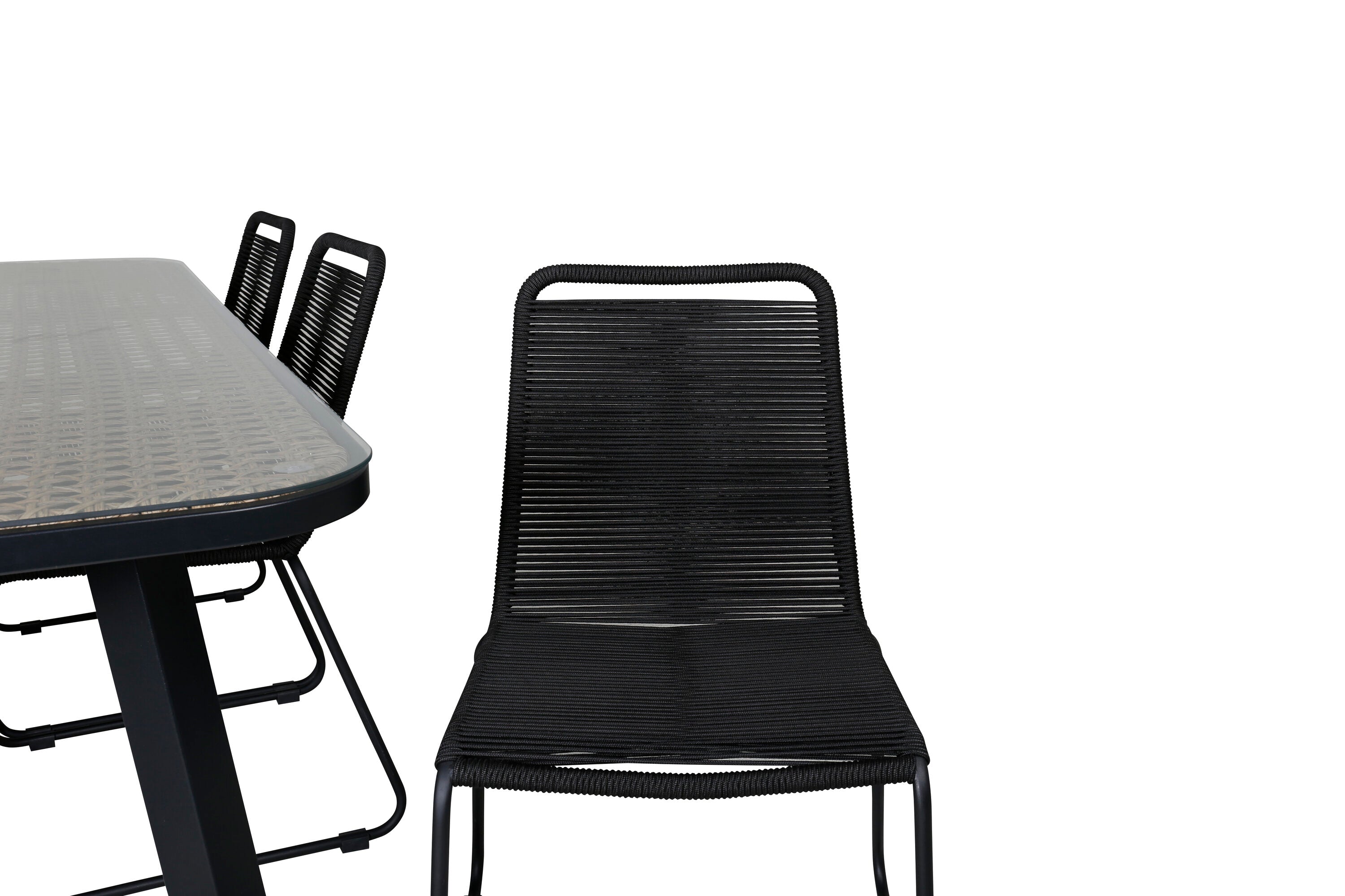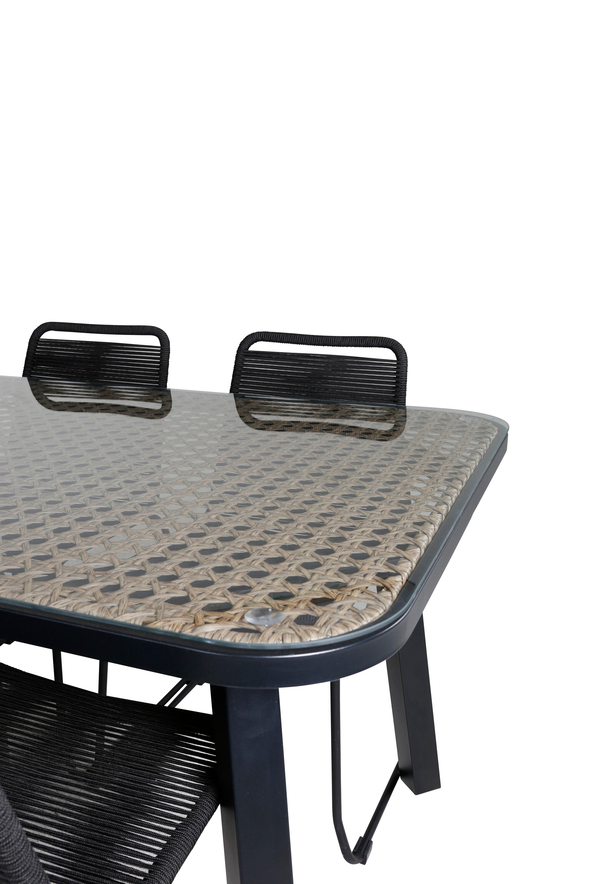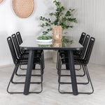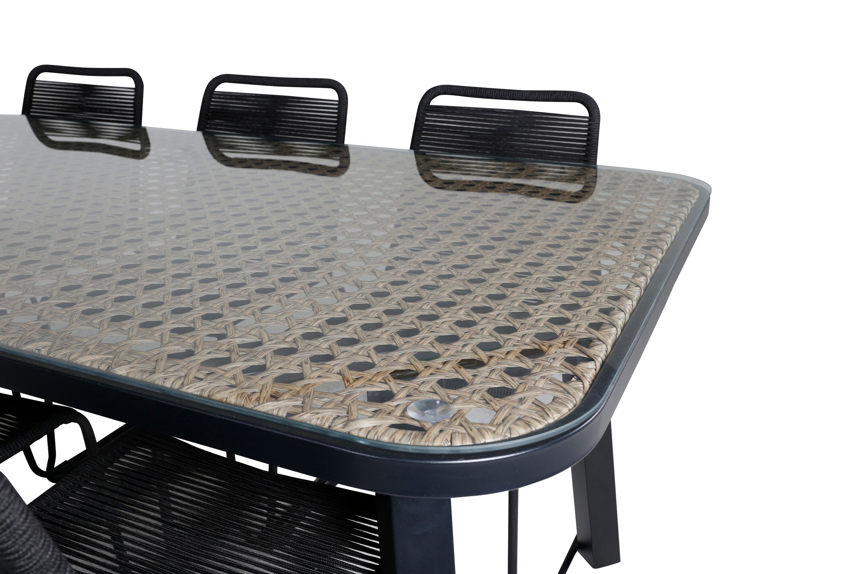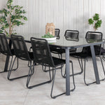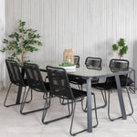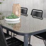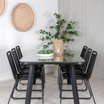 Jídelní stůl Paola - černá ocel / přírodní proutí - 200*100+Lindos stohovací židle - černá Alu / černé lano_6