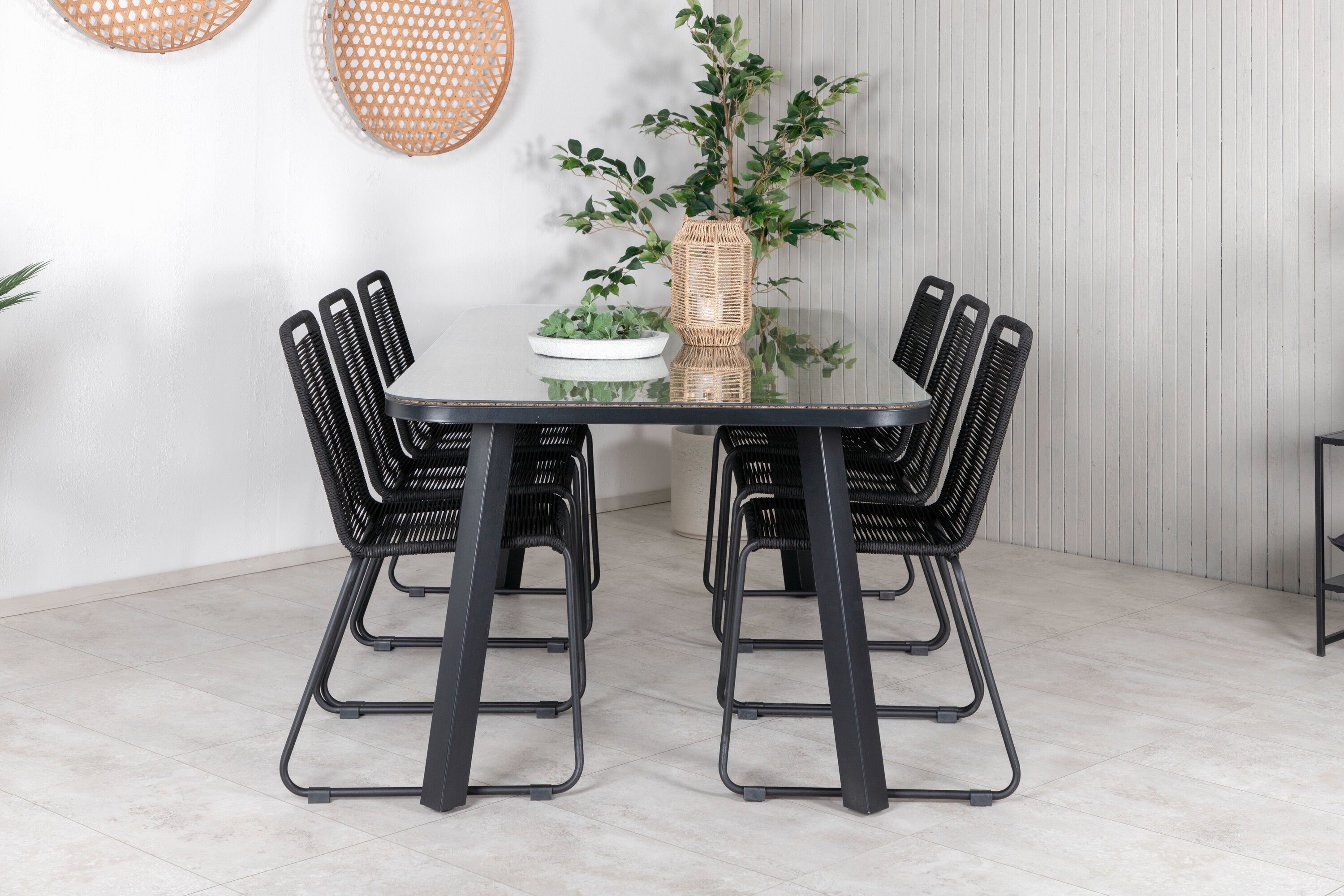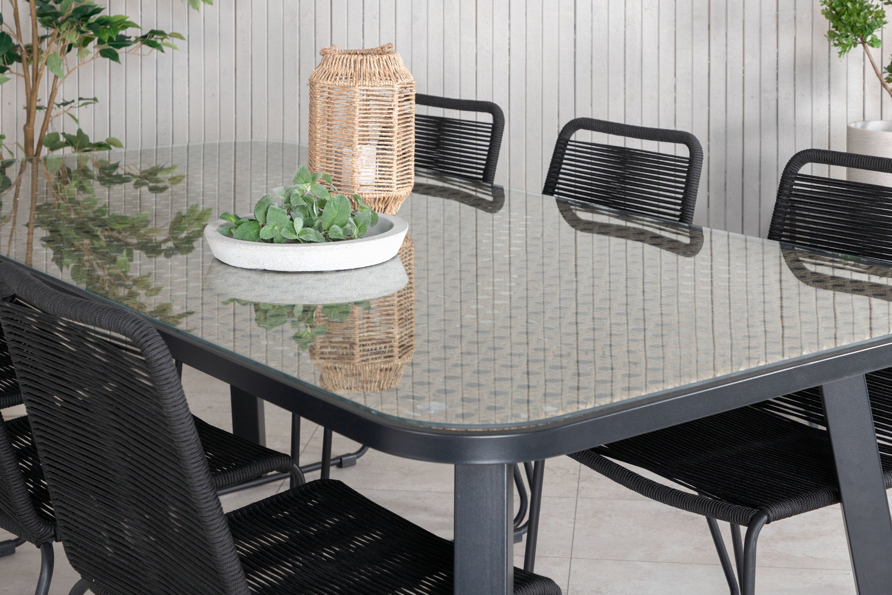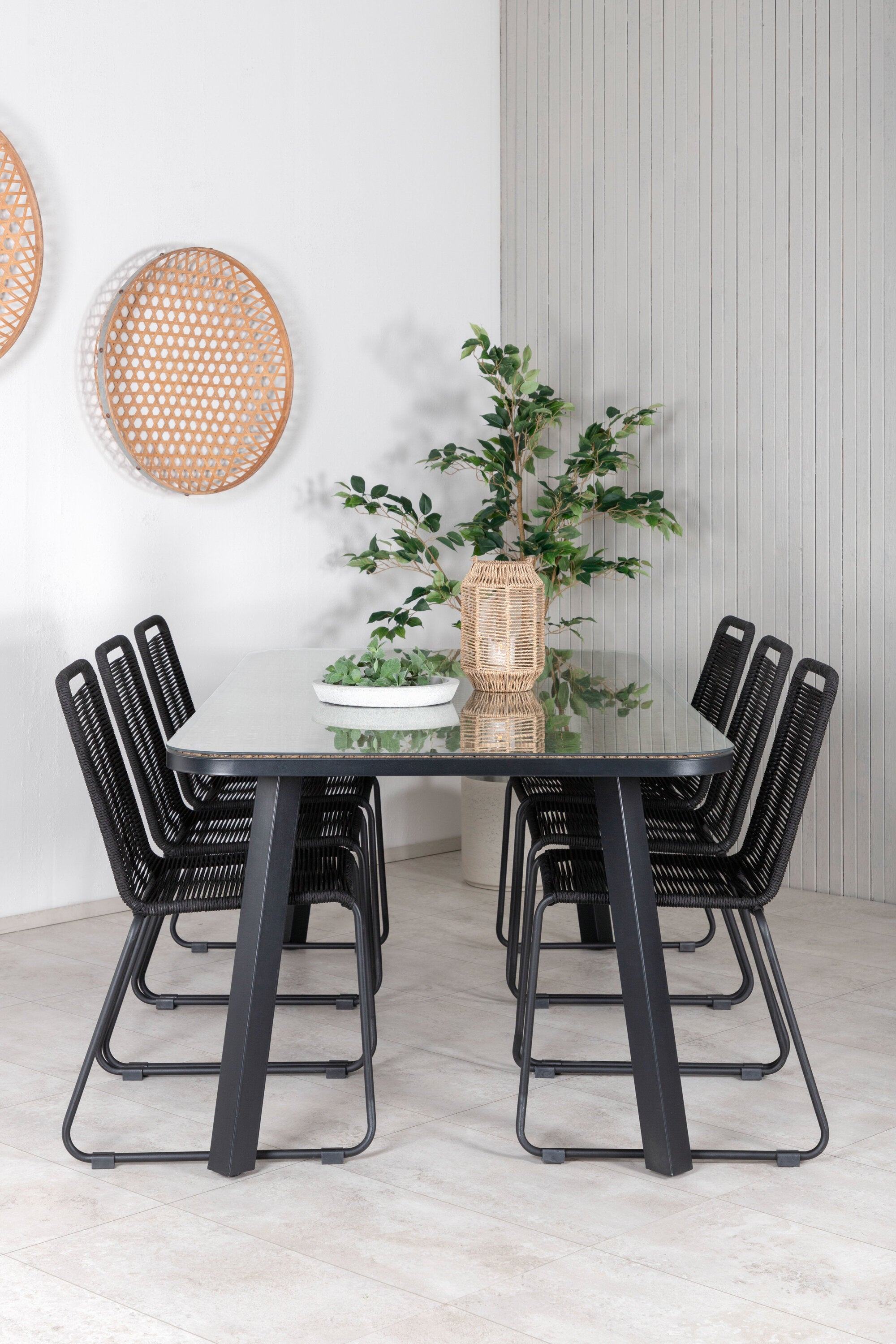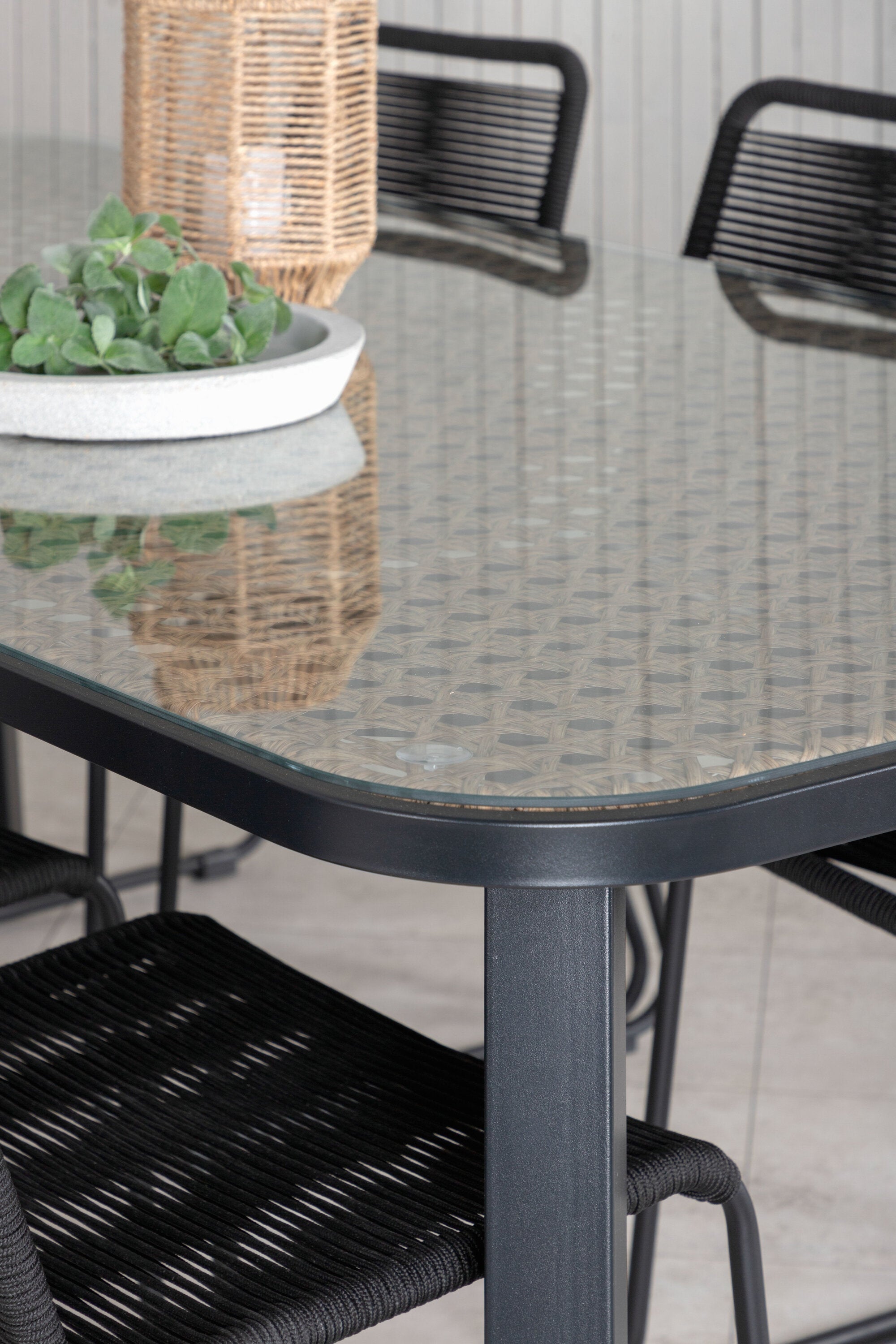Jídelní stůl Paola - černá ocel / přírodní proutí - 200*100+Lindos stohovací židle - černá Alu / černé lano_6