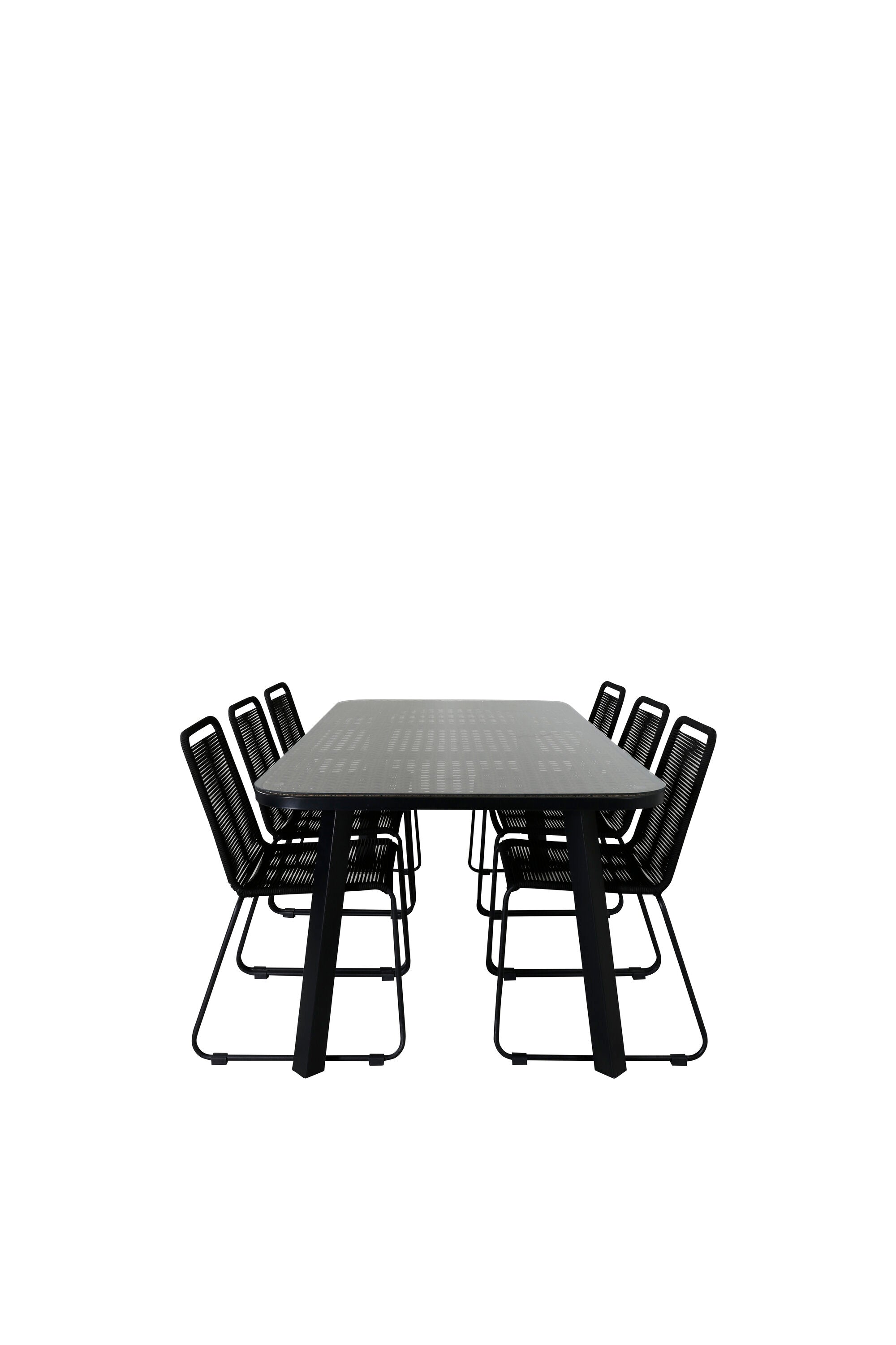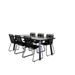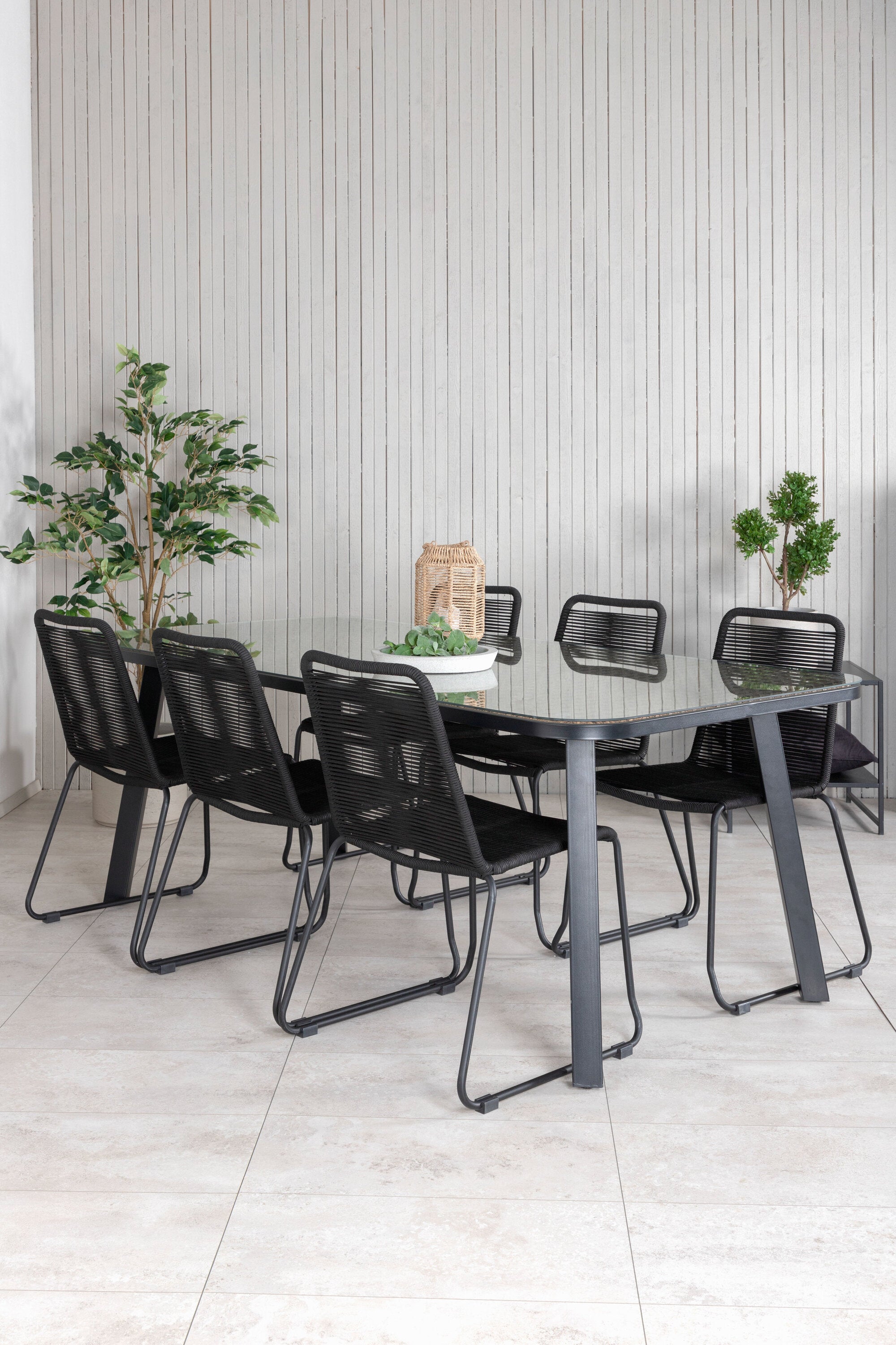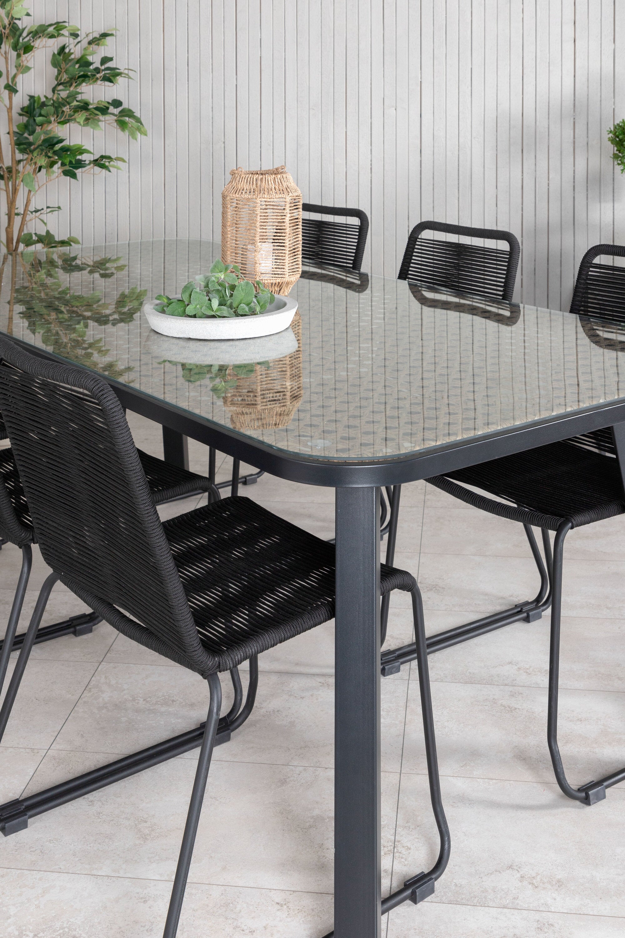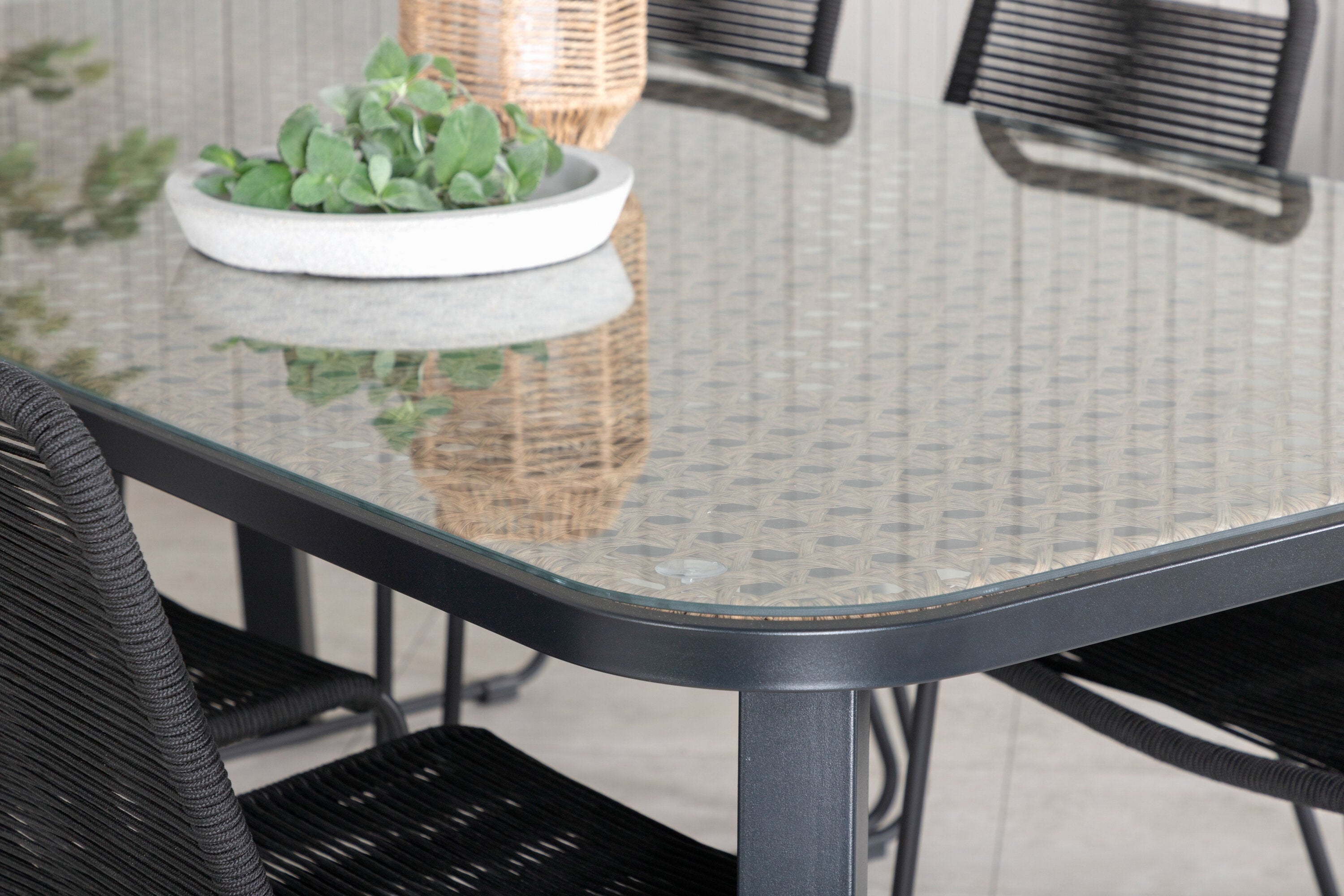 Jídelní stůl Paola - černá ocel / přírodní proutí - 200*100+Lindos stohovací židle - černá Alu / černé lano_6