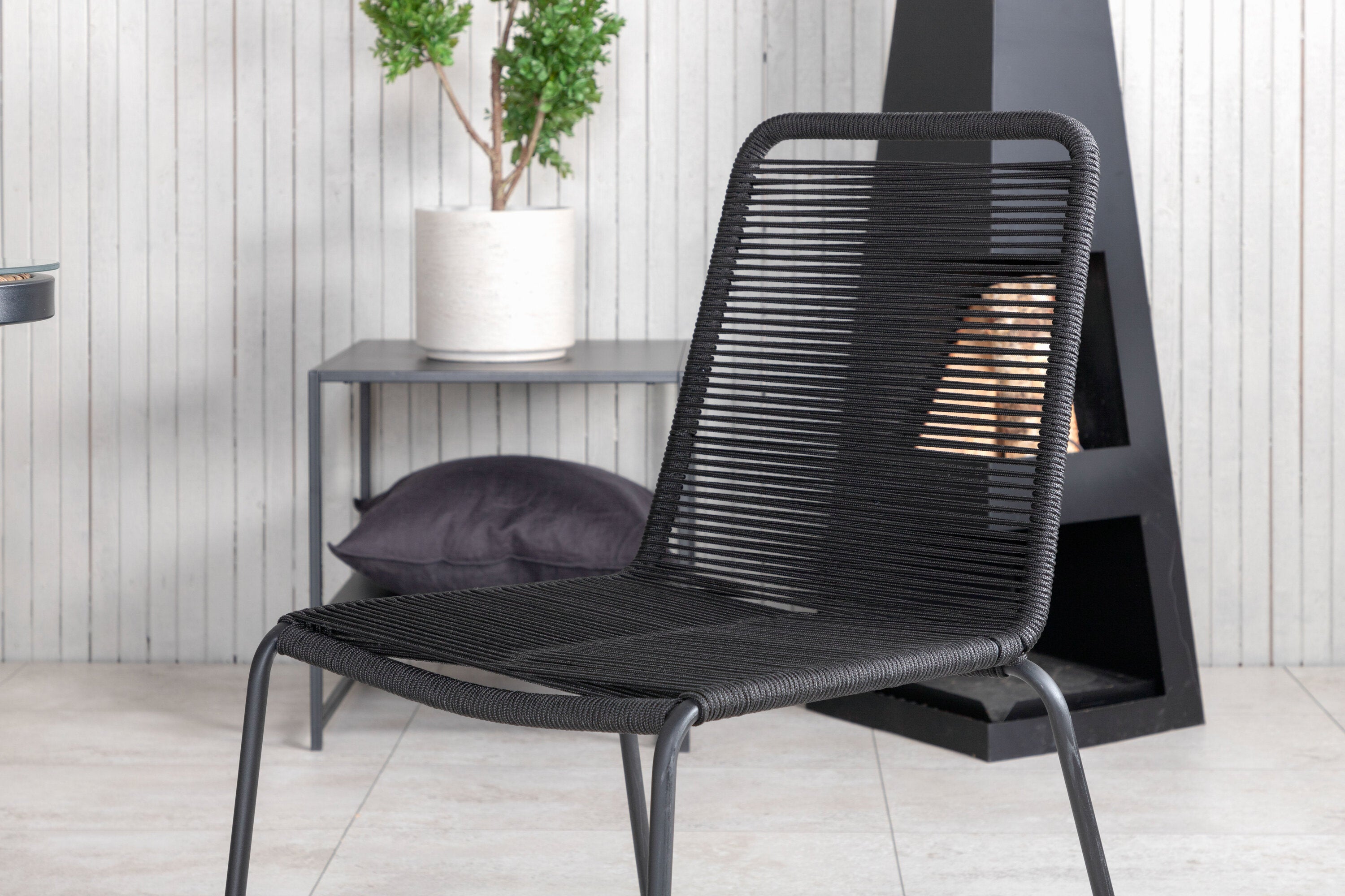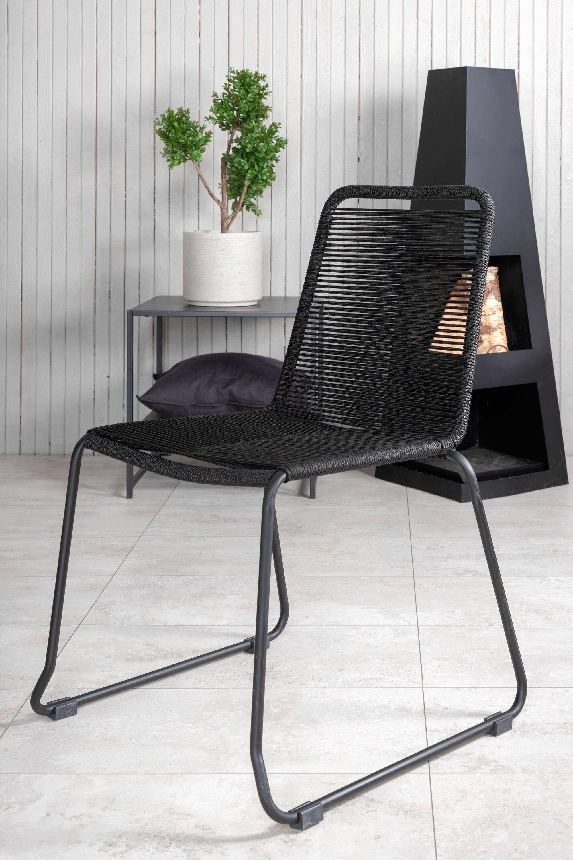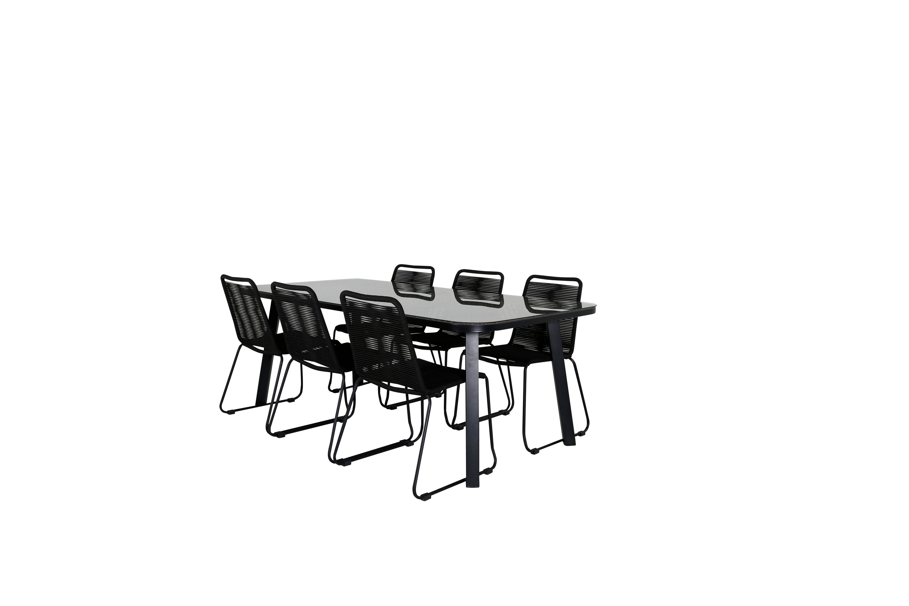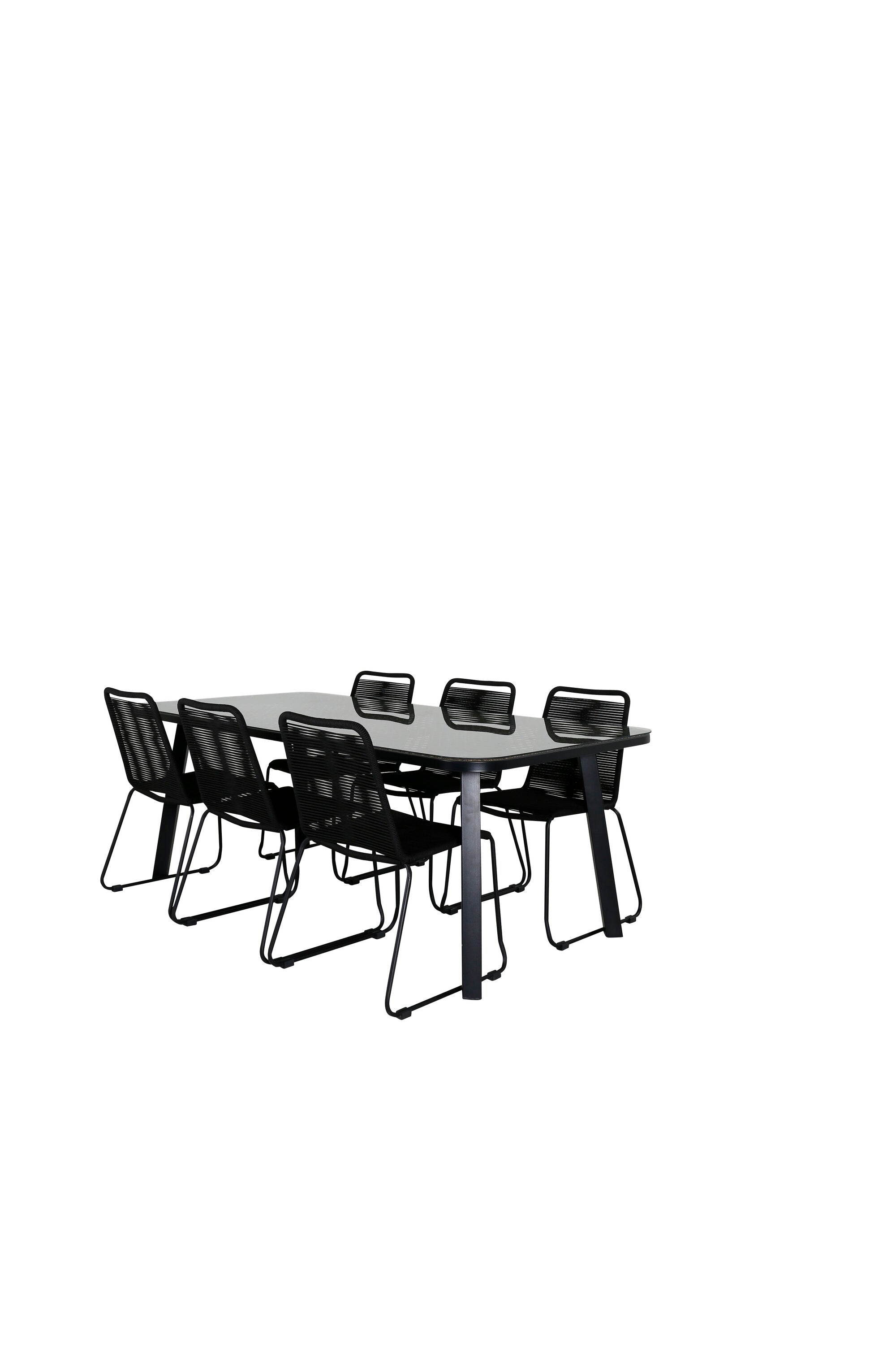 Jídelní stůl Paola - černá ocel / přírodní proutí - 200*100+Lindos stohovací židle - černá Alu / černé lano_6