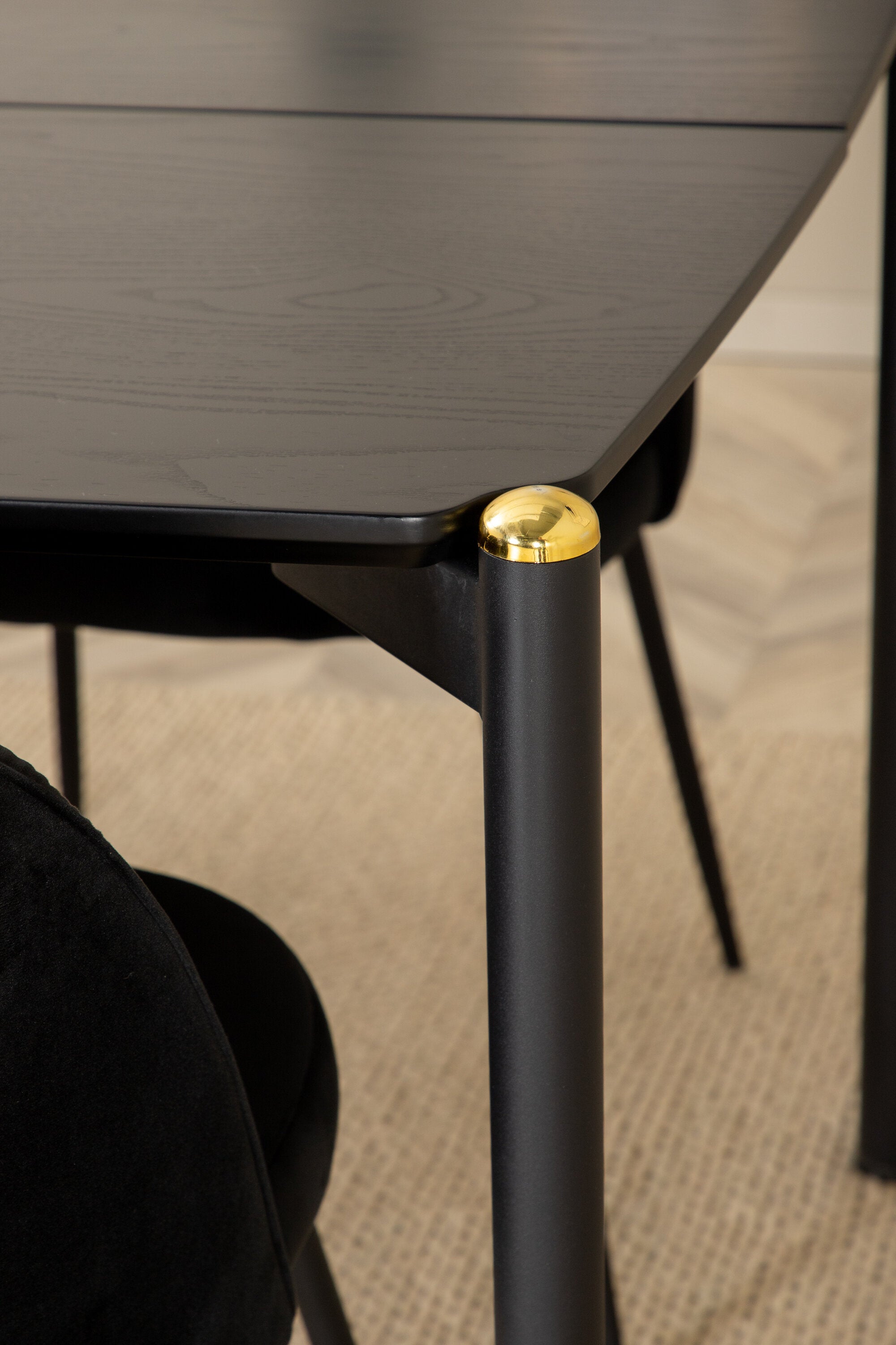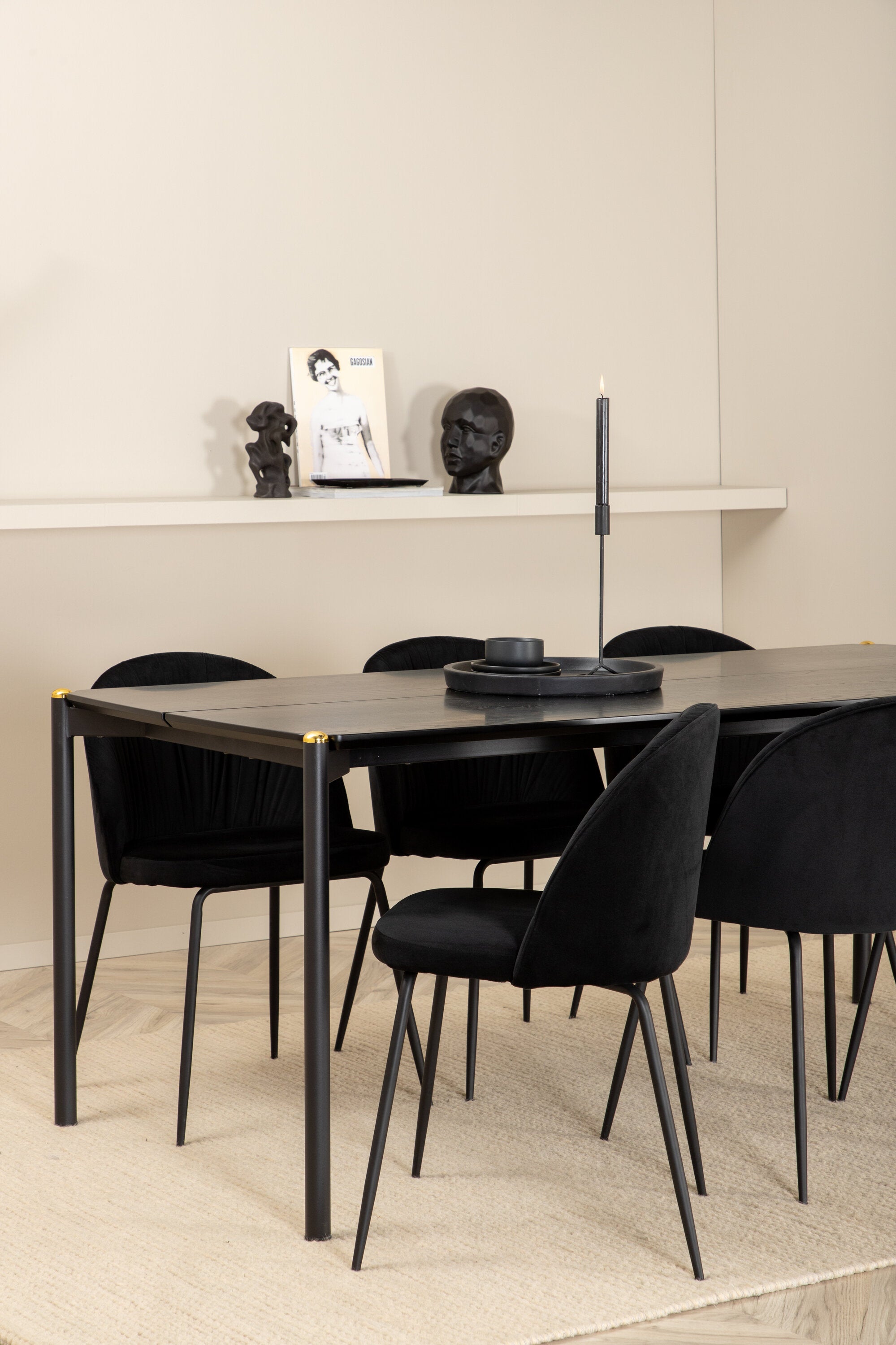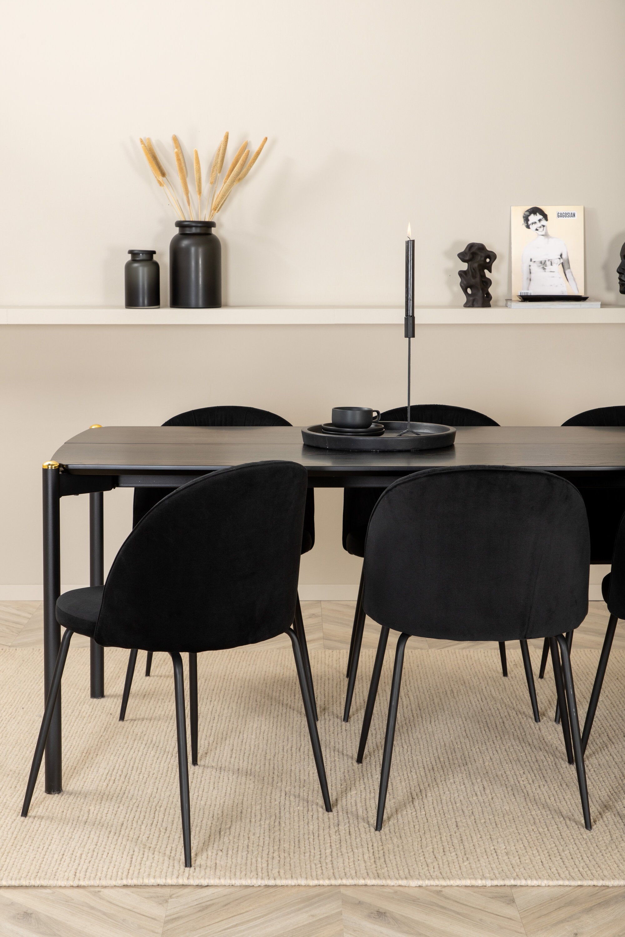 Jídelní stůl Pelle, černá černá Černá+Wrinkles jídelní židle, černé nohy, černá Velvet_6