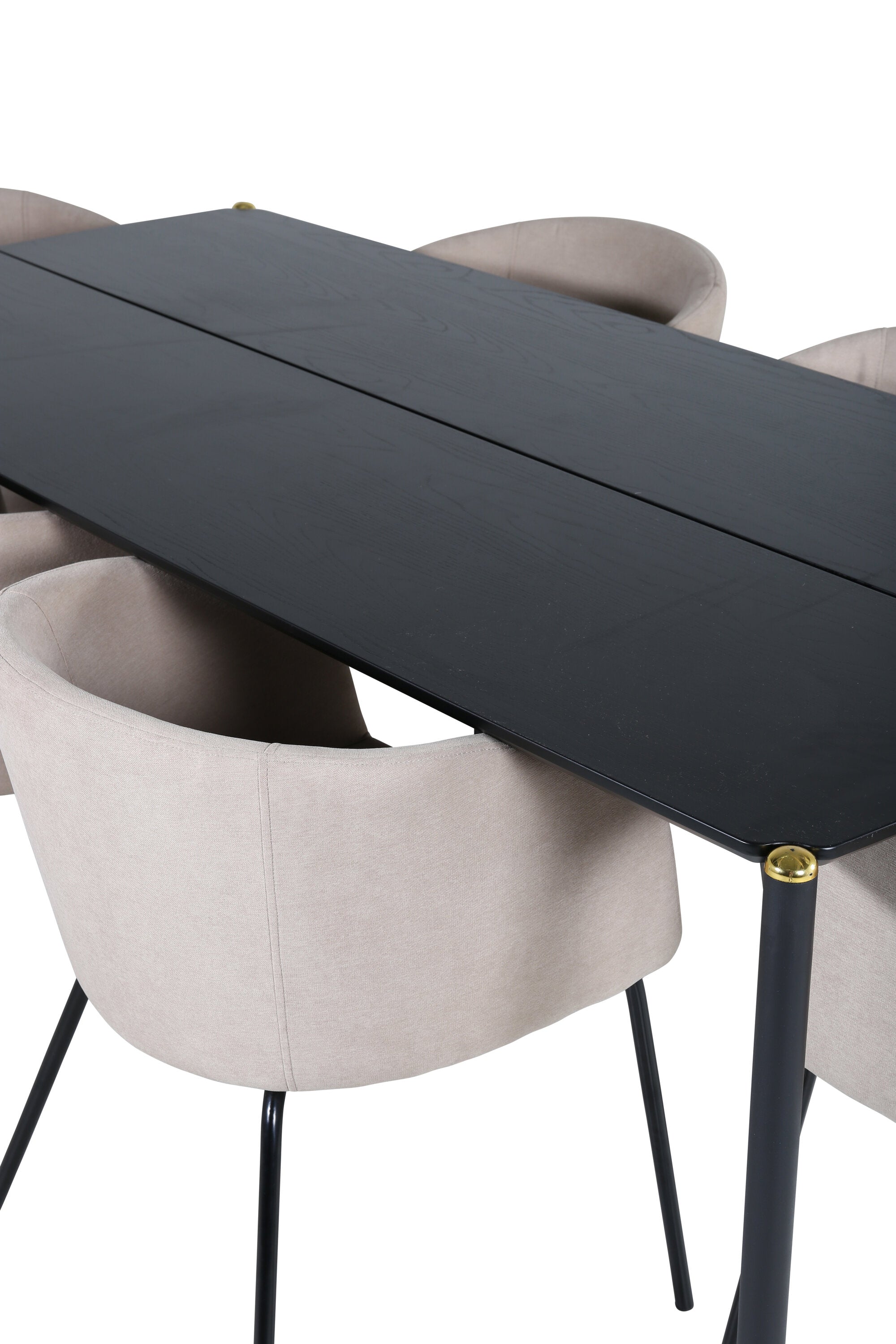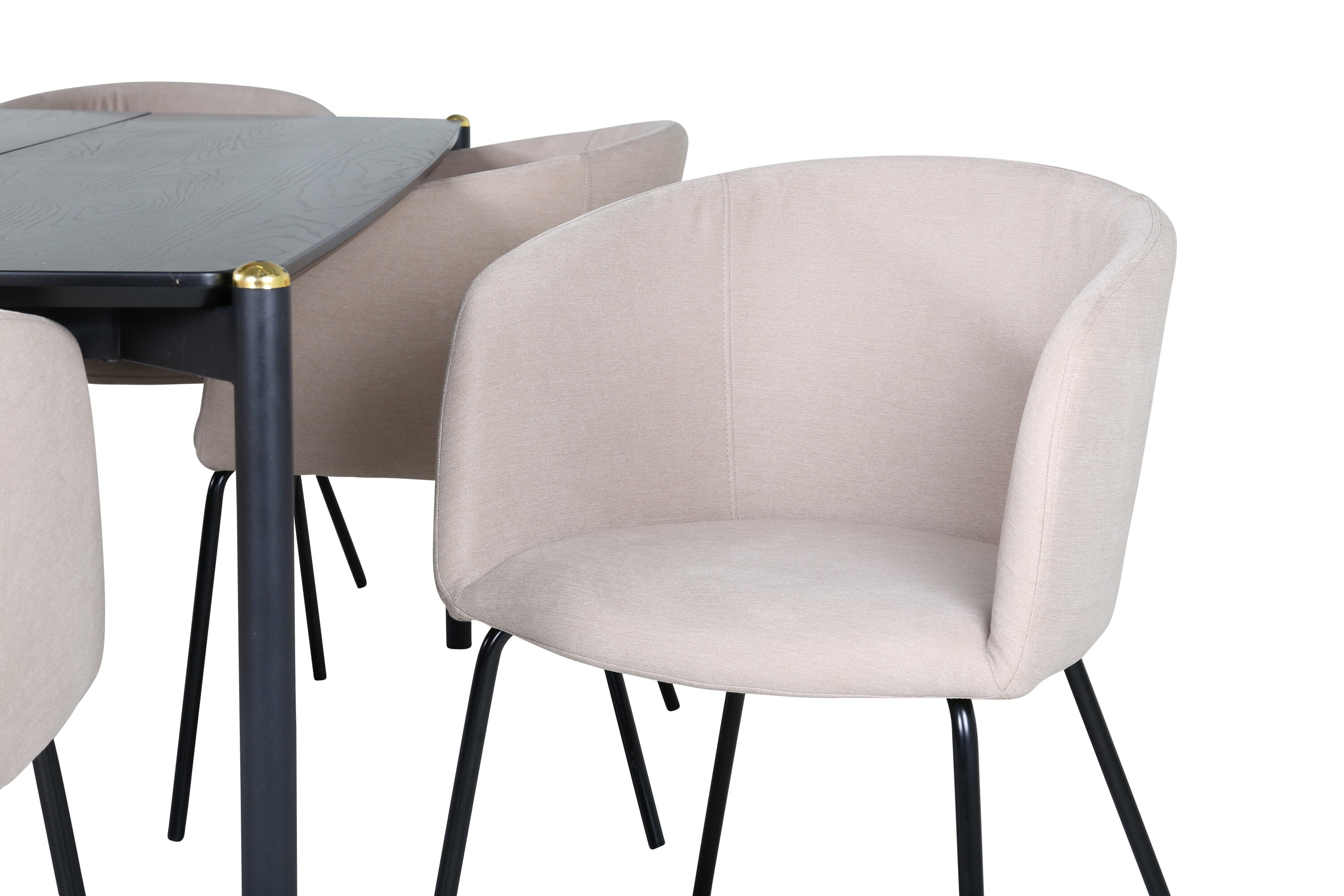 Jídelní stůl Pelle - černá / černá Černá+židle Berit - černá / béžová látka (polyesterové prádlo)_6
