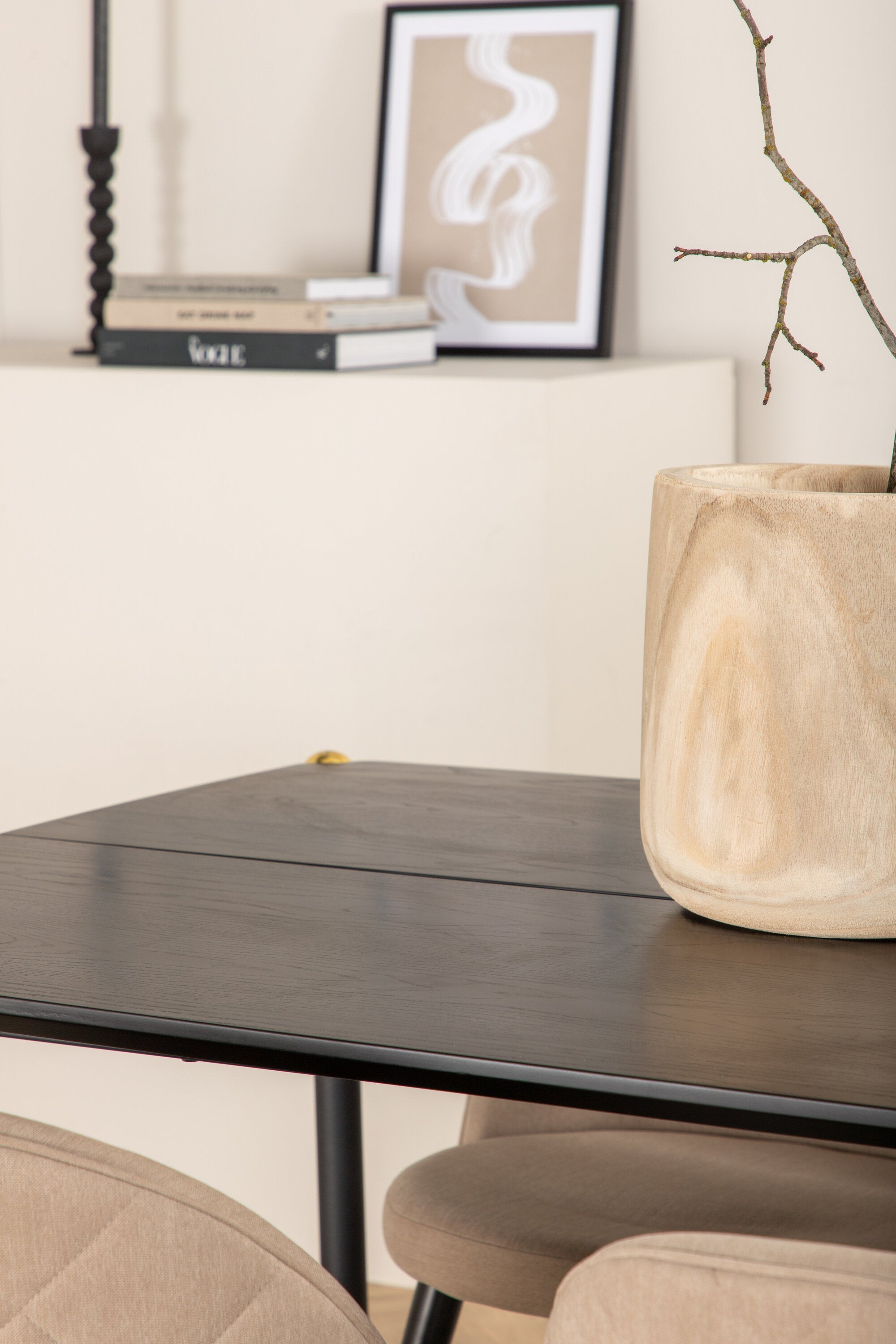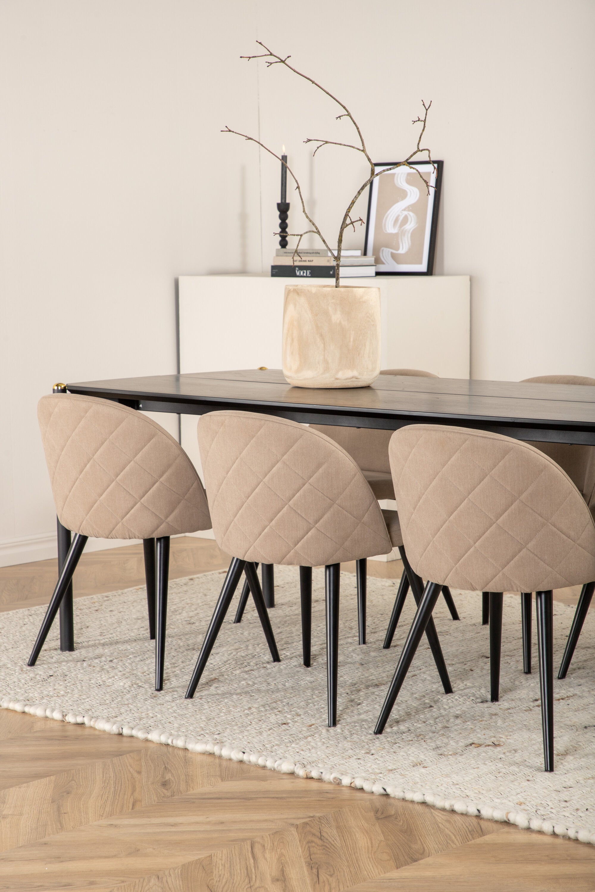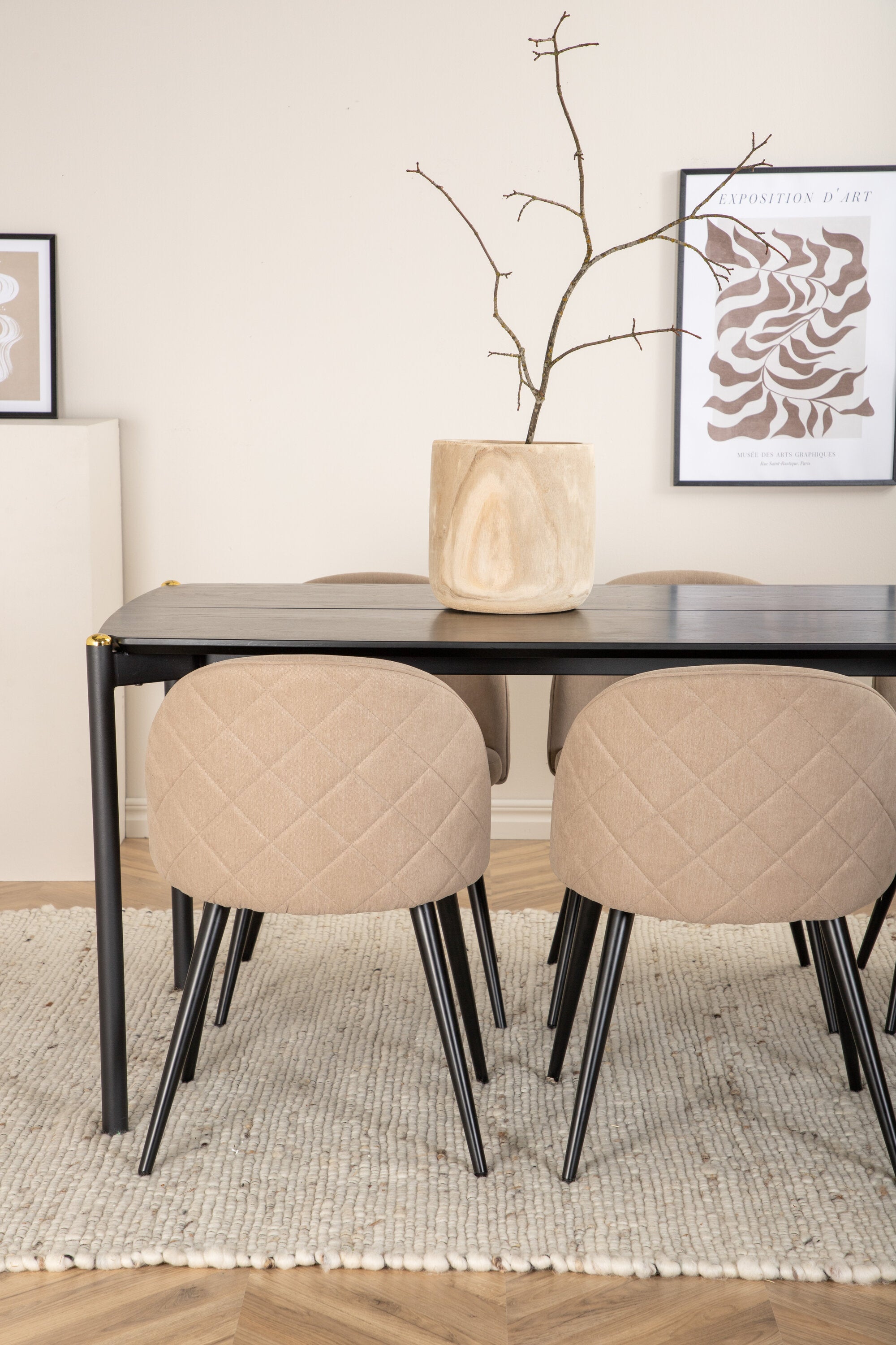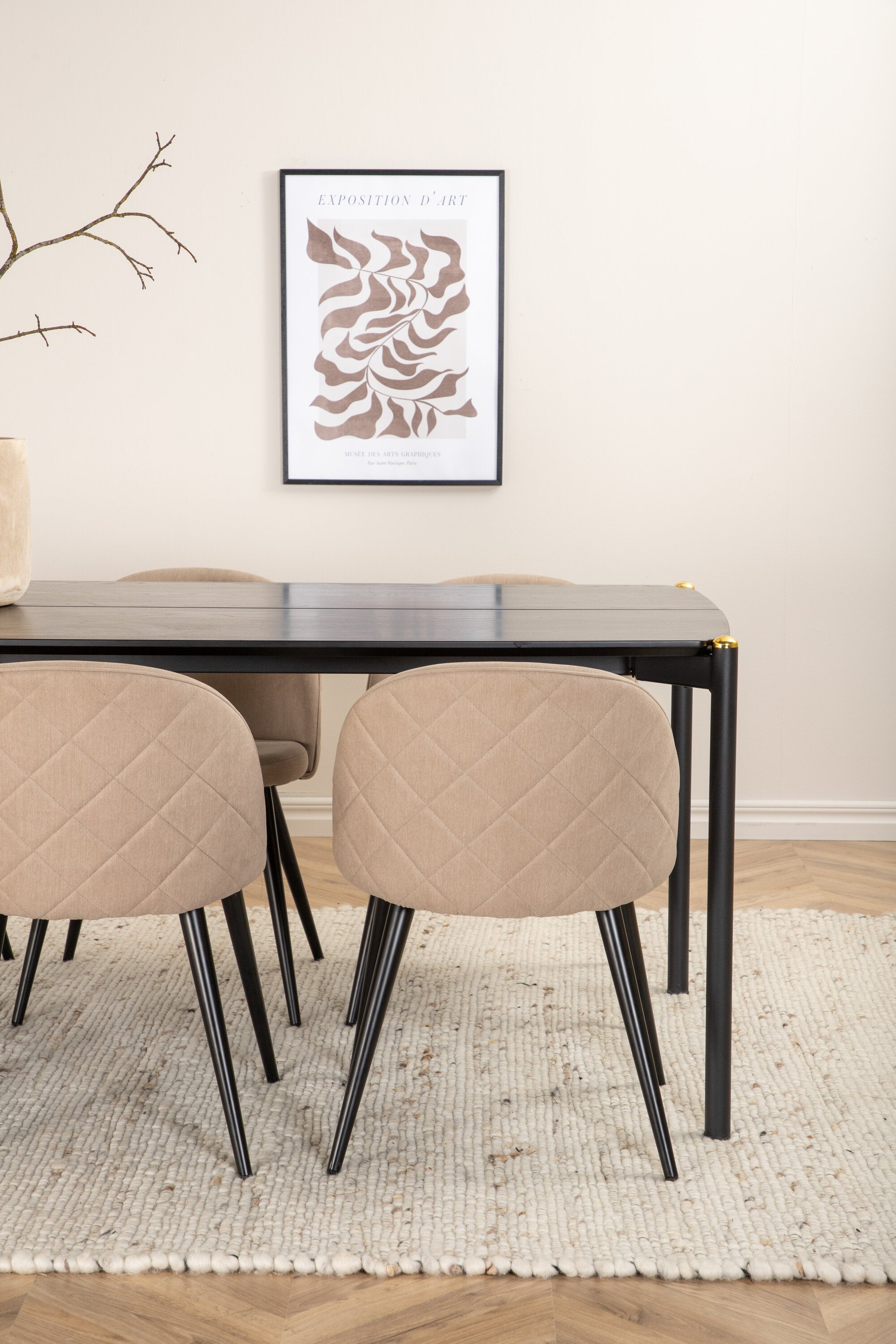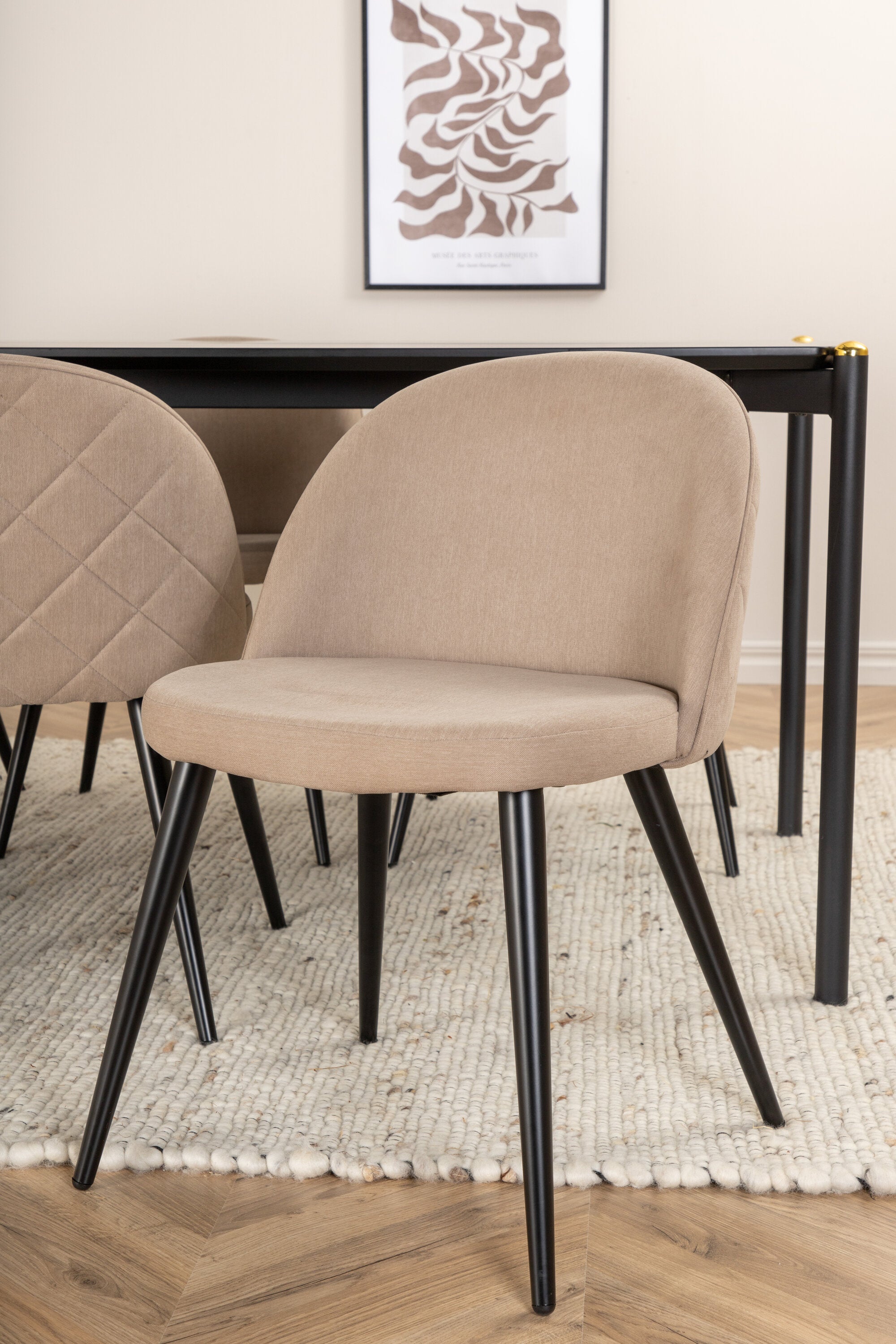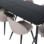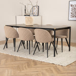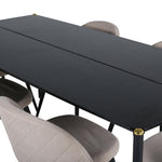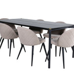 Jídelní stůl Pelle - Černá / černá Židle Black+Velvet Stitches - Černá / Béžová látka (polyesterové prádlo)_6