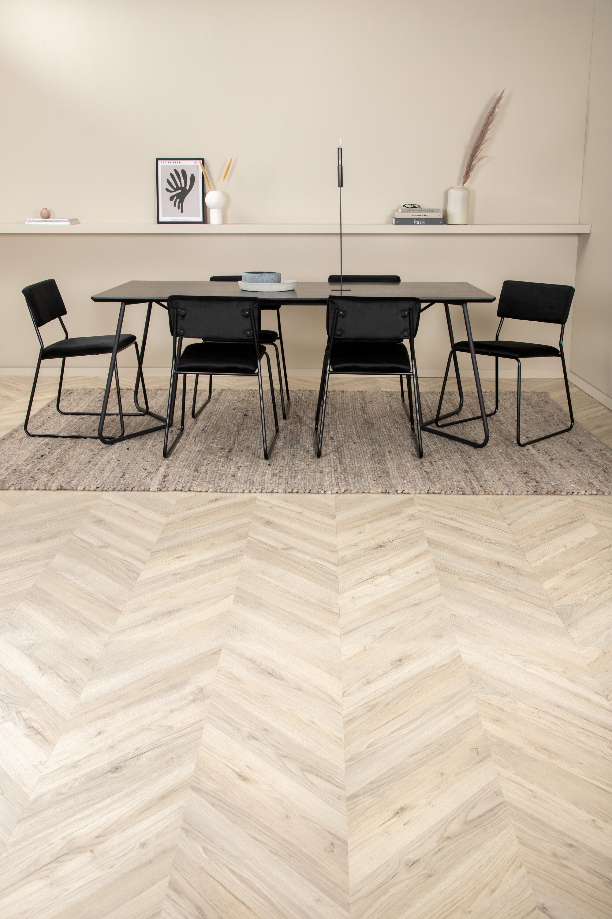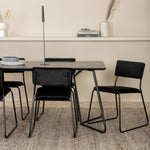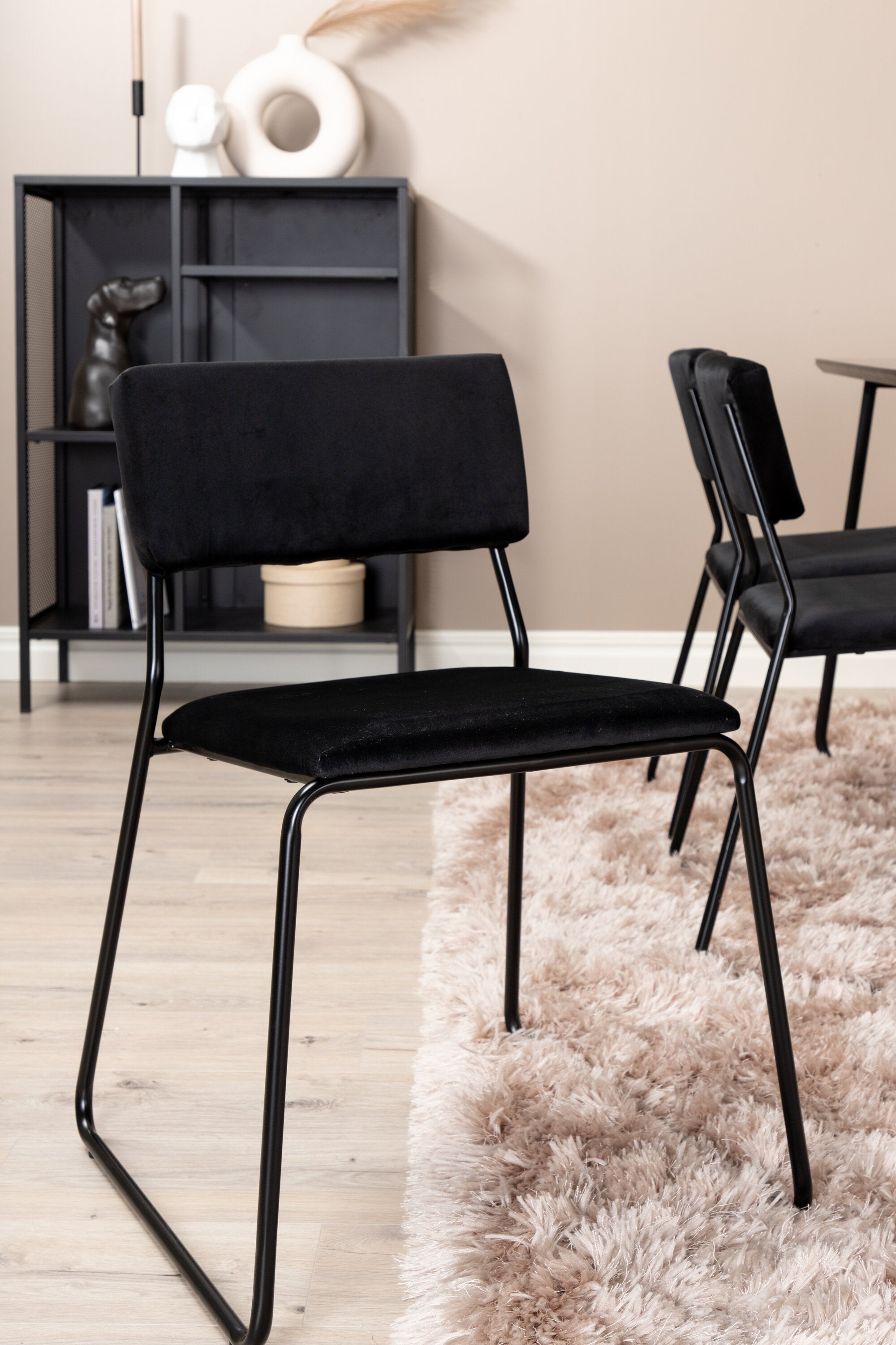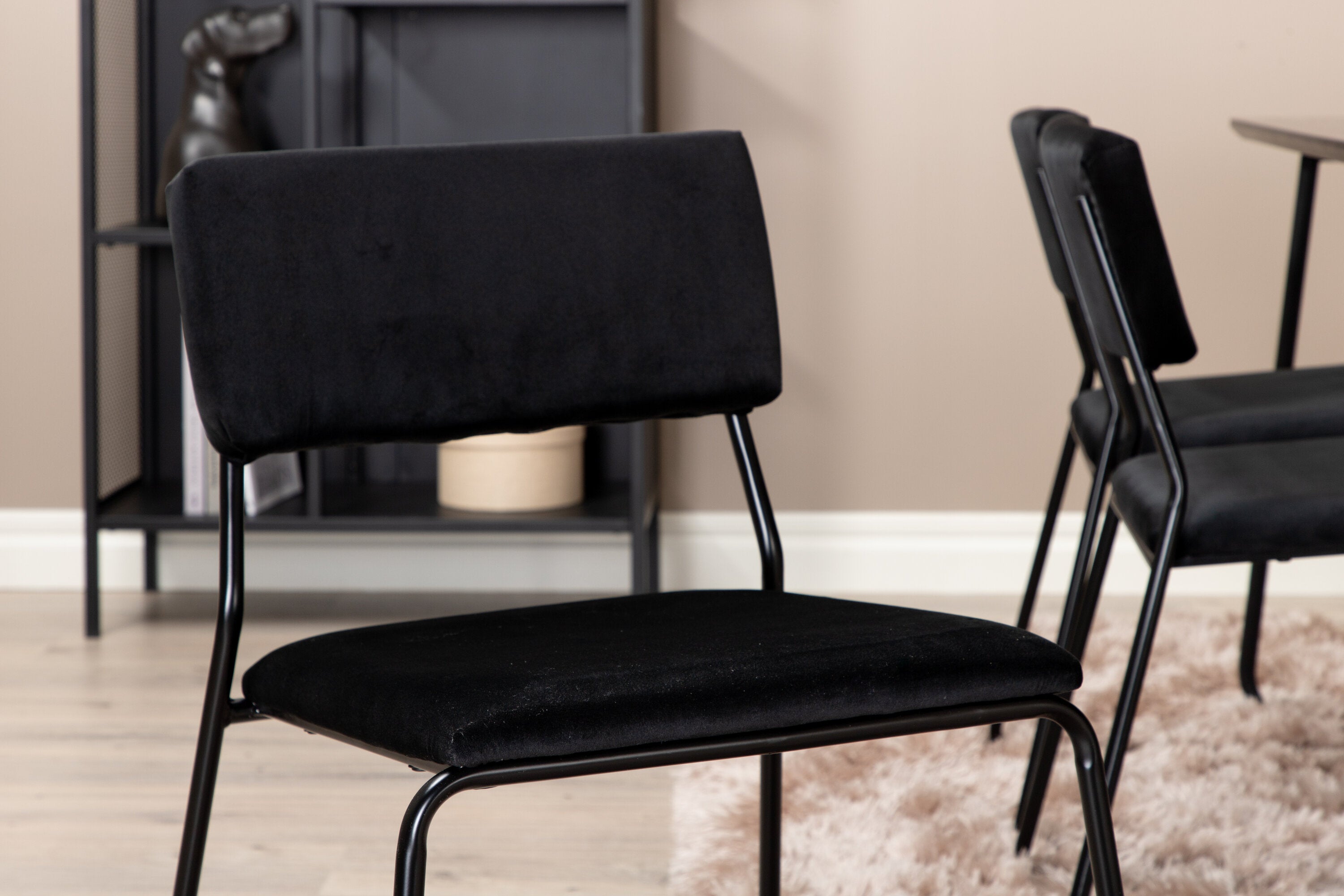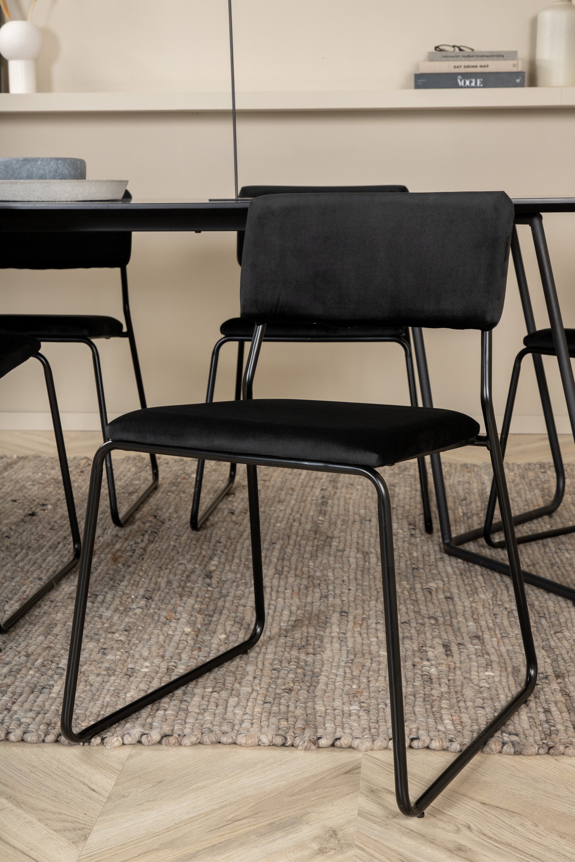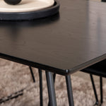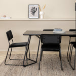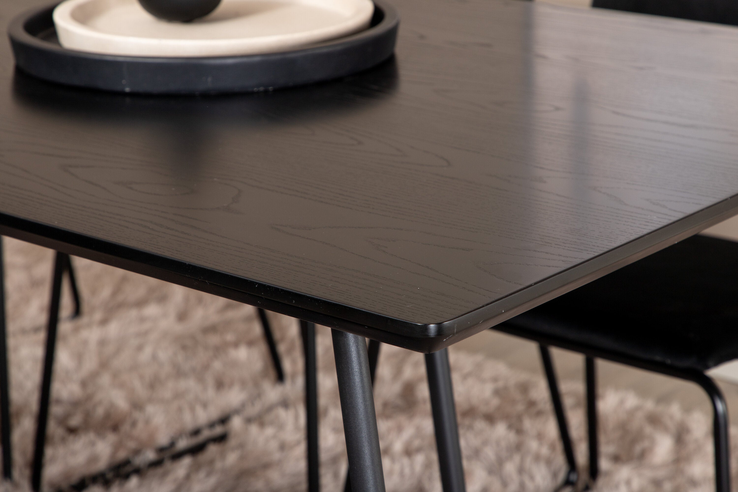 Příjemný, stylový a nadčasový - jídelní stůl Petra působí u vás doma módním dojmem! Design je dobře promyšlený se skandinávskými tvary, které dodávají stylový pocit, úzkými, mírně rozšířenými nohami ze železa a stolní deskou z černé MDF s dýhou. Rozměry stolu: Délka: 190 cm, Šířka: 90 cm, Výška: 75 cm. Sladěno se 6 jídelními židlemi Kenth v černé barvě s železnými nohami židlí a sedáky z měkké sametové látky. Rozměry židle: Výška: 76 cm, výška sedáku: 48,5 cm, šířka: 40 cm, hloubka: 52 cm. Nechte zdobit srdce domova touto poutavou skupinou jídel!