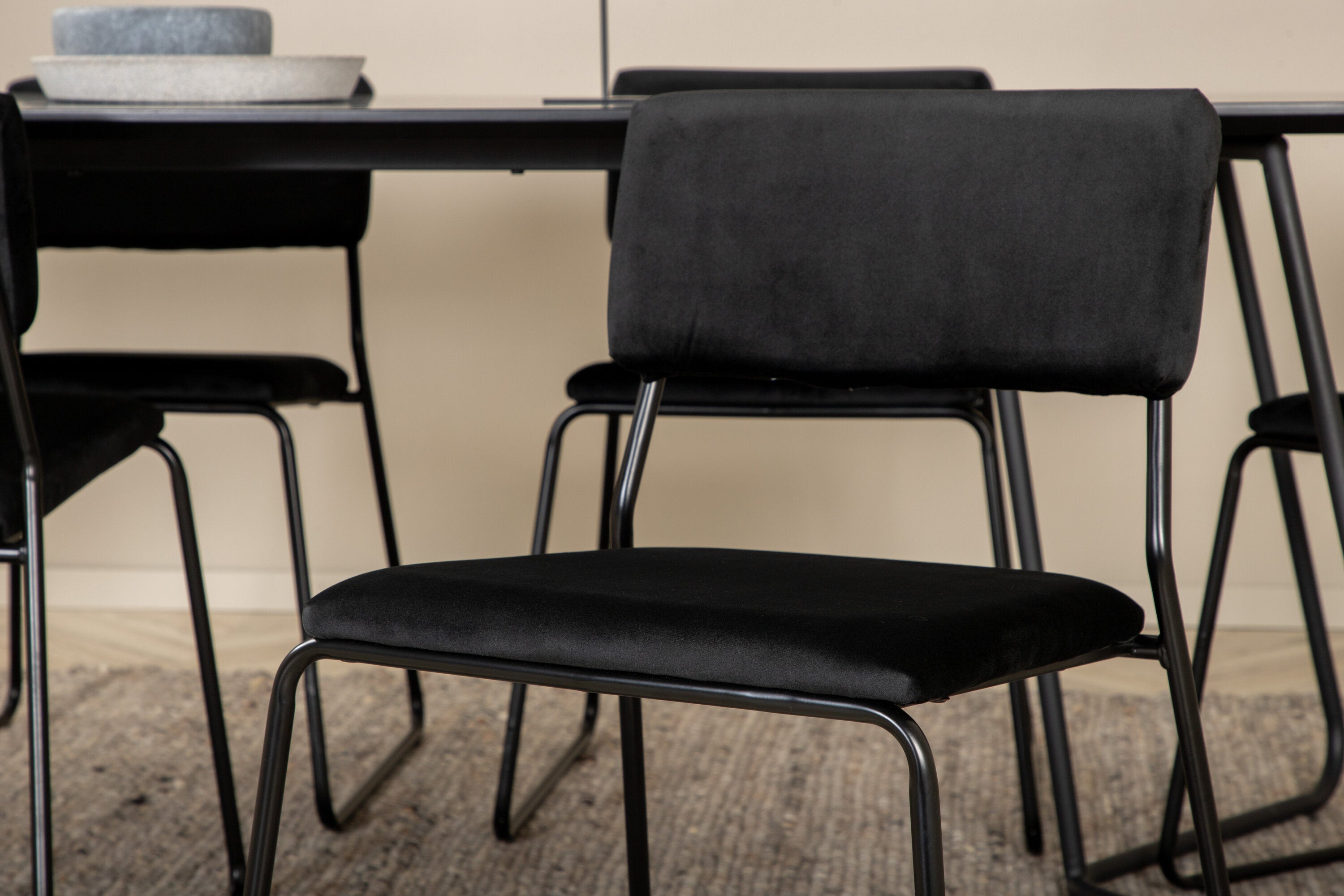 Jídelní stůl Petra , černá černá dýha + židle Kenth , černý černý samet_6