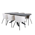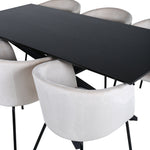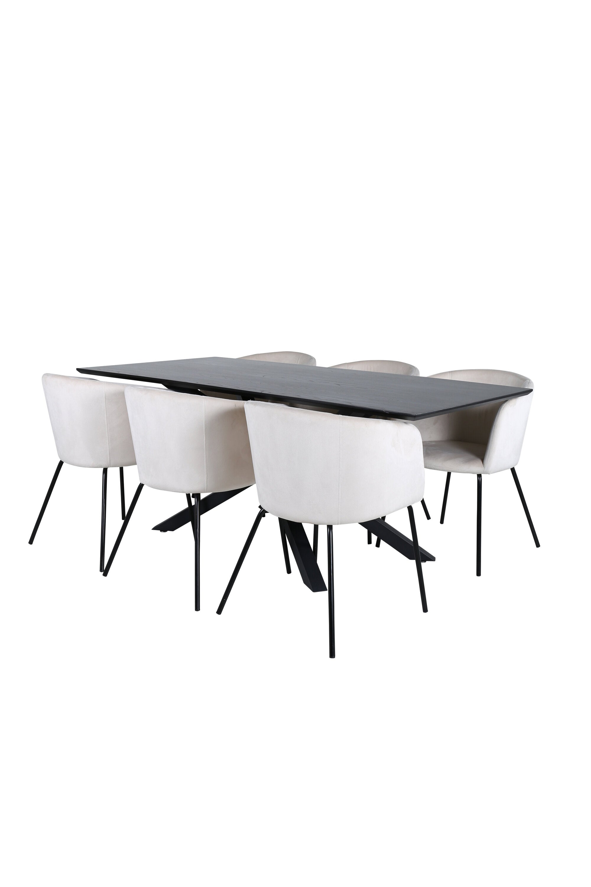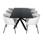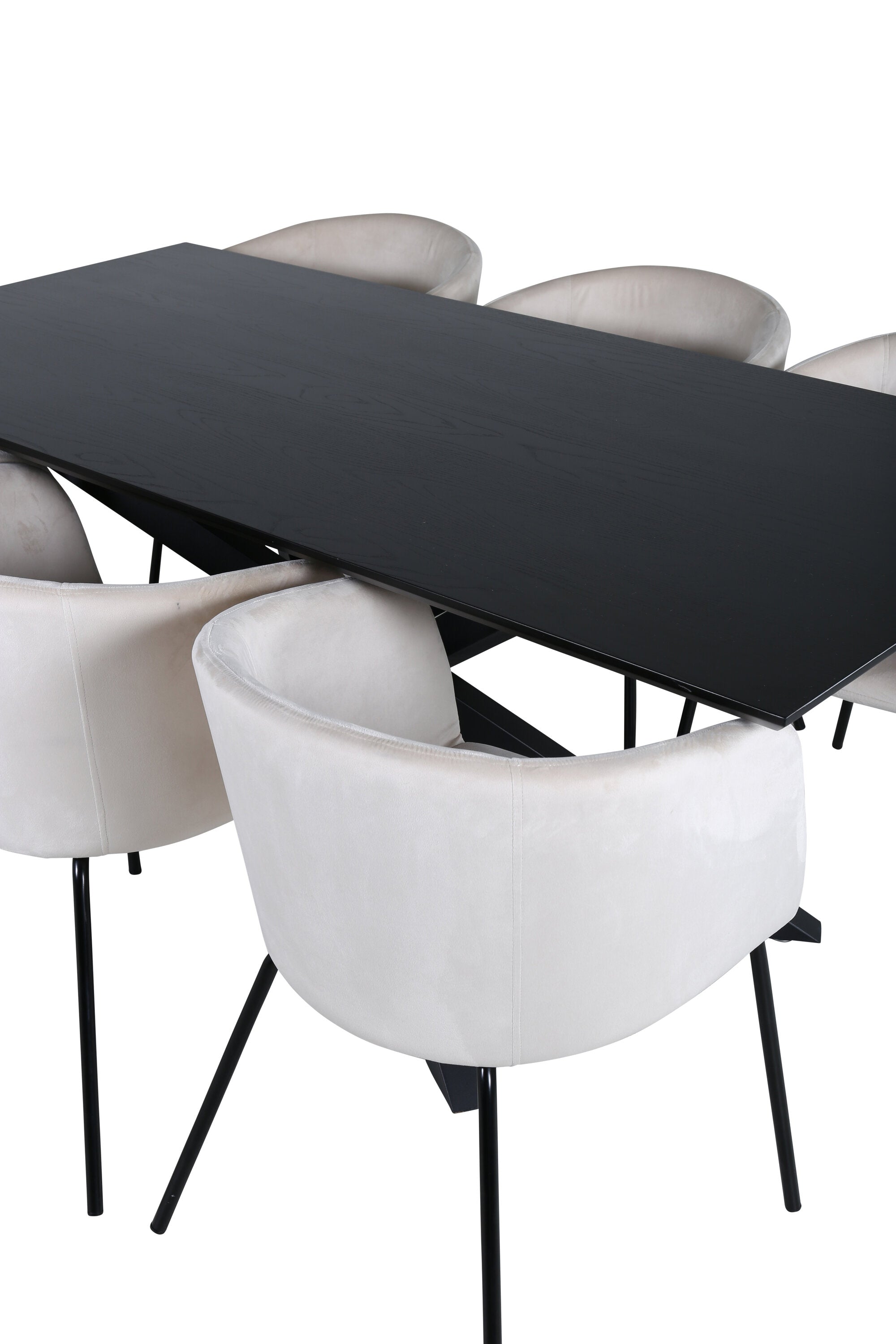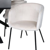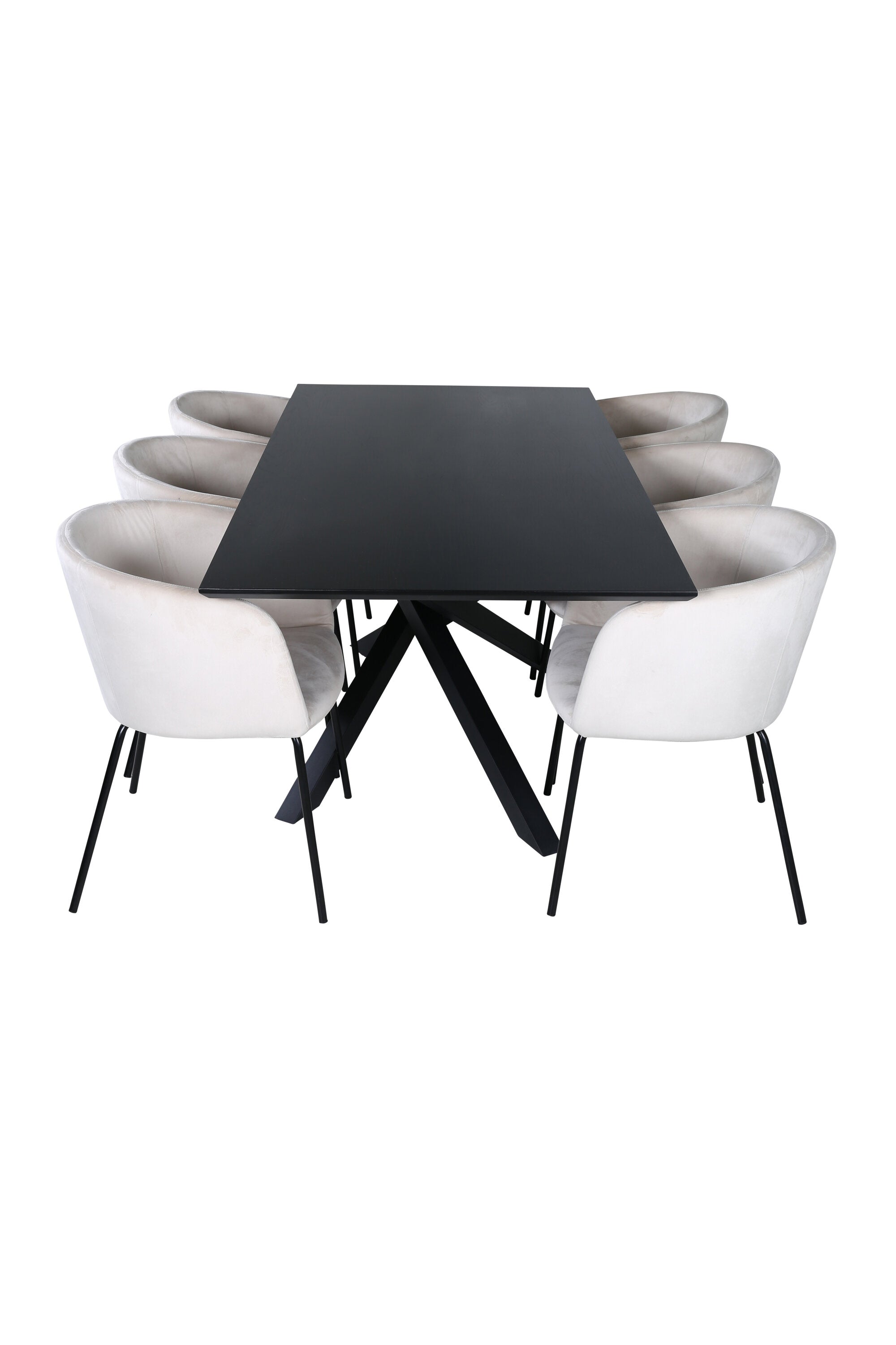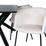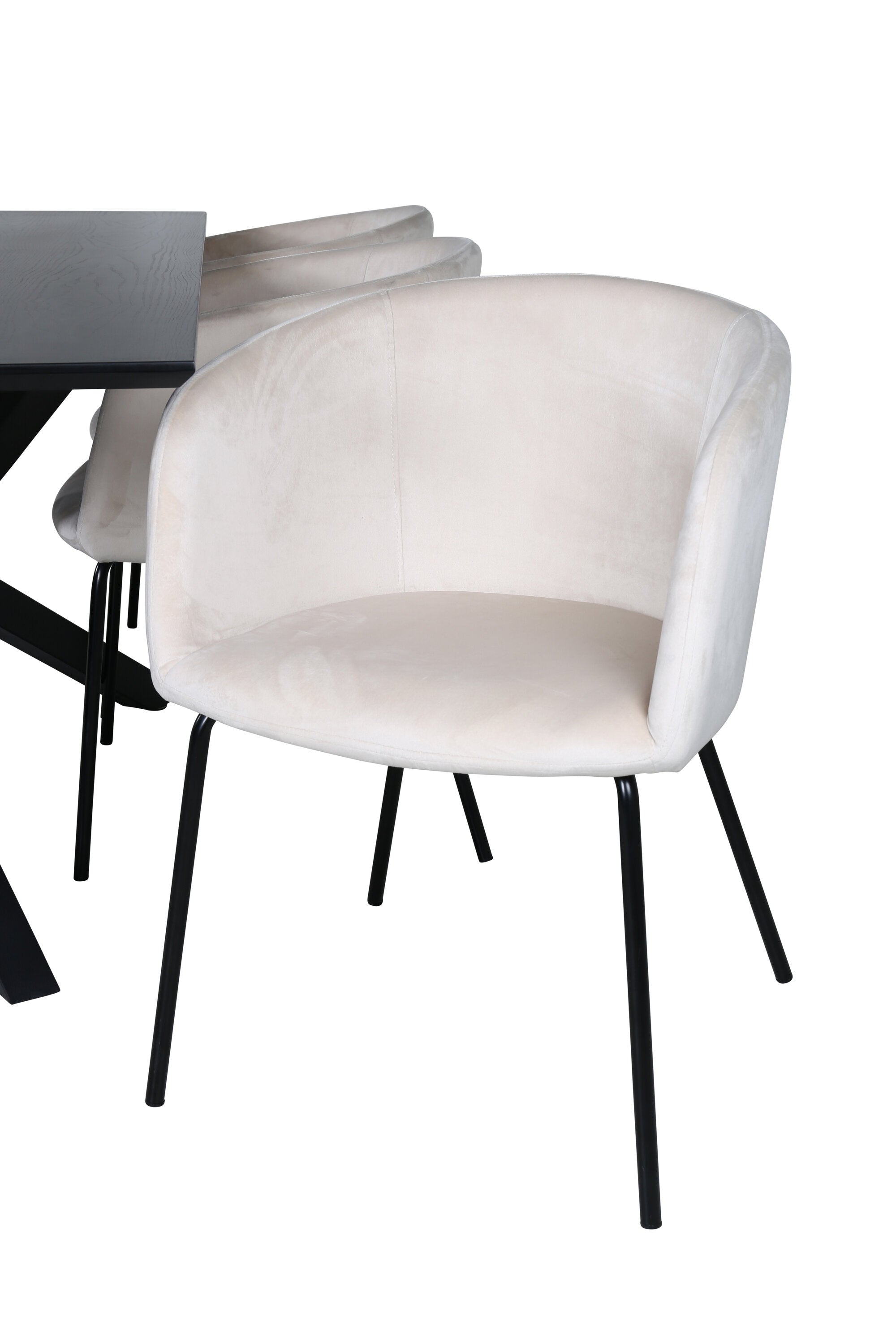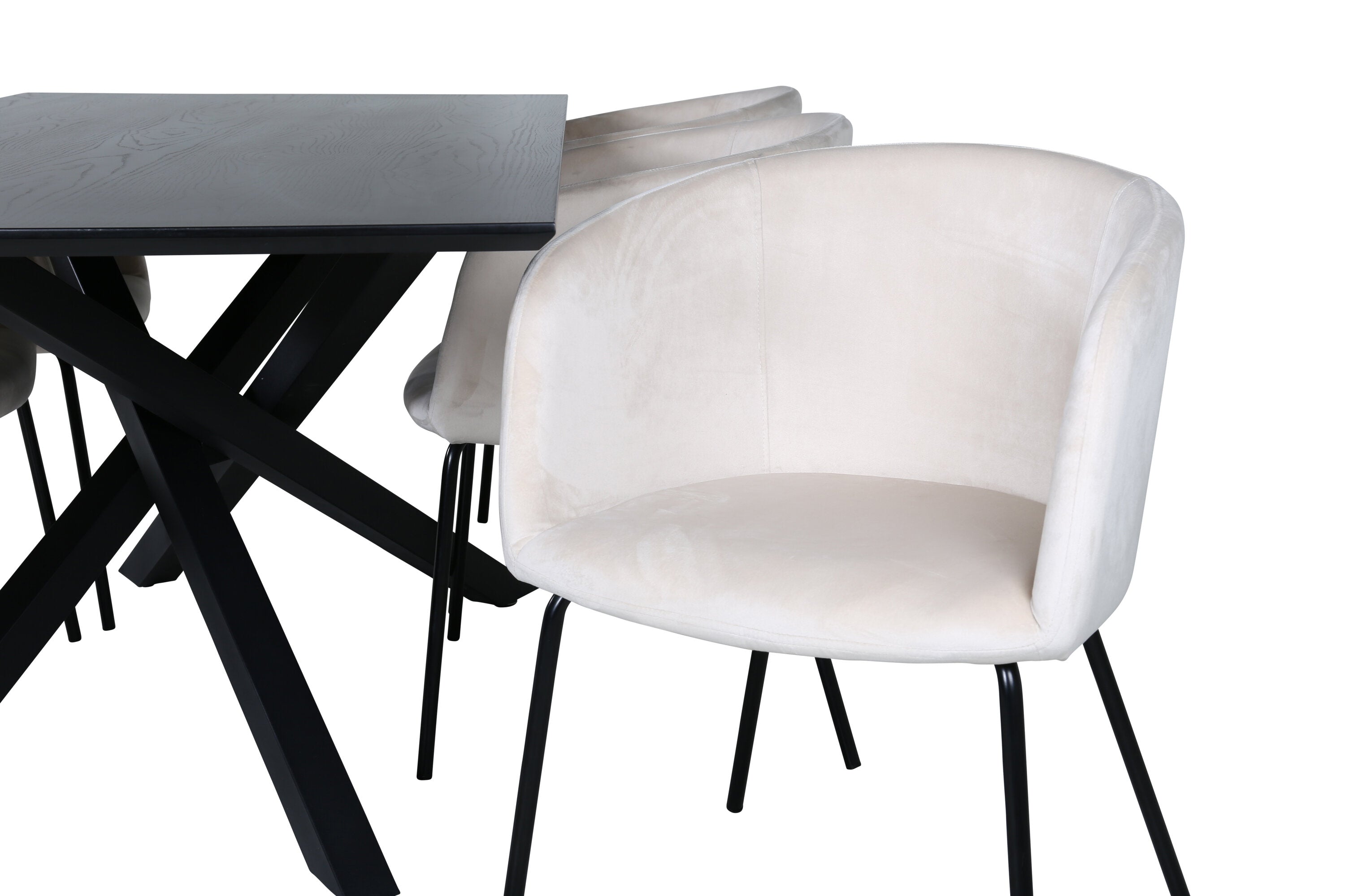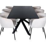 Vytvořte poutač, který zaujme! Piazza je náš oblíbený obdélníkový jídelní stůl s luxusním dojmem a trendy detaily v designu. Deska stolu je vyrobena z MDF dýhy v mazané černé barvě a korpus tvoří pevný poutač s příčnými nohami z černého železa. Zde v nádherné kombinaci s našimi elegantními jídelními židlemi ze série Berit. Židle má luxusní design v béžovém sametu a nohy židle jsou stylově úzké v černém železe. Zařiďte lákavě a vytvořte si stylový vzhled vašeho domova!
