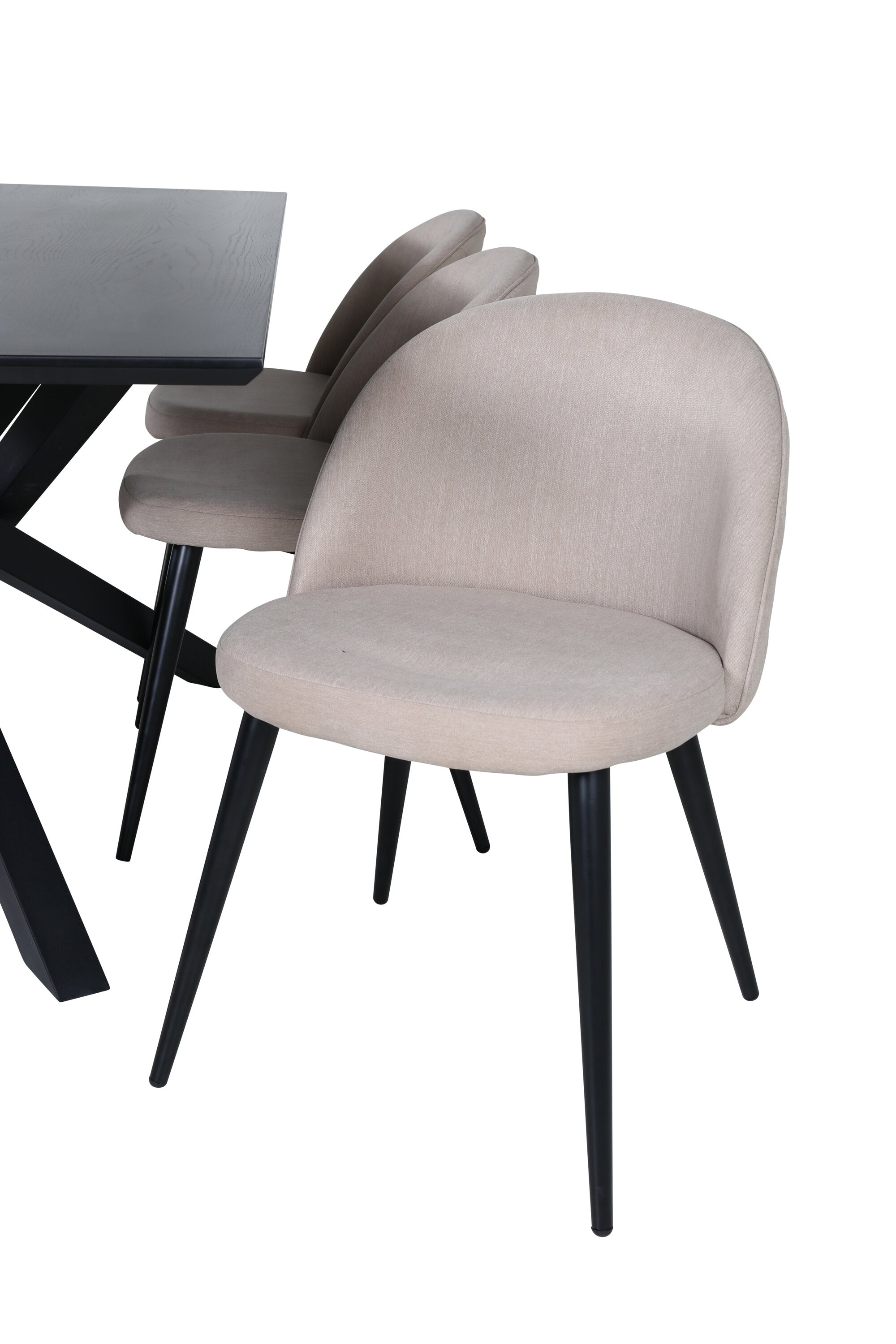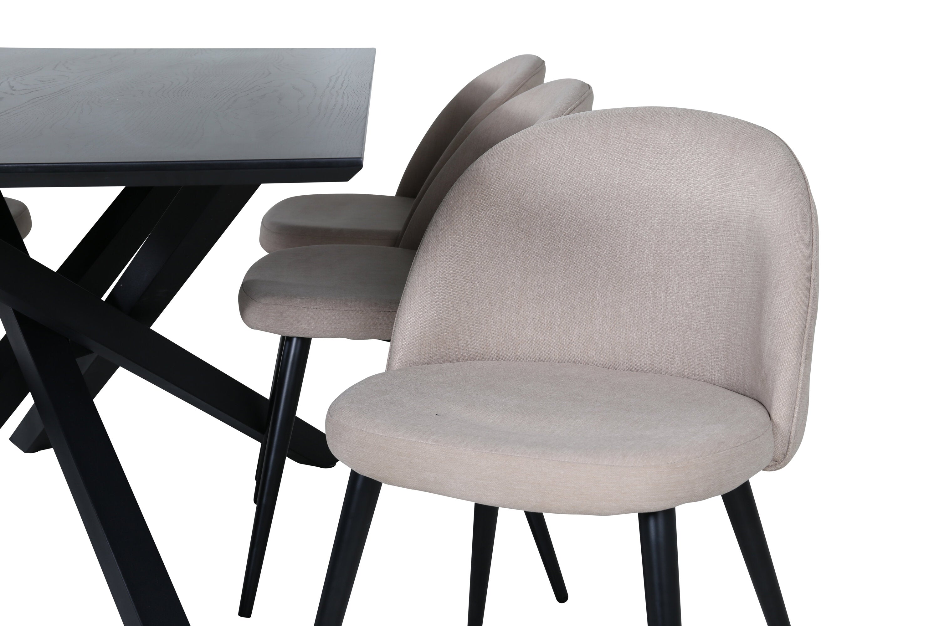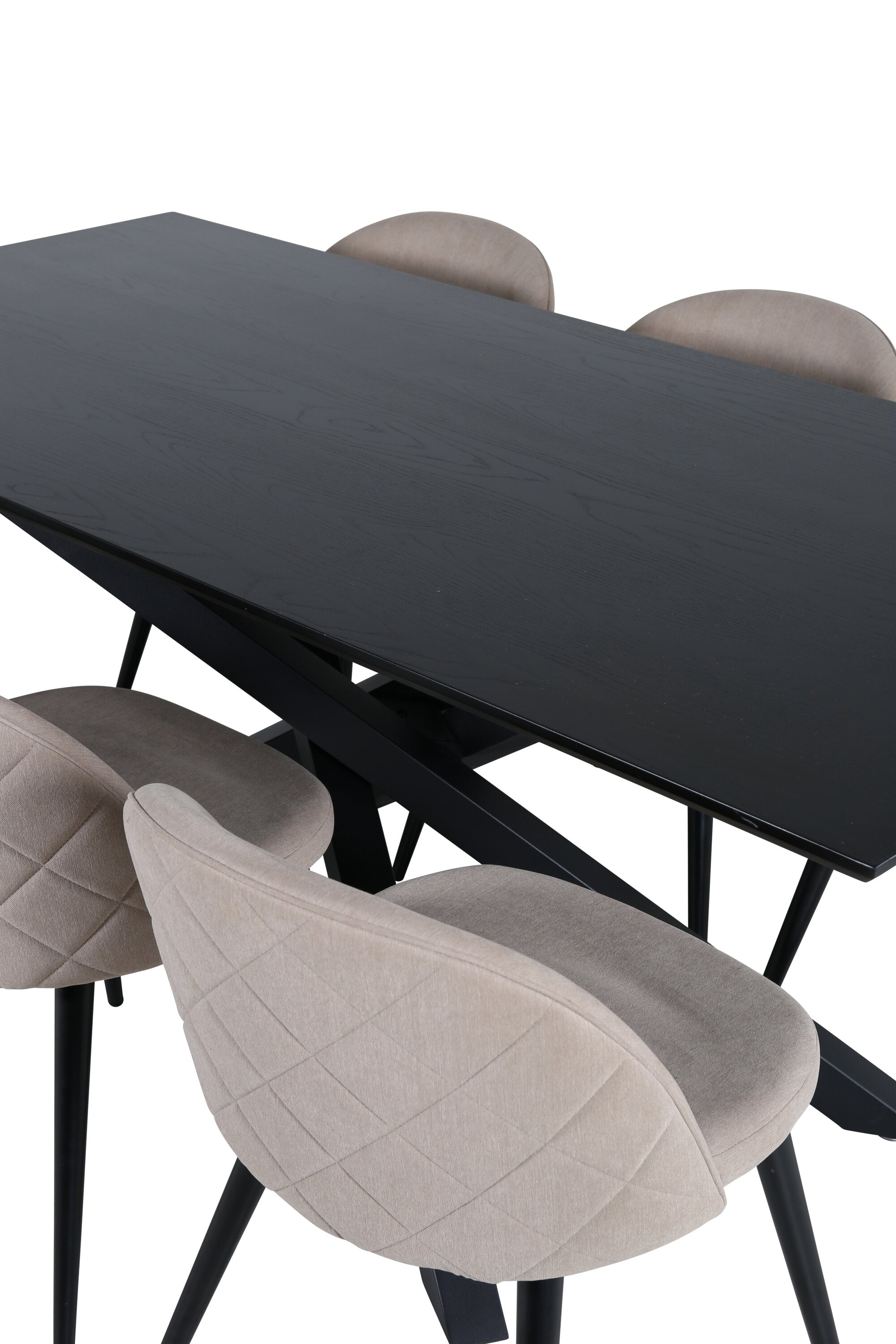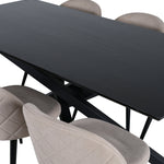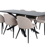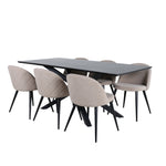 Jídelní stůl Piazza – černá / černá dýha + židle se sametovými stehy – černá / béžová látka (polyesterové prádlo)_6