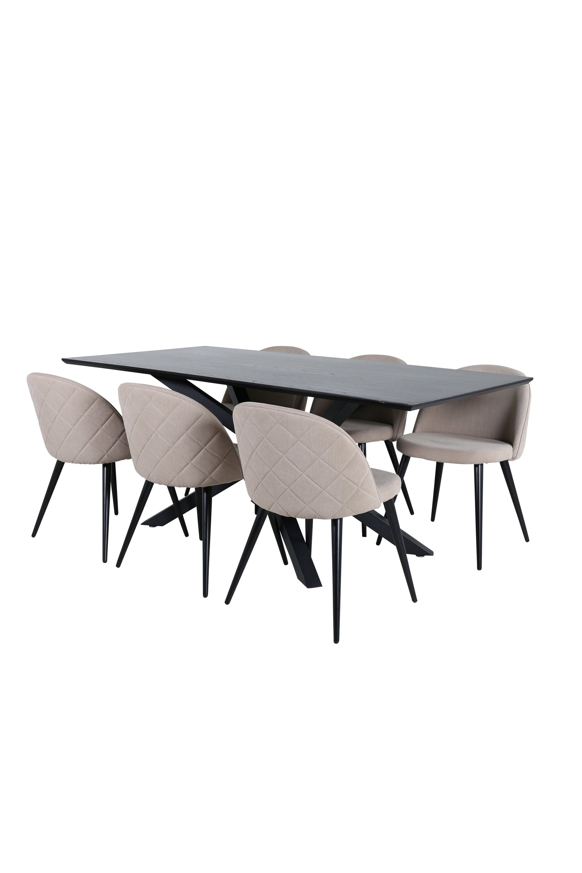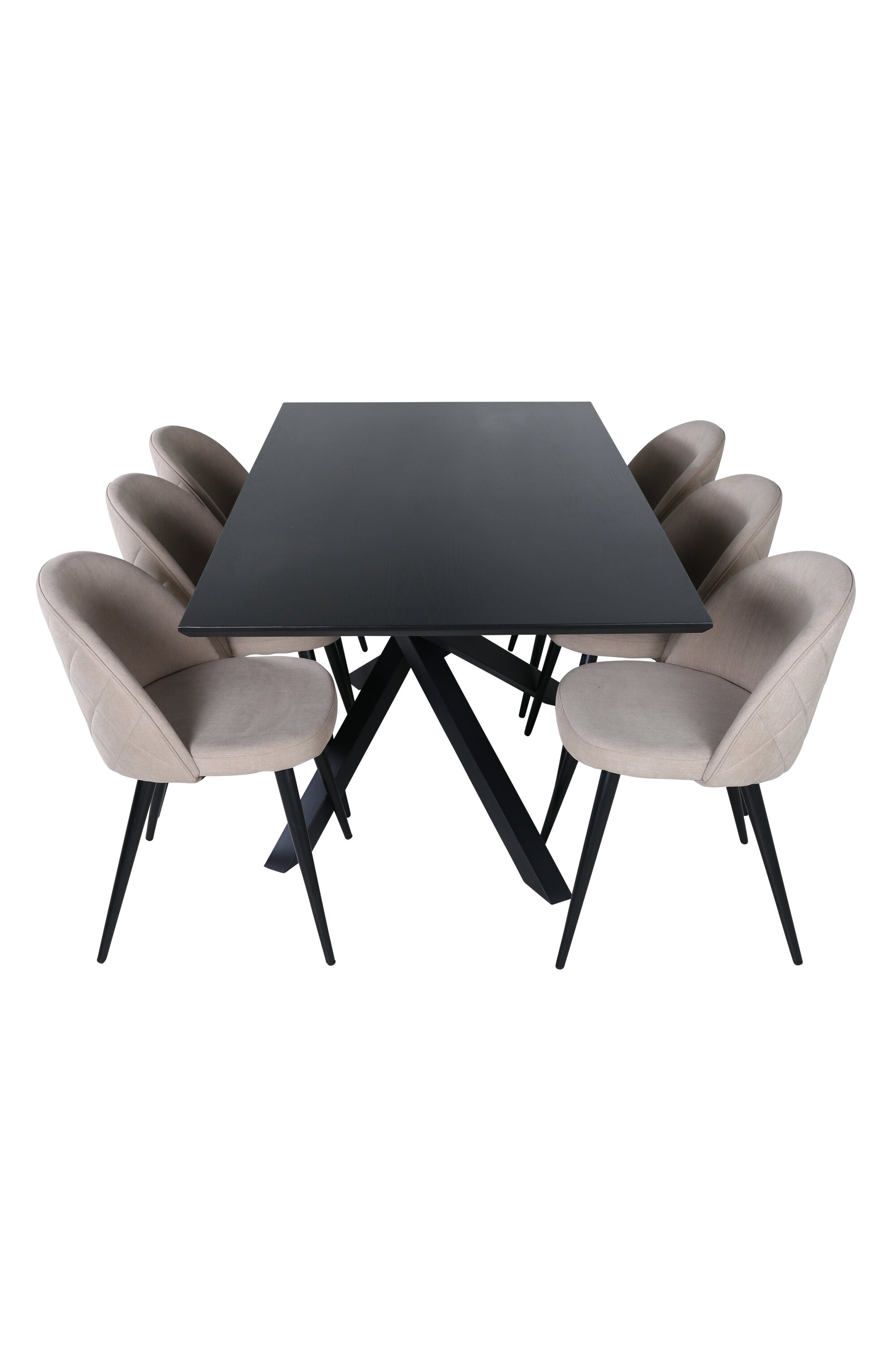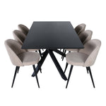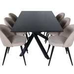 Vytvořte si domáckou atmosféru s okouzlující skupinou jídel! Piazza je náš oblíbený obdélníkový jídelní stůl s luxusním dojmem a trendy detaily v designu. Deska stolu je vyrobena z MDF dýhy v mazané černé barvě a korpus tvoří pevný poutač s příčnými nohami z černého železa. Zde v lahodné kombinaci s jídelními židlemi ze série Velvet Stitches, která tvoří pěkný celek v obývacím pokoji. Nohy židle jsou snadno rozšířeny v černém železe a béžová sedadla jsou z polyesterového plátna. Užijte si příjemná jídla!