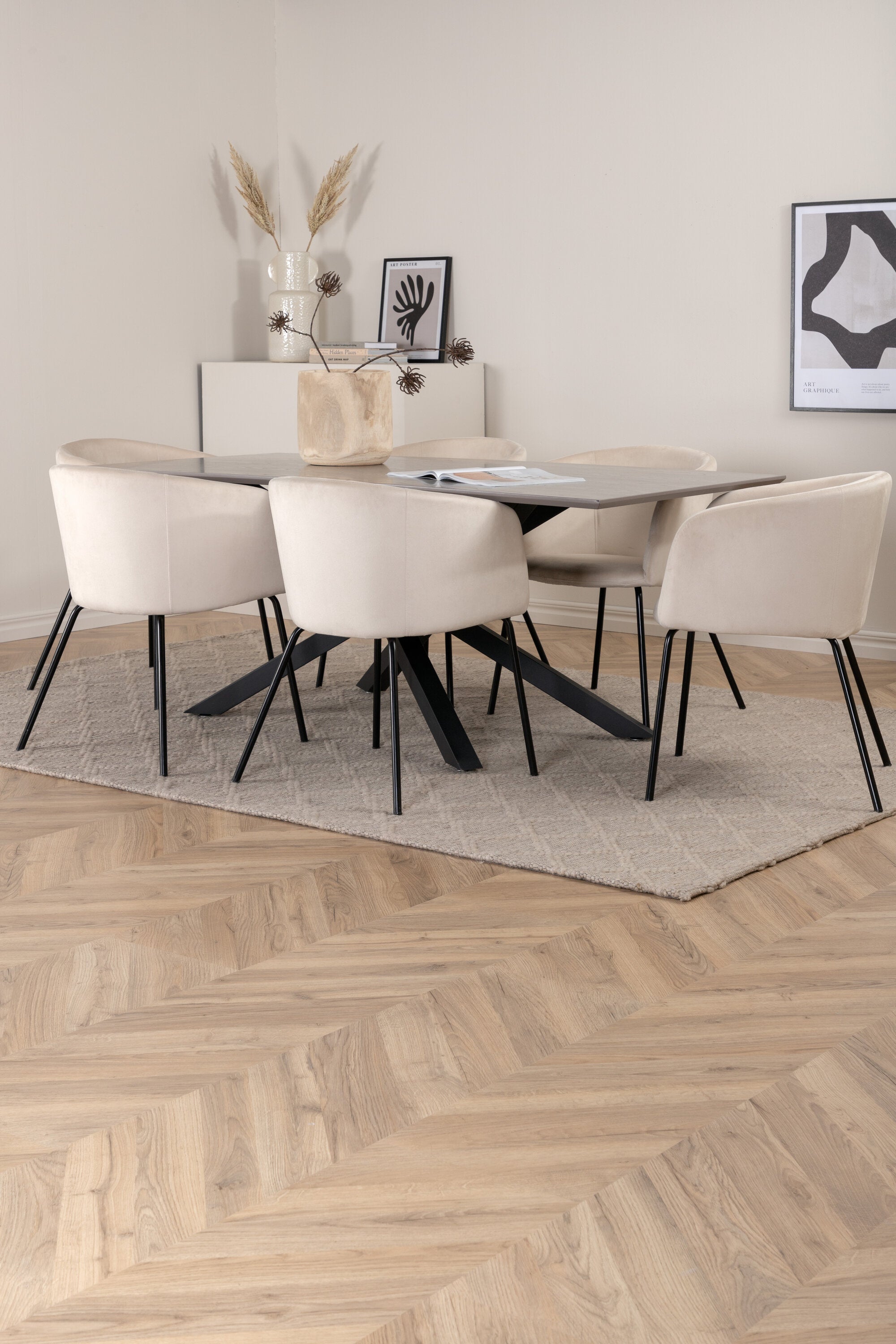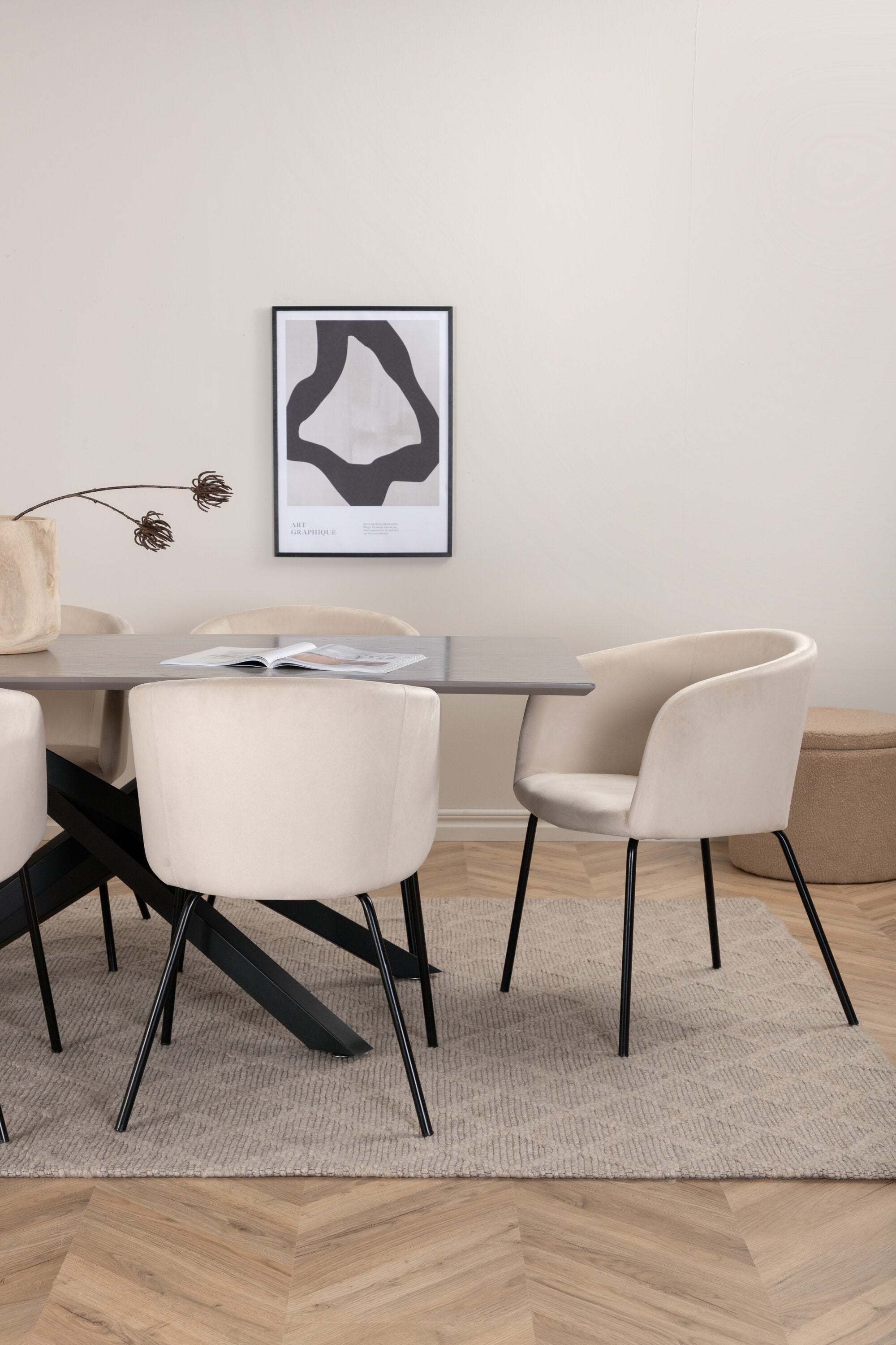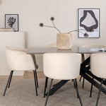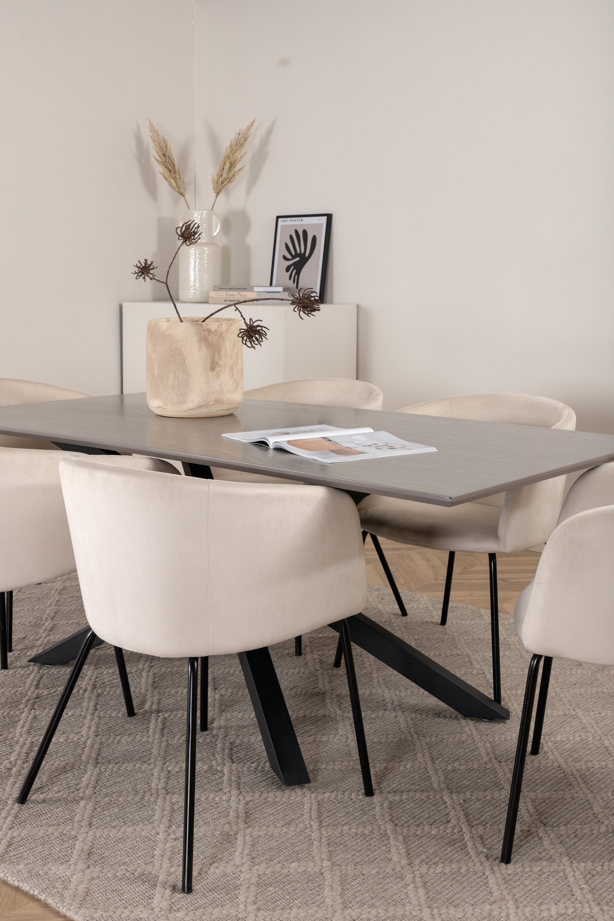 Vytvořte poutač, který zaujme! Piazza je náš oblíbený obdélníkový jídelní stůl s luxusním dojmem a trendy detaily v designu. Deska stolu je vyrobena z MDF dýhy v melírované šedé barvě a korpus tvoří pevný poutač s příčnými nohami z černého železa. Zde v nádherné kombinaci s našimi elegantními jídelními židlemi ze série Berit. Židle má luxusní design v béžovém sametu a nohy židle jsou stylově úzké v černém železe. Zařiďte lákavě a vytvořte si stylový vzhled vašeho domova!