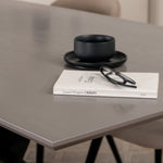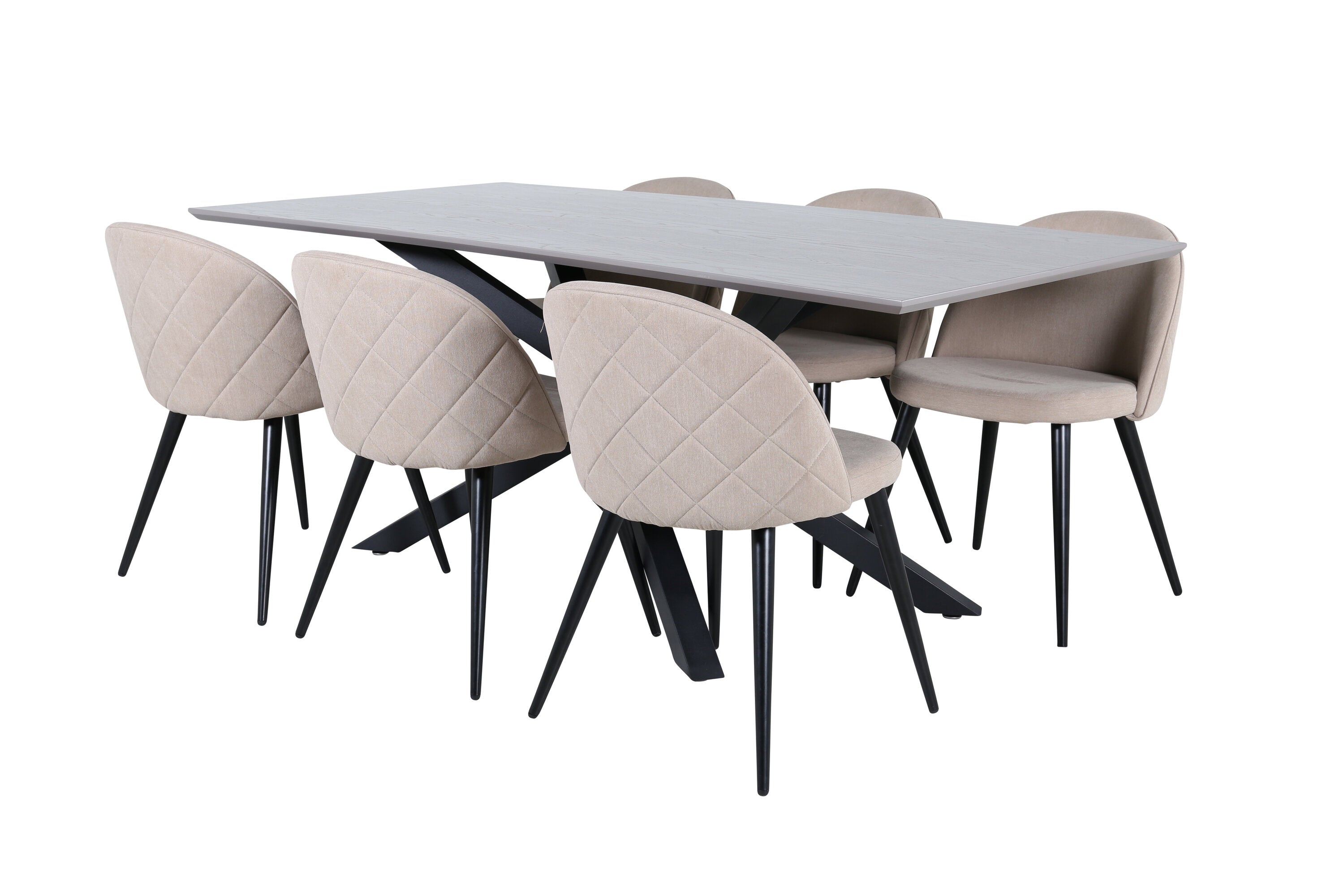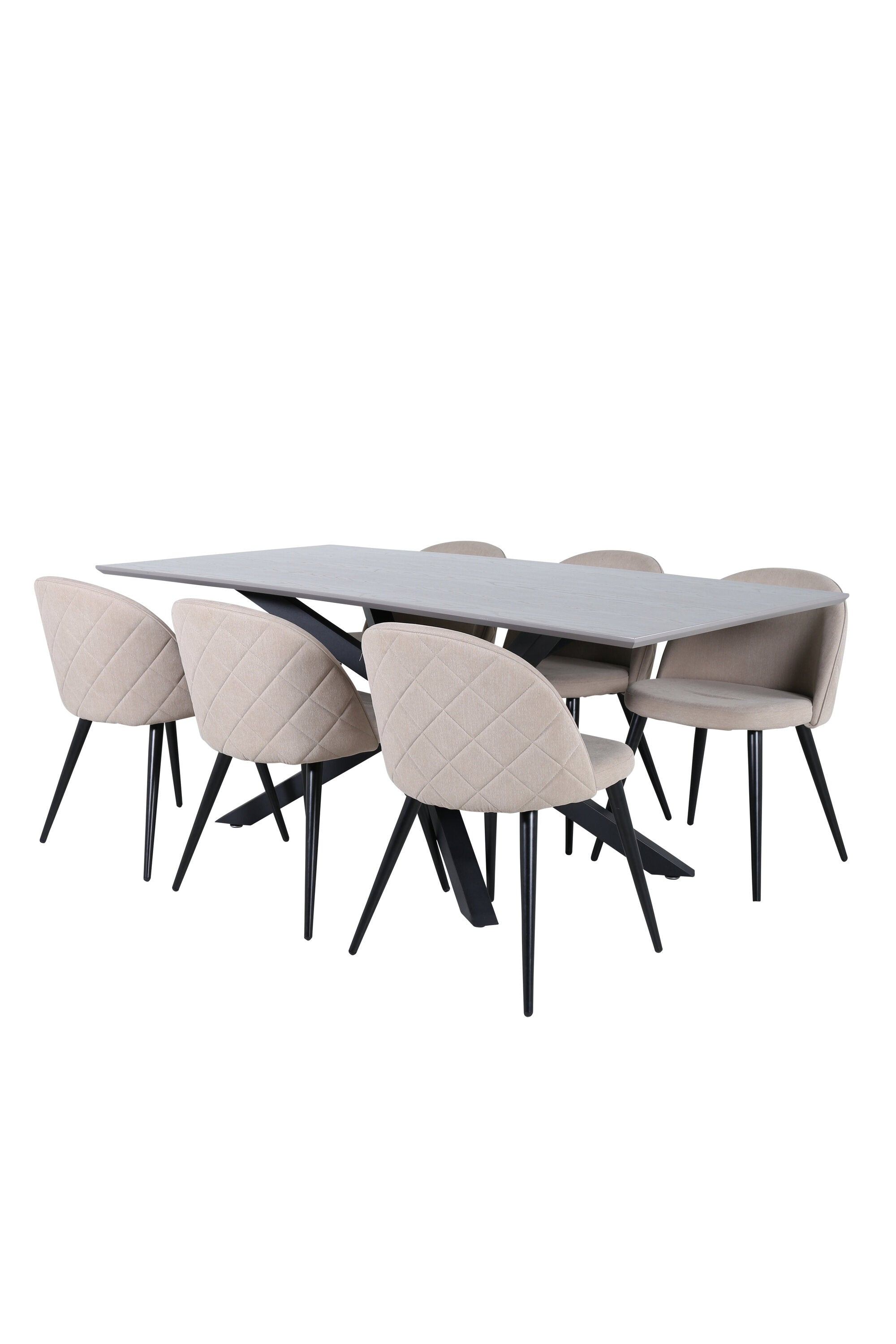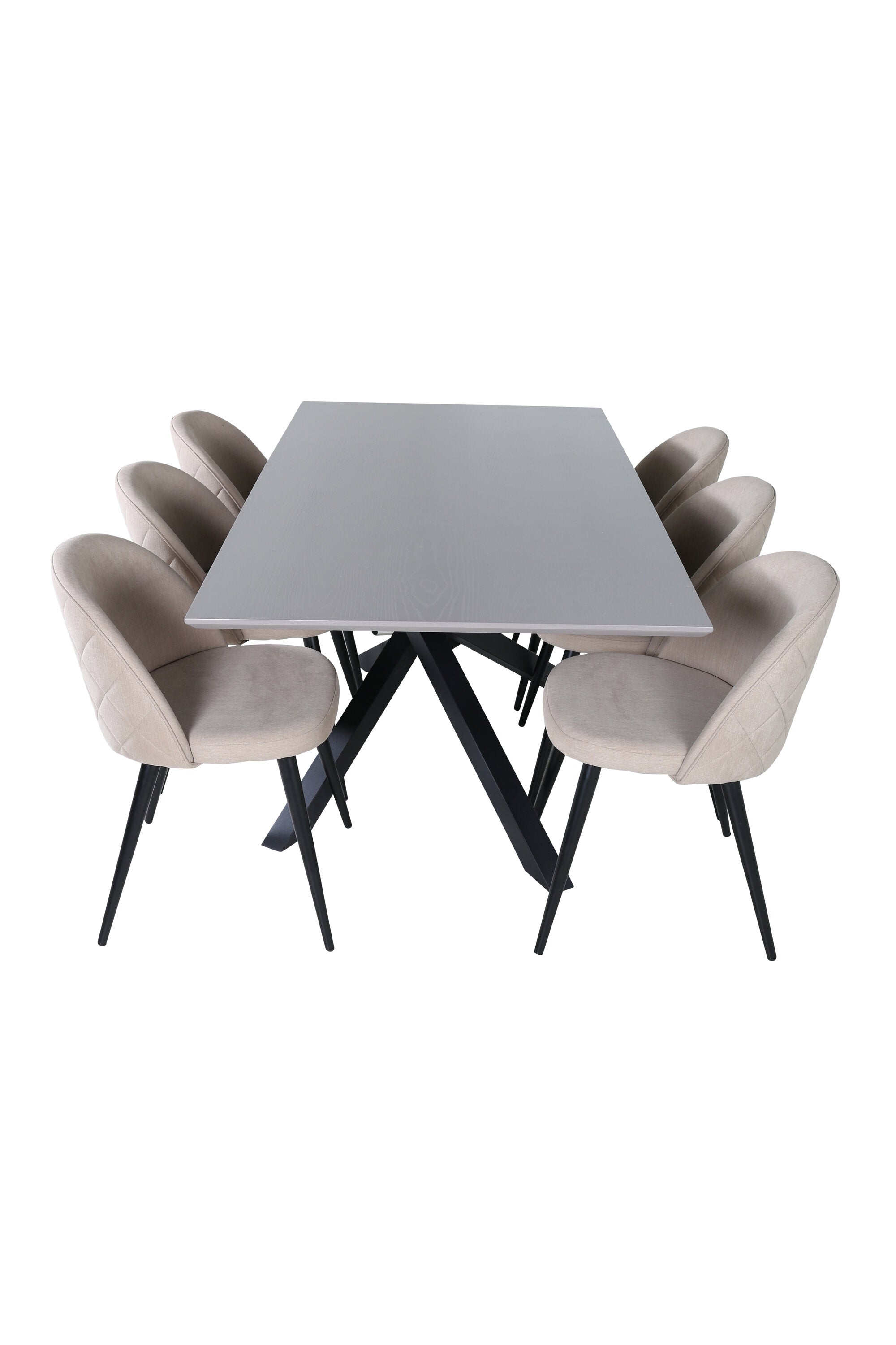 Vytvořte si domáckou atmosféru s okouzlující skupinou jídel! Piazza je náš oblíbený obdélníkový jídelní stůl s luxusním dojmem a trendy detaily v designu. Deska stolu je vyrobena z MDF dýhy v melírované šedé barvě a korpus tvoří pevný poutač s příčnými nohami z černého železa. Zde v lahodné kombinaci s jídelními židlemi ze série Velvet Stitches, která tvoří pěkný celek v obývacím pokoji. Nohy židle jsou snadno rozšířeny v černém železe a béžová sedadla jsou z polyesterového plátna. Užijte si příjemná jídla!