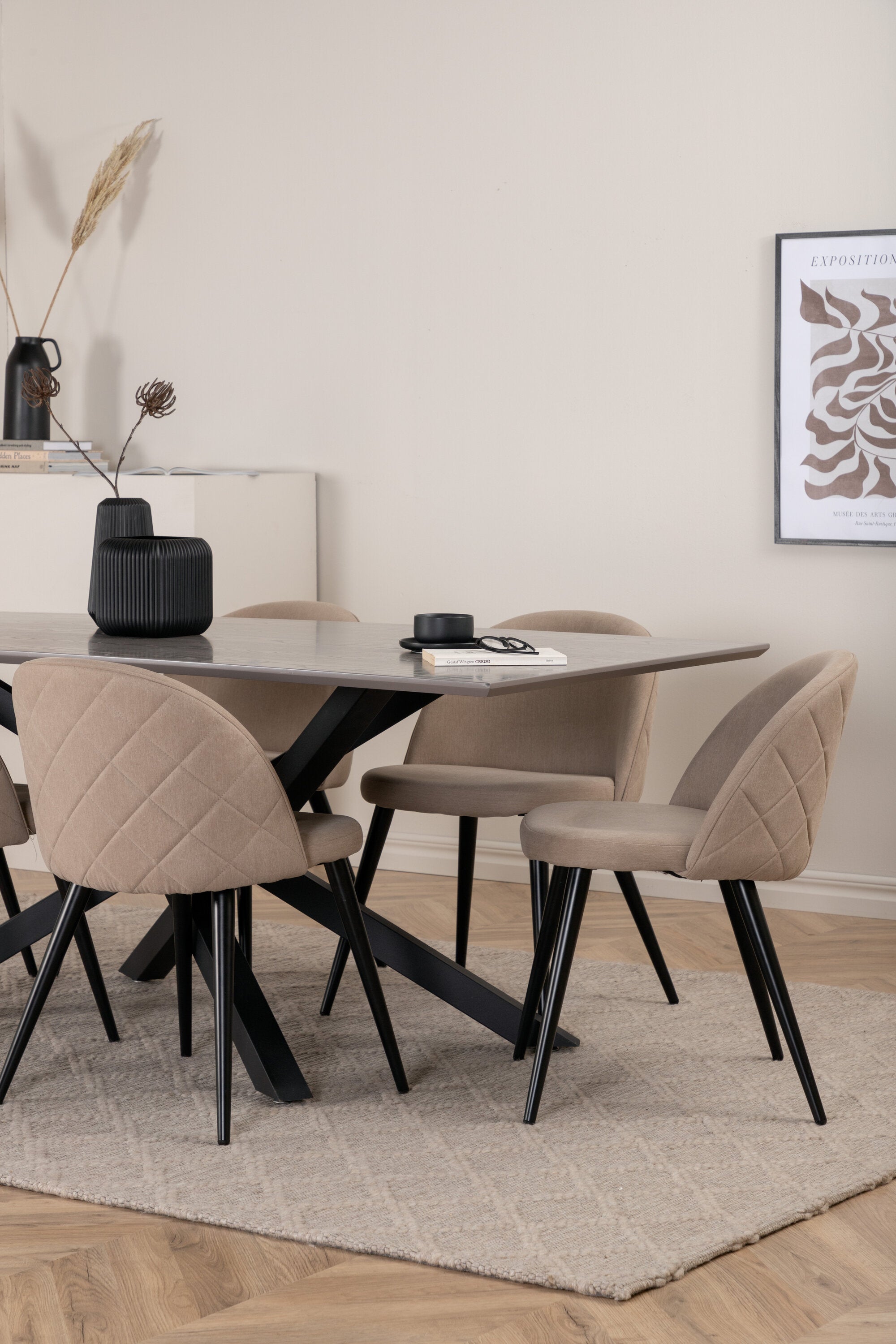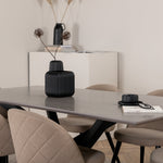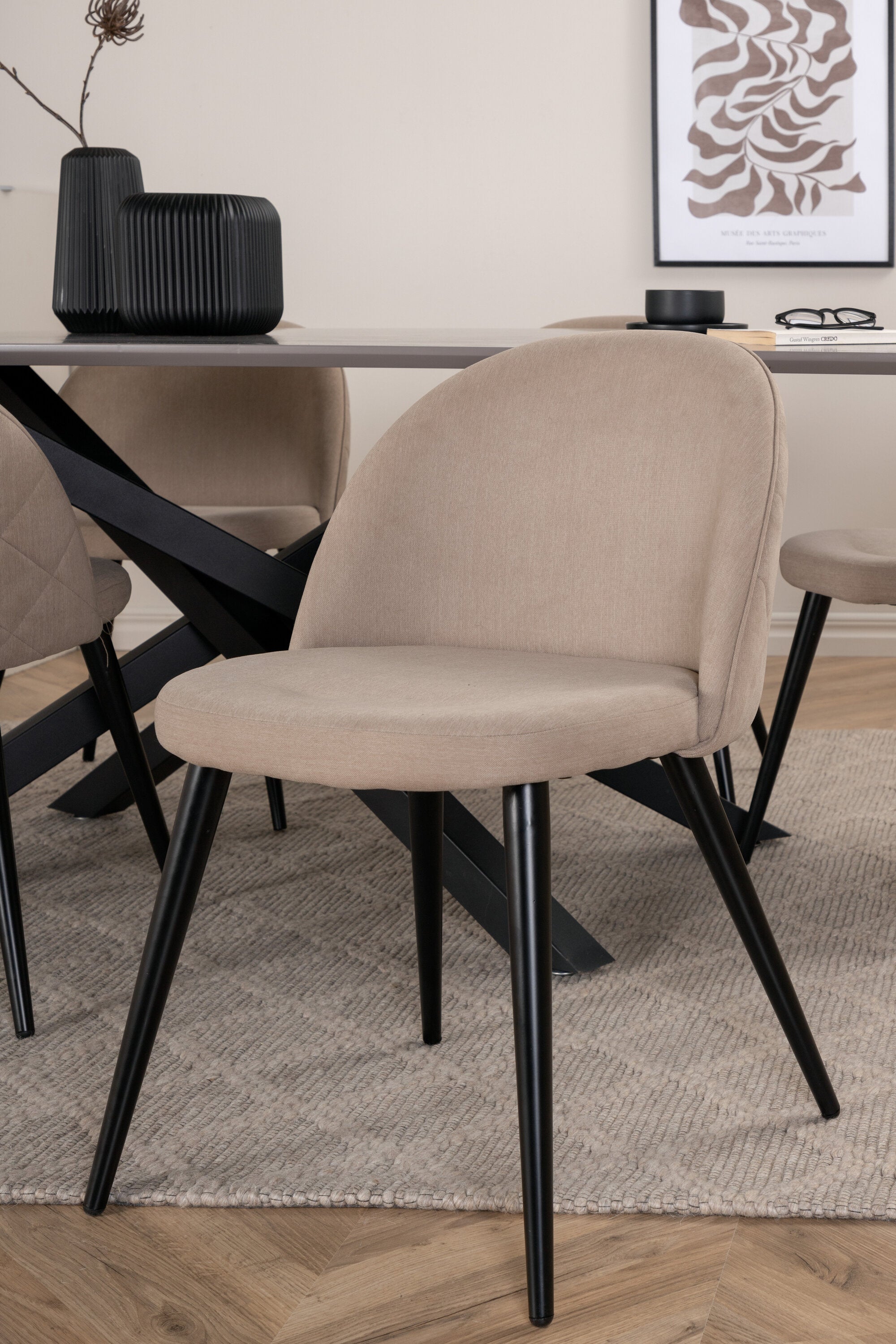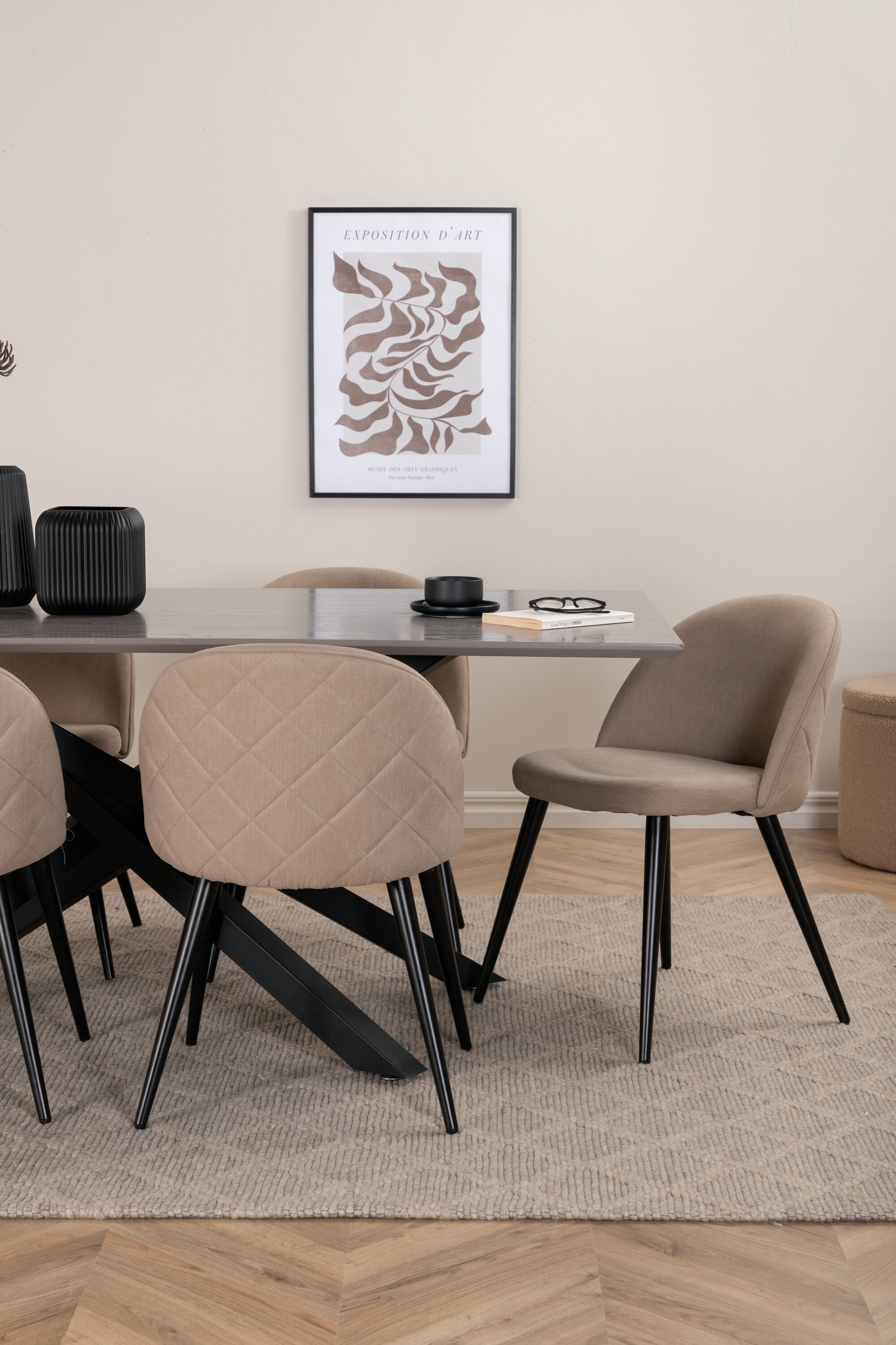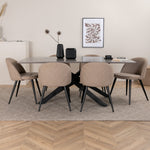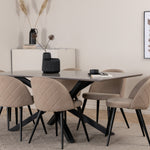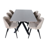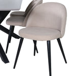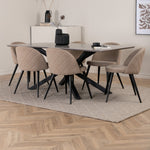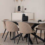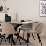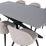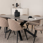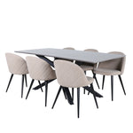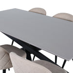 Jídelní stůl Piazza – černá / šedá dýha + židle se sametovými stehy – černá / béžová látka (polyesterové prádlo)_6