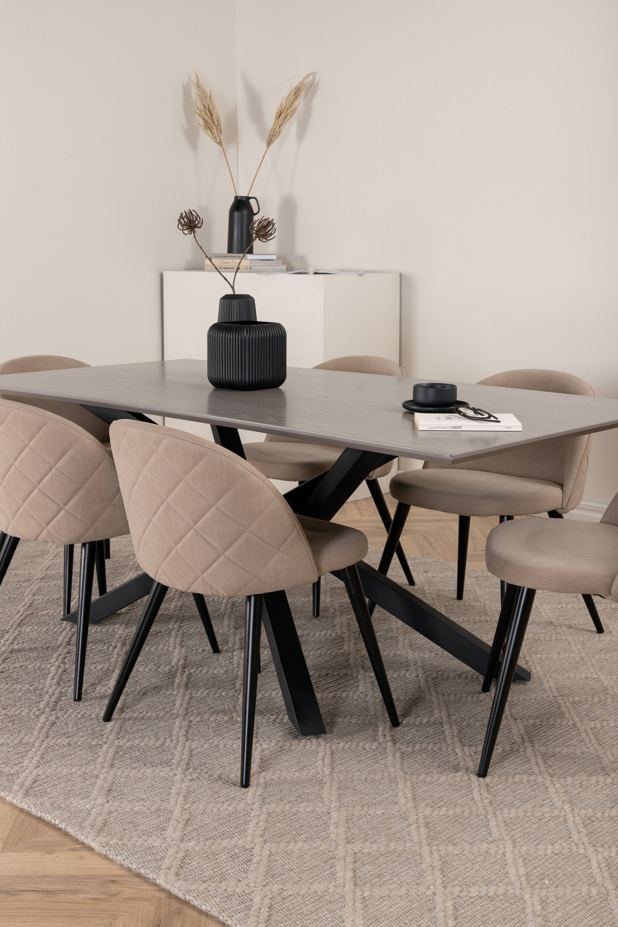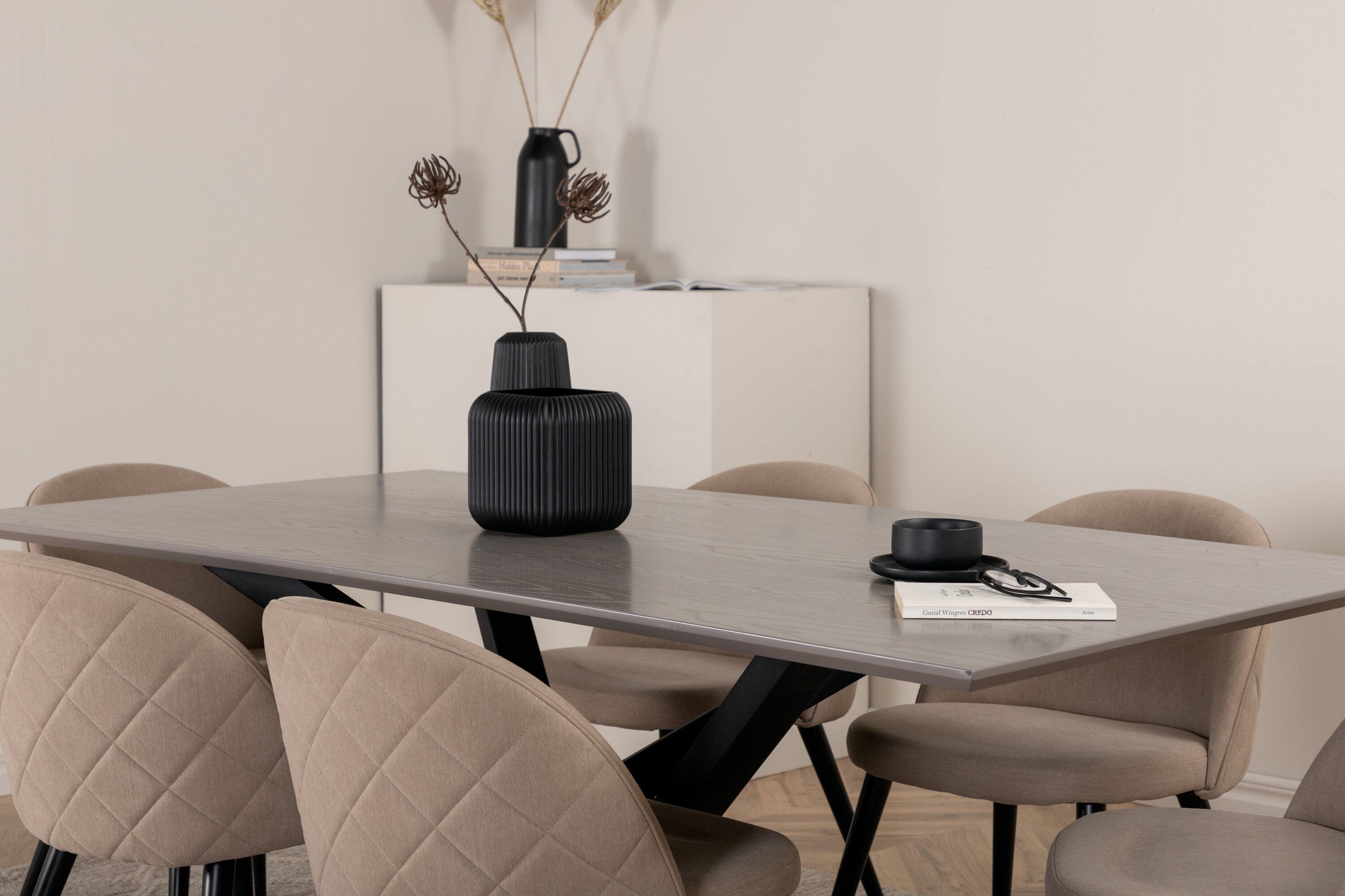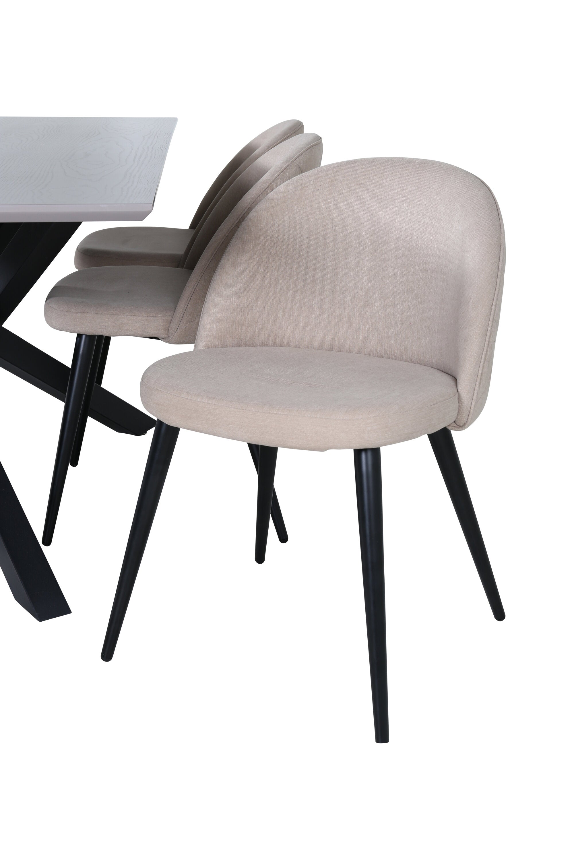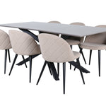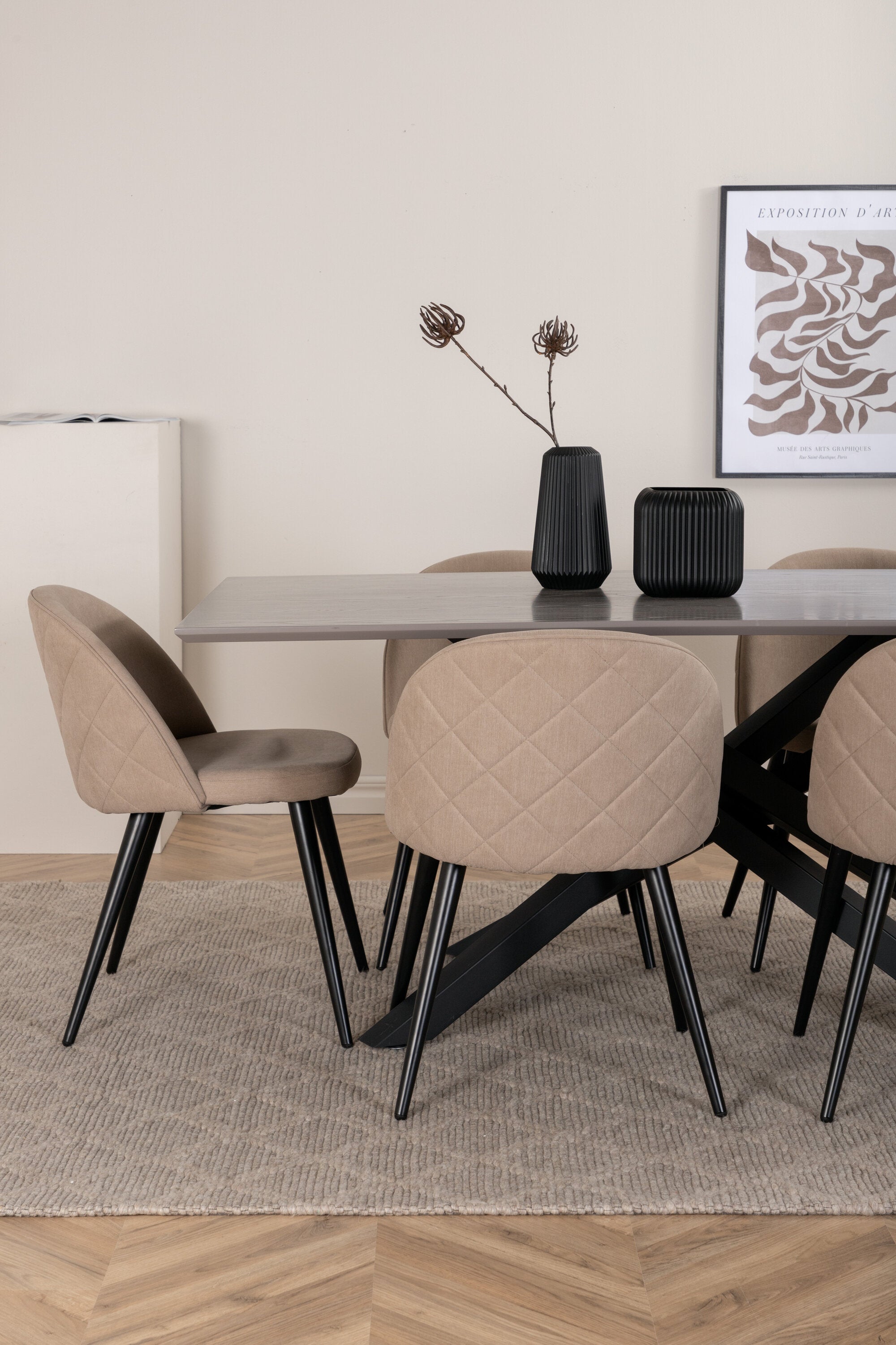 Jídelní stůl Piazza – černá / šedá dýha + židle se sametovými stehy – černá / béžová látka (polyesterové prádlo)_6