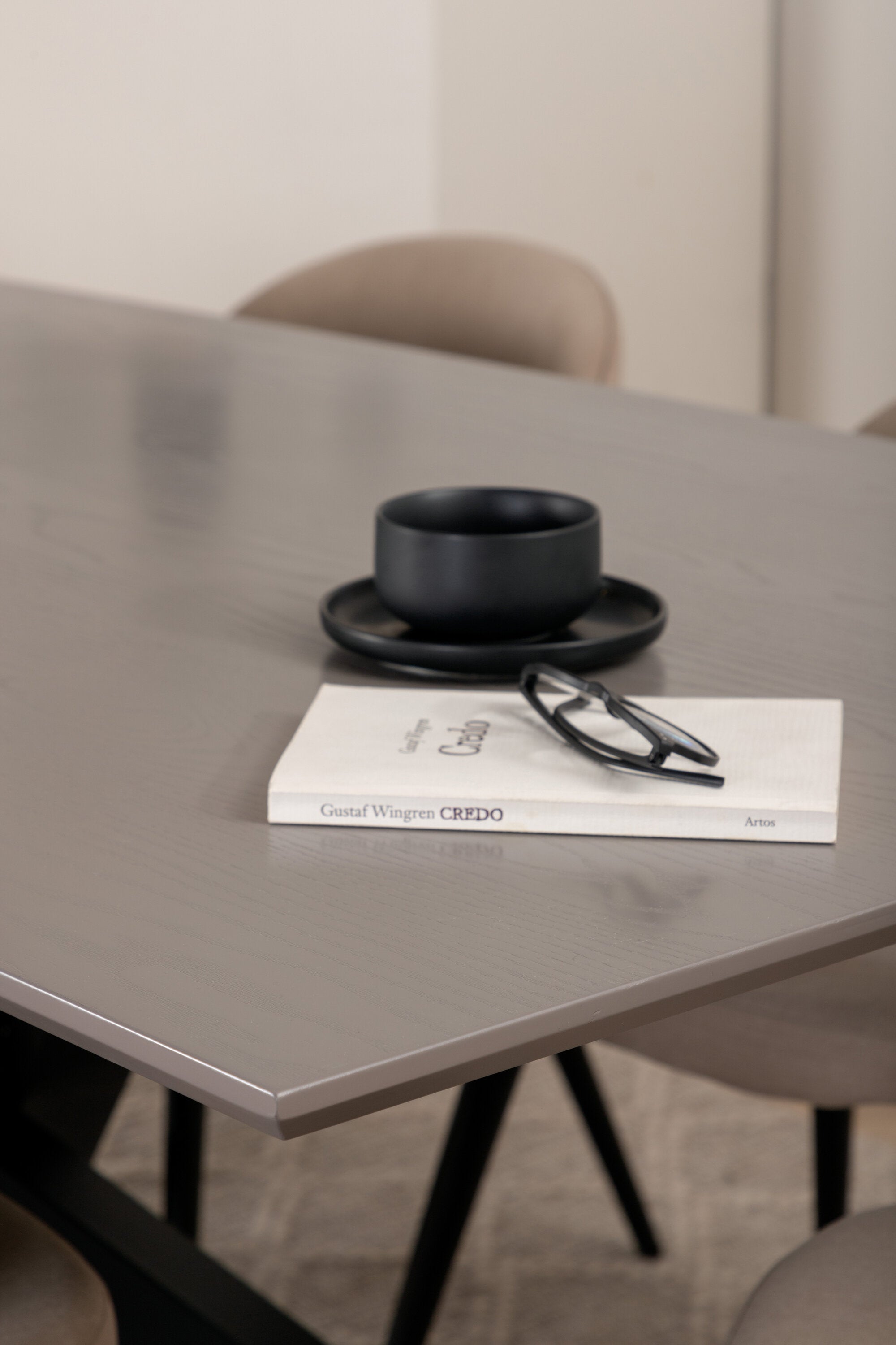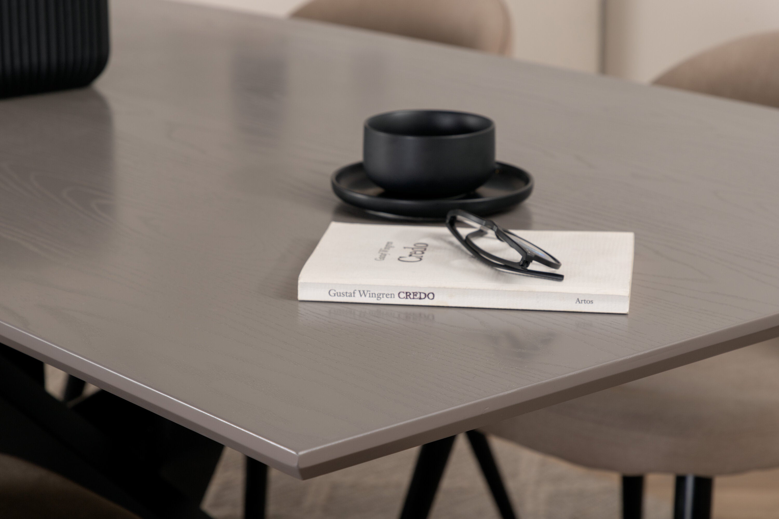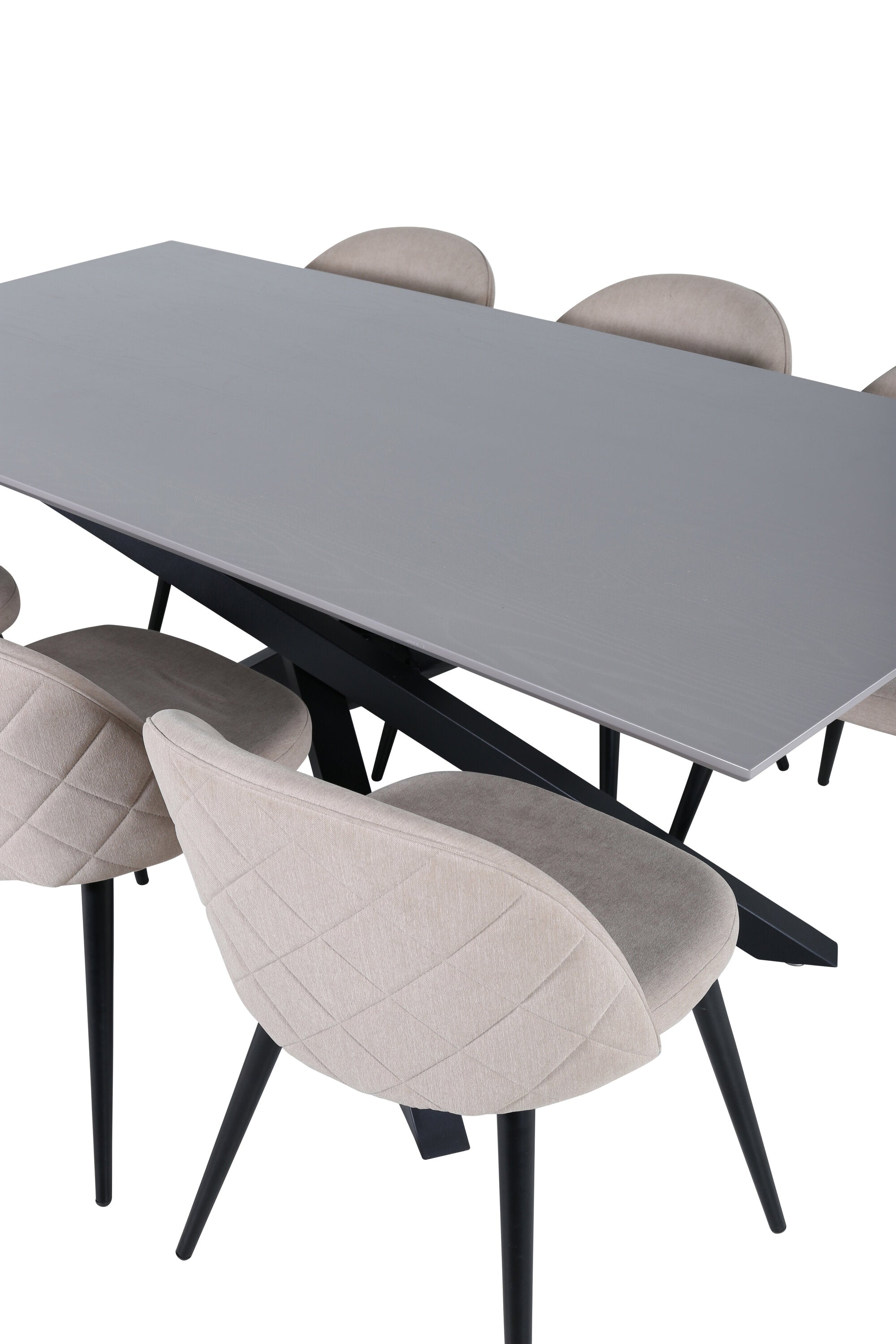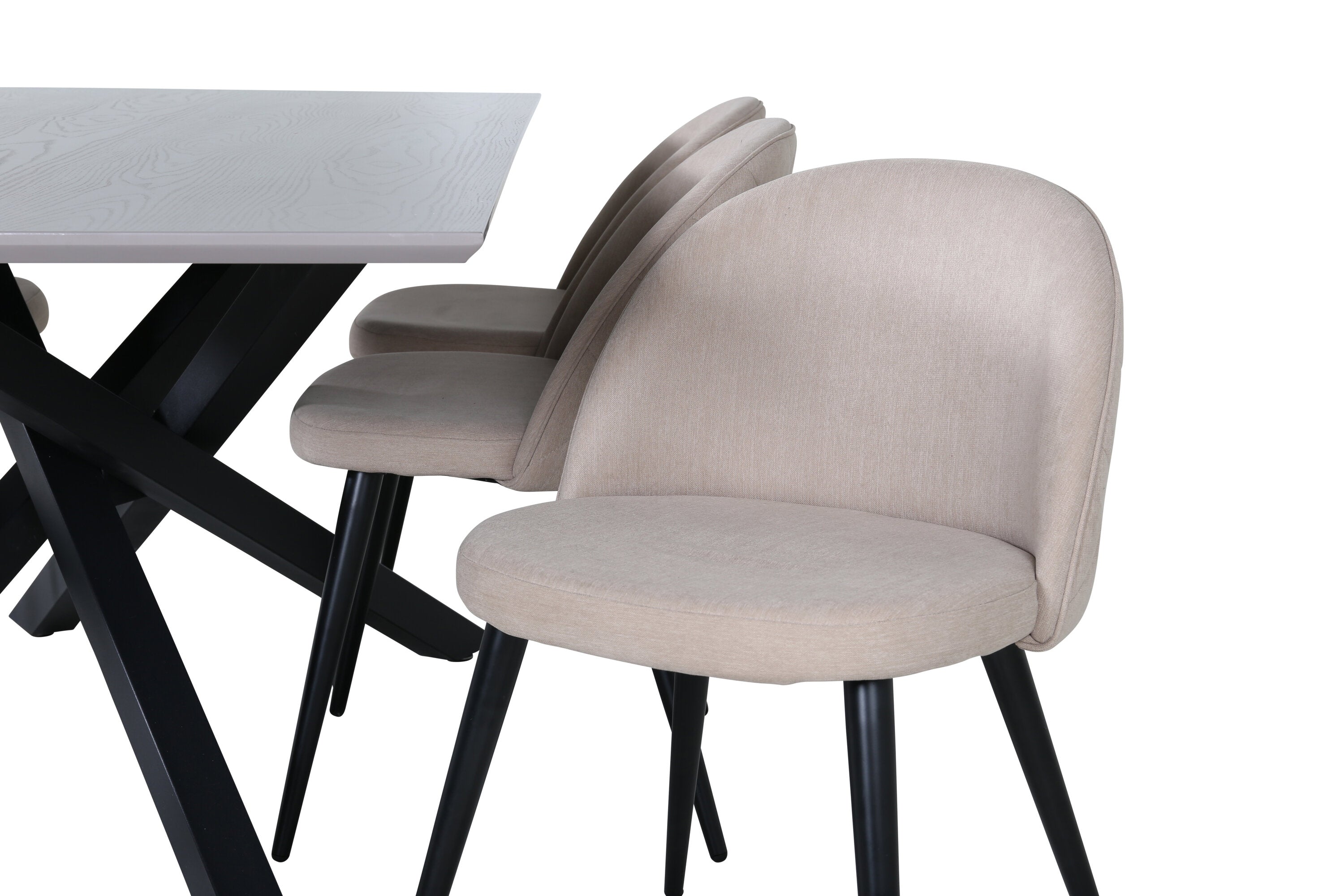 Jídelní stůl Piazza – černá / šedá dýha + židle se sametovými stehy – černá / béžová látka (polyesterové prádlo)_6