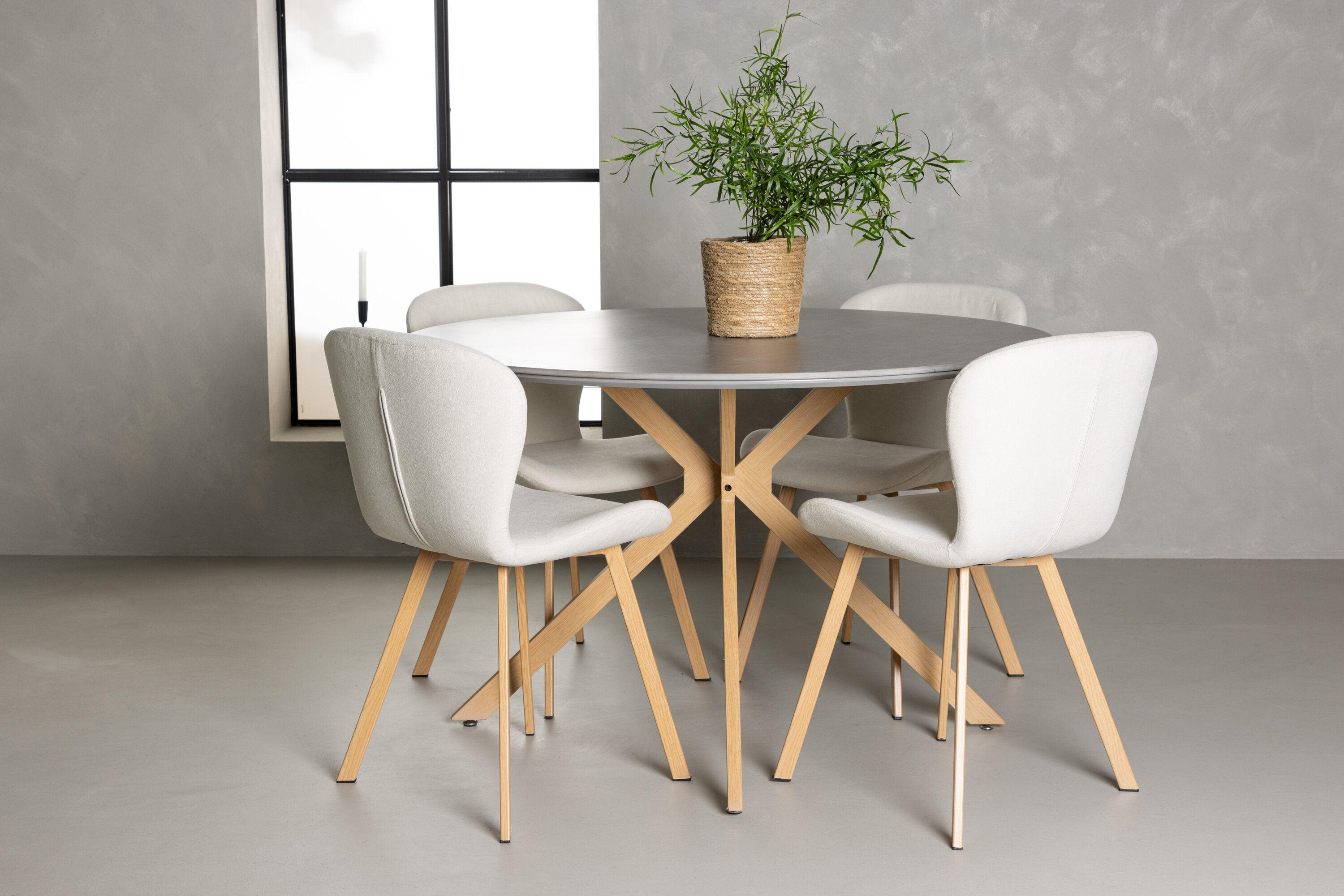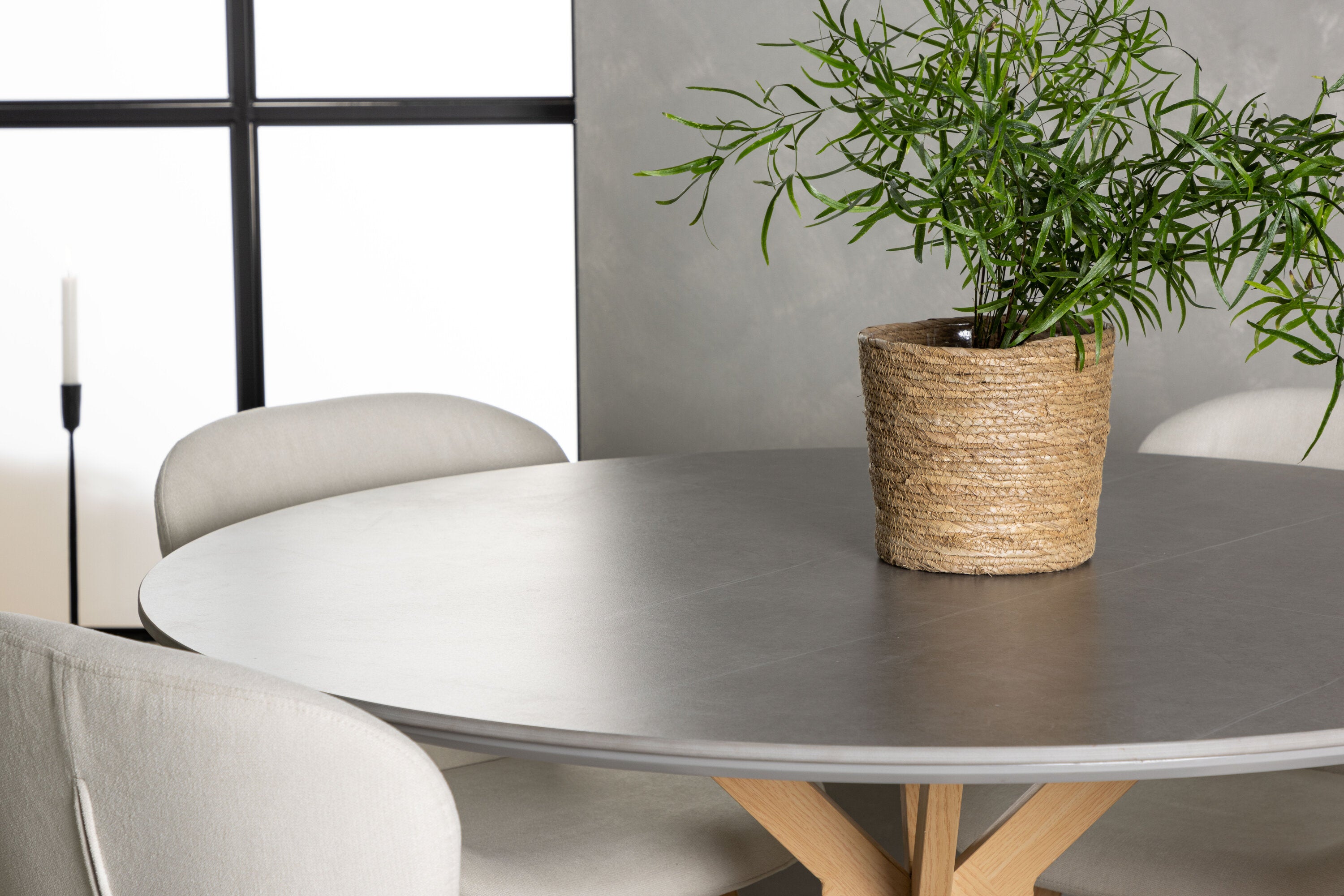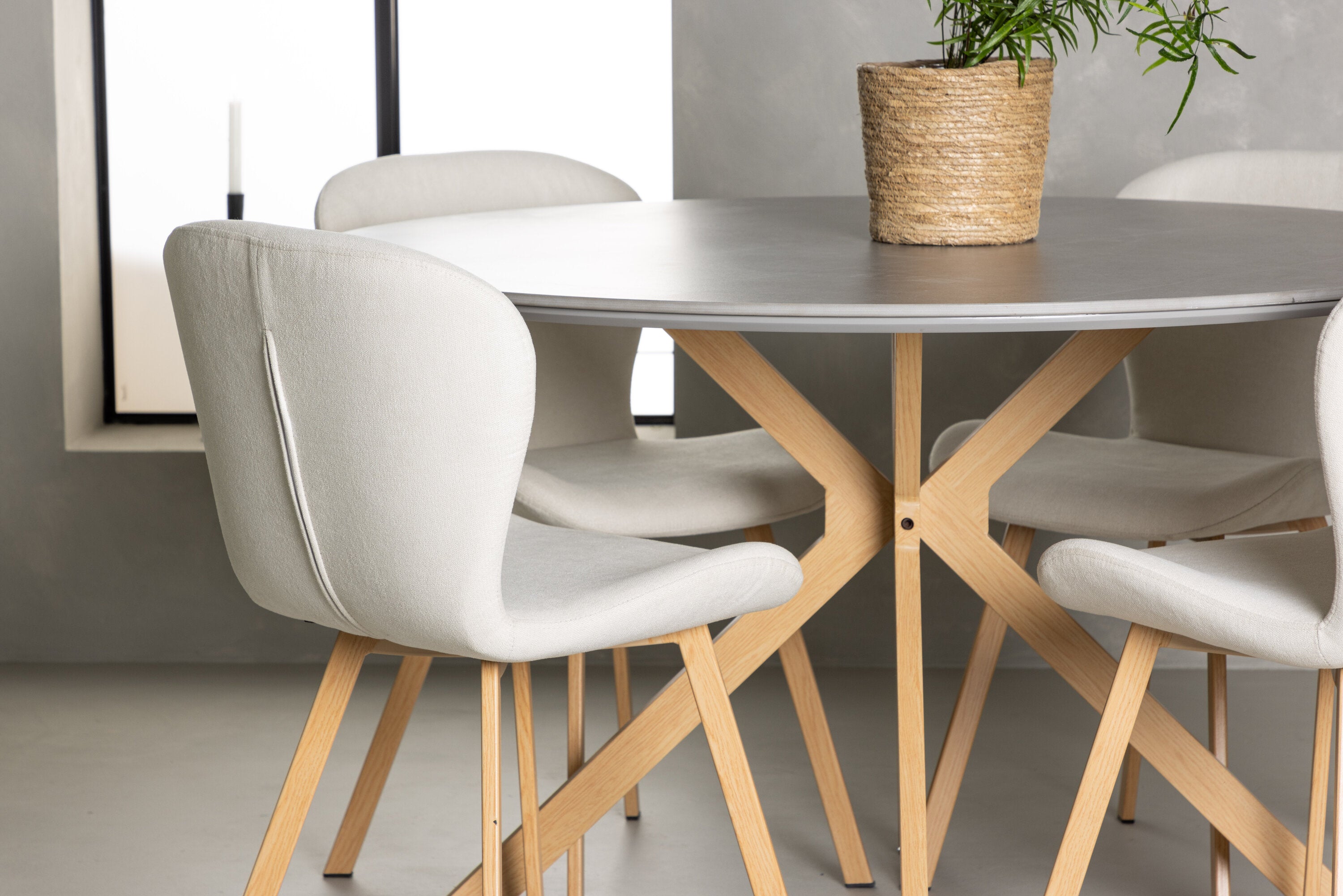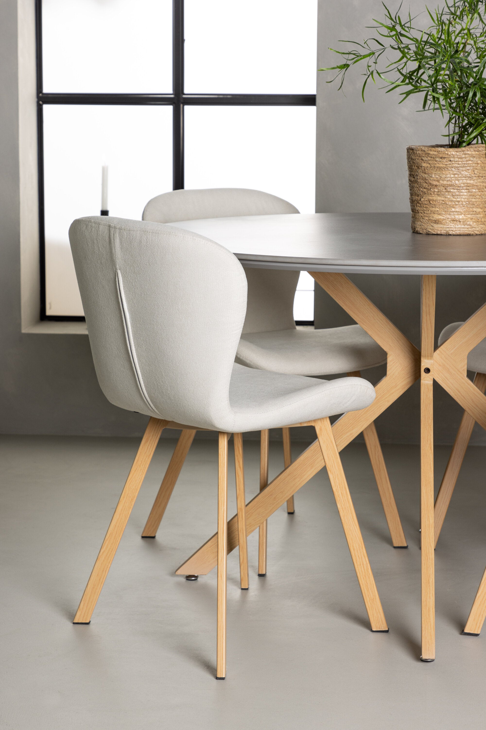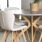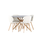 Ale není to jen stůl, který zaujme – naše béžové jídelní židle ze série Lilja posouvají interiér na zcela novou úroveň. Tyto vysněné židle ve světlých barvách vytvoří stylovou a svěží atmosféru ve vaší jídelně. S plně čalouněnými sedadly z béžové polyesterové tkaniny vytvářejí pohodlný a příjemný pocit. Ploché a mírně rozšířené nohy z dubového dřeva také dokonale ladí s jídelním stolem.