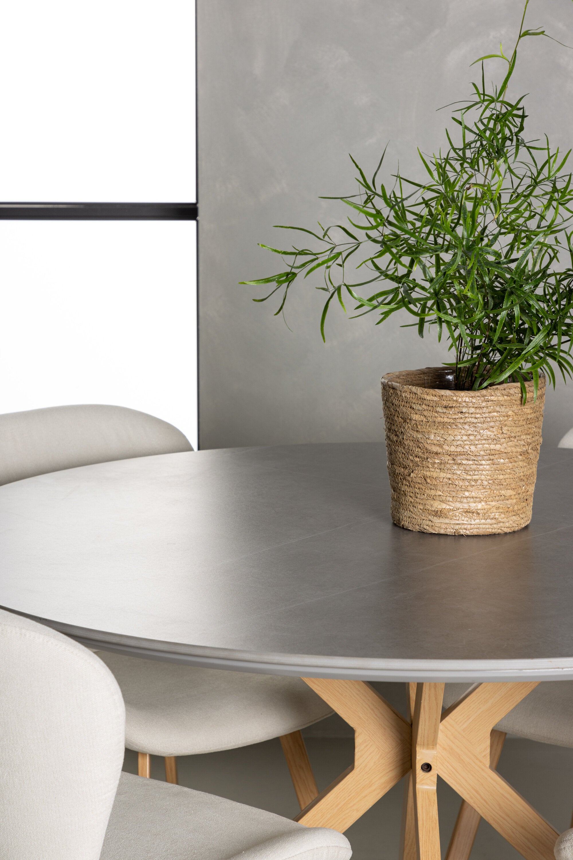 Jídelní stůl Piazza – přírodní / tmavě šedý stříkací kámen + jídelní židle Lilja – dub / béžová látka _4