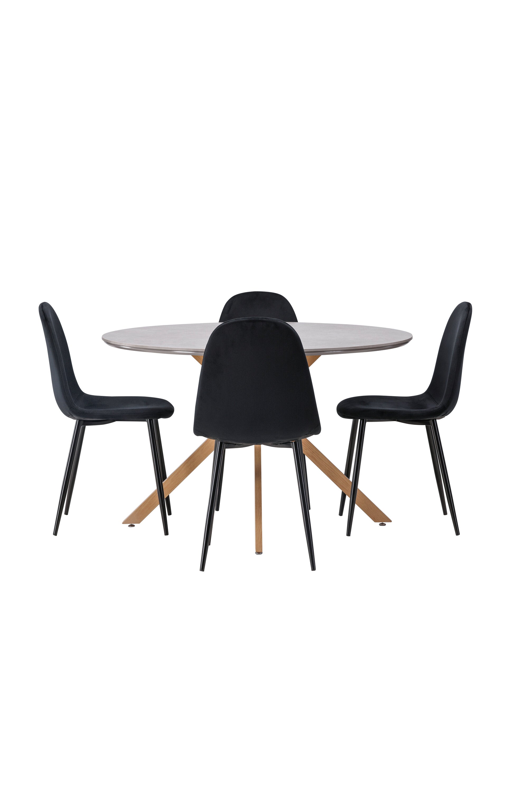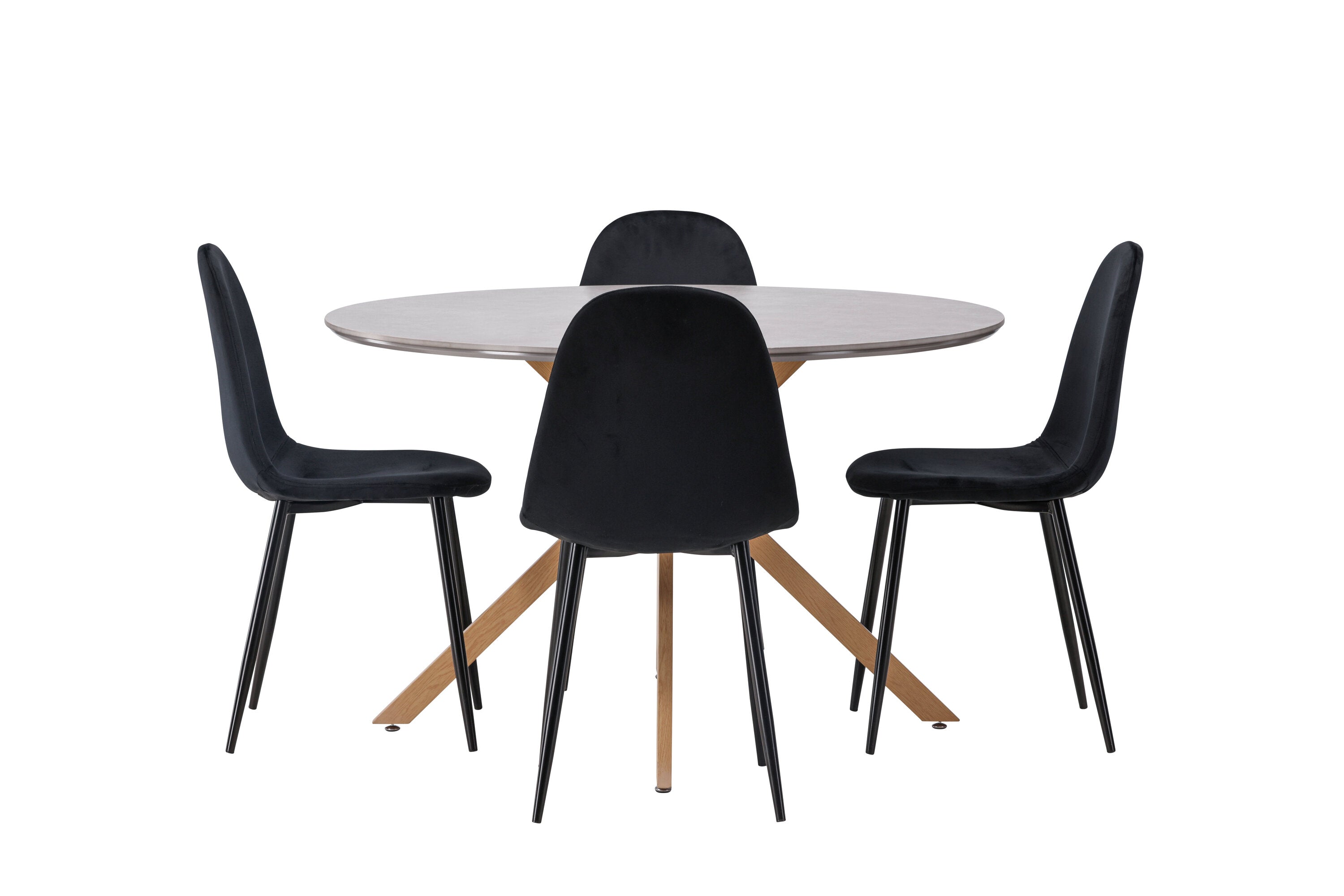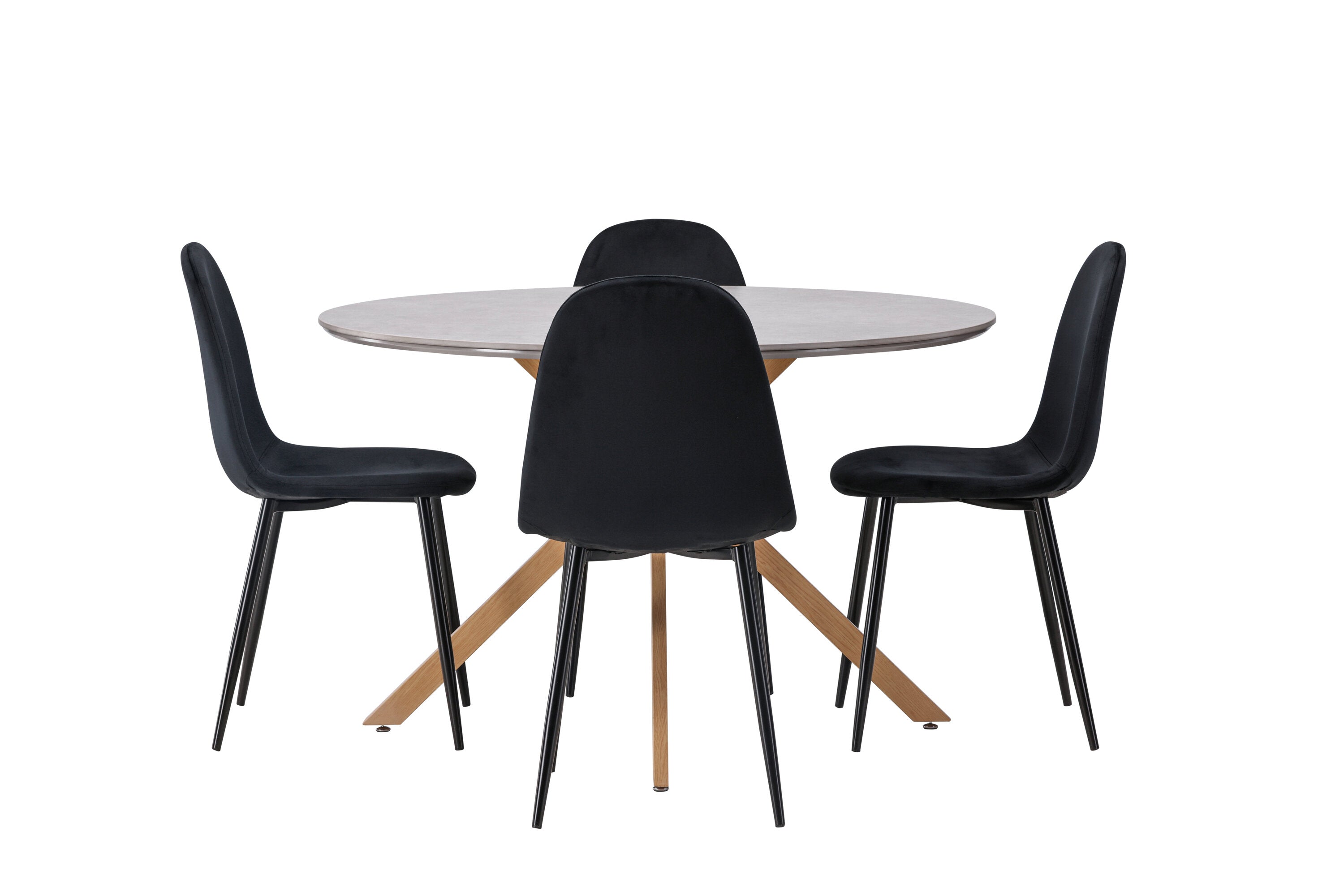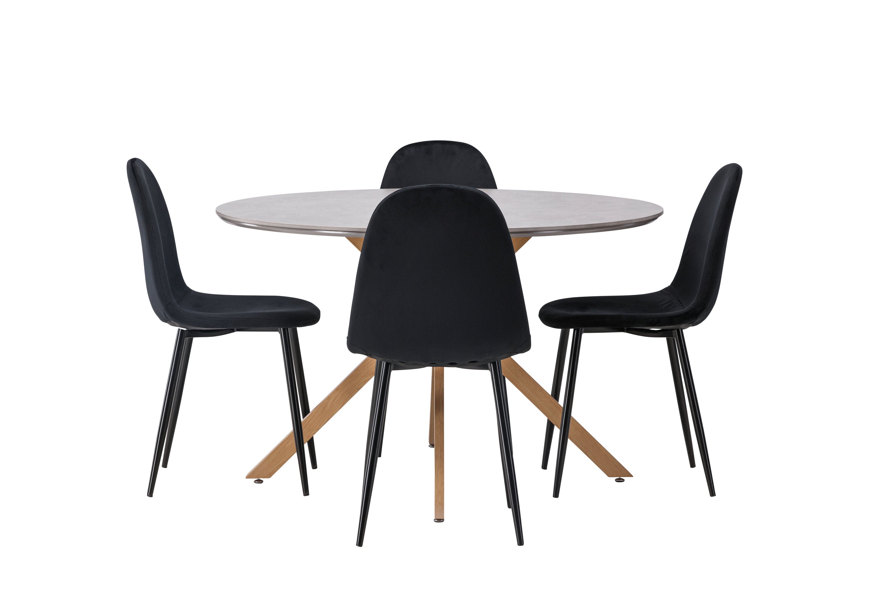 Jídelní stůl Piazza – přírodní / tmavě šedý stříkací kámen + jídelní židle Polar – černé nohy / černý samet _4