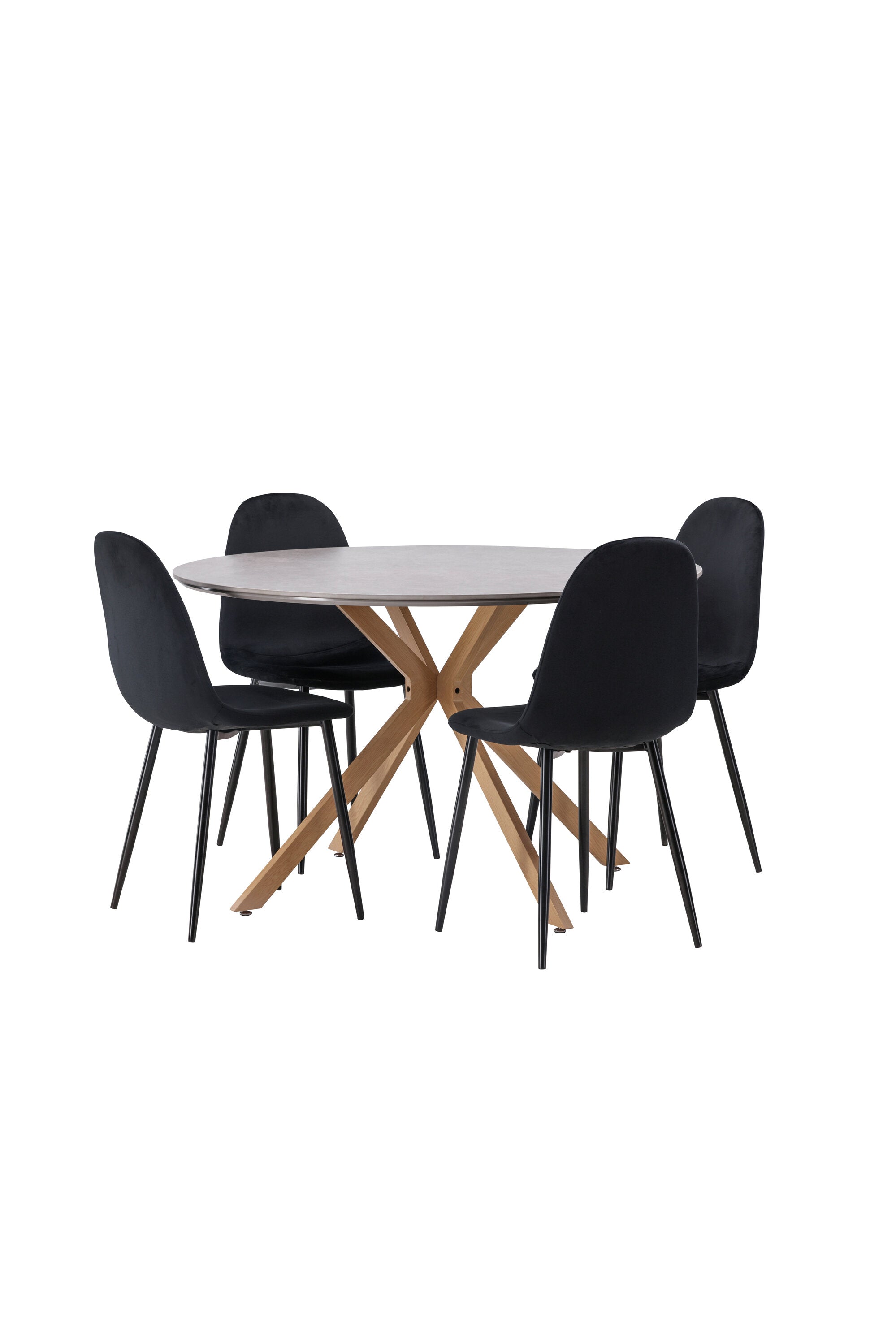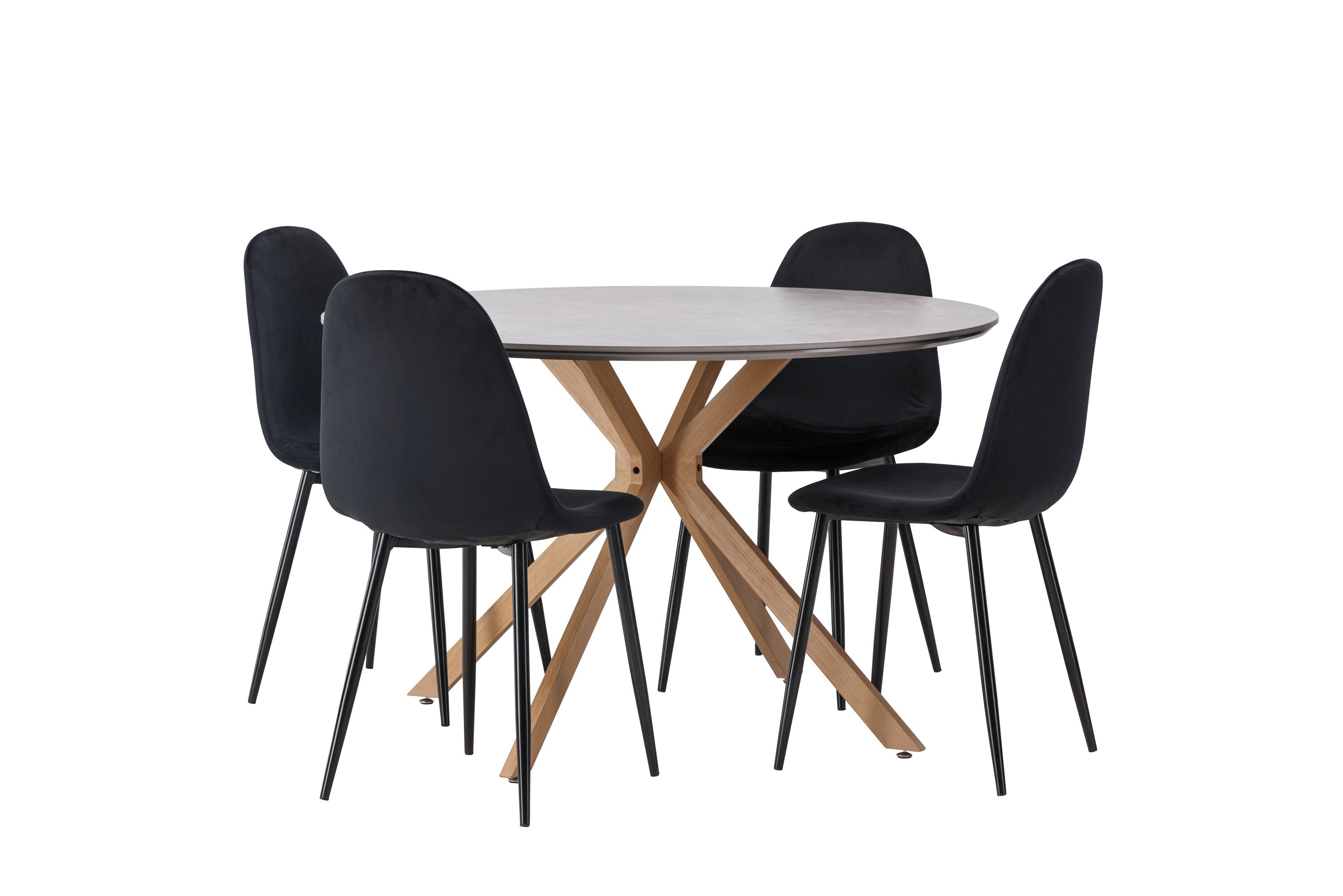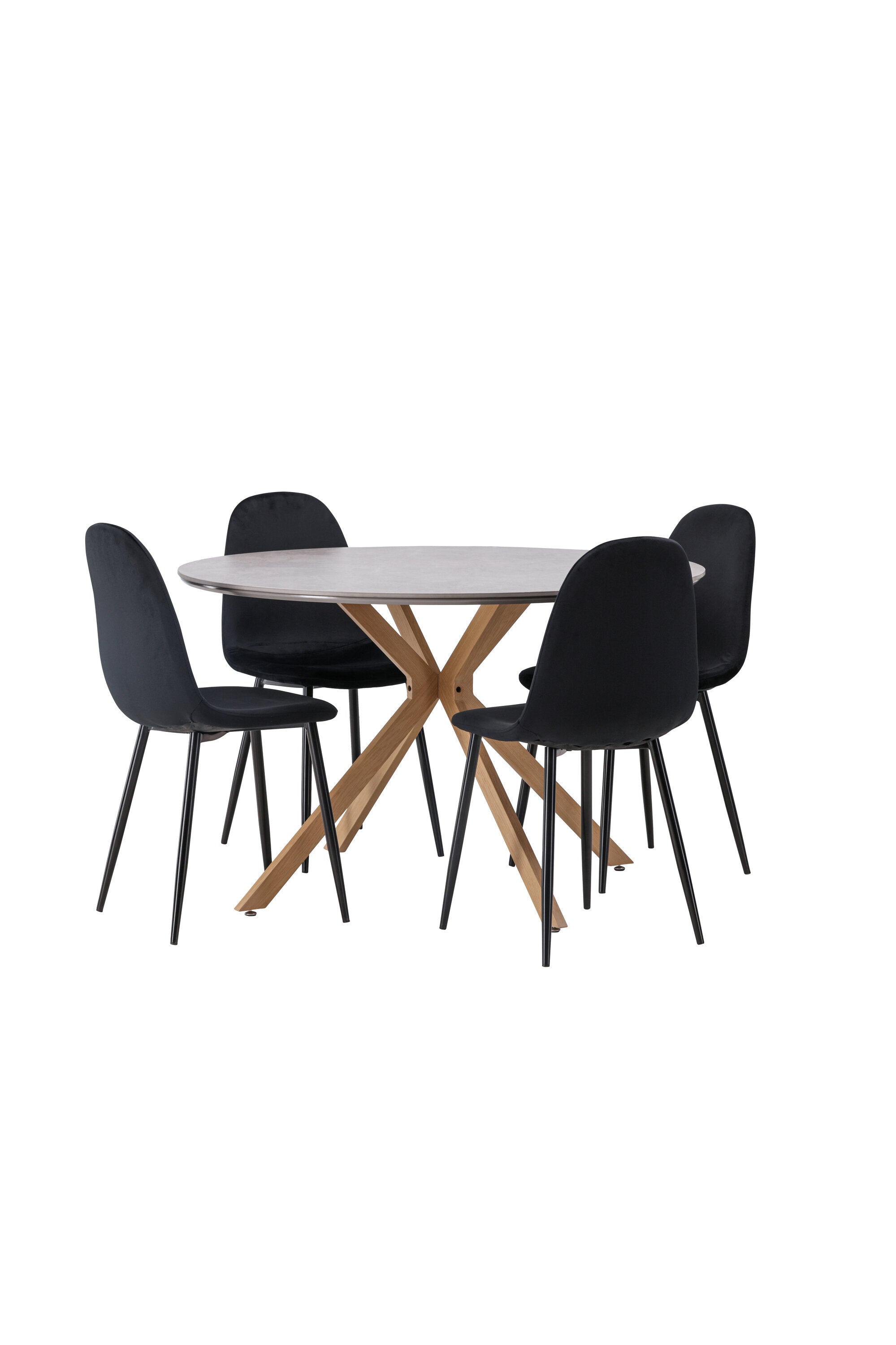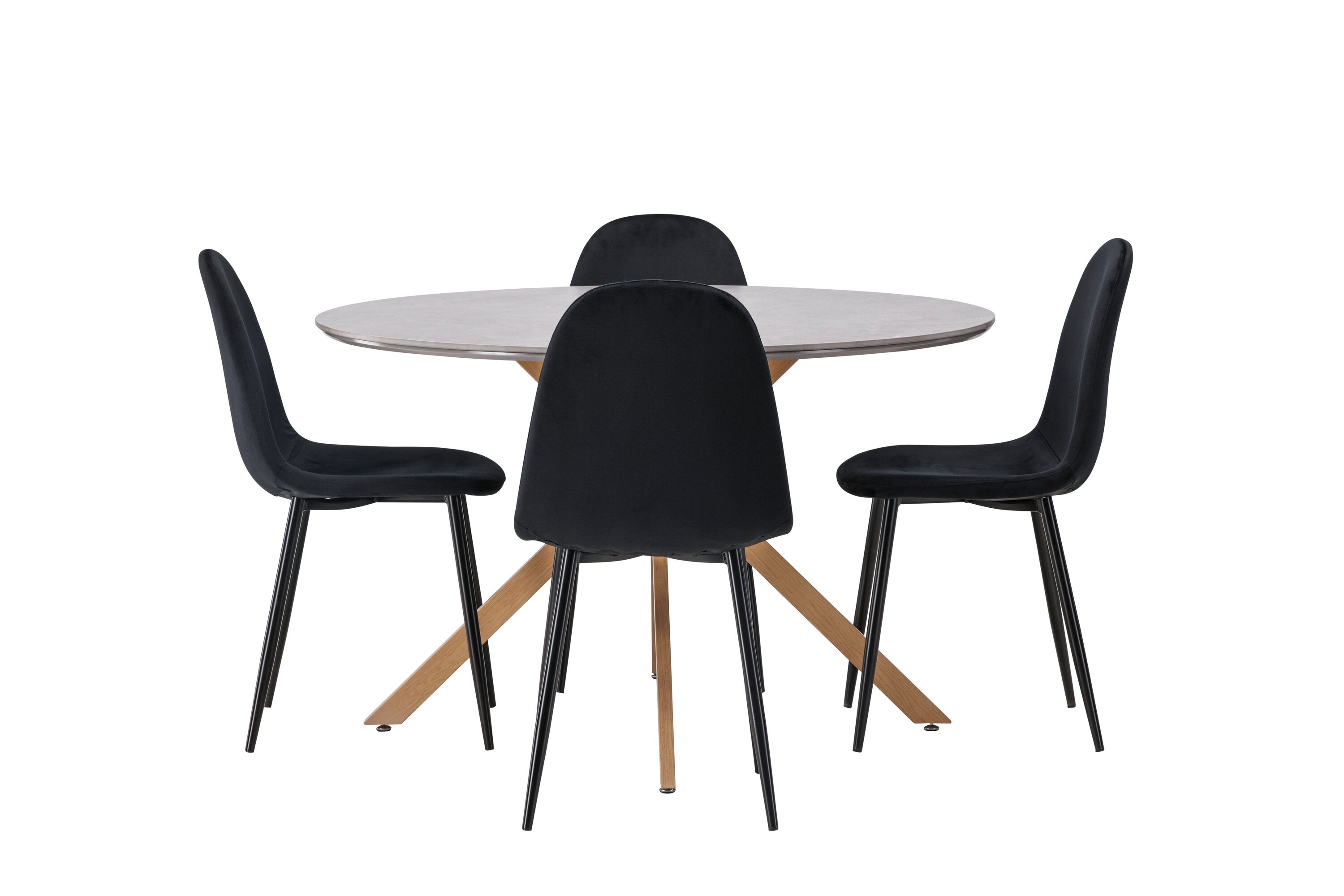 Jídelní stůl Piazza – přírodní / tmavě šedý stříkací kámen + jídelní židle Polar – černé nohy / černý samet _4