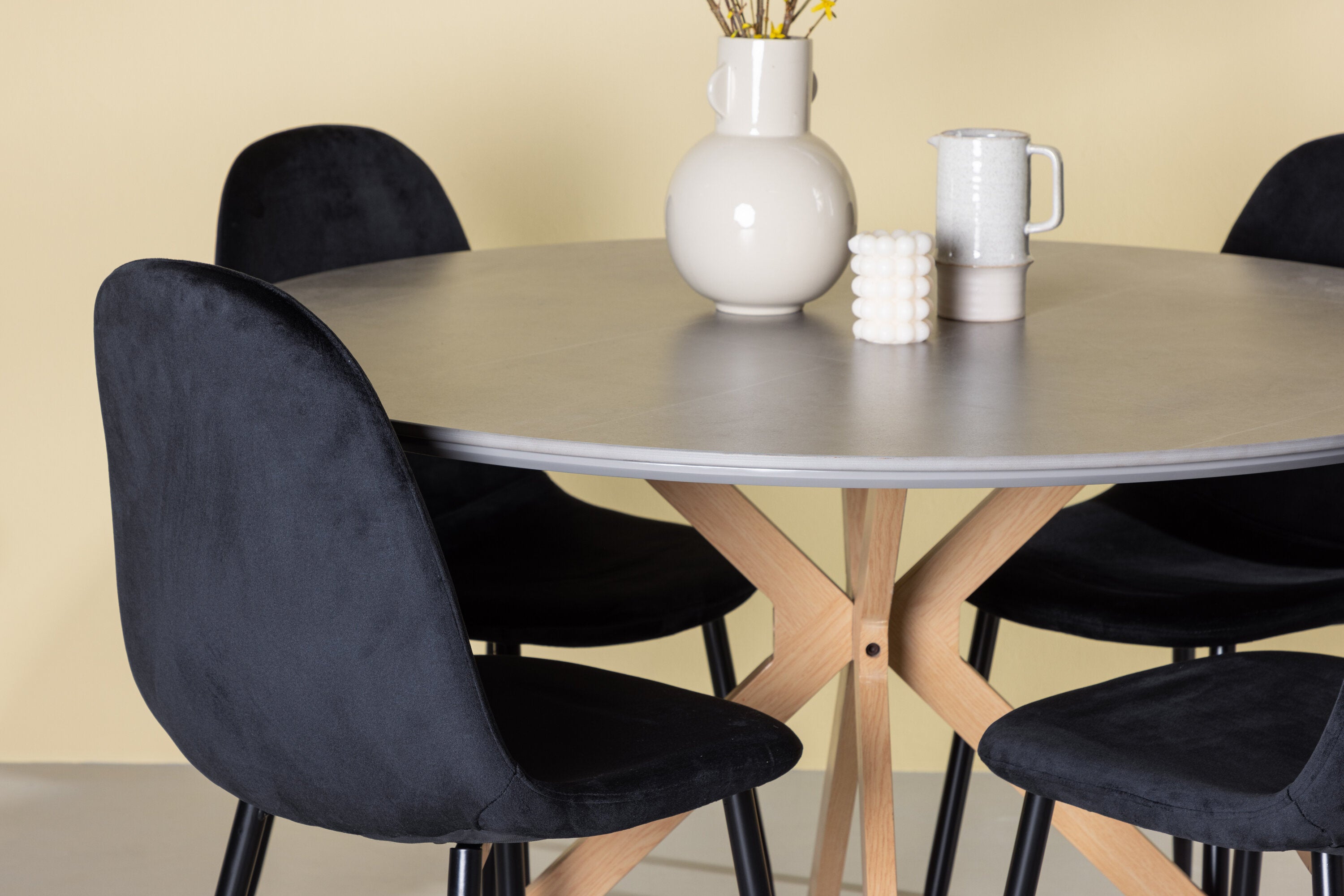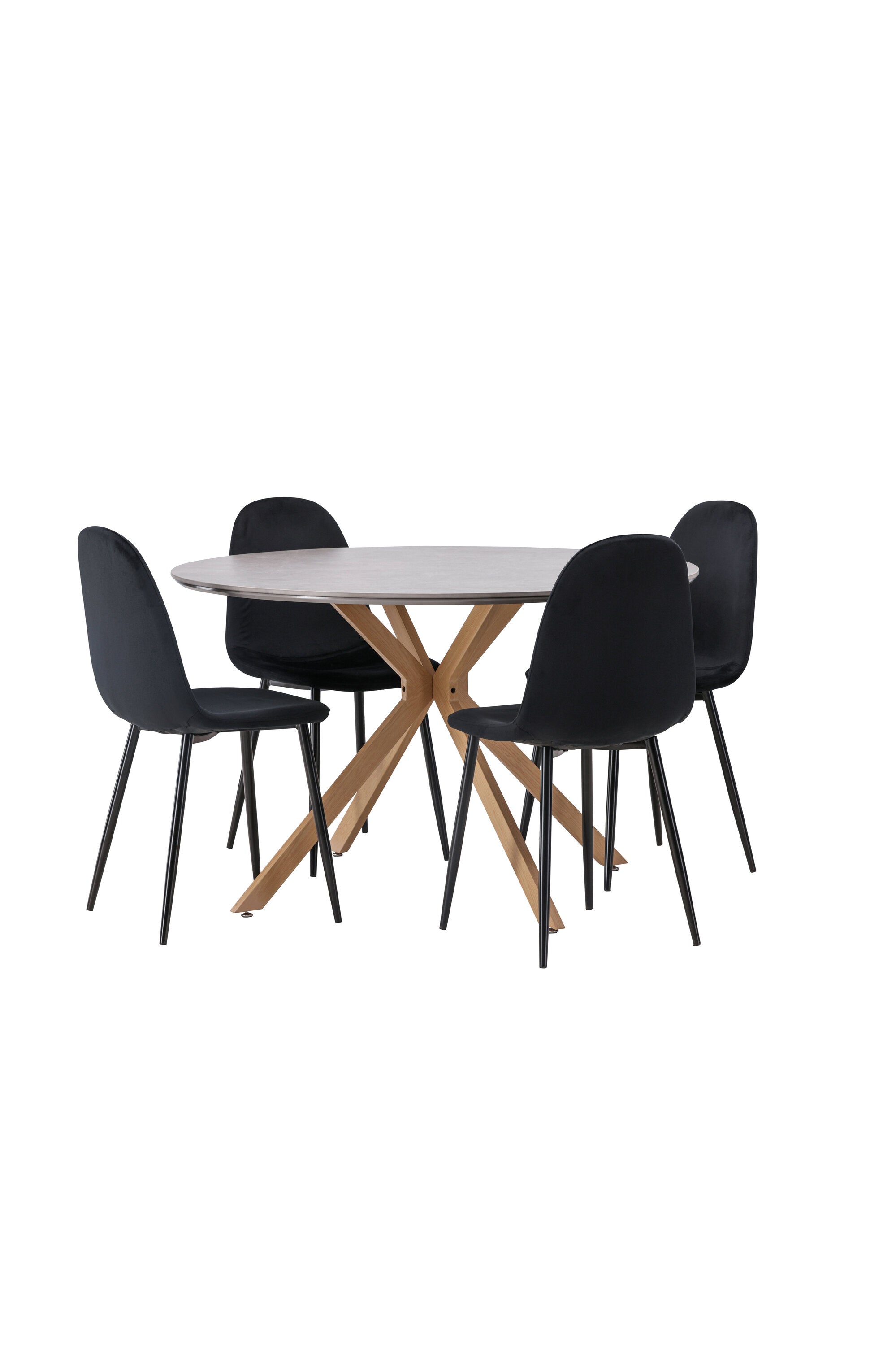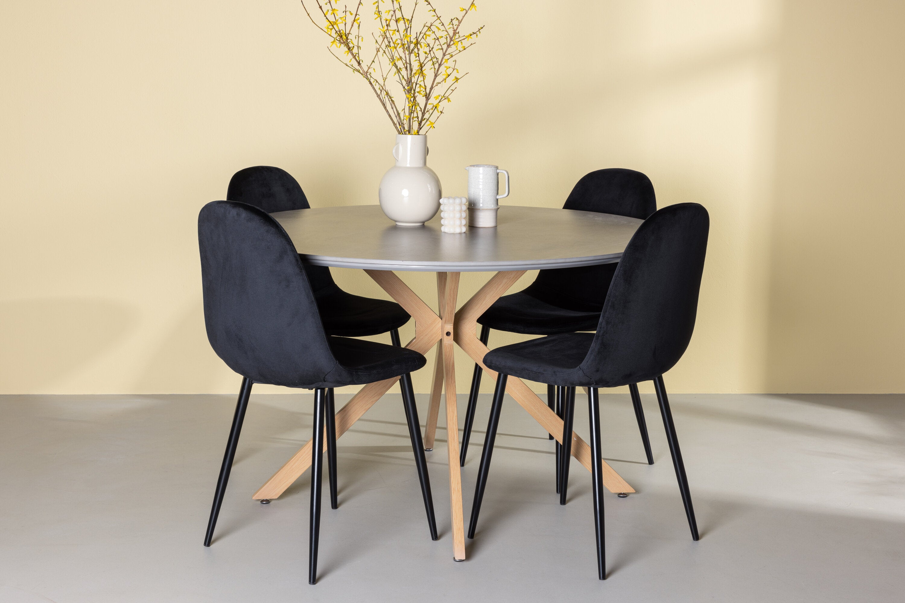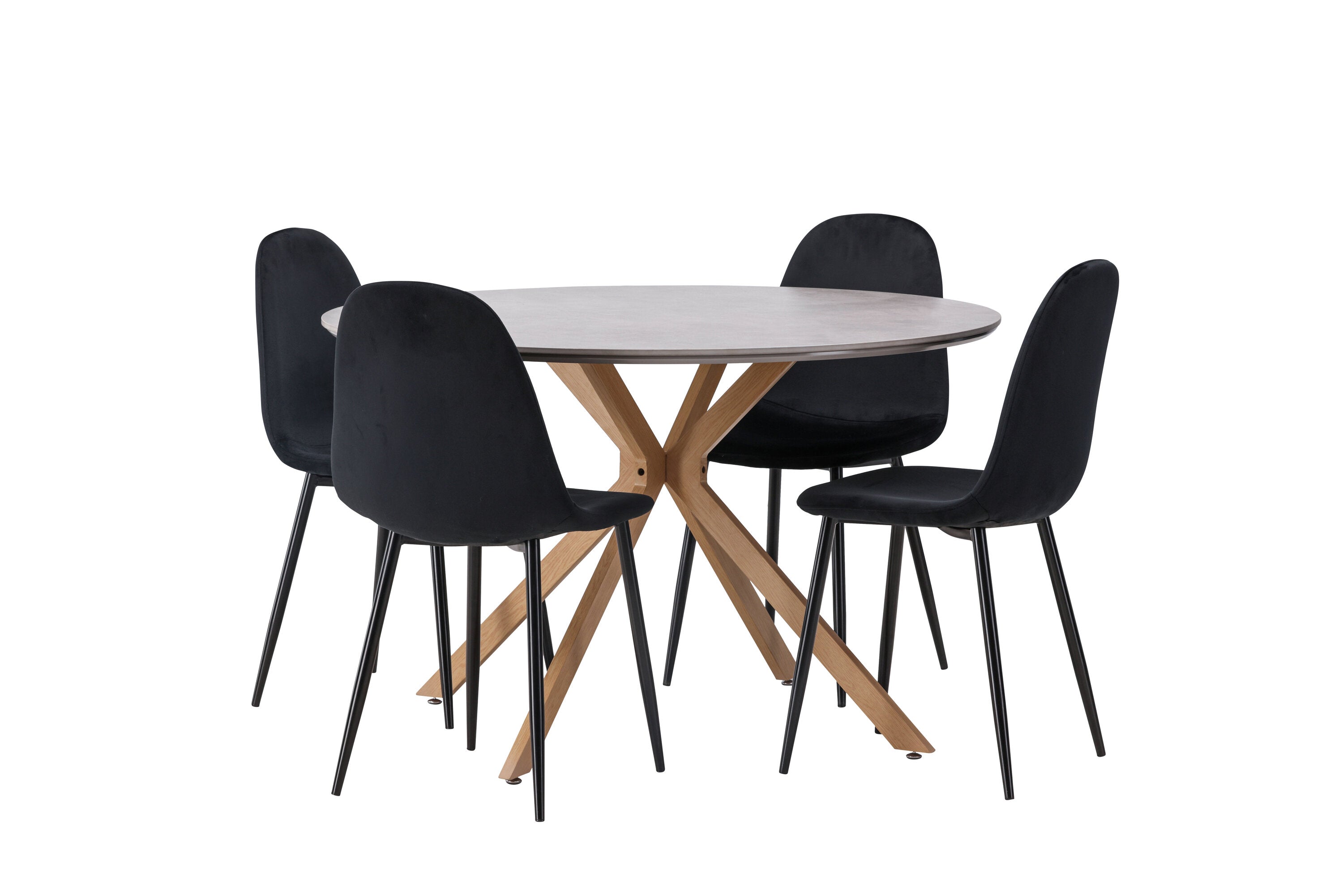 Jídelní stůl Piazza – přírodní / tmavě šedý stříkací kámen + jídelní židle Polar – černé nohy / černý samet _4