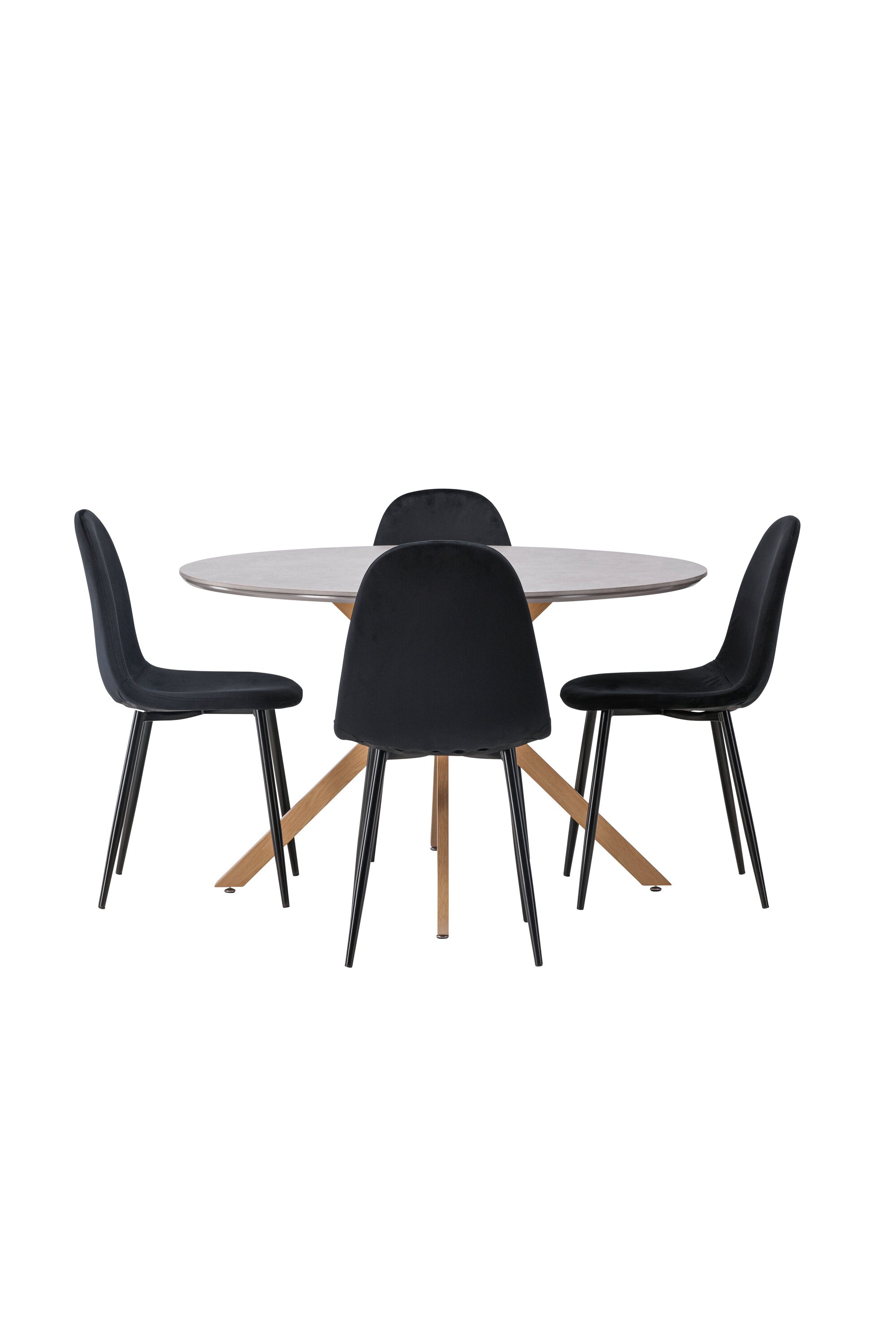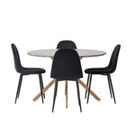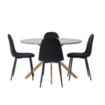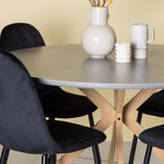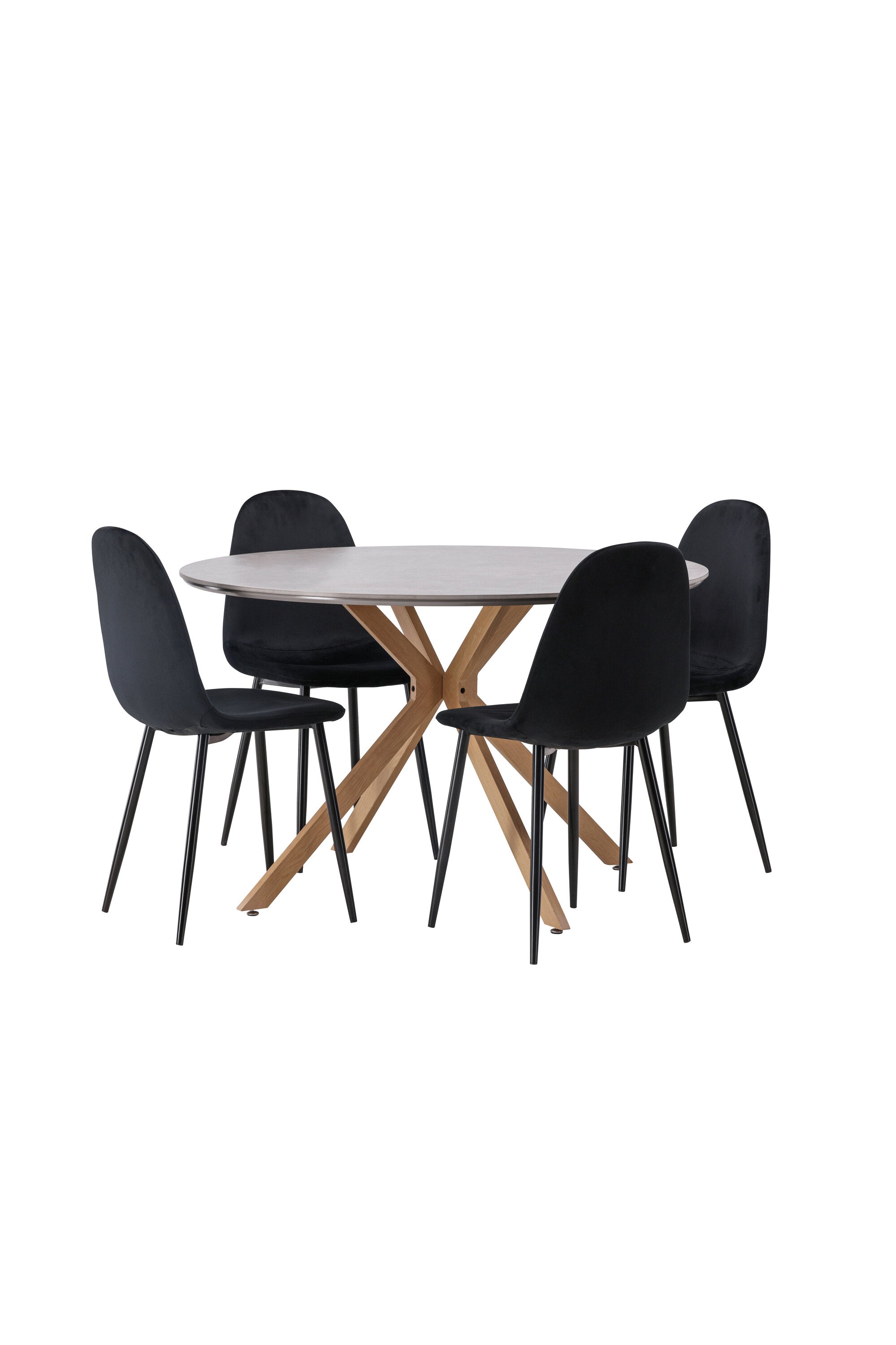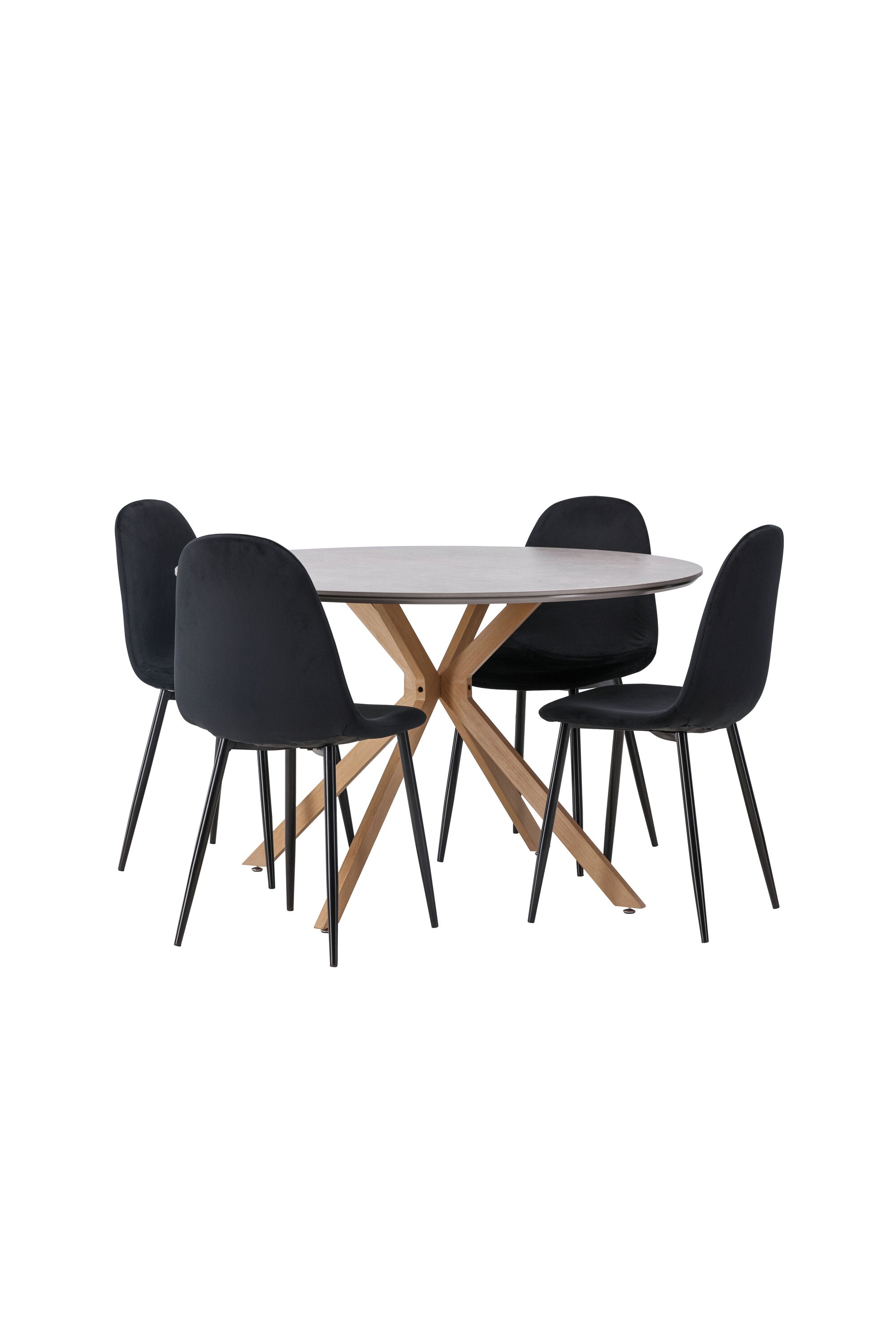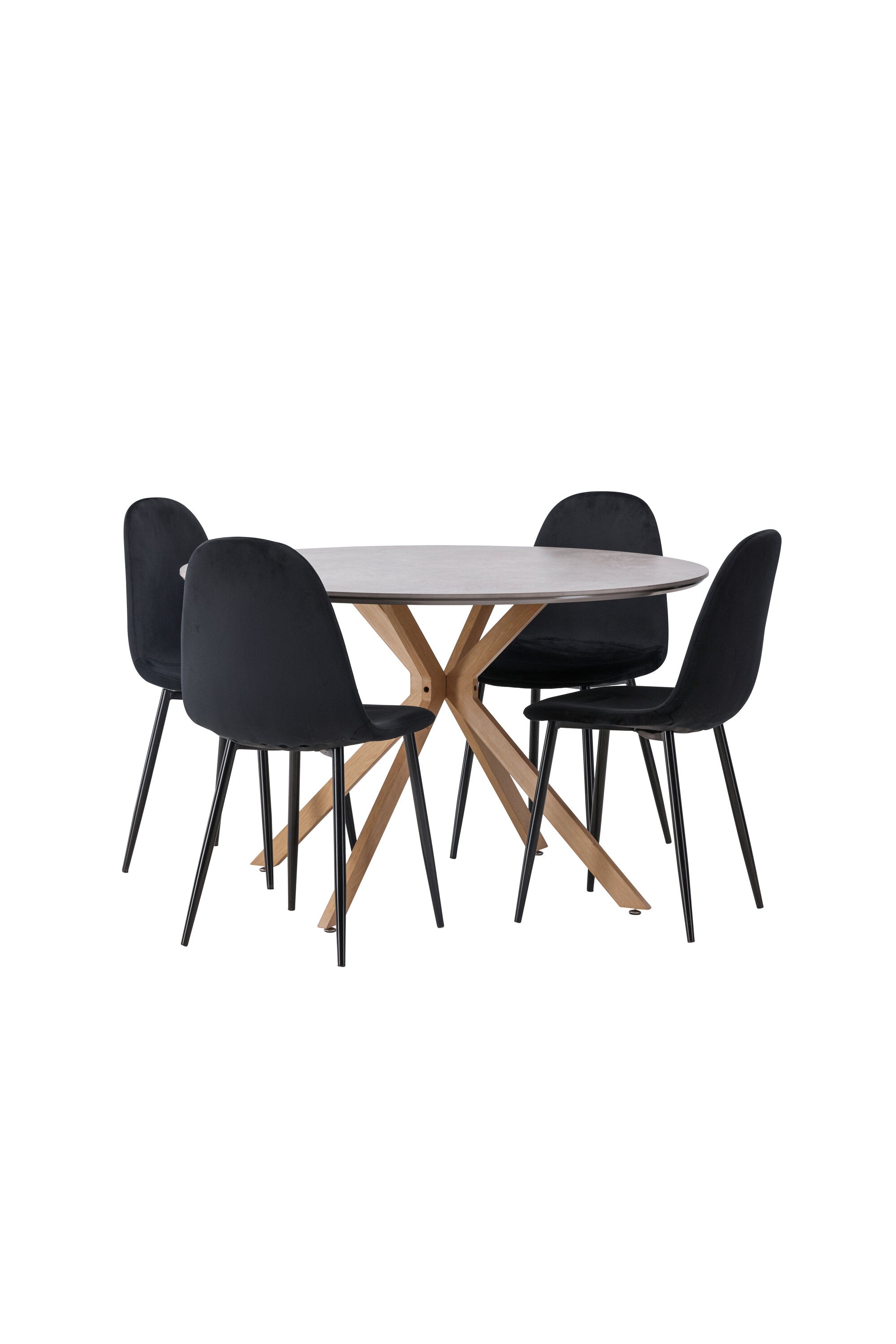 Jídelní stůl Piazza – přírodní / tmavě šedý stříkací kámen + jídelní židle Polar – černé nohy / černý samet _4