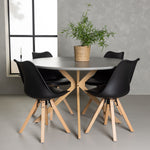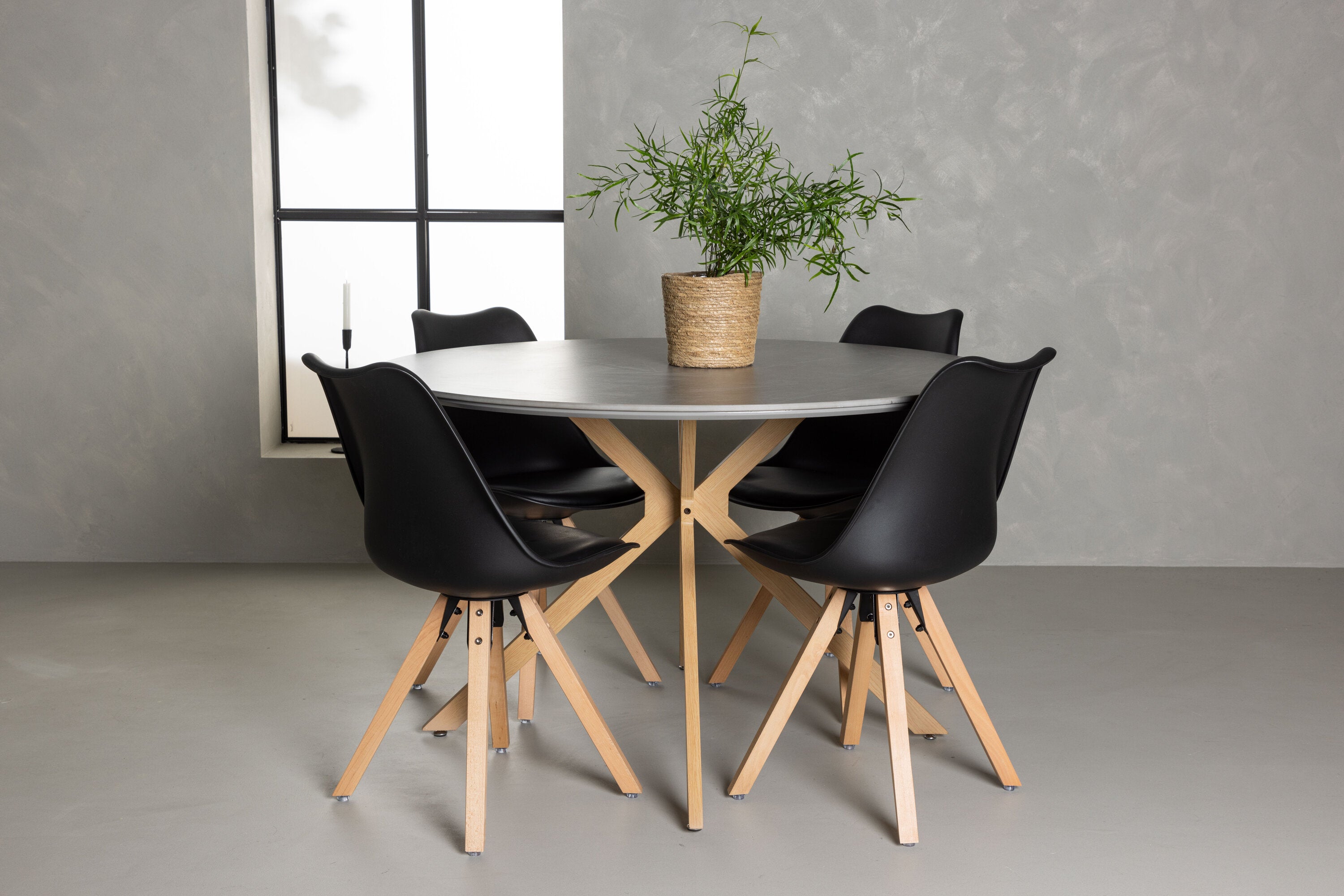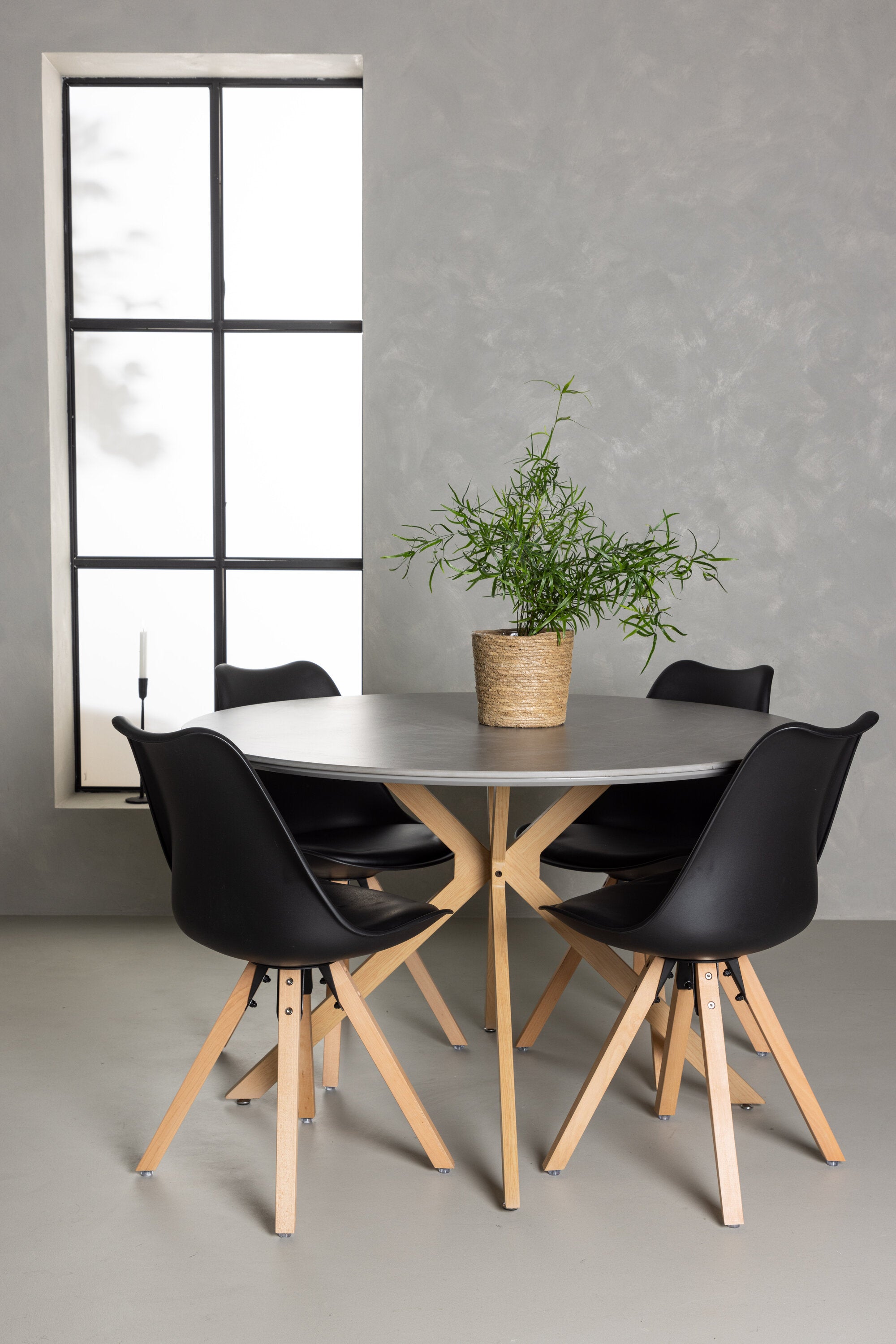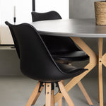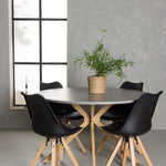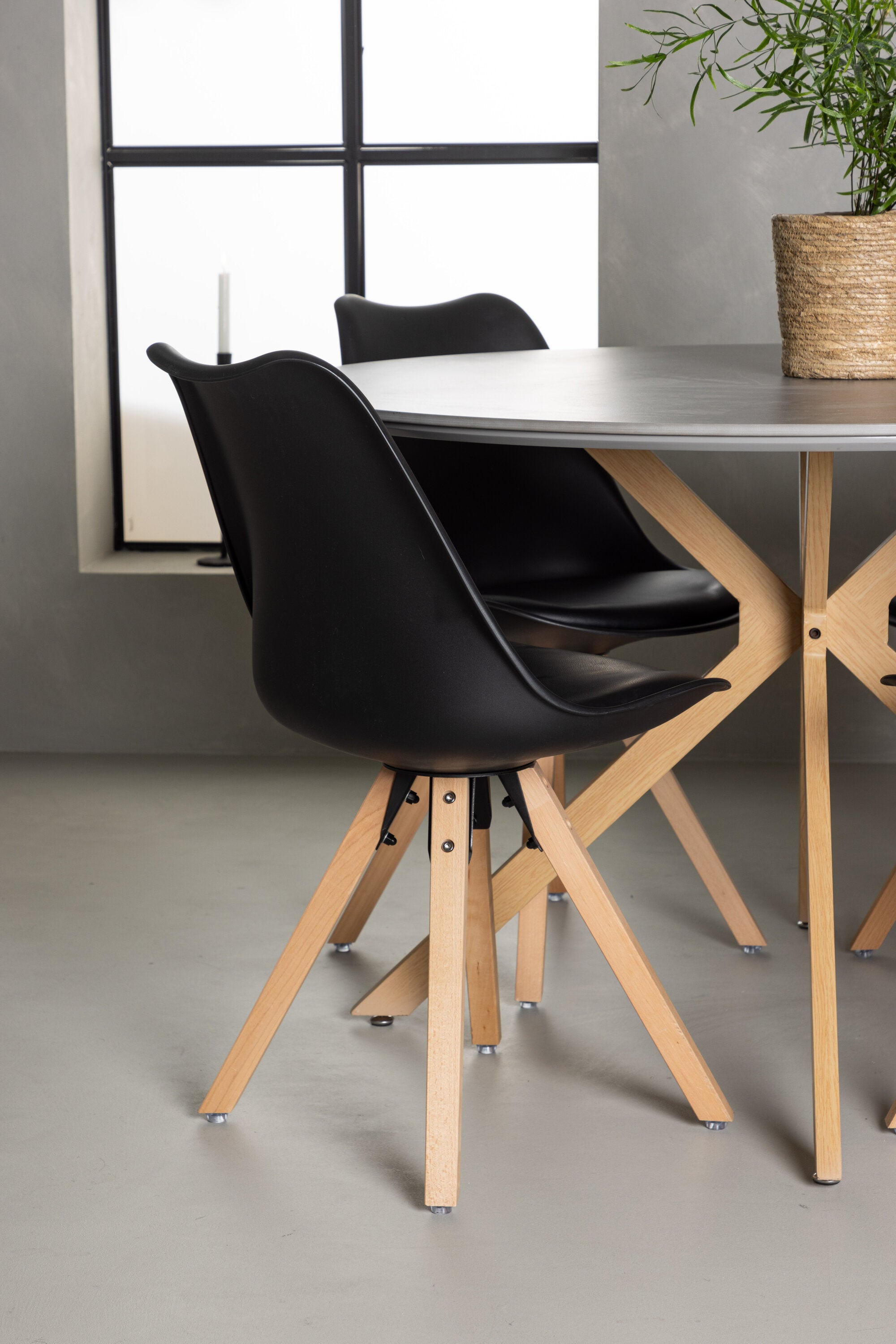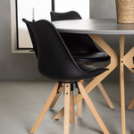 Společně s jídelním stolem Piazza nabízíme naše trendy jídelní židle Zeno. S jejich lákavým designem a černým plastovým opěradlem a sedákem získáte nejen stylovou židli, ale také odolnou. Vestavěné podsedáky vytvářejí pohodlný prostor pro dlouhé večeře a zábavné rozhovory. Dřevěné nohy židle dokonale ladí s designem stolu a vytvářejí soudržný a harmonický celek.