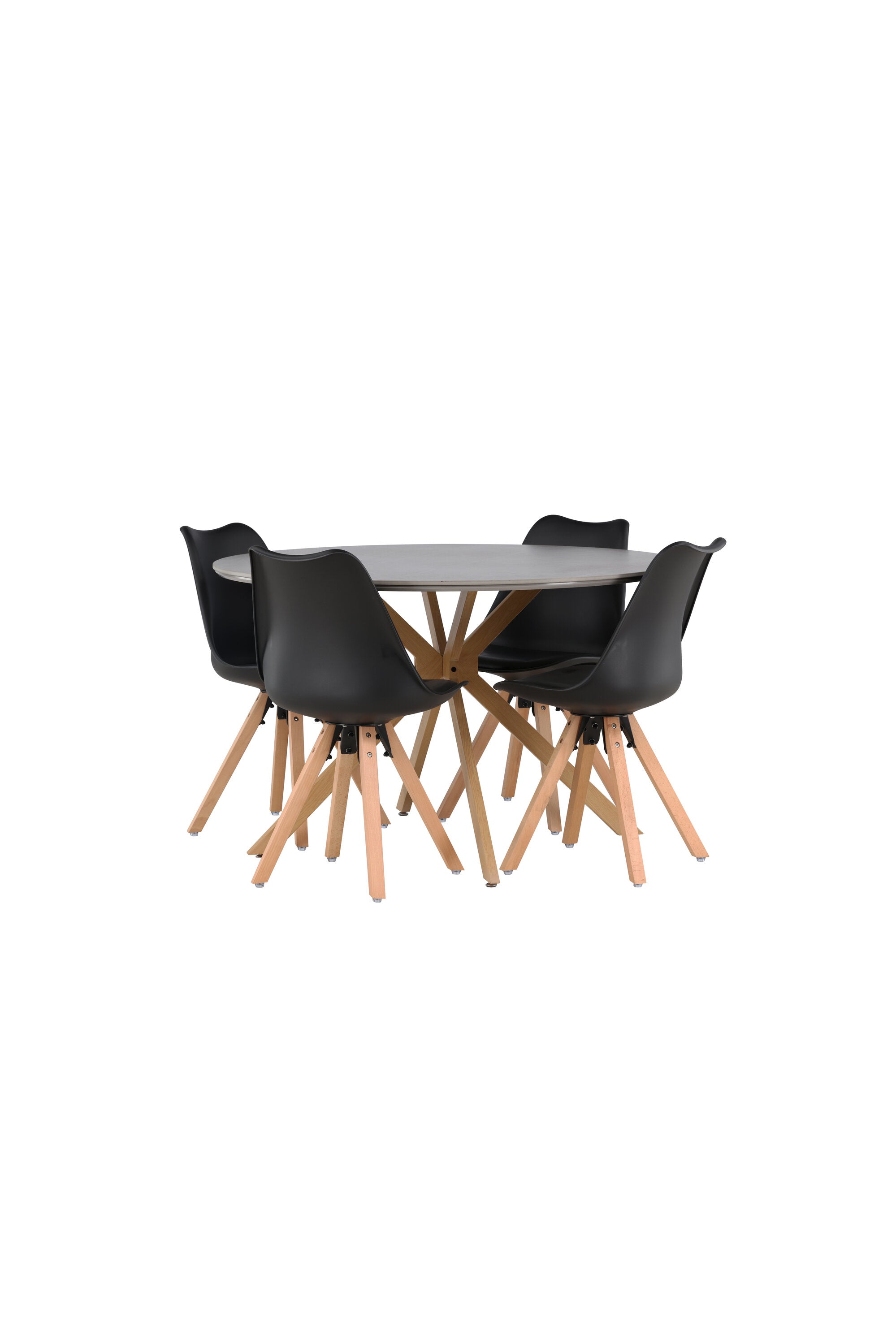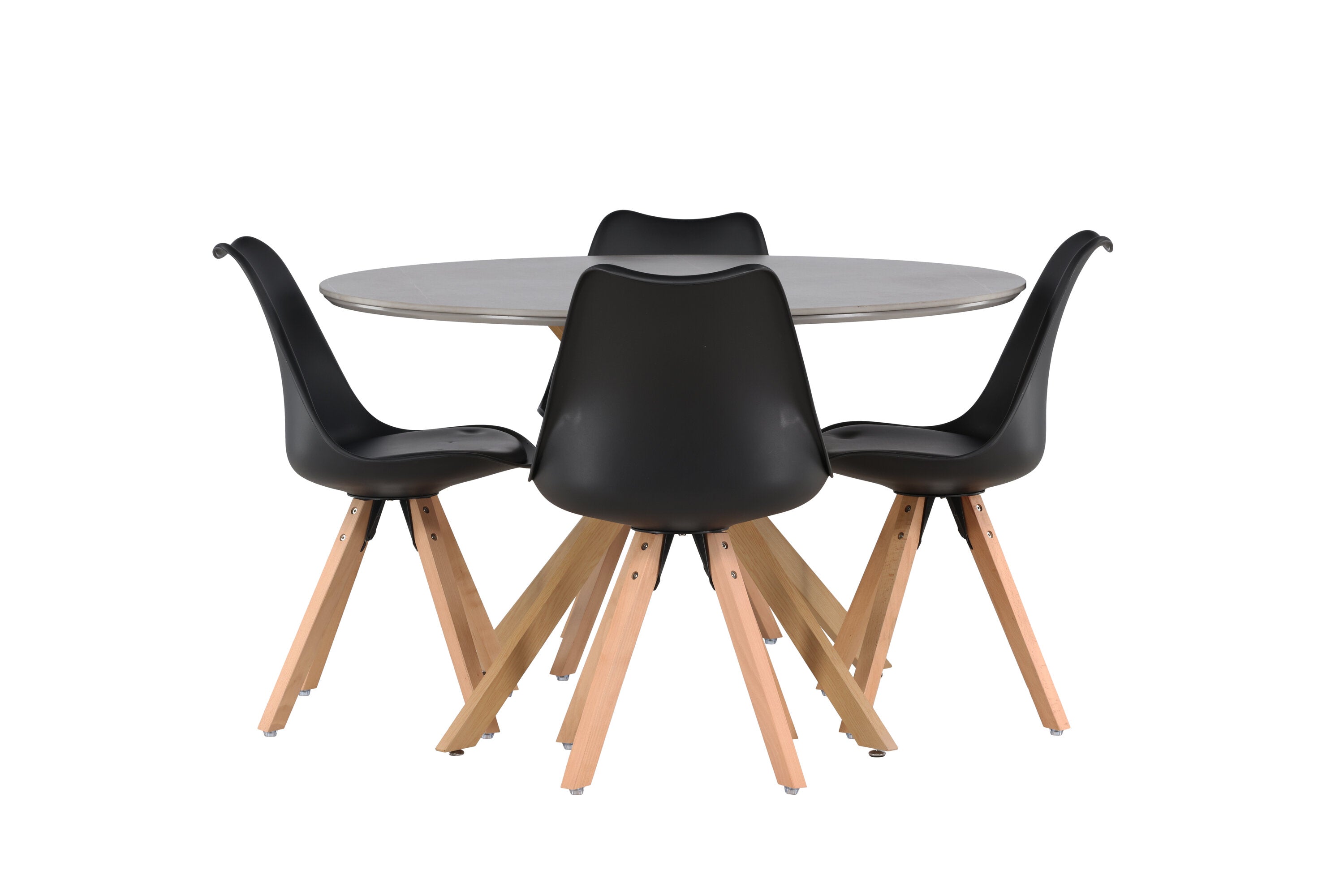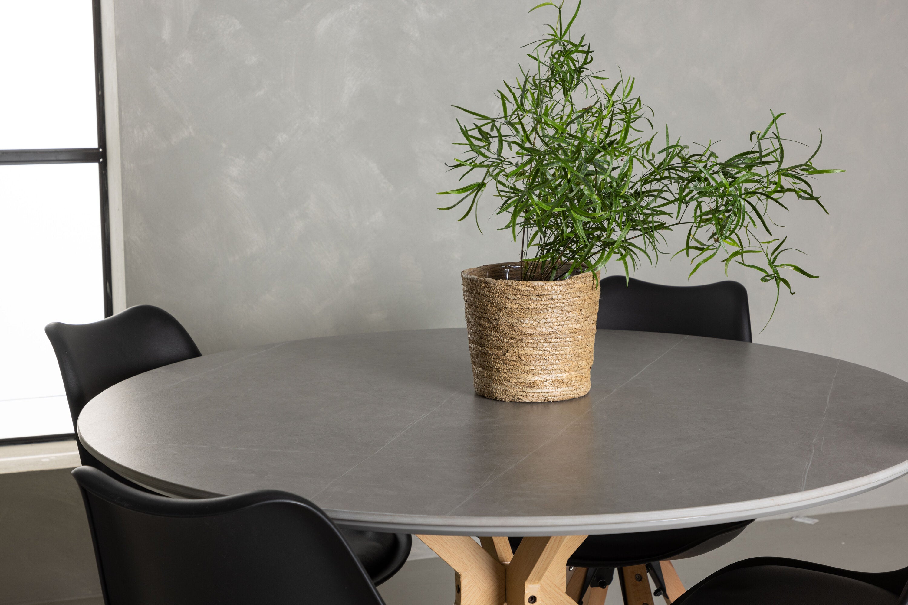 Jídelní stůl Piazza - přírodní / tmavě šedý stříkací kámen + jídelní židle Zeno - přírodní vzhled dřeva / černá PP _4