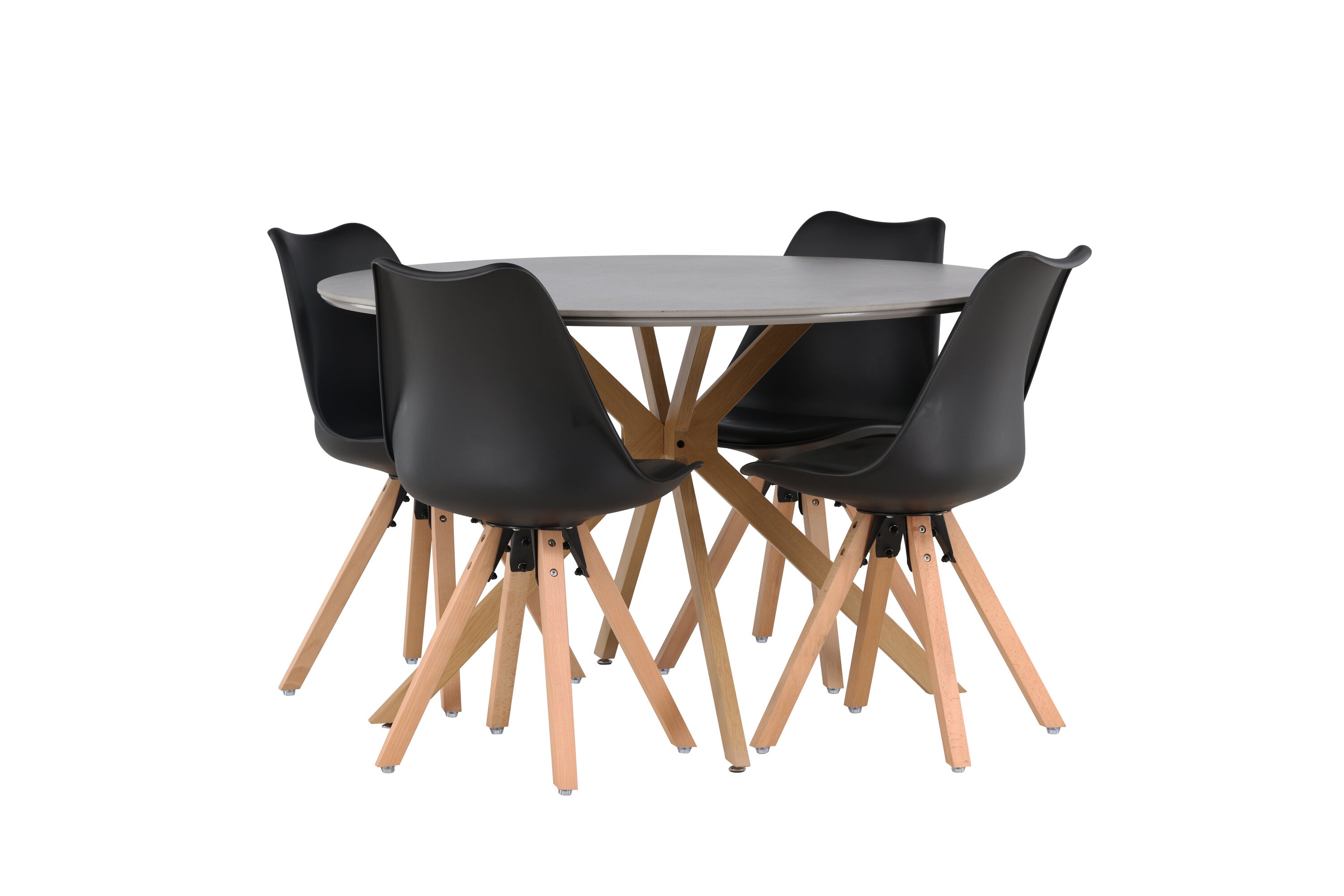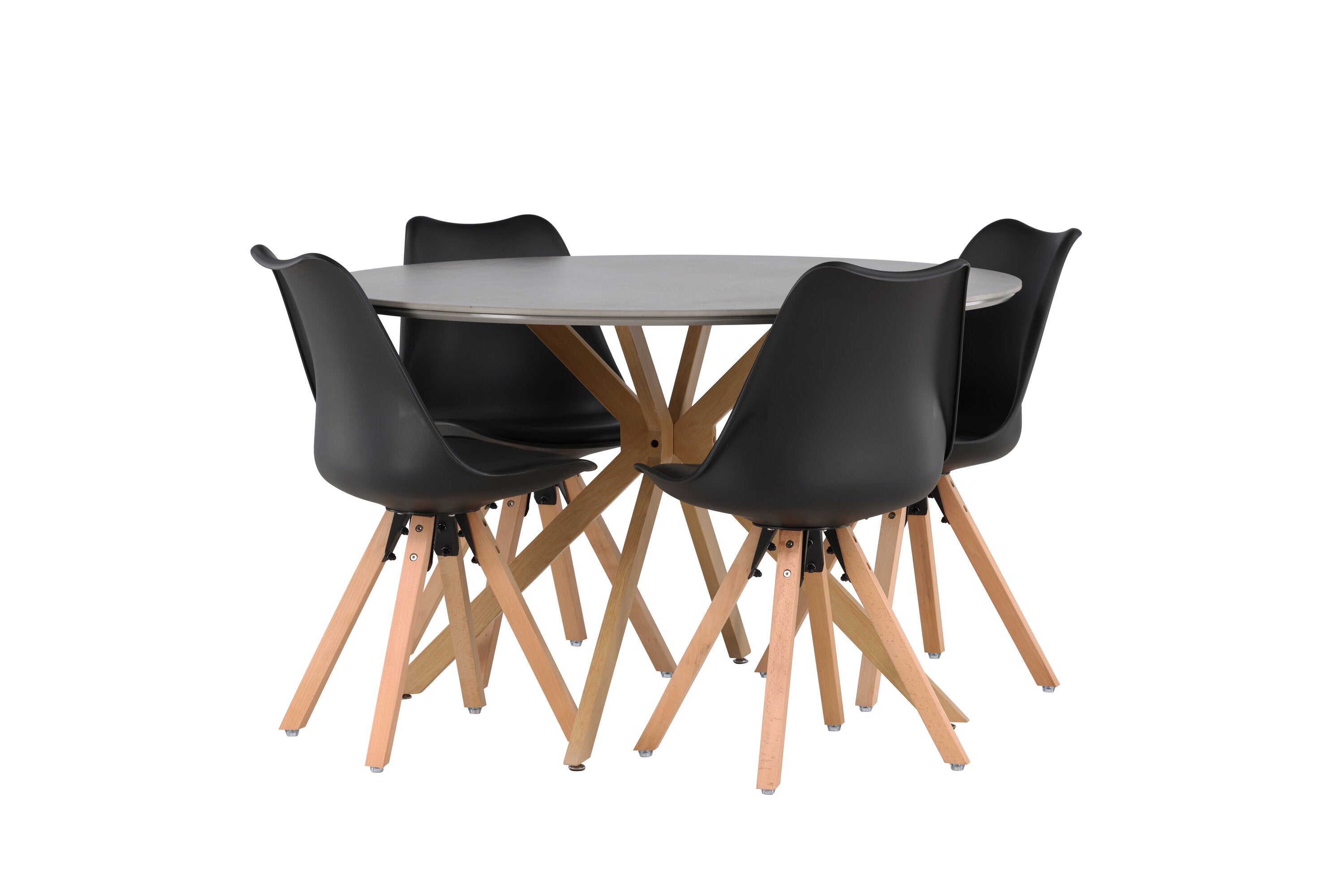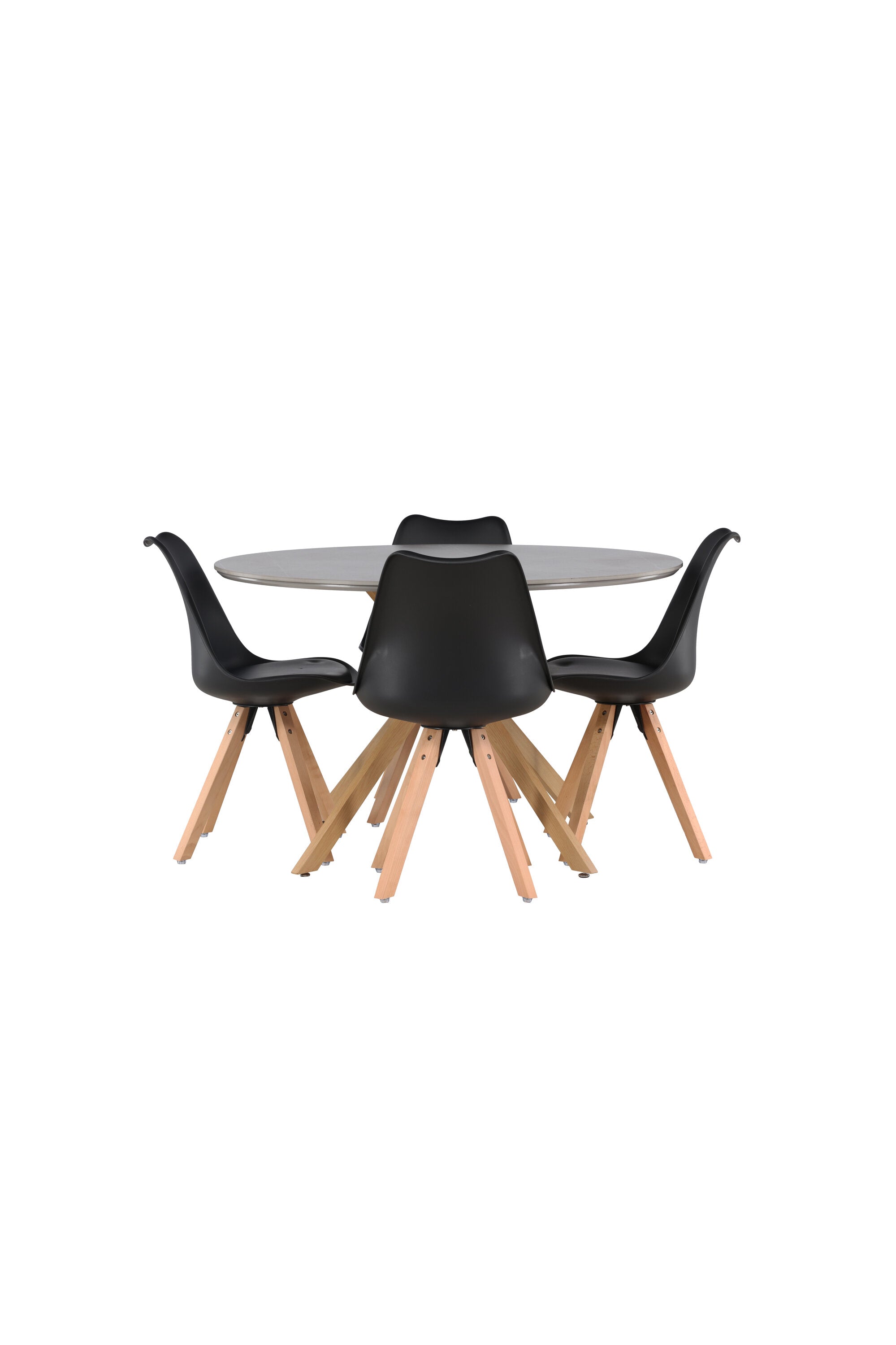Jídelní stůl Piazza - přírodní / tmavě šedý stříkací kámen + jídelní židle Zeno - přírodní vzhled dřeva / černá PP _4