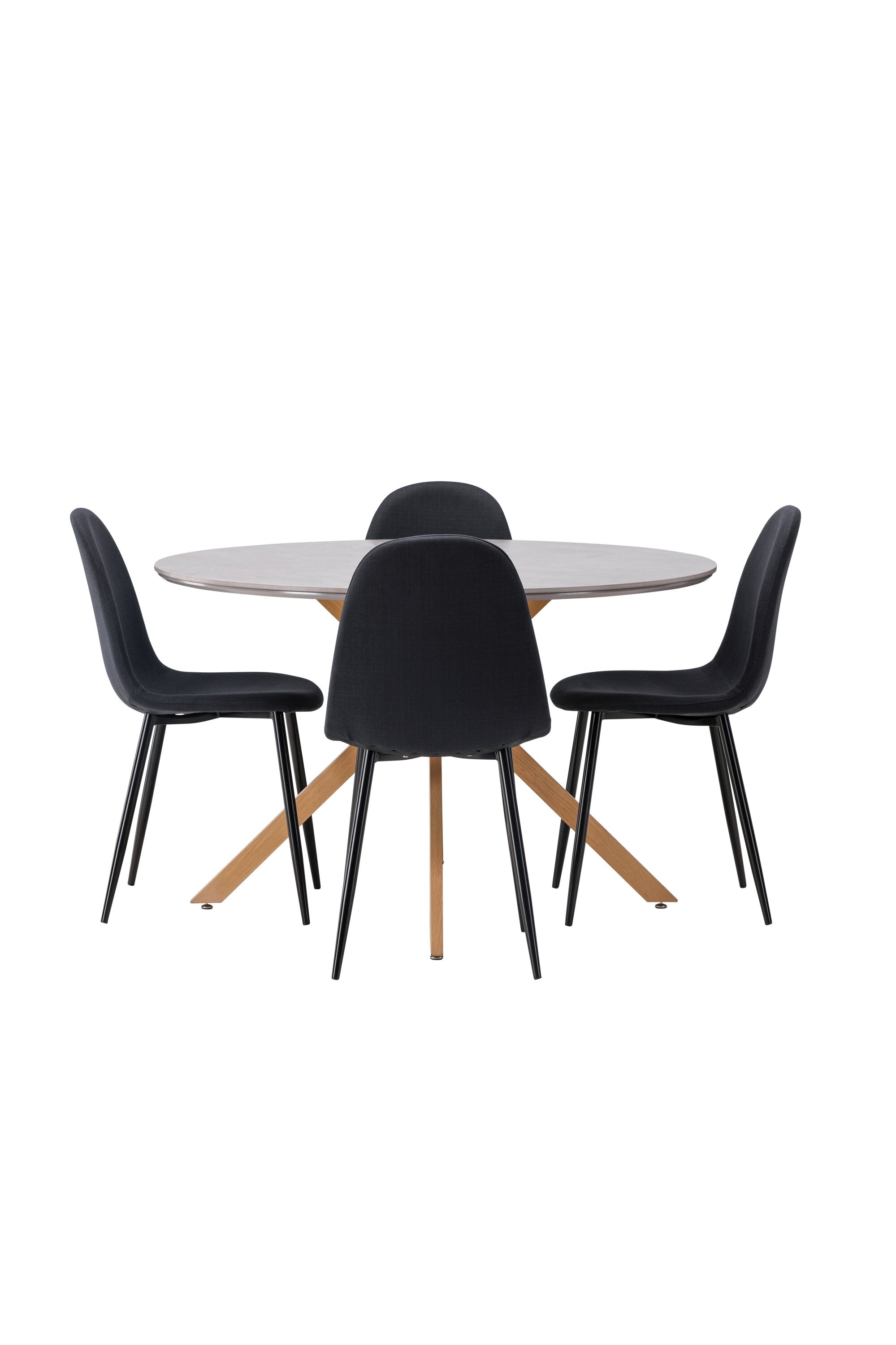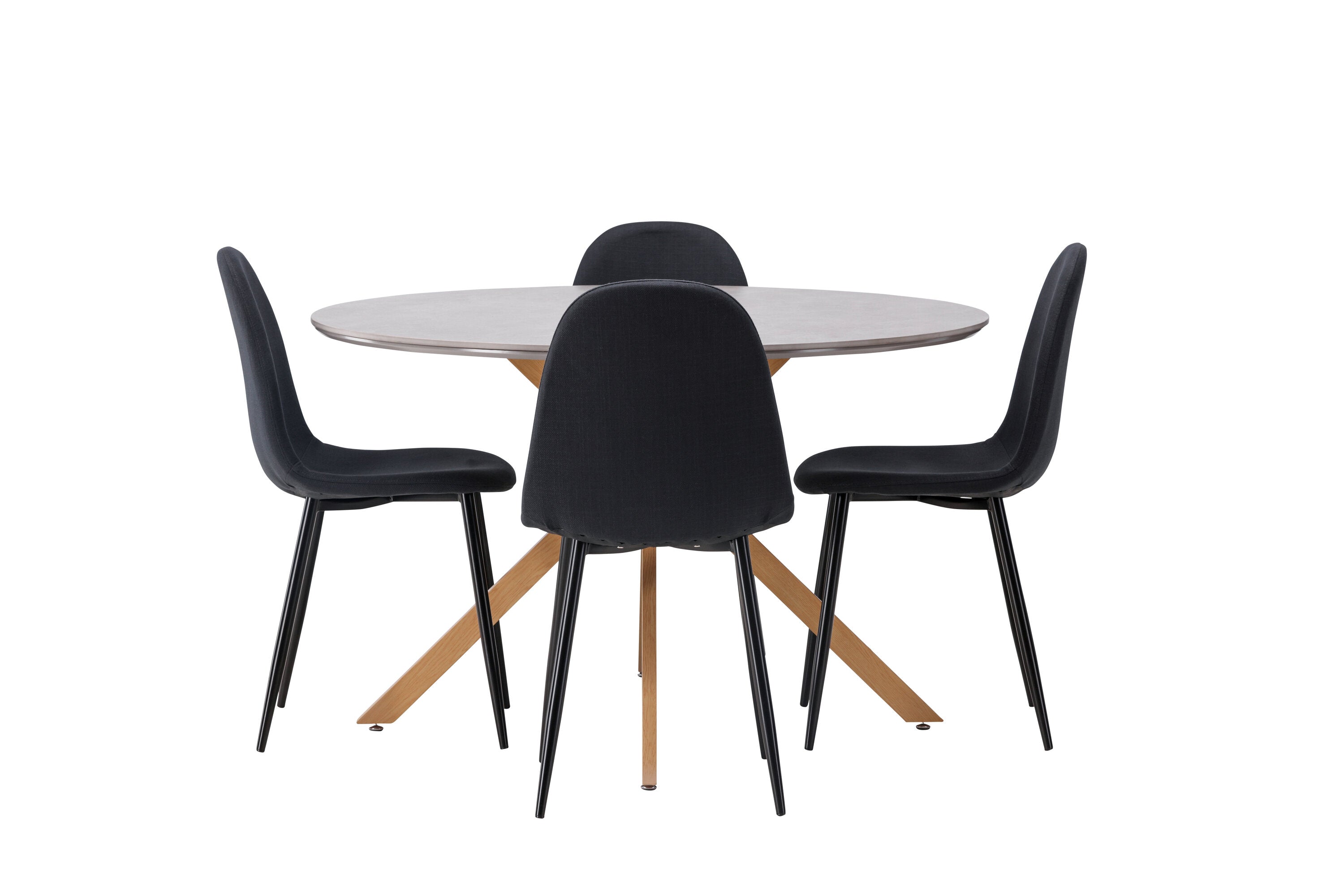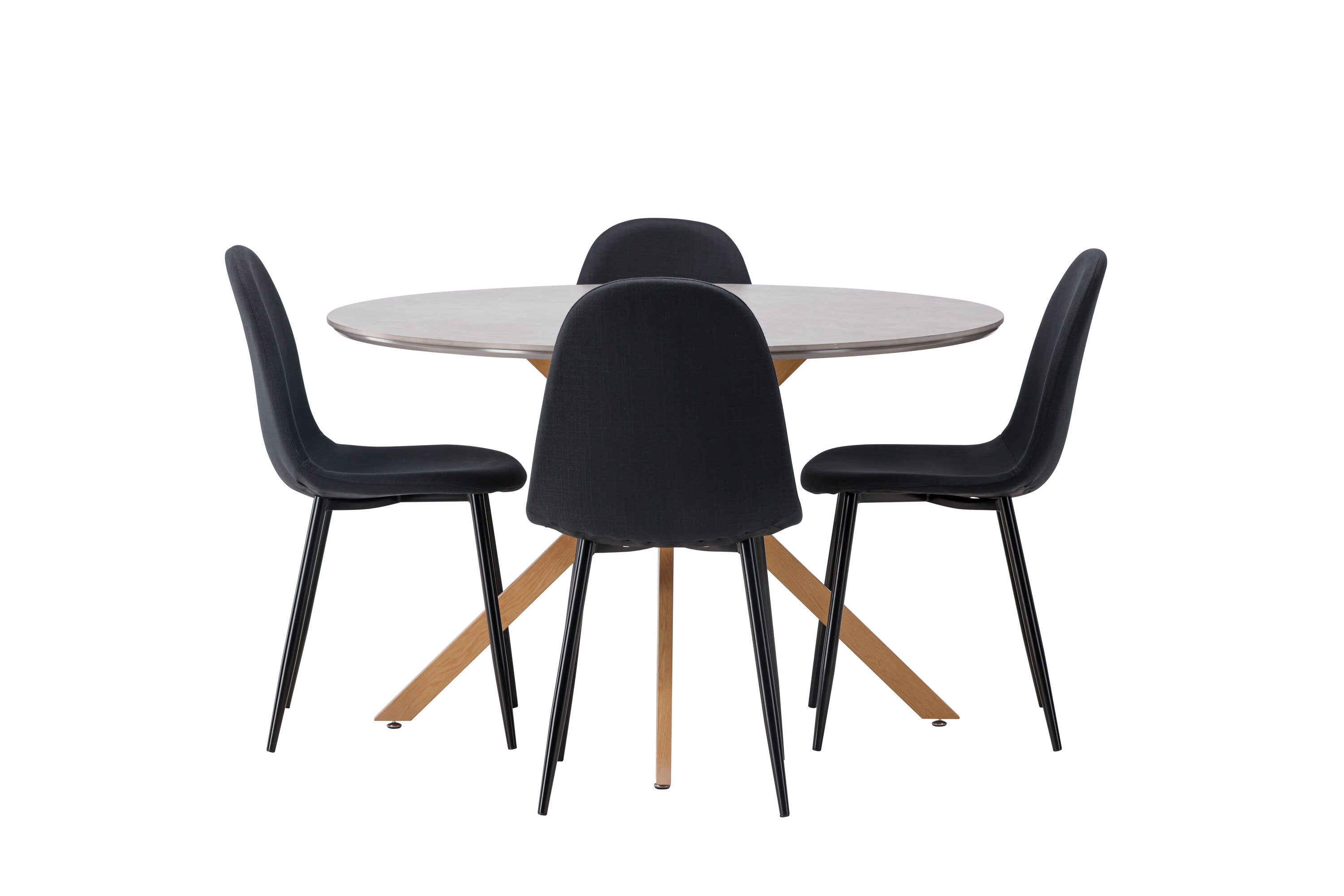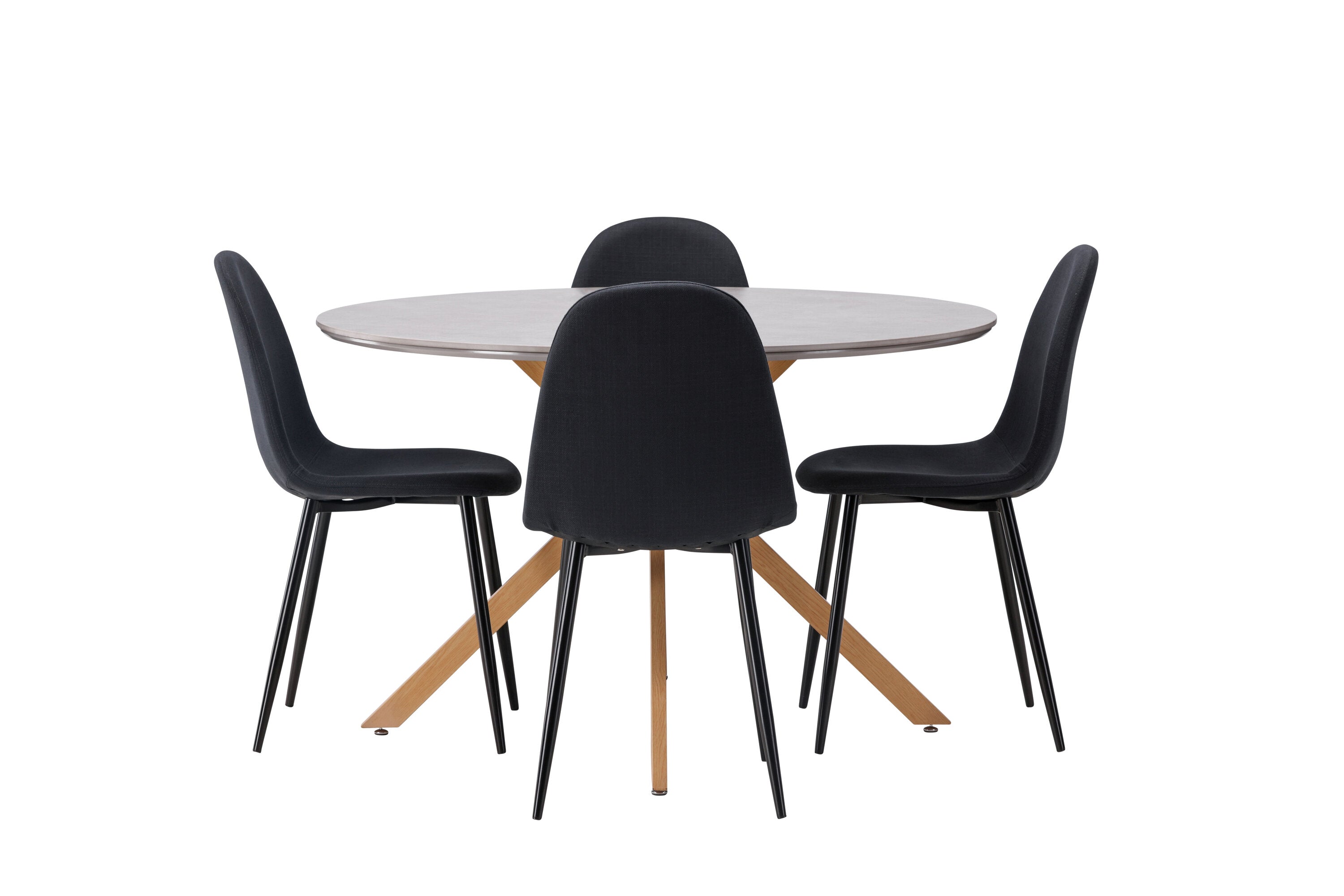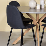 Židle Polar jsou navrženy pro optimální pohodlí s polyesterovým čalouněním a pevnými ocelovými nohami. Černá barva židlí vytváří stylový kontrast k šedému stolu. Každá židle je navržena tak, aby poskytovala pohodlné sezení během dlouhých jídel a rozhovorů.