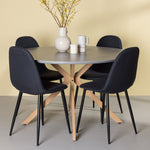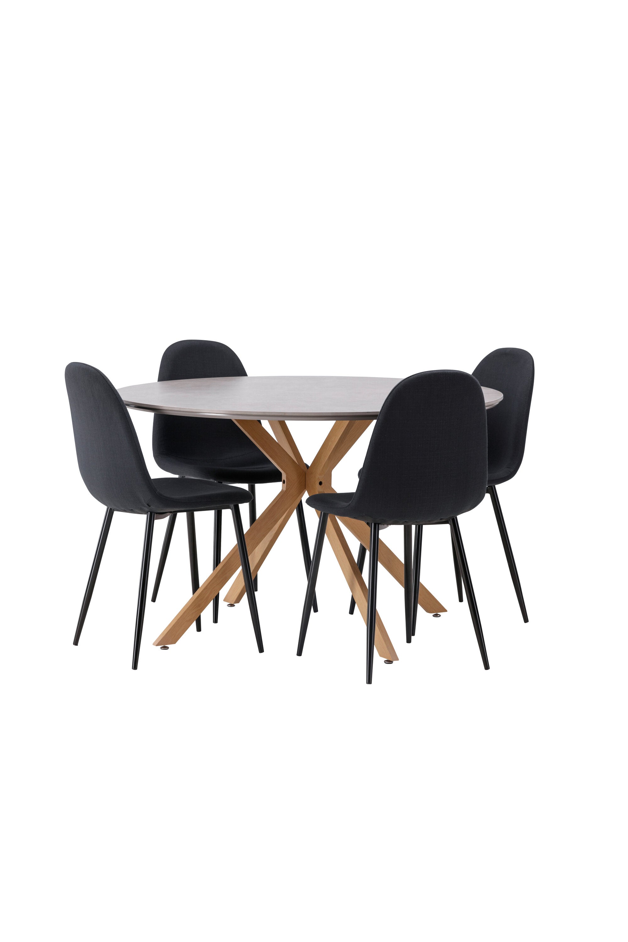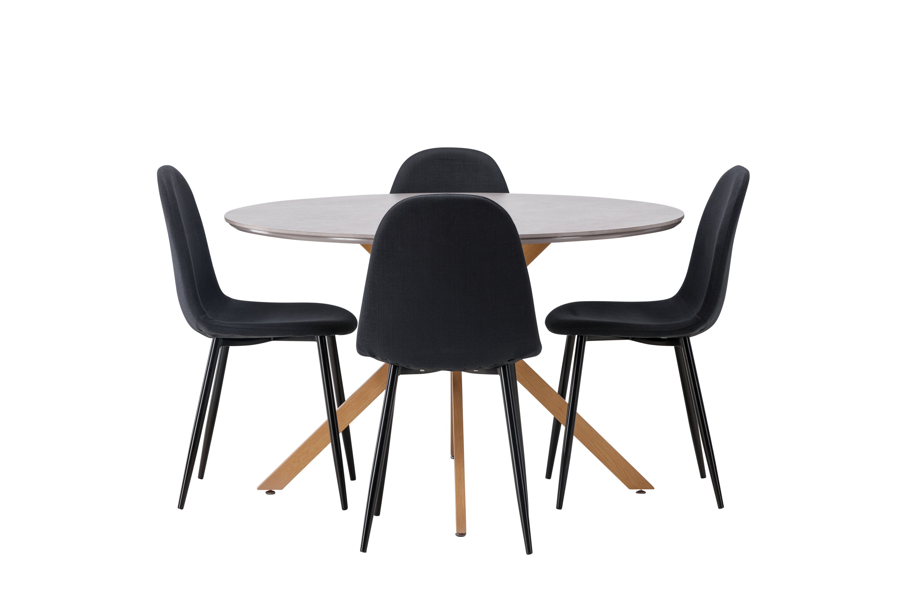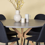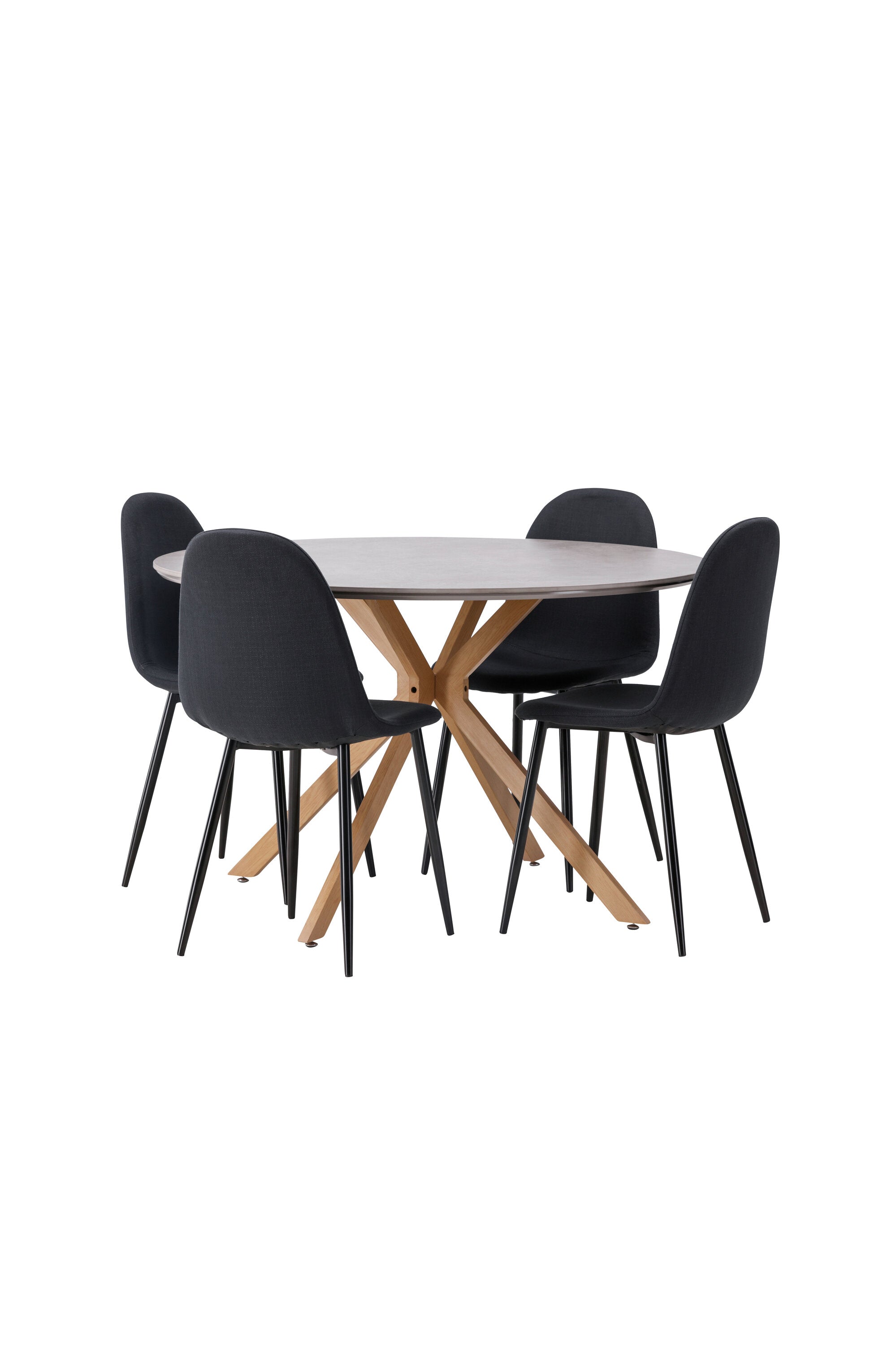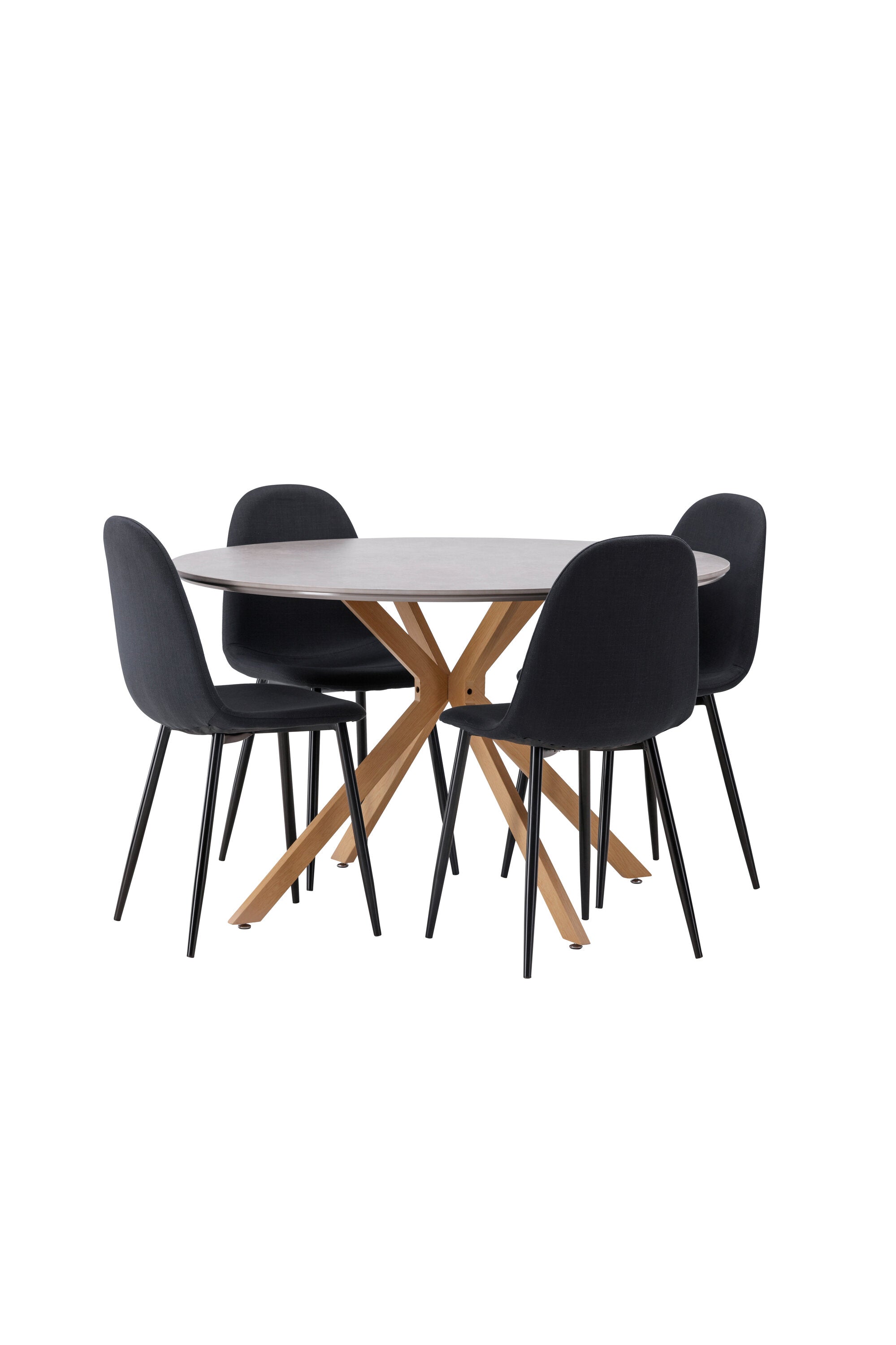Židle Polar jsou navrženy pro optimální pohodlí s polyesterovým čalouněním a pevnými ocelovými nohami. Černá barva židlí vytváří stylový kontrast k šedému stolu. Každá židle je navržena tak, aby poskytovala pohodlné sezení během dlouhých jídel a rozhovorů.