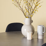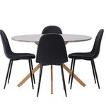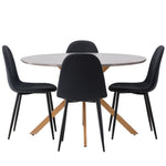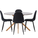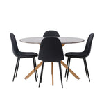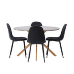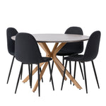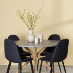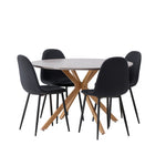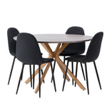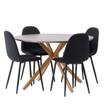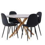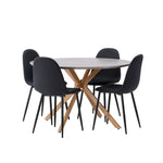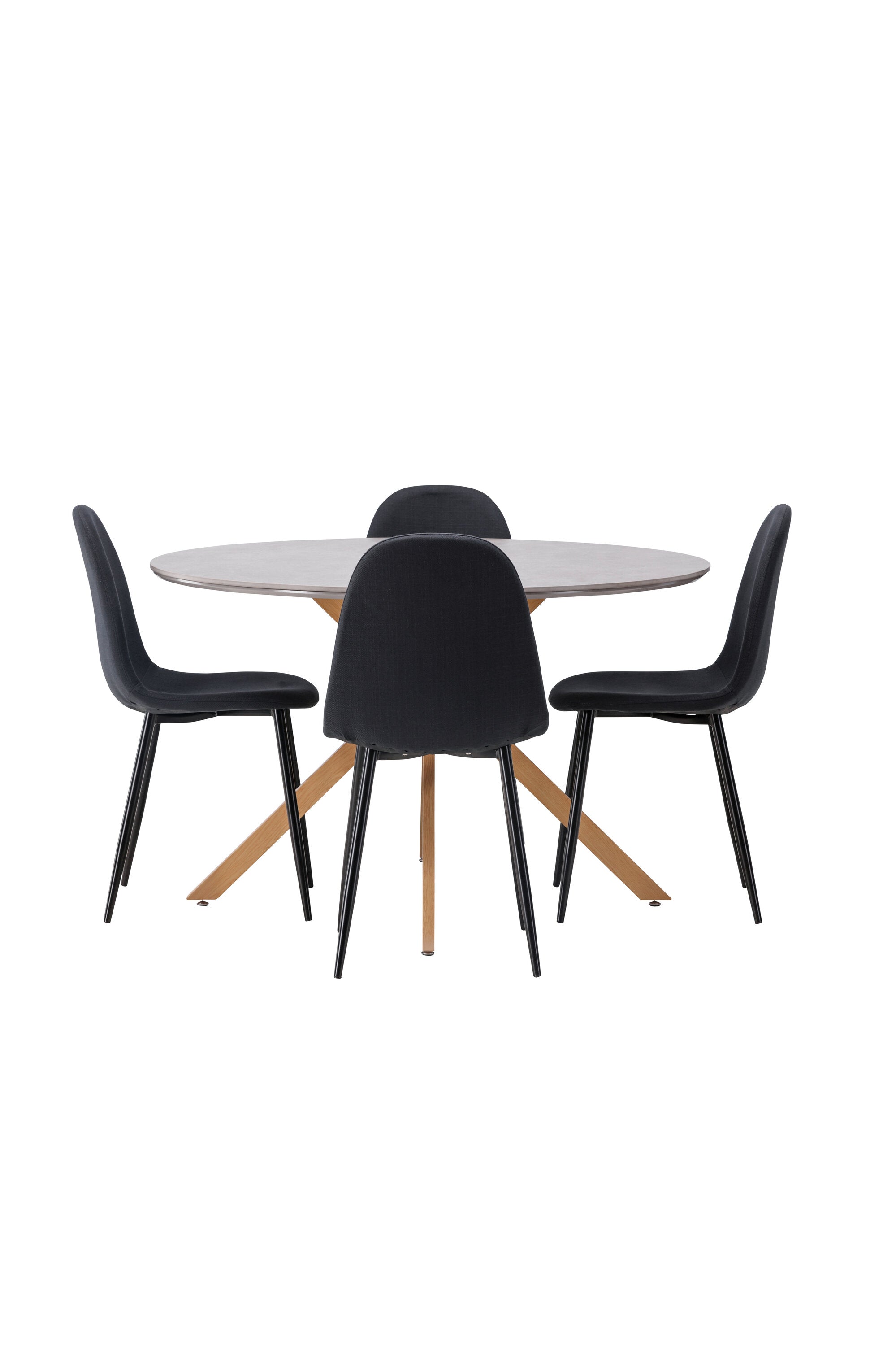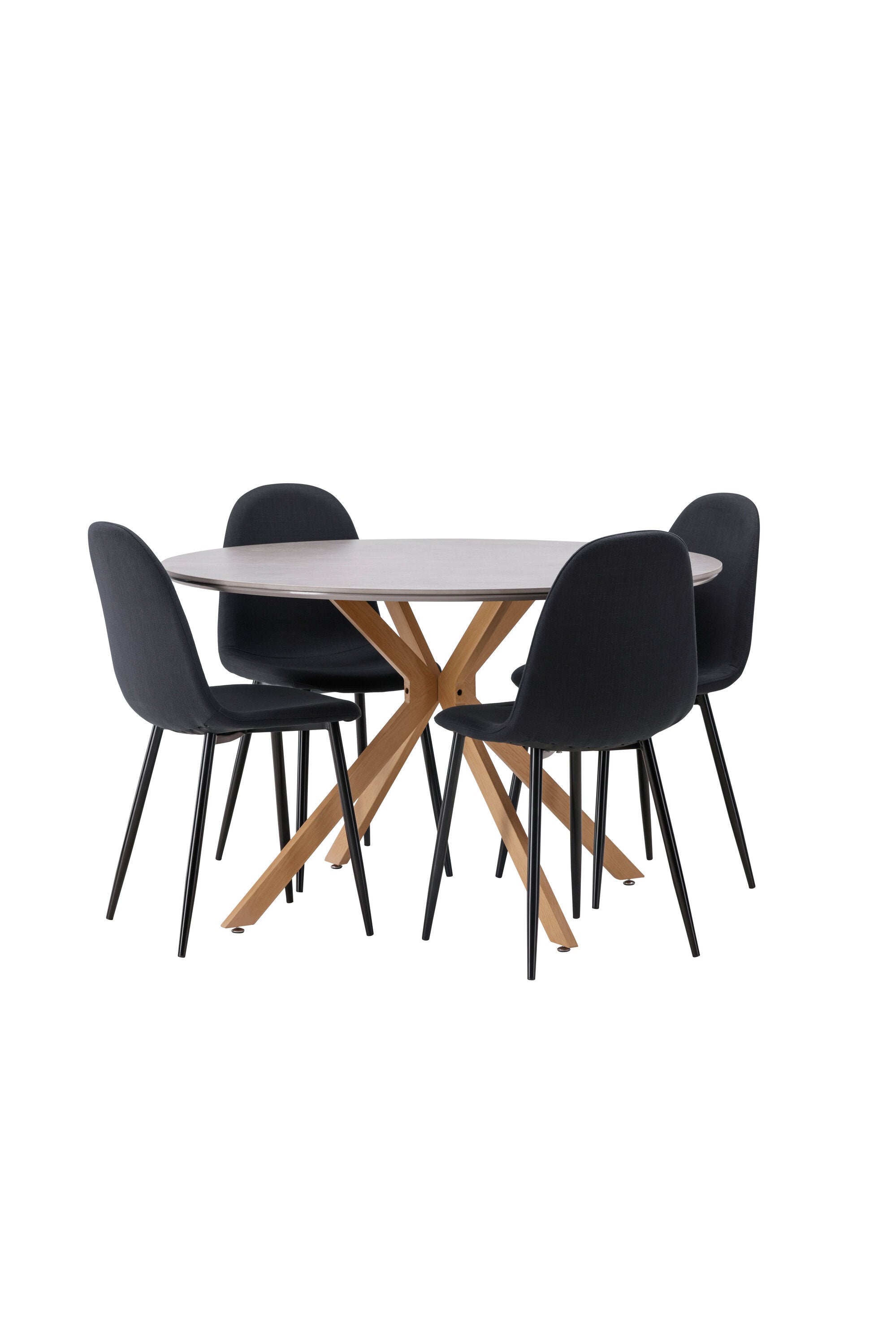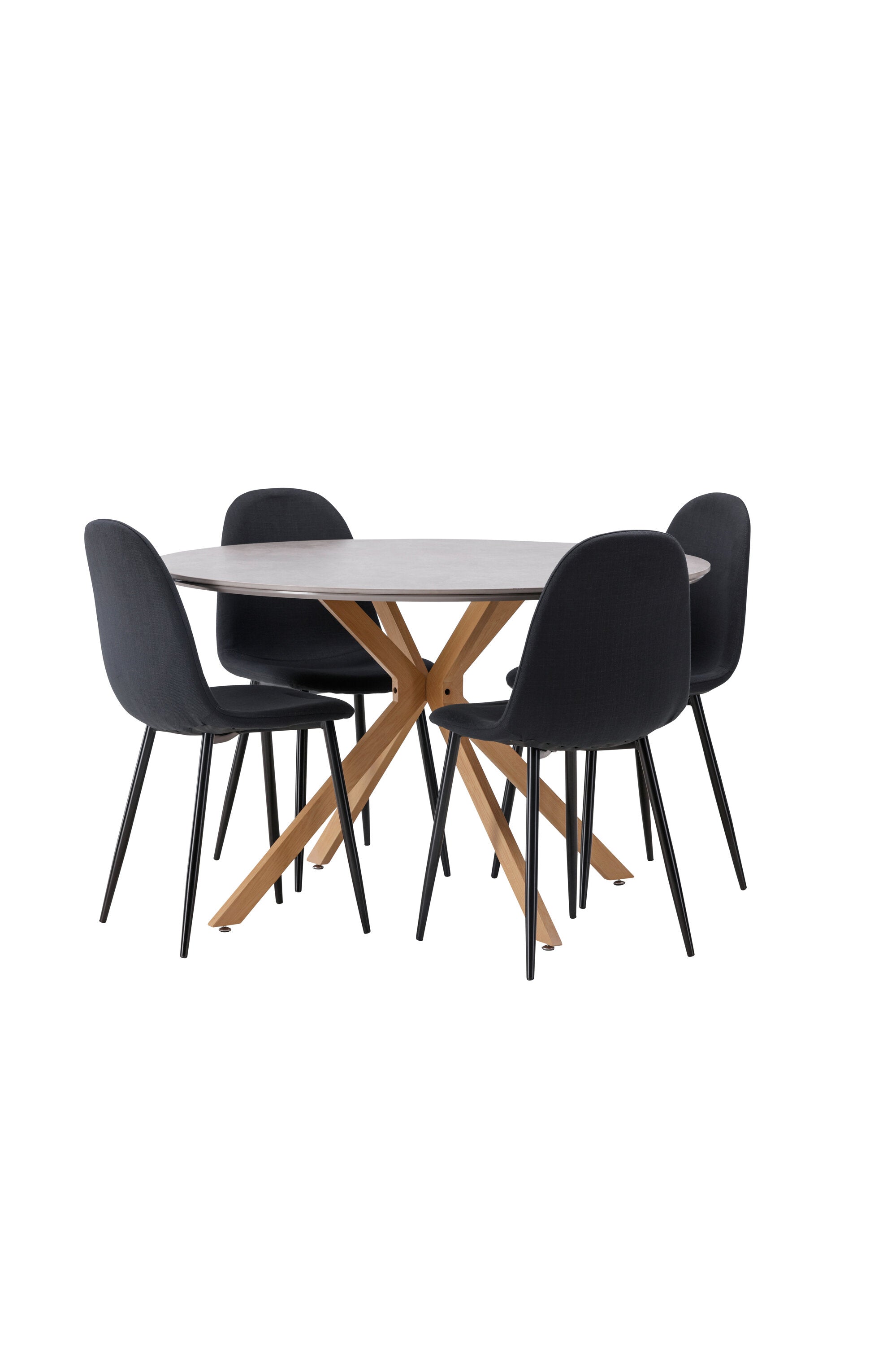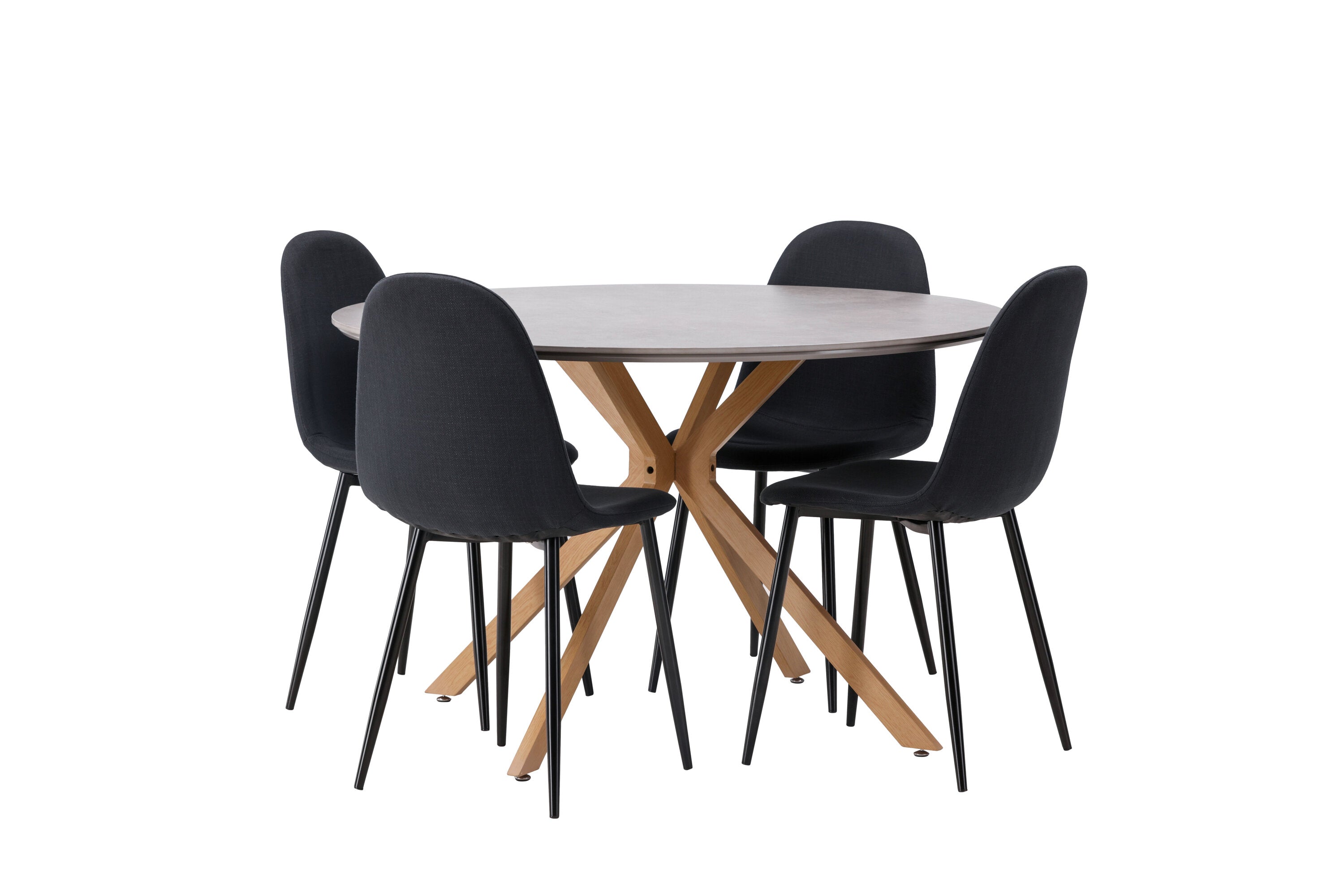 Židle Polar jsou navrženy pro optimální pohodlí s polyesterovým čalouněním a pevnými ocelovými nohami. Černá barva židlí vytváří stylový kontrast k šedému stolu. Každá židle je navržena tak, aby poskytovala pohodlné sezení během dlouhých jídel a rozhovorů.